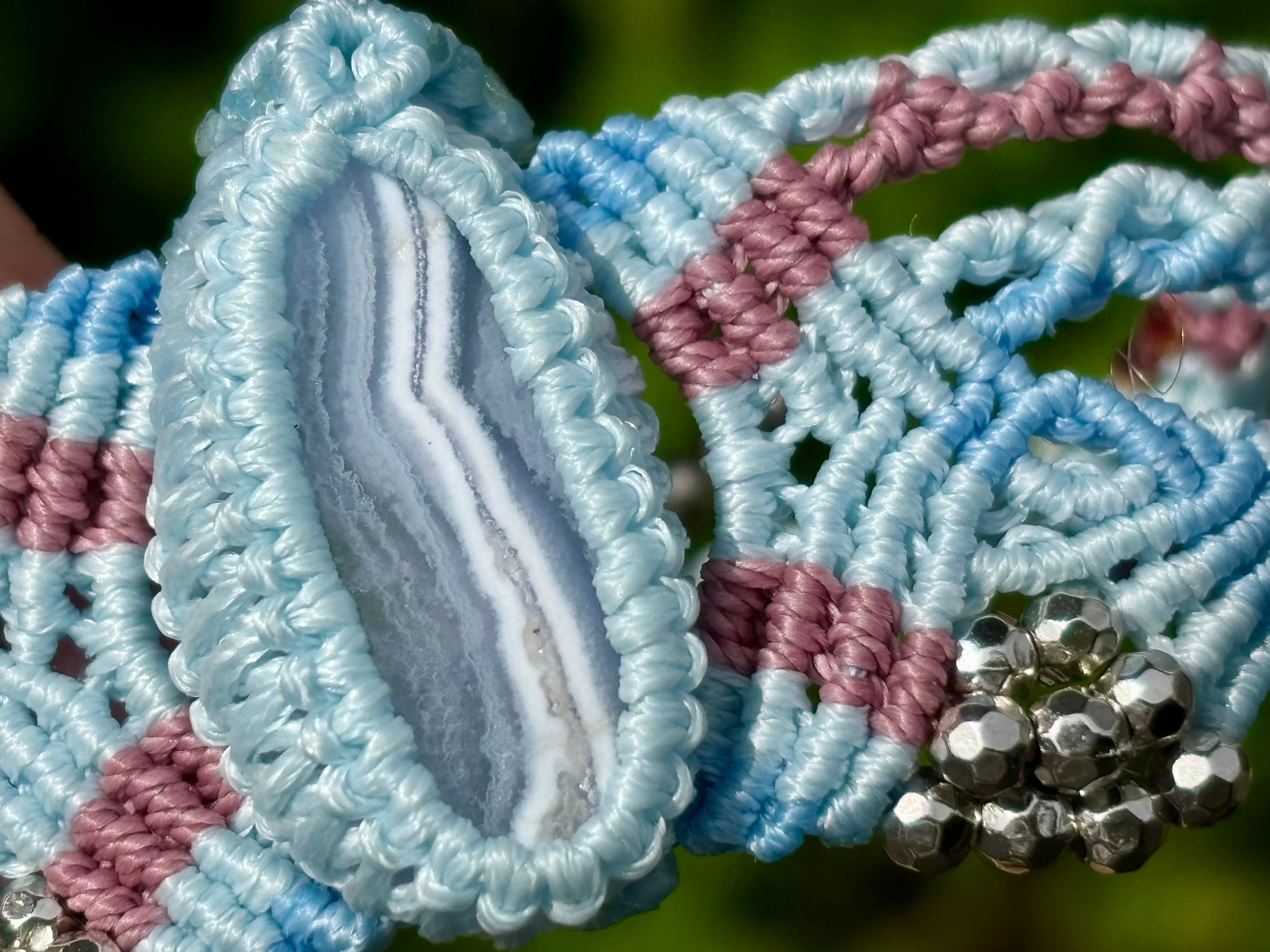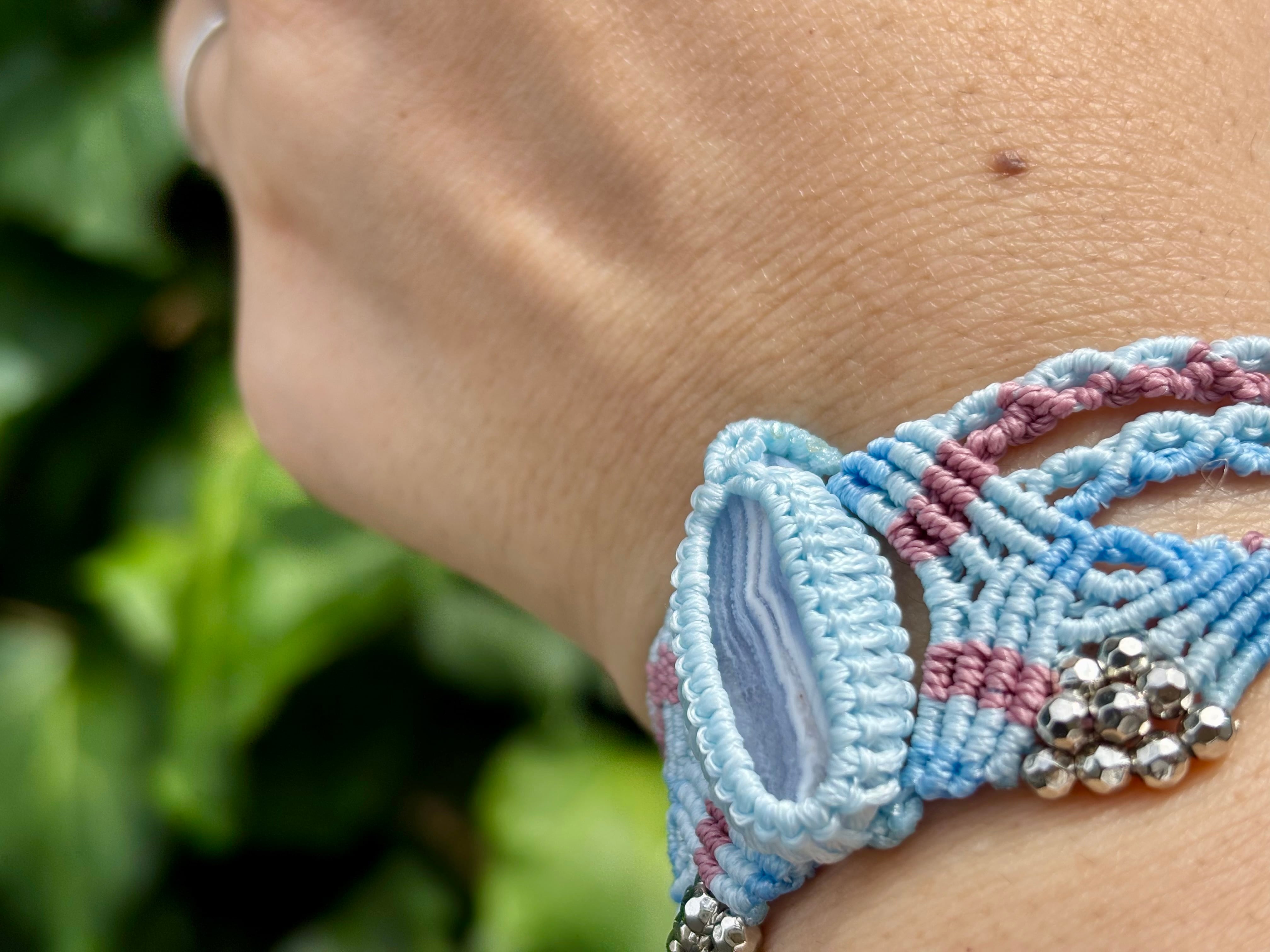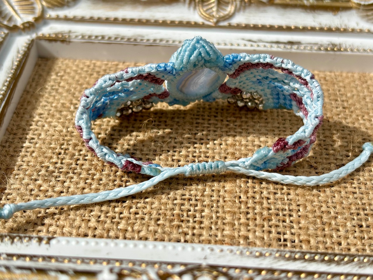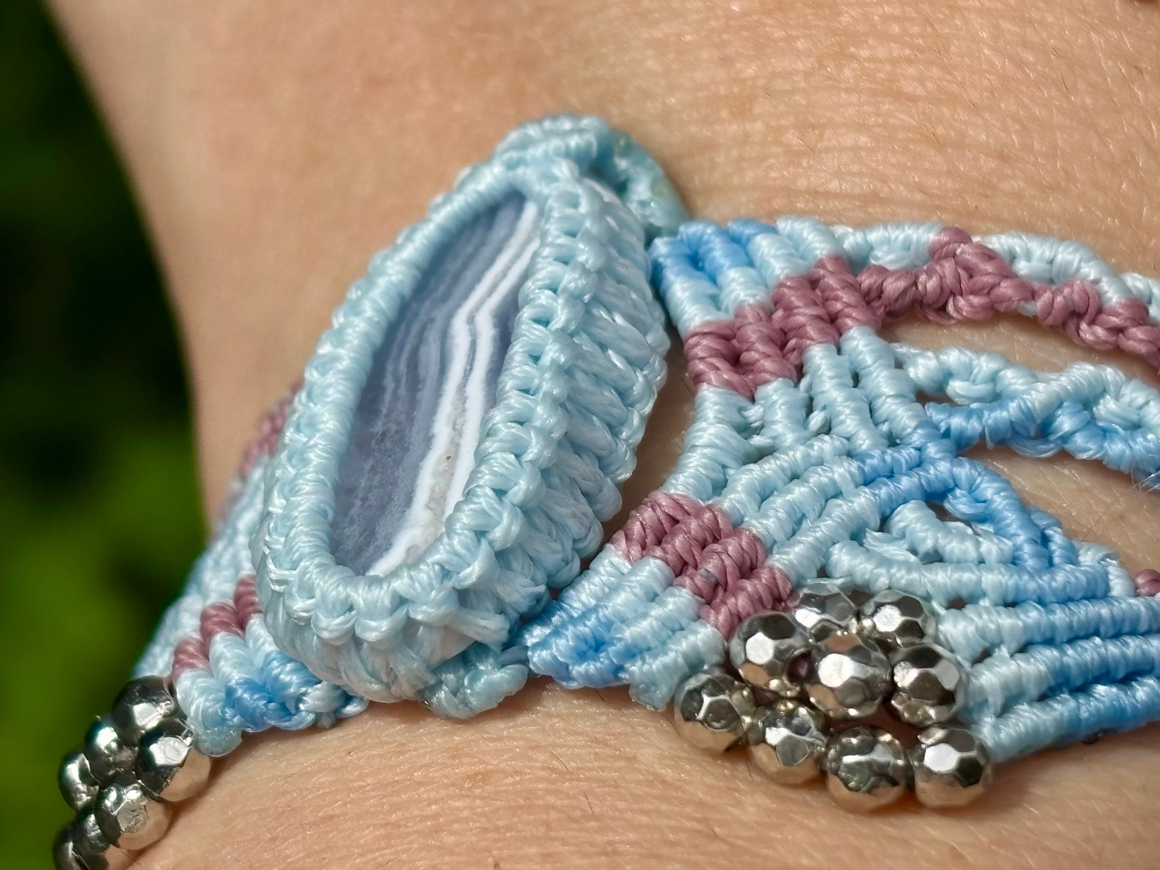 #815 天然ブルーレースアゲート一点物 (ブルーレースアゲート マクラメ編みブレスレット)