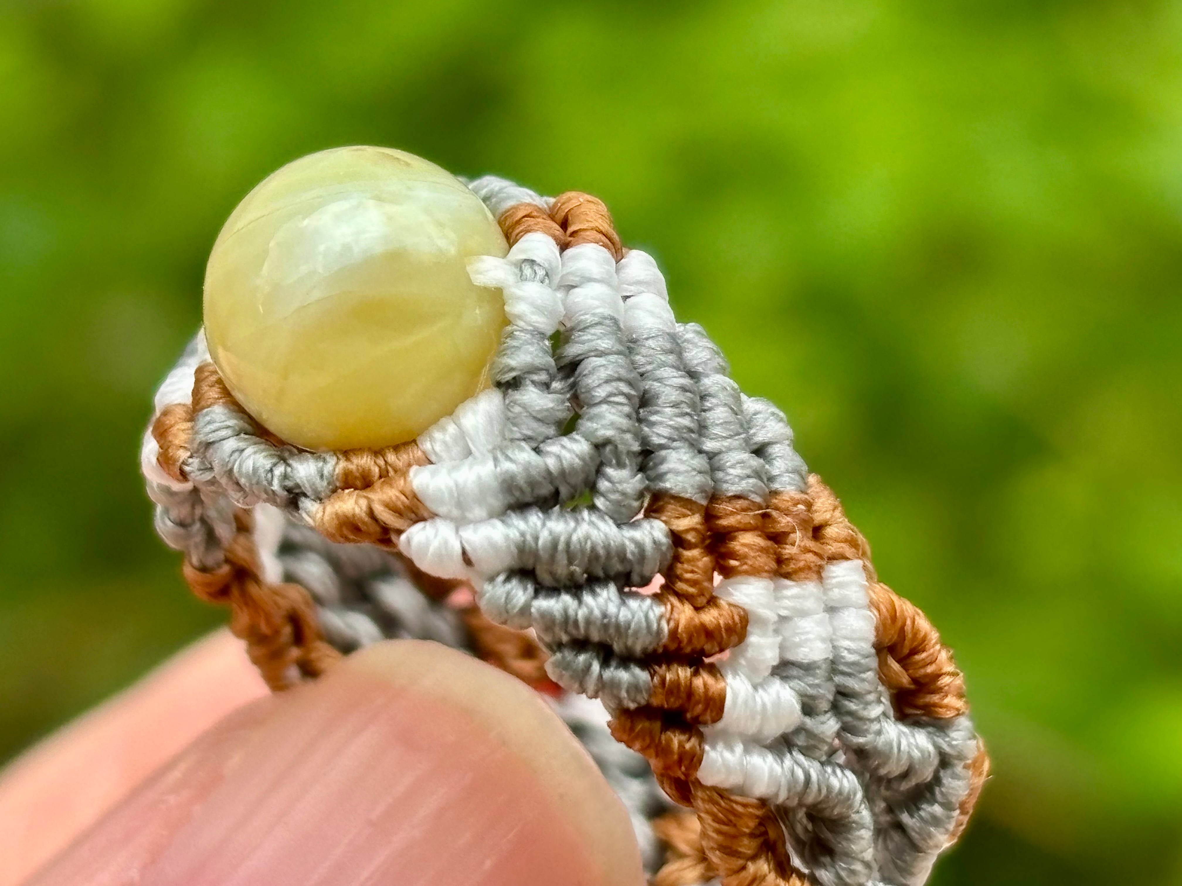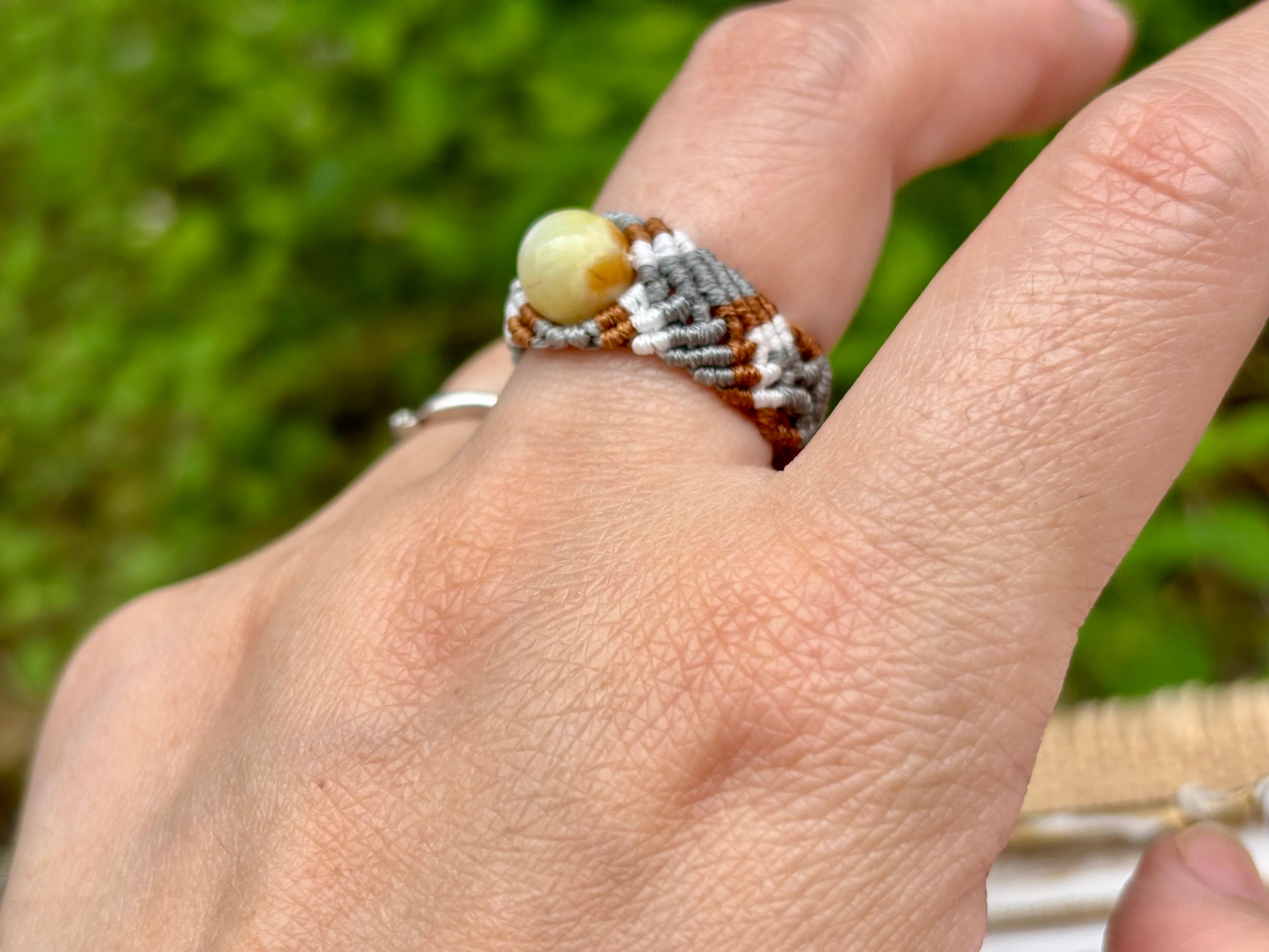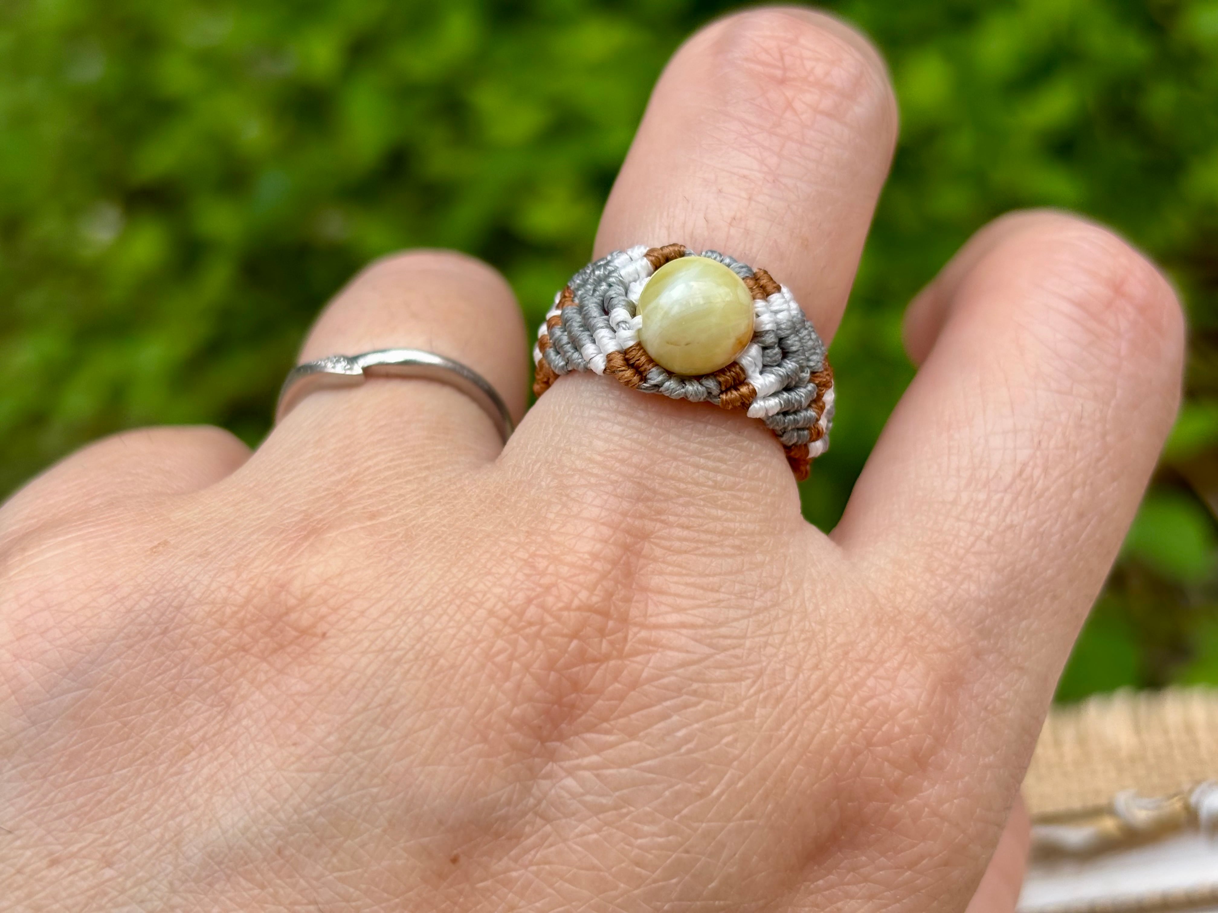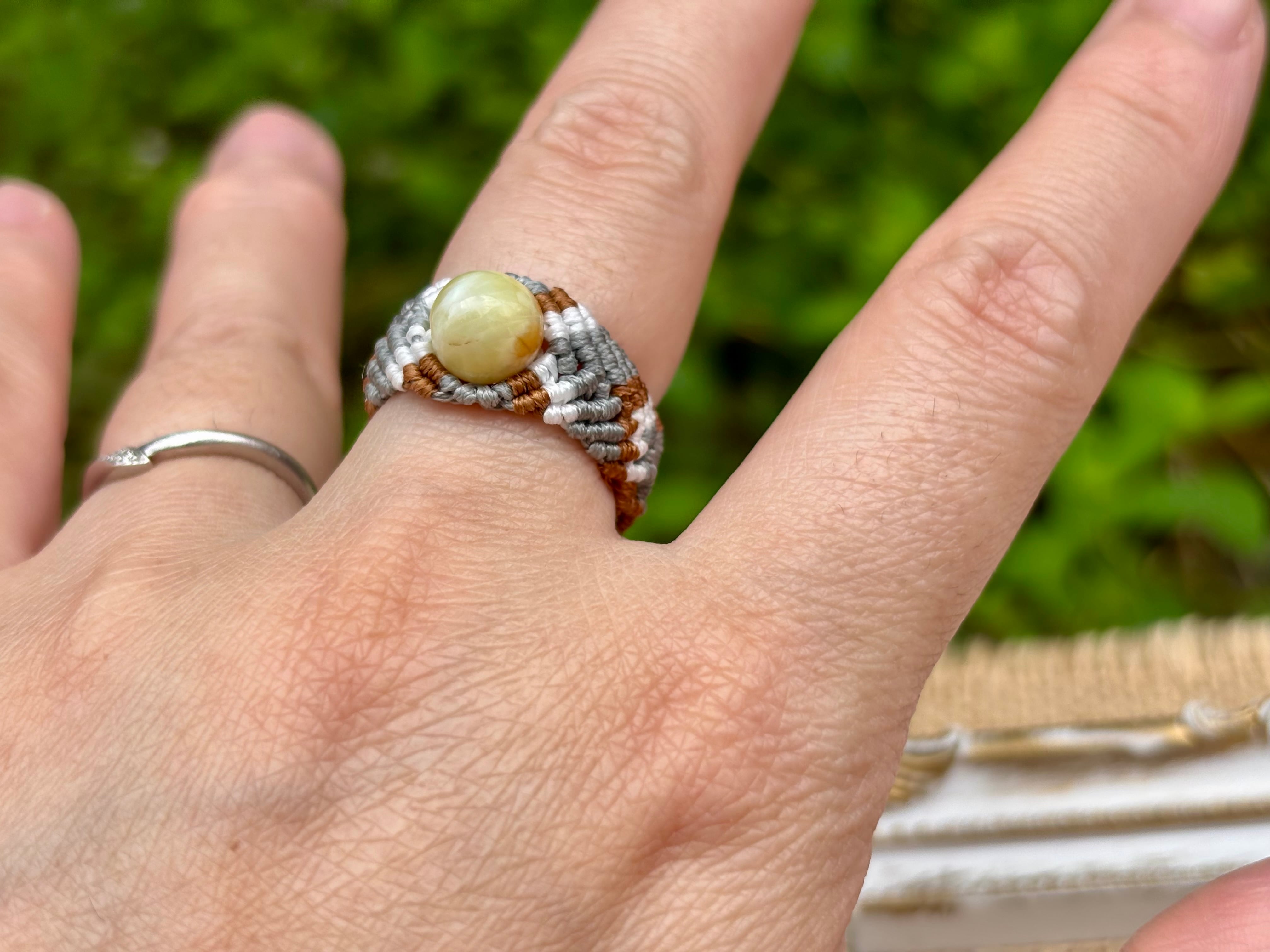 #818天然ハニーイエローオパール(ハニーイエローオパール マクラメ編みリング/指輪)