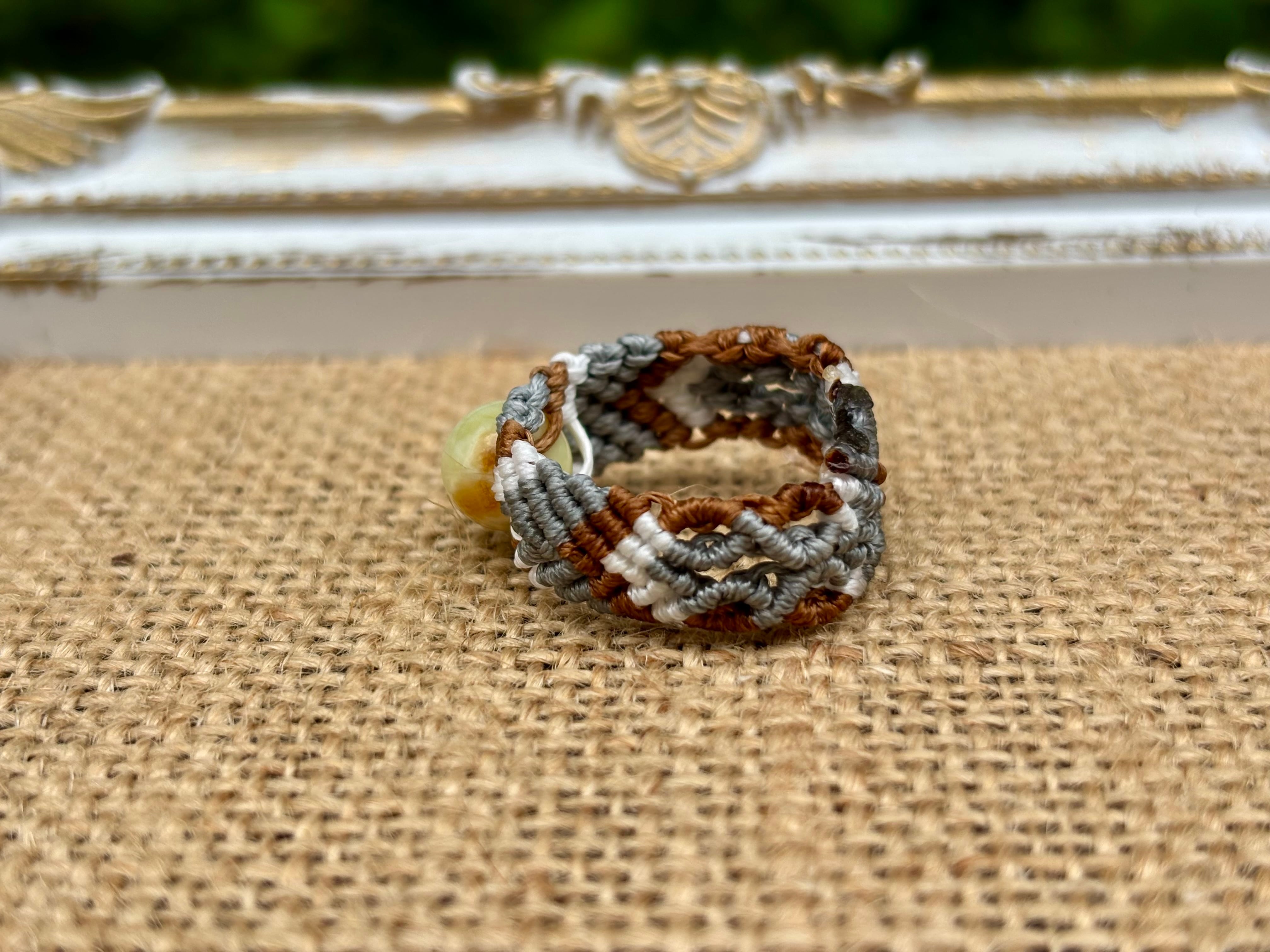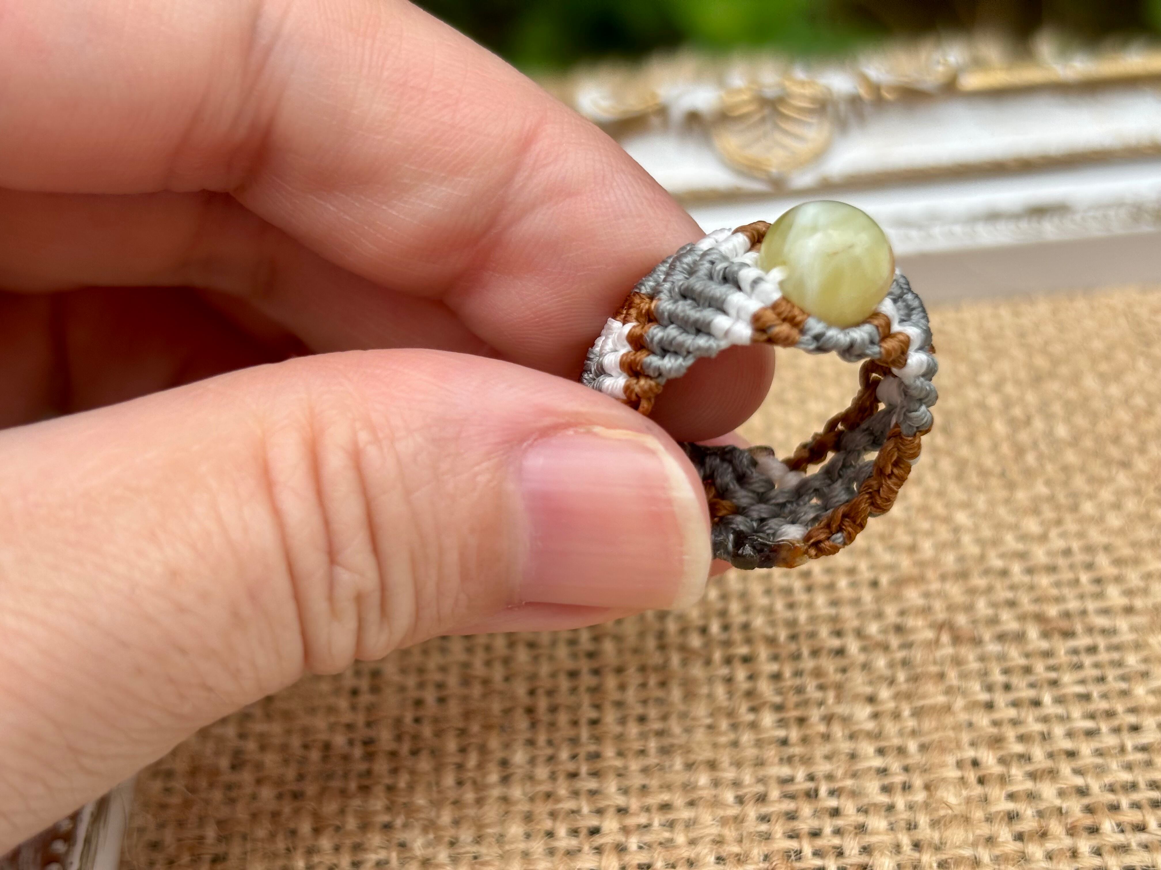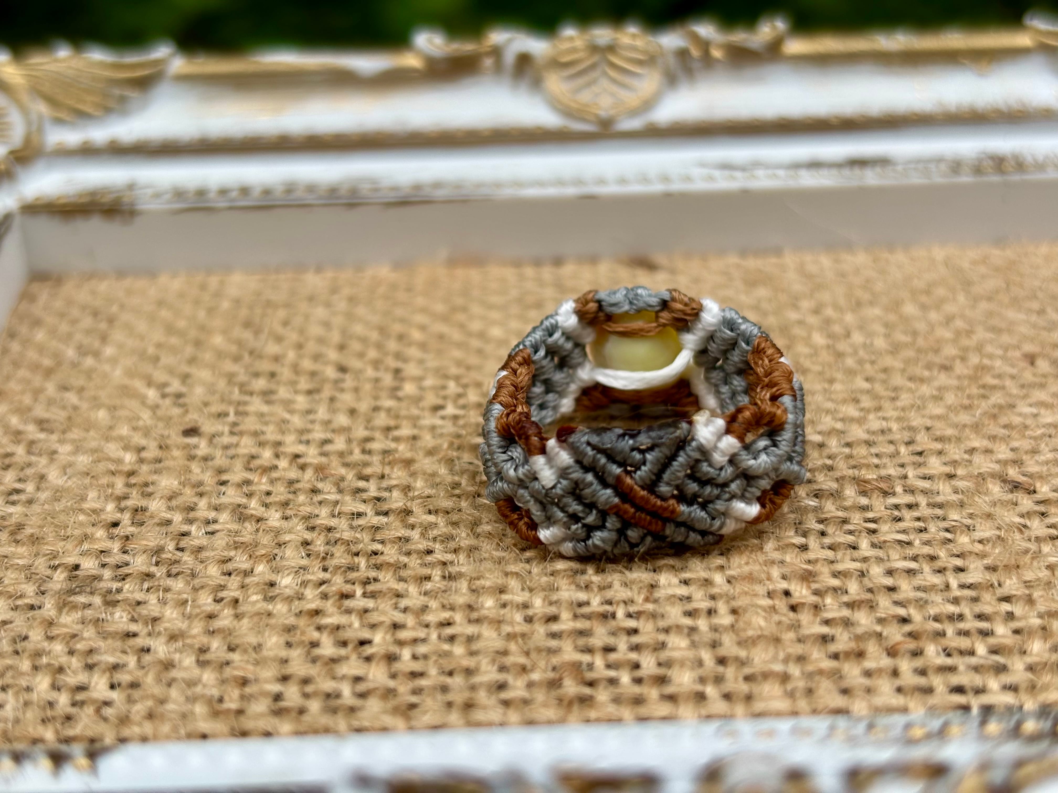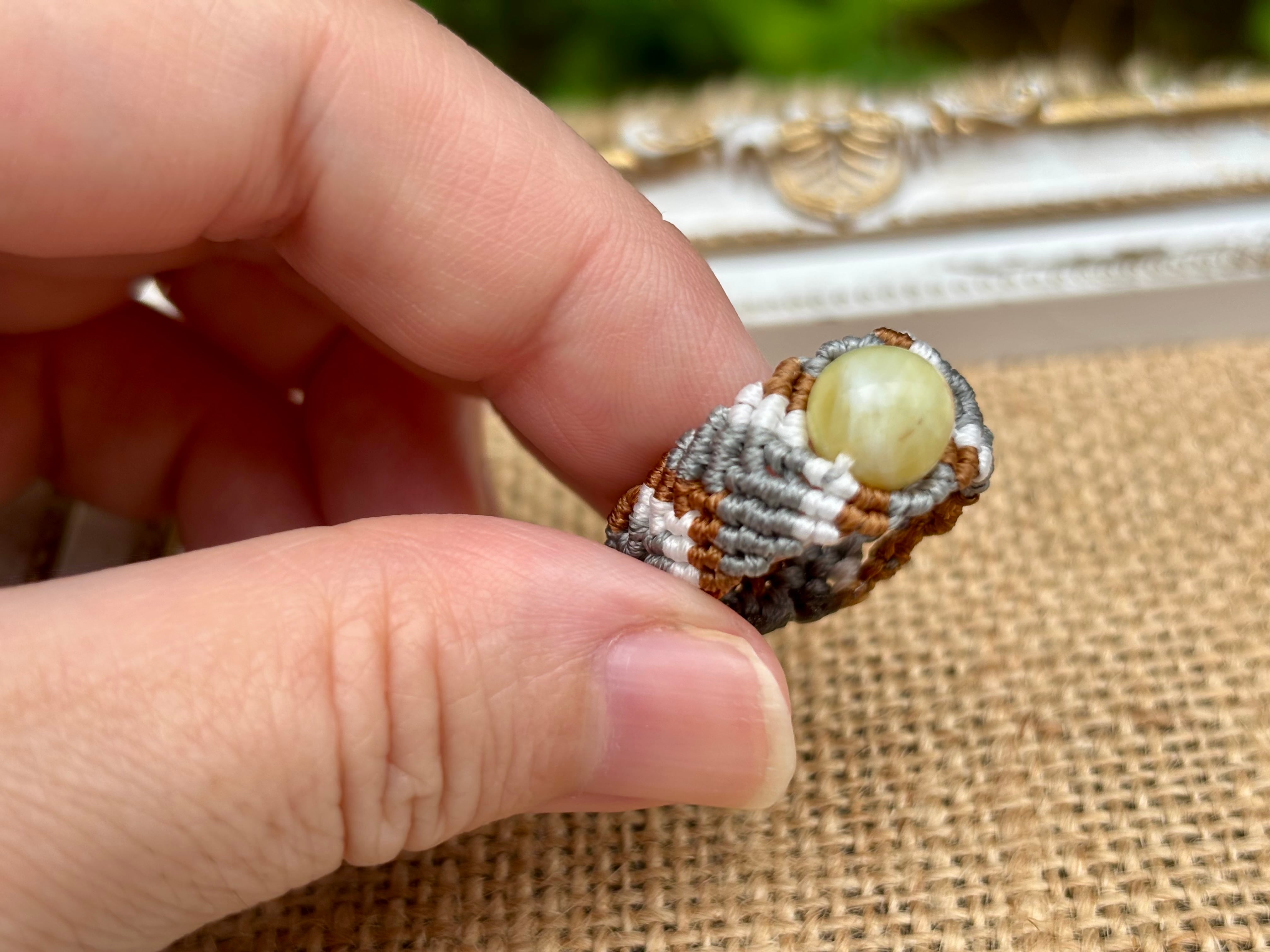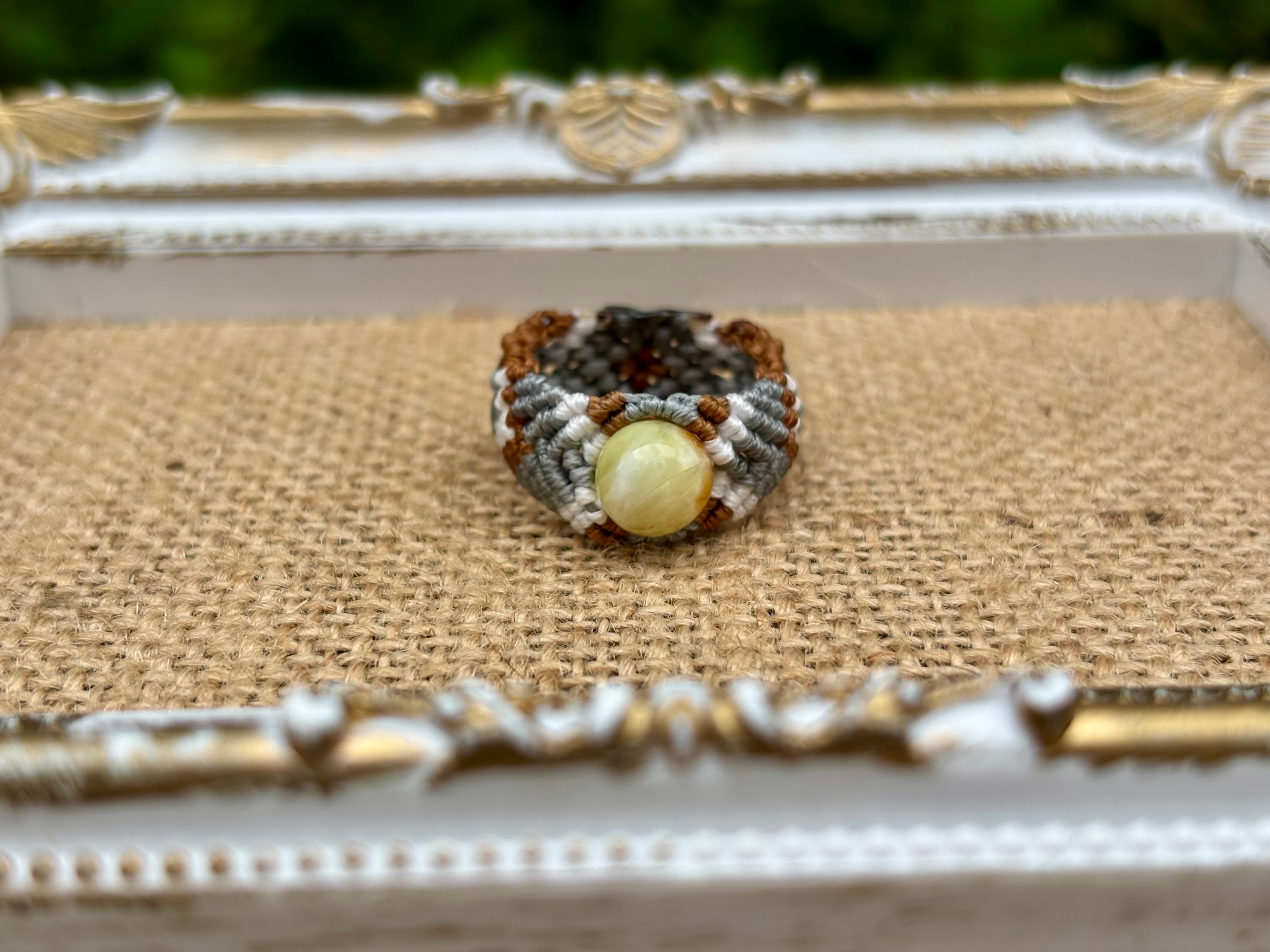 #818天然ハニーイエローオパール(ハニーイエローオパール マクラメ編みリング/指輪)