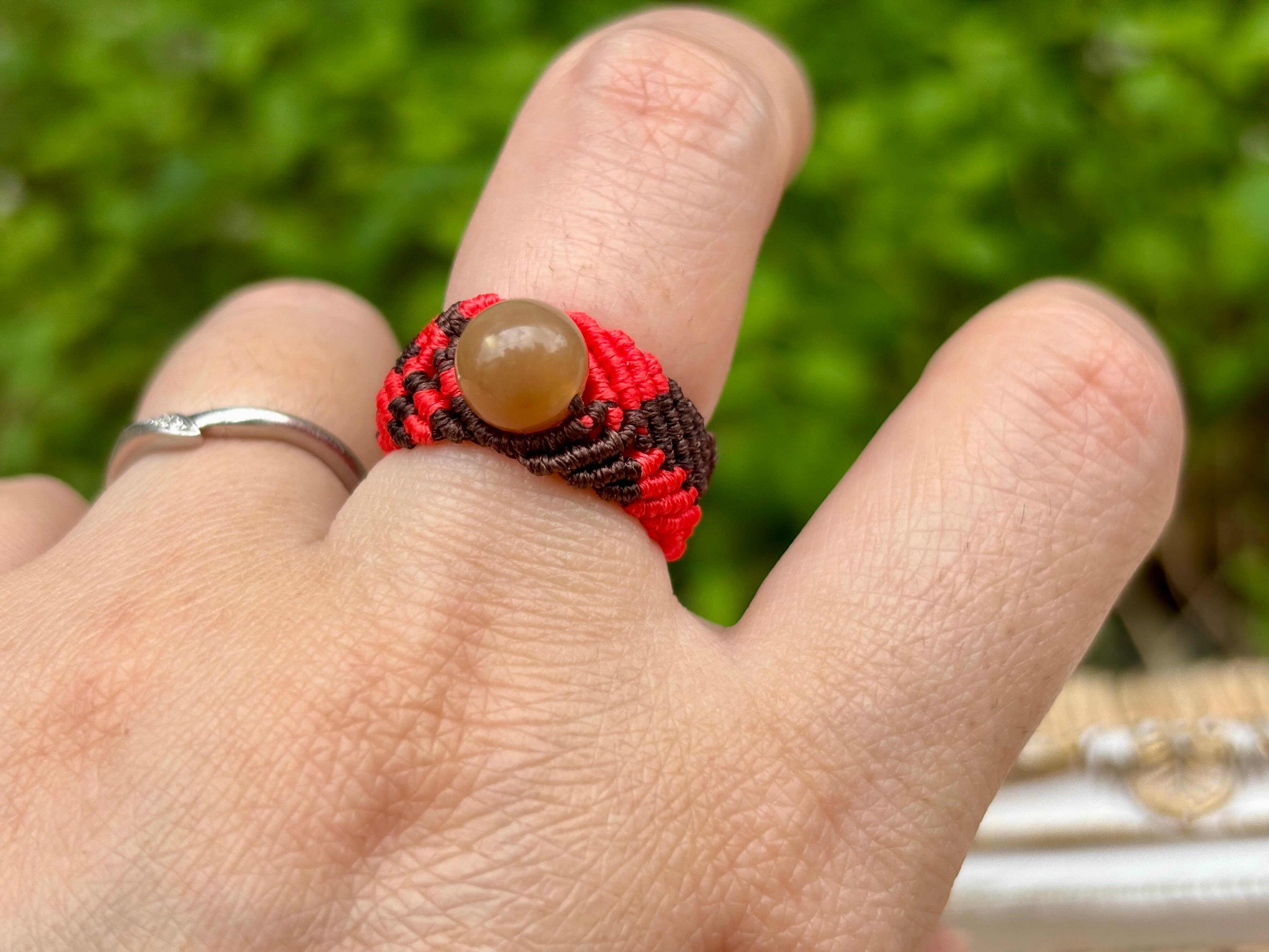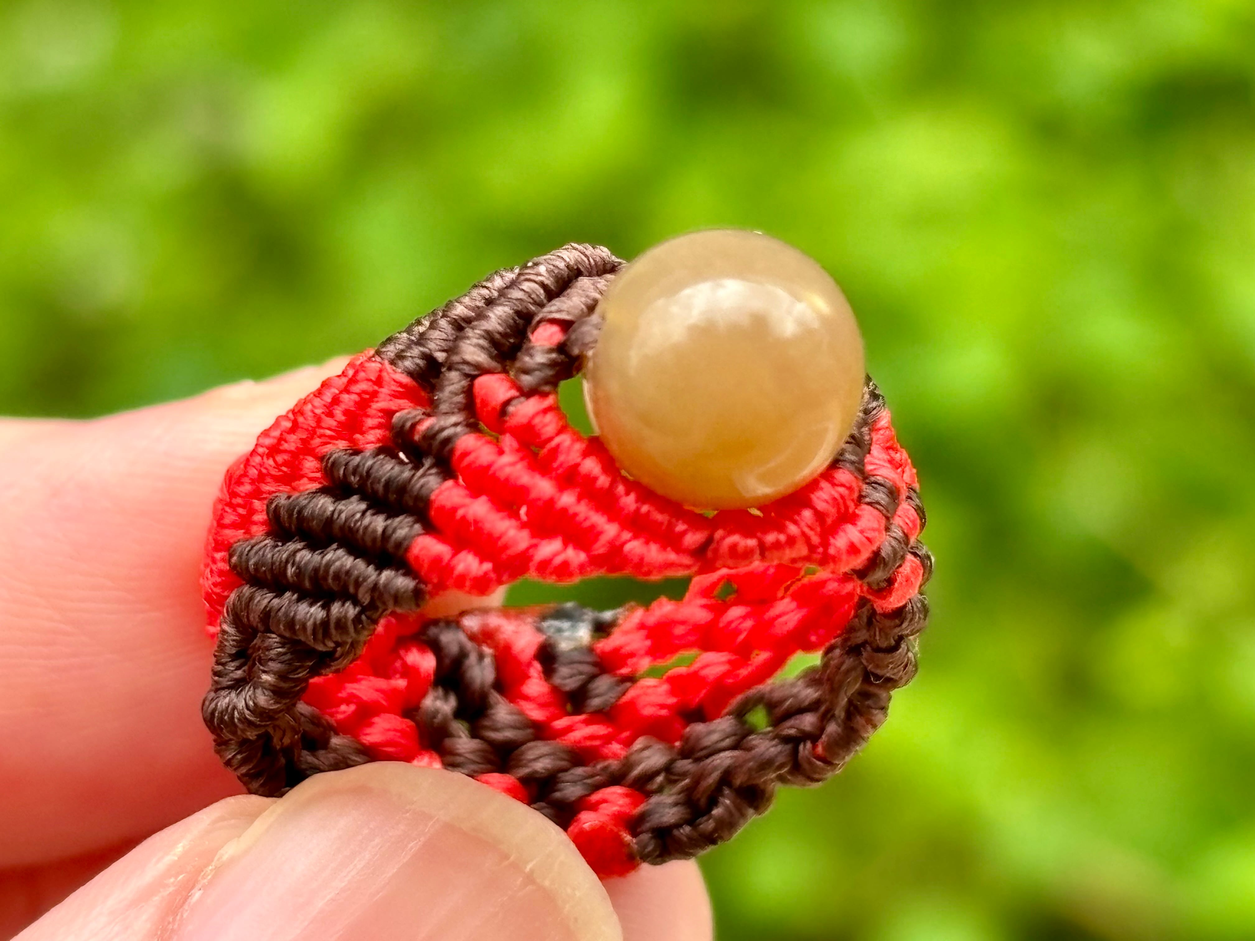 #819天然ハニーイエローオパール(ハニーイエローオパール マクラメ編みリング/指輪)