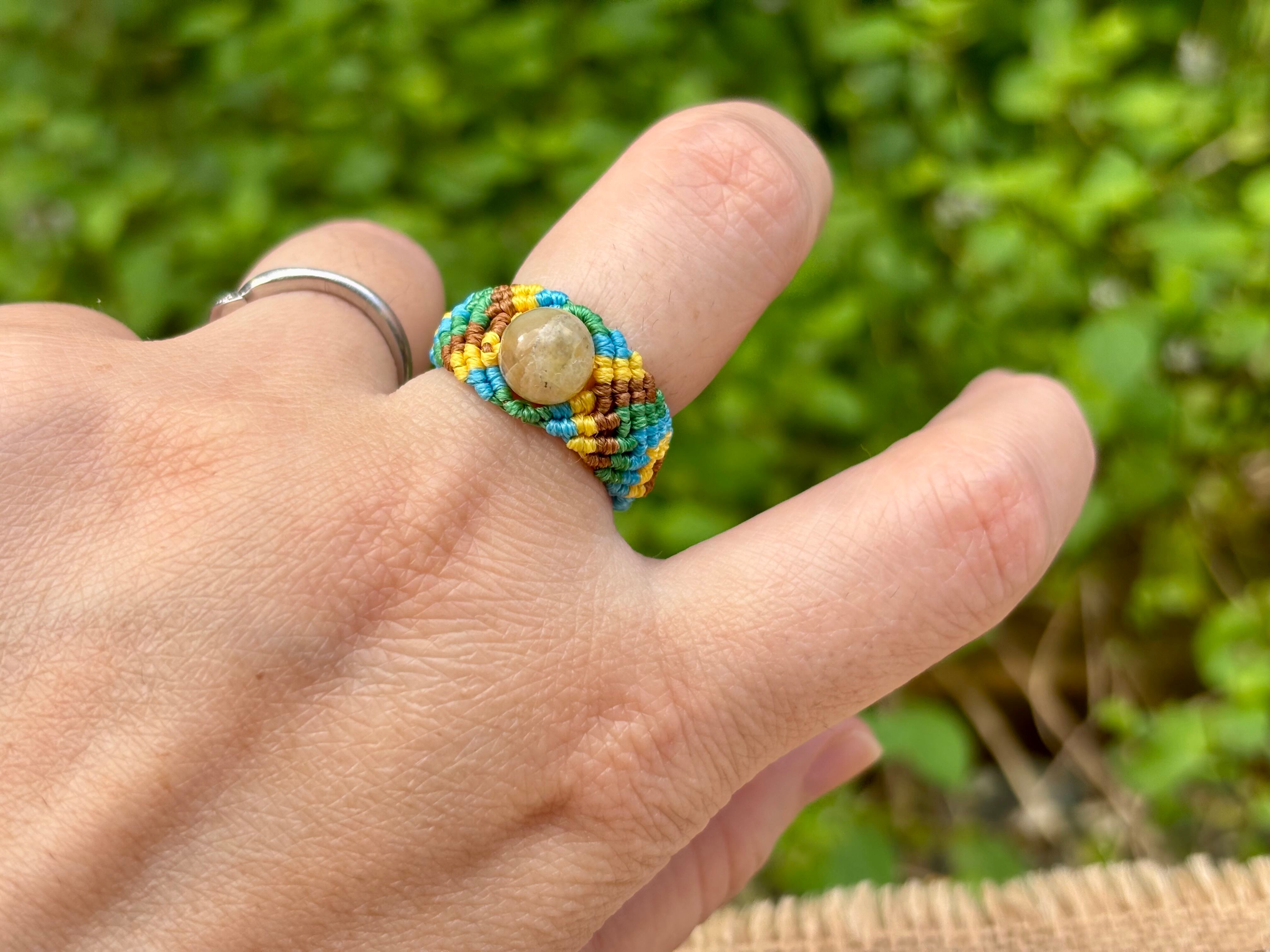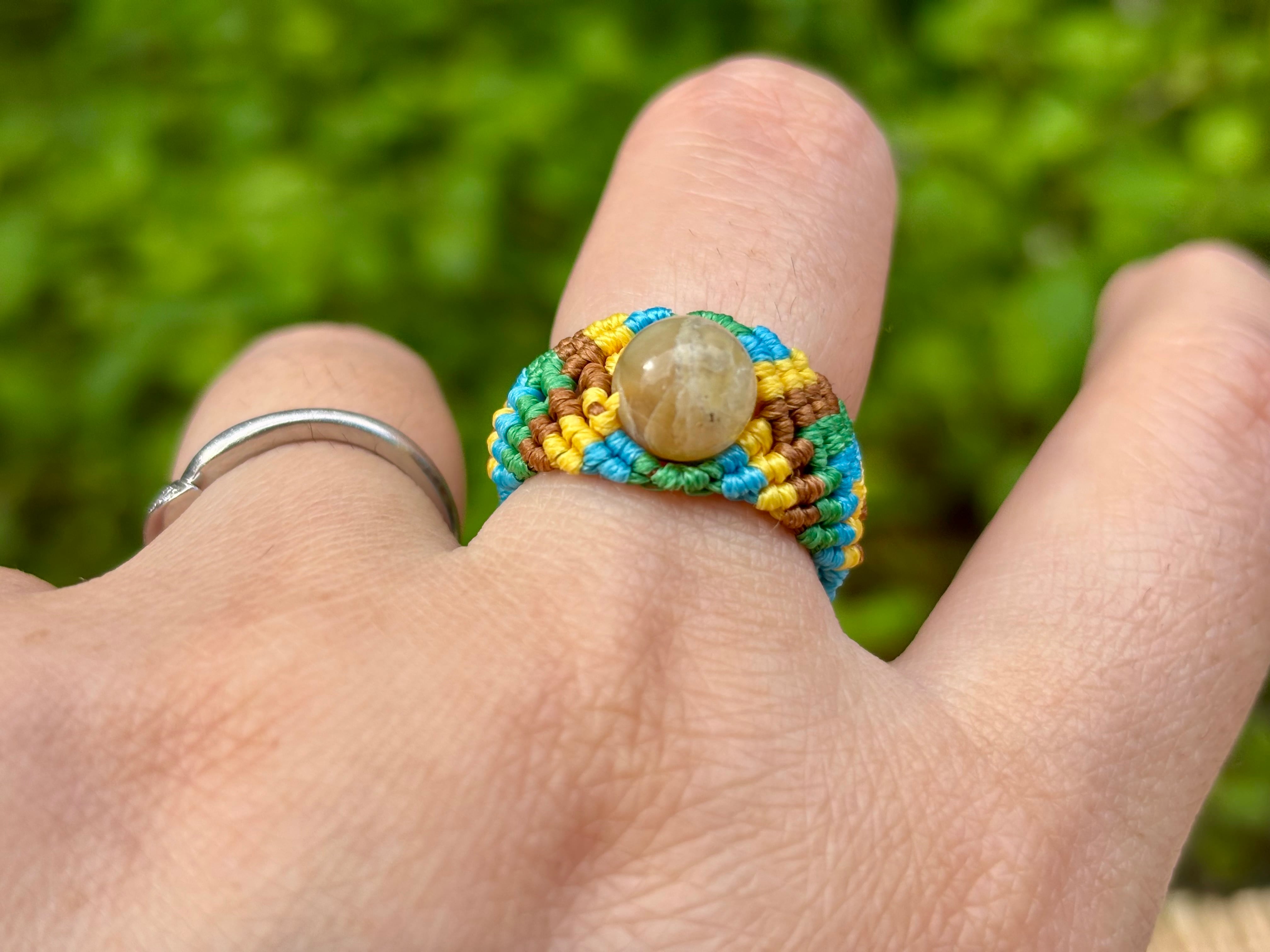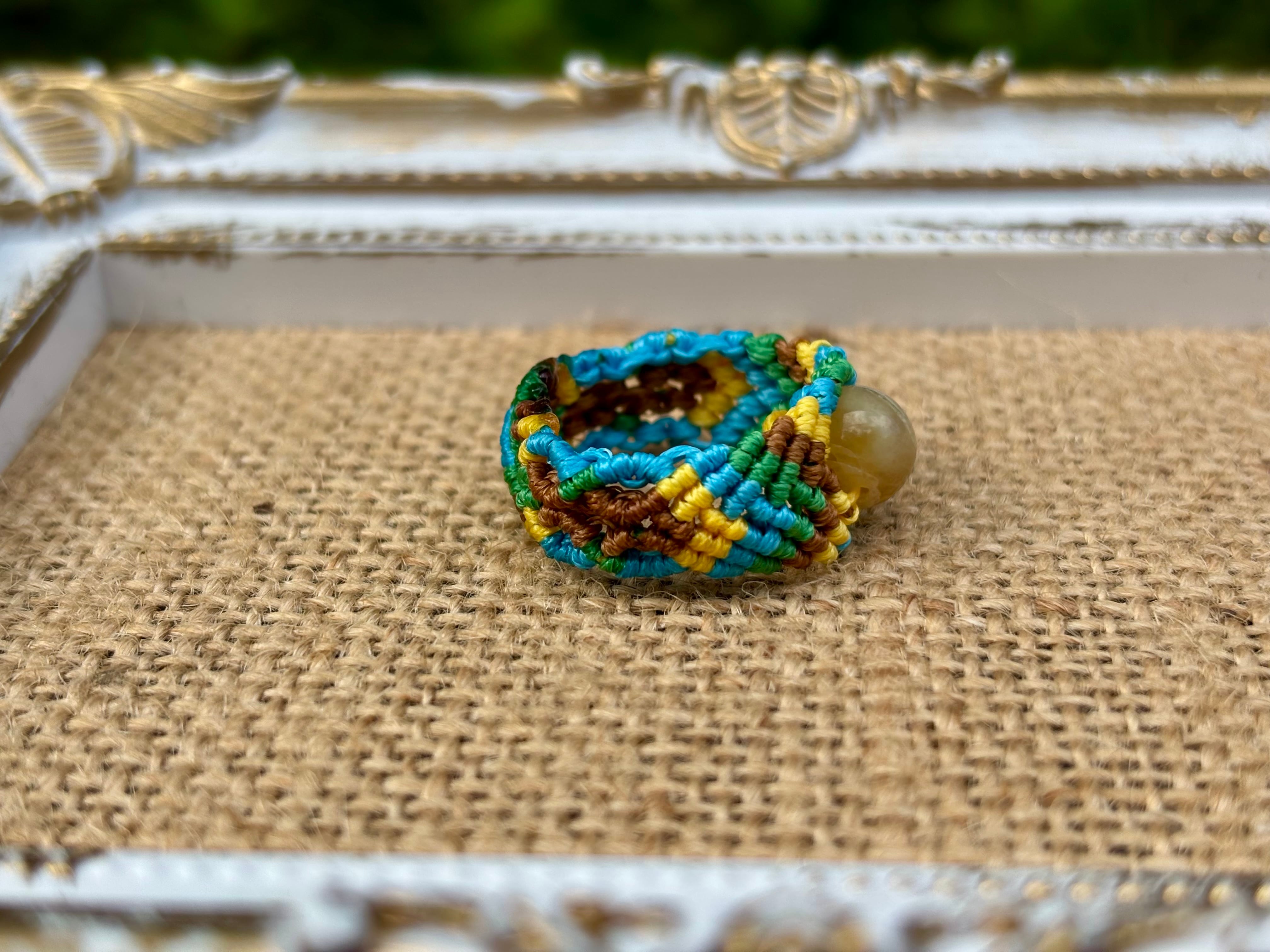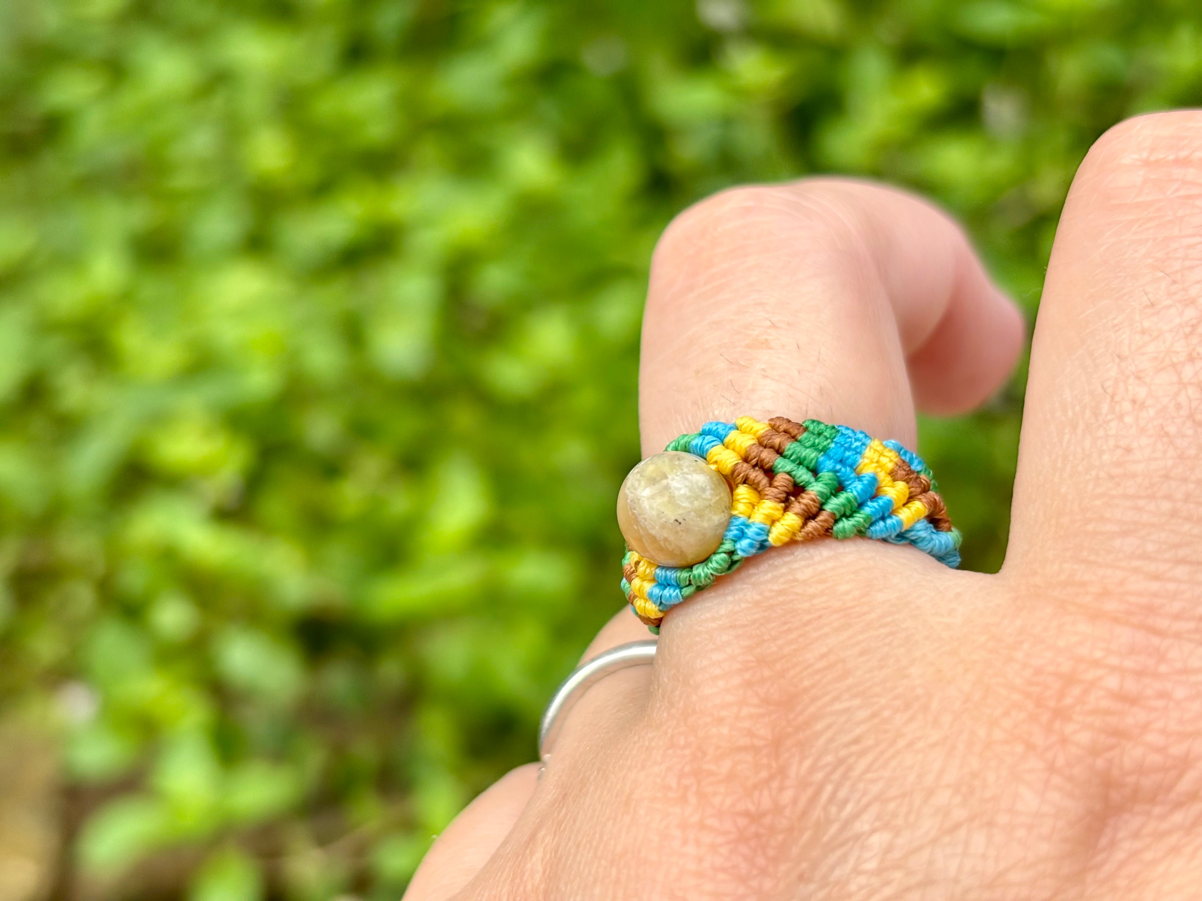 #820天然ハニーイエローオパール(ハニーイエローオパール マクラメ編みリング/指輪)