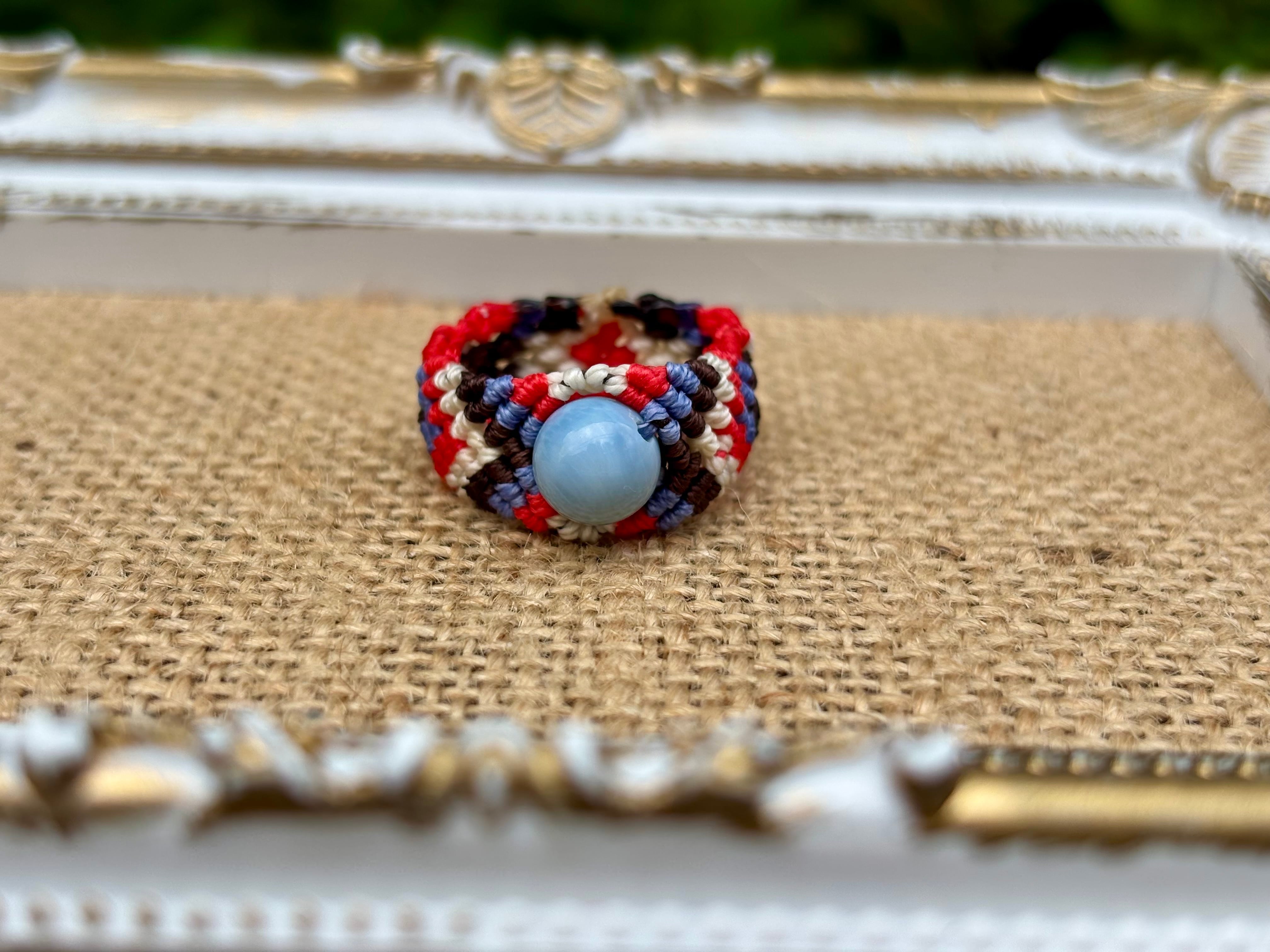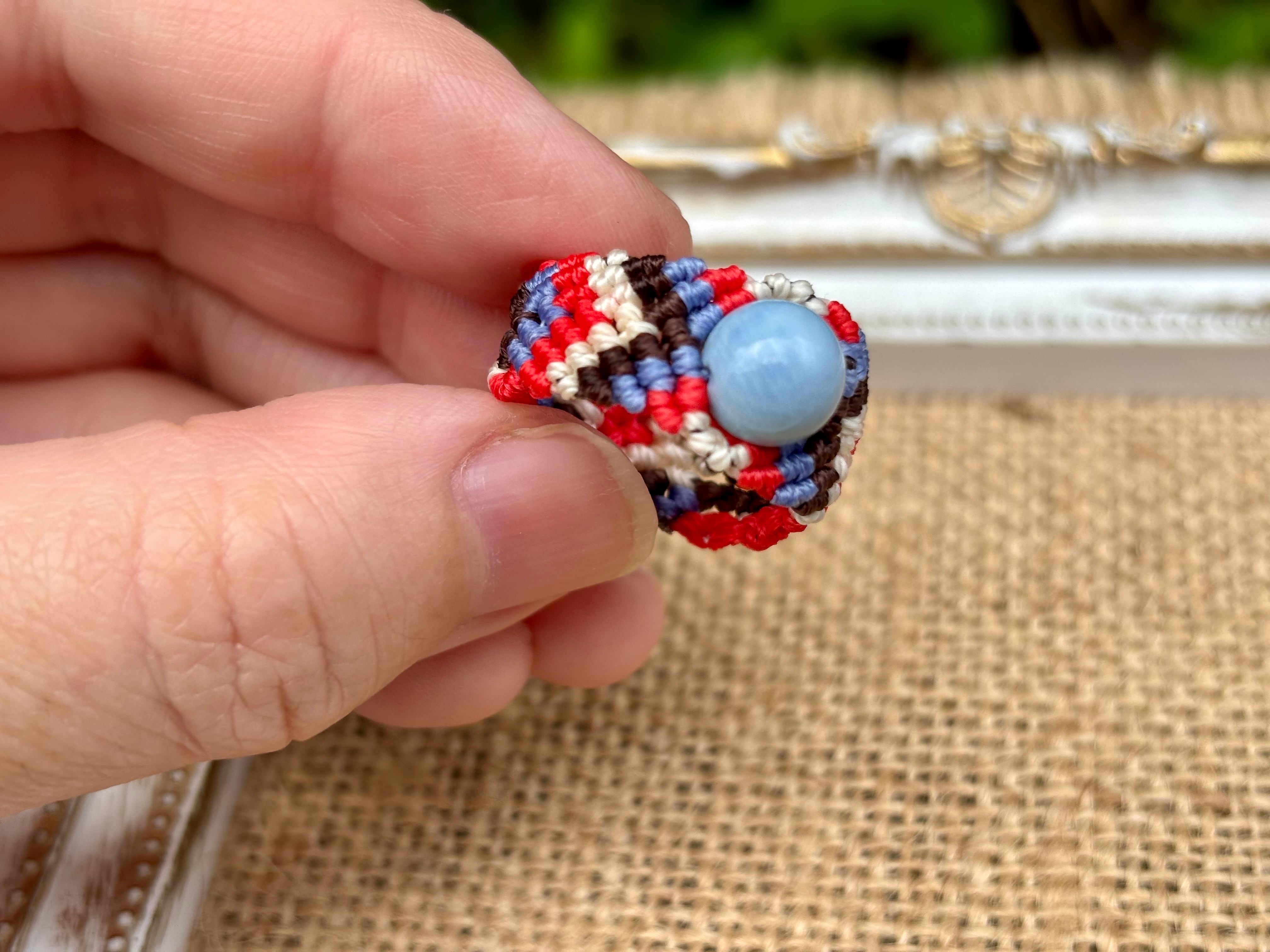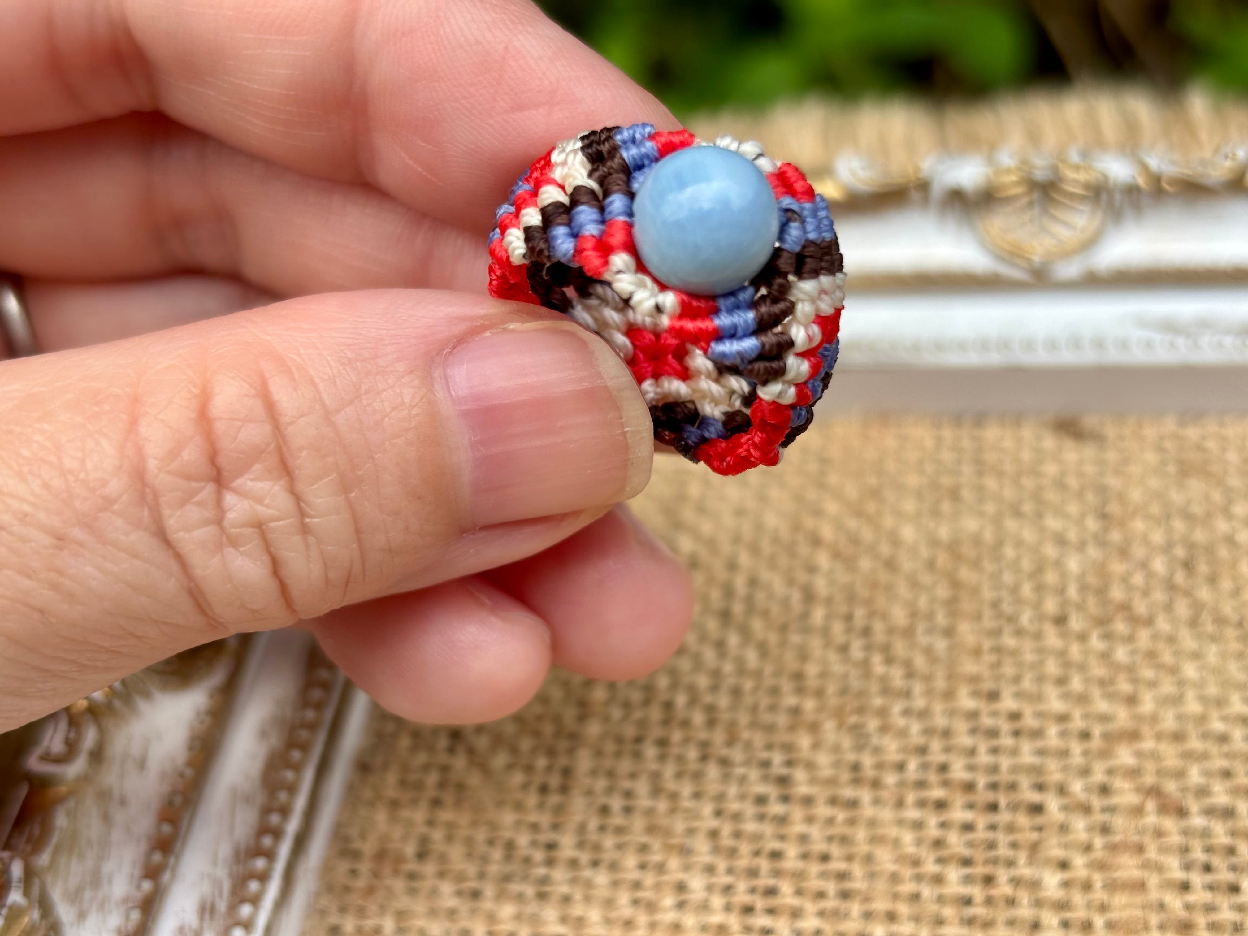 #822天然ブルーオパール(ブルーオパール マクラメ編みリング/指輪)