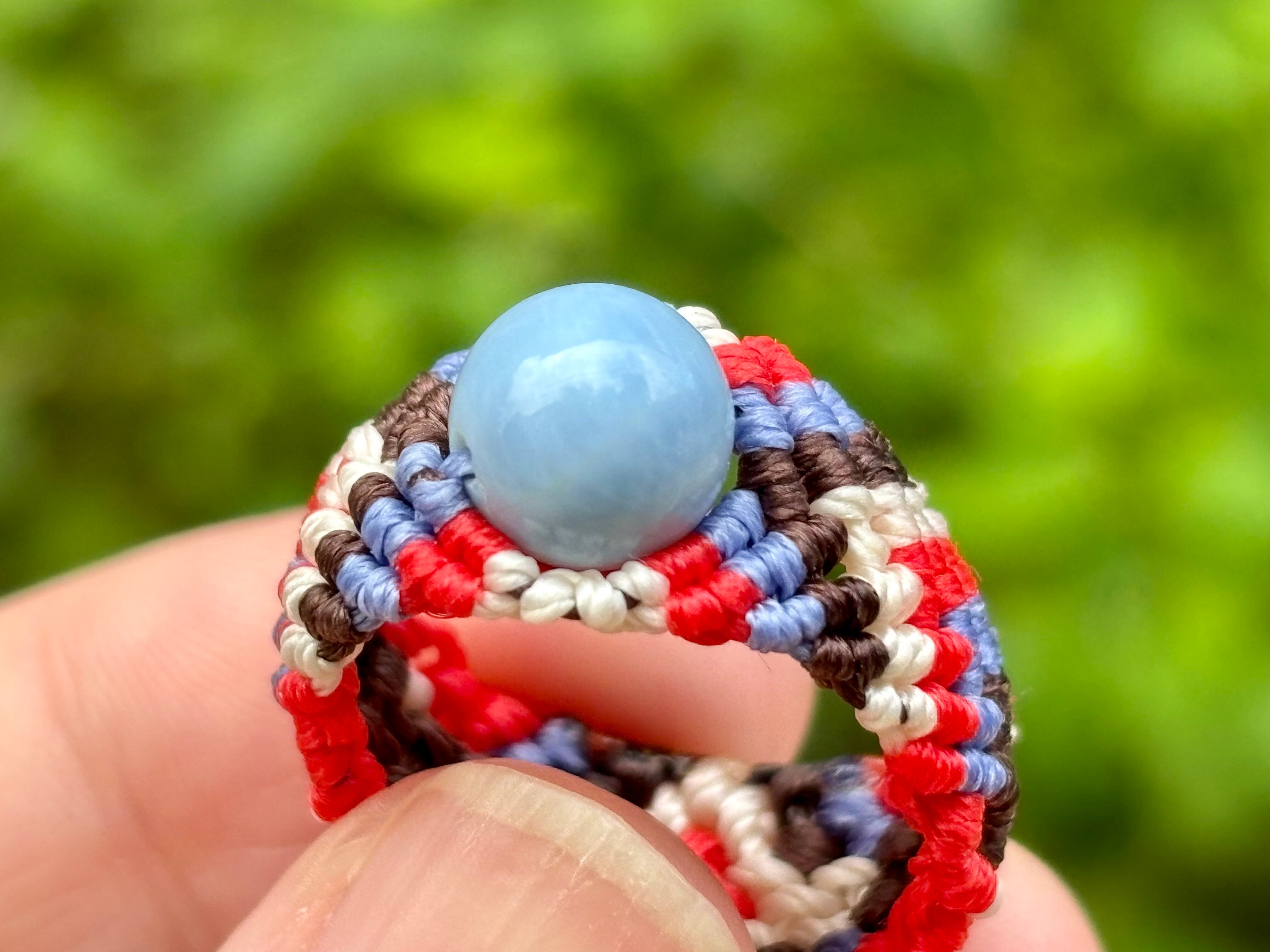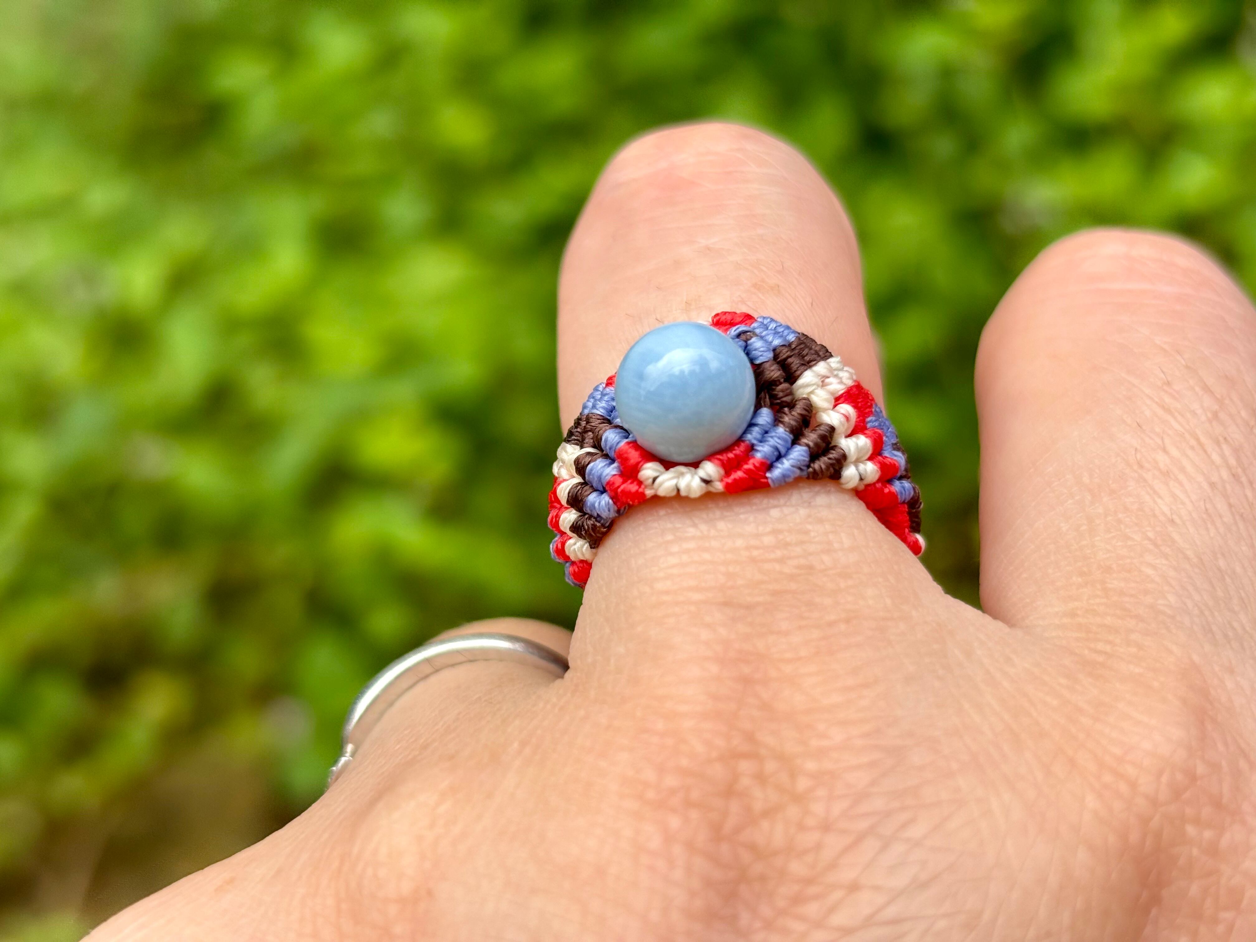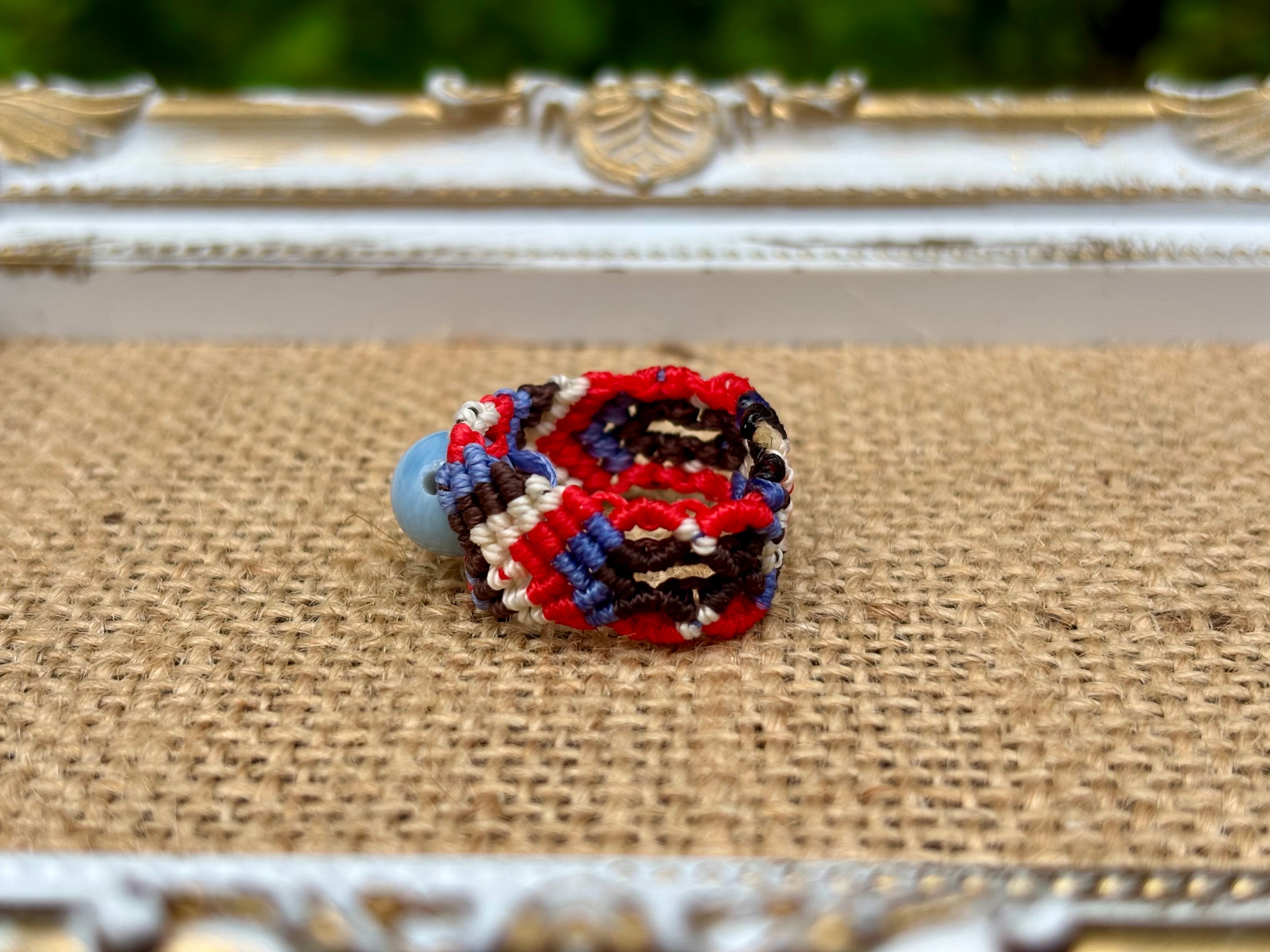 #822天然ブルーオパール(ブルーオパール マクラメ編みリング/指輪)