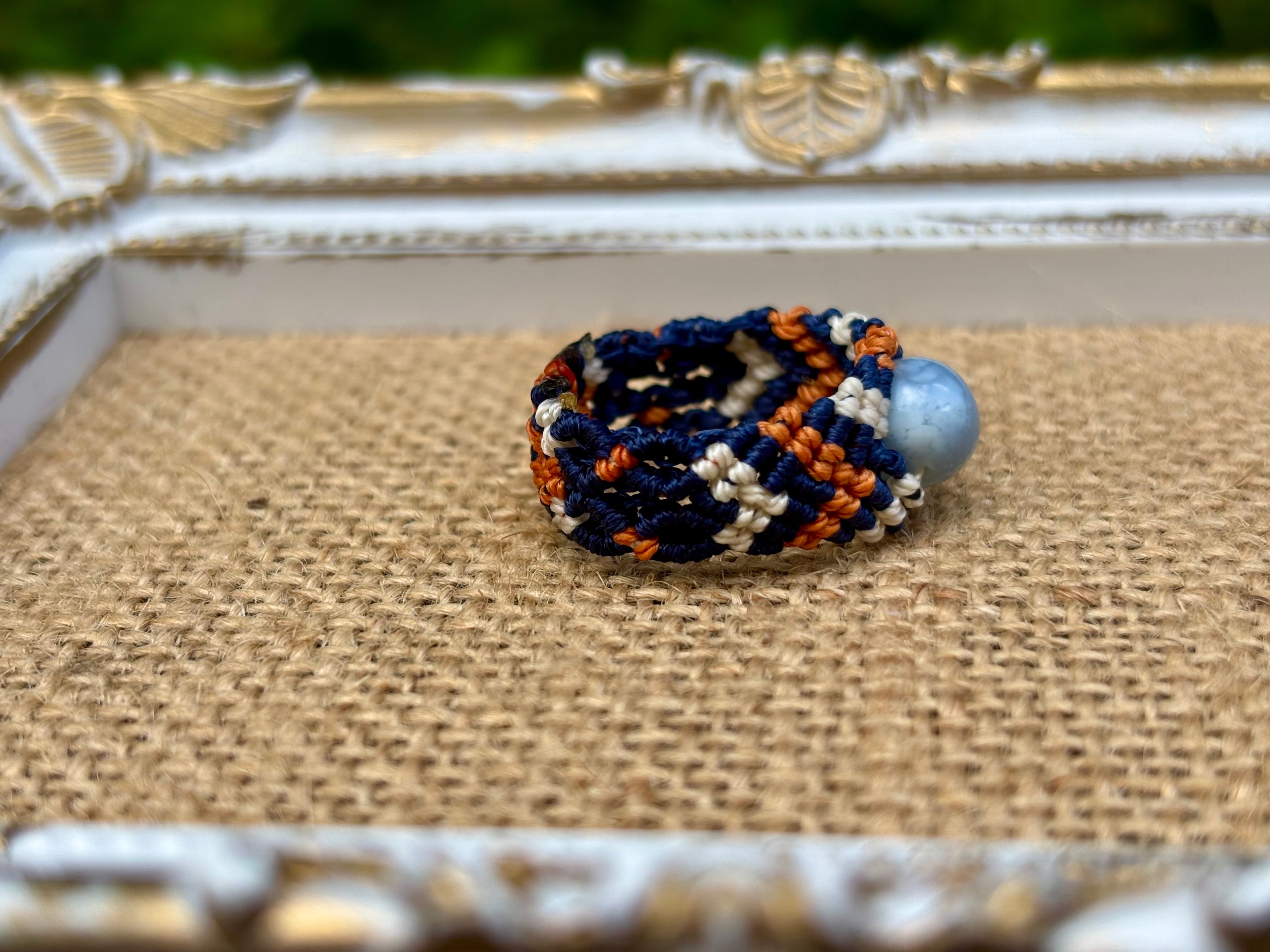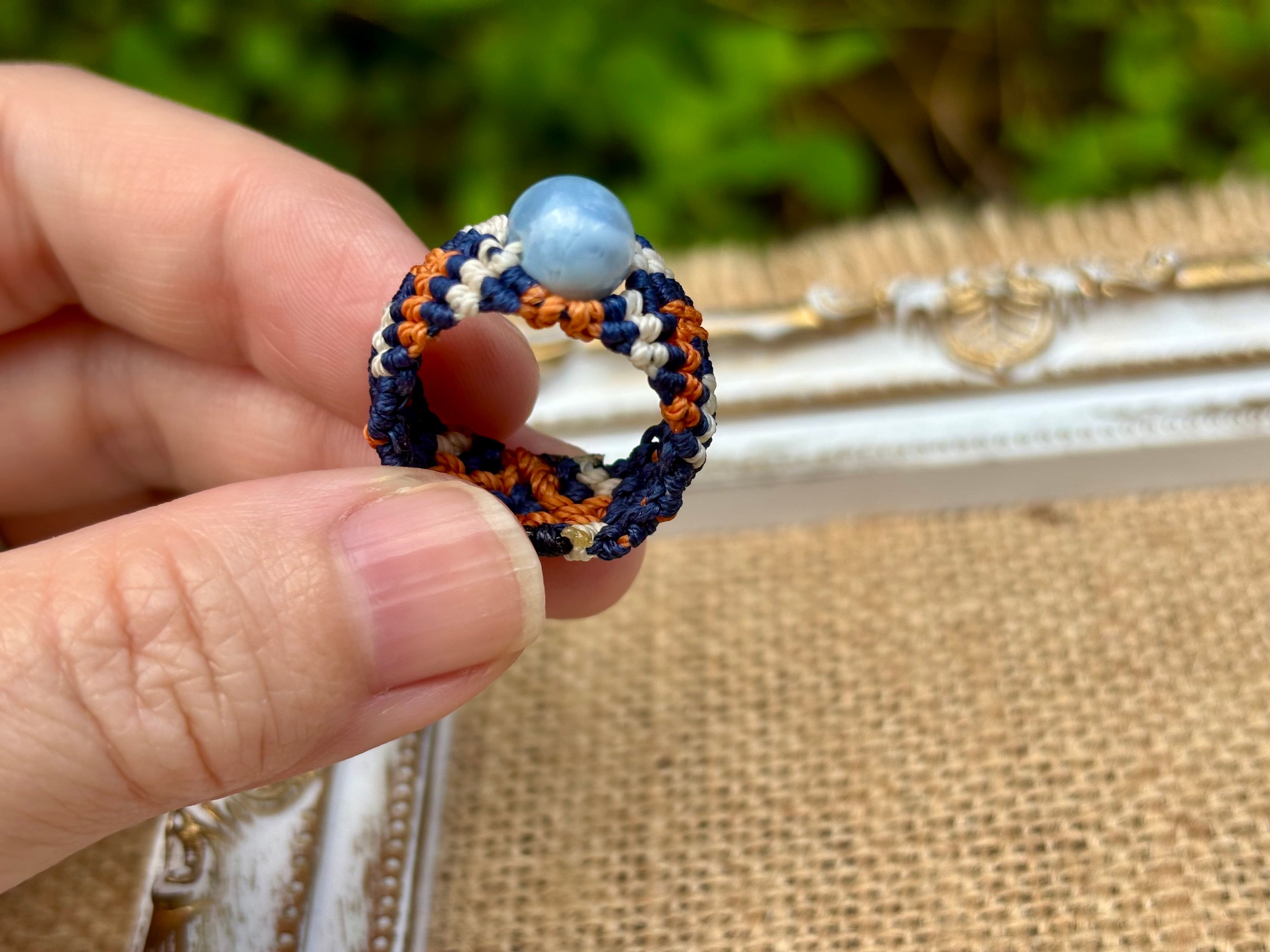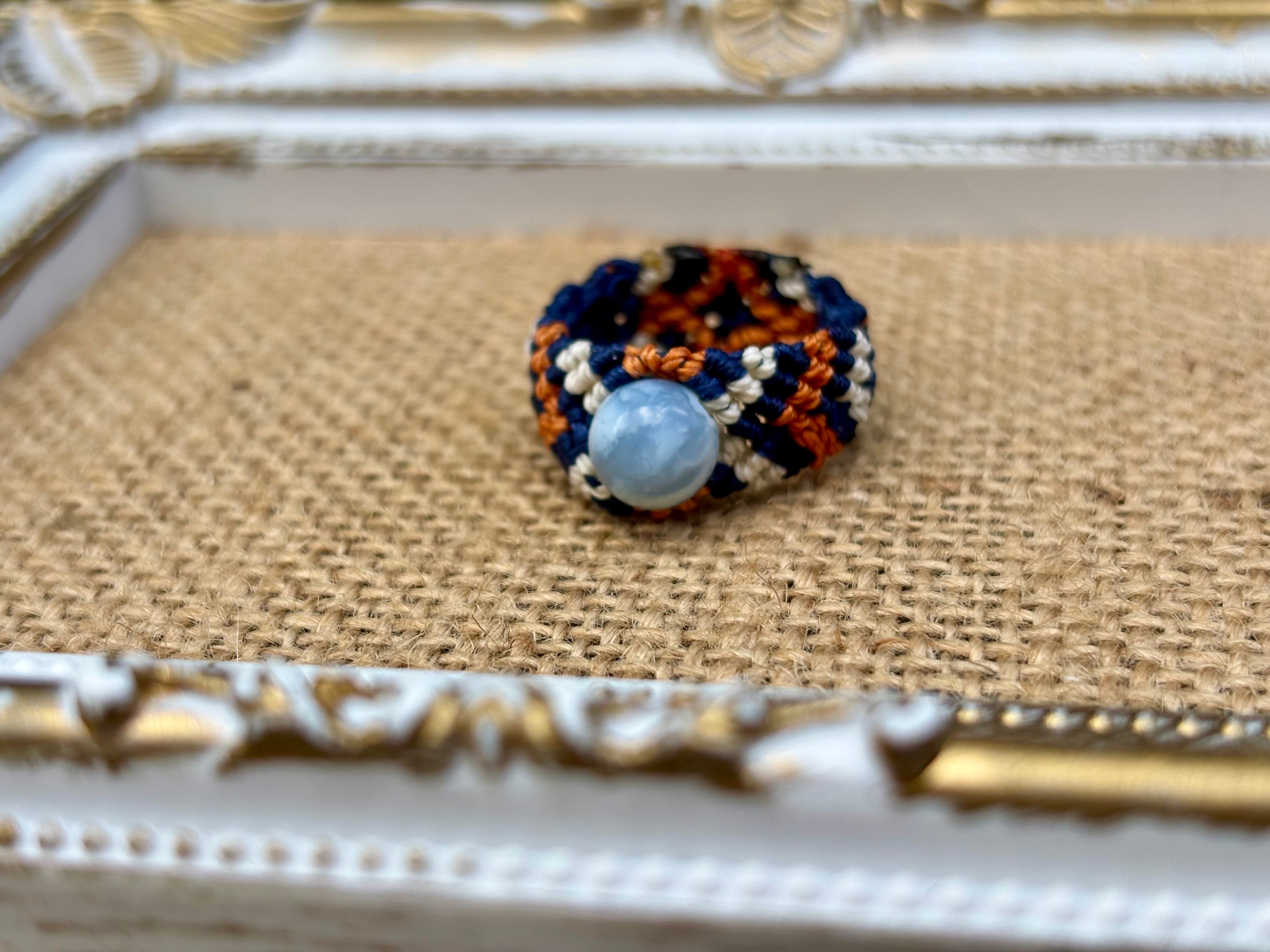 #823天然ブルーオパール(ブルーオパール マクラメ編みリング/指輪)