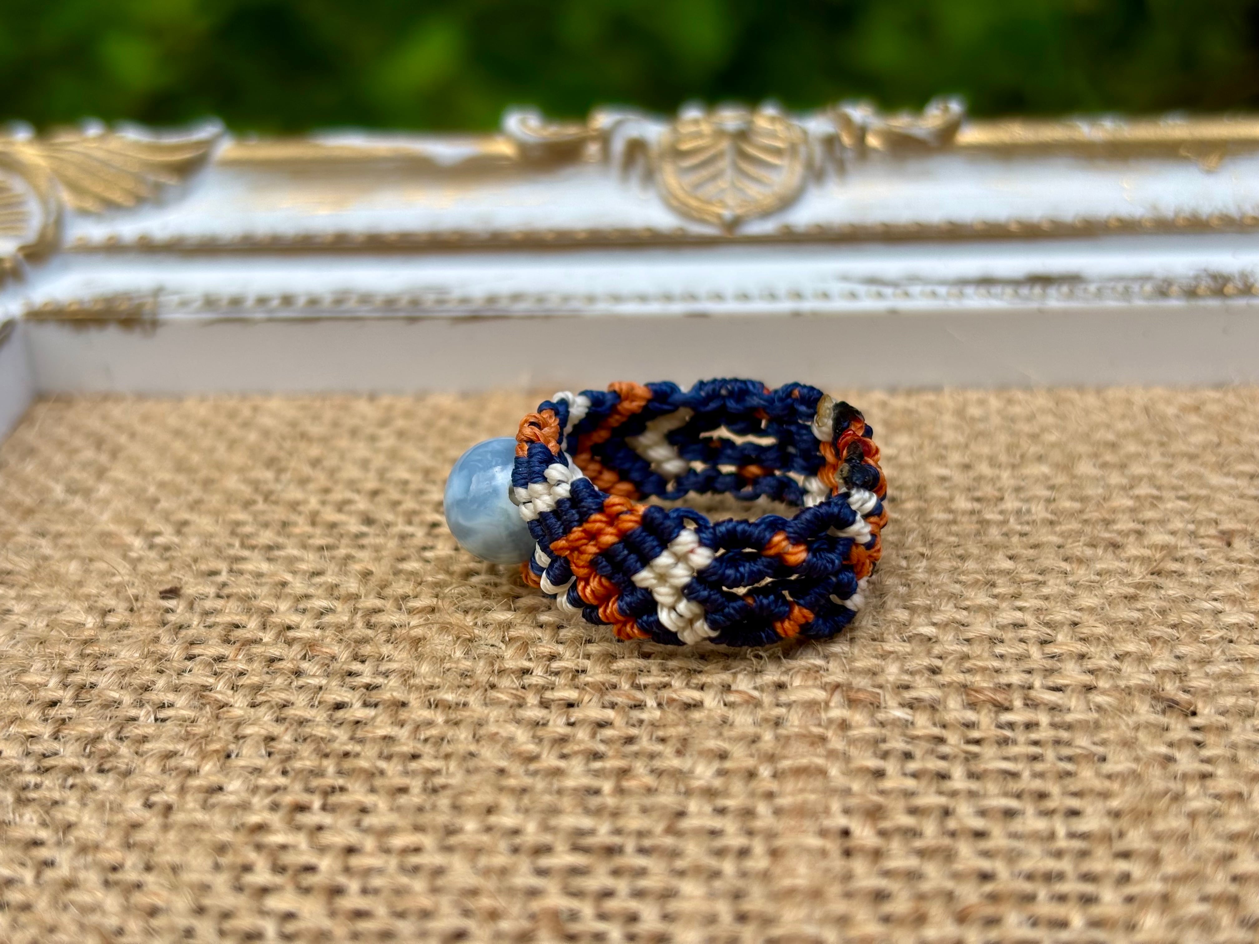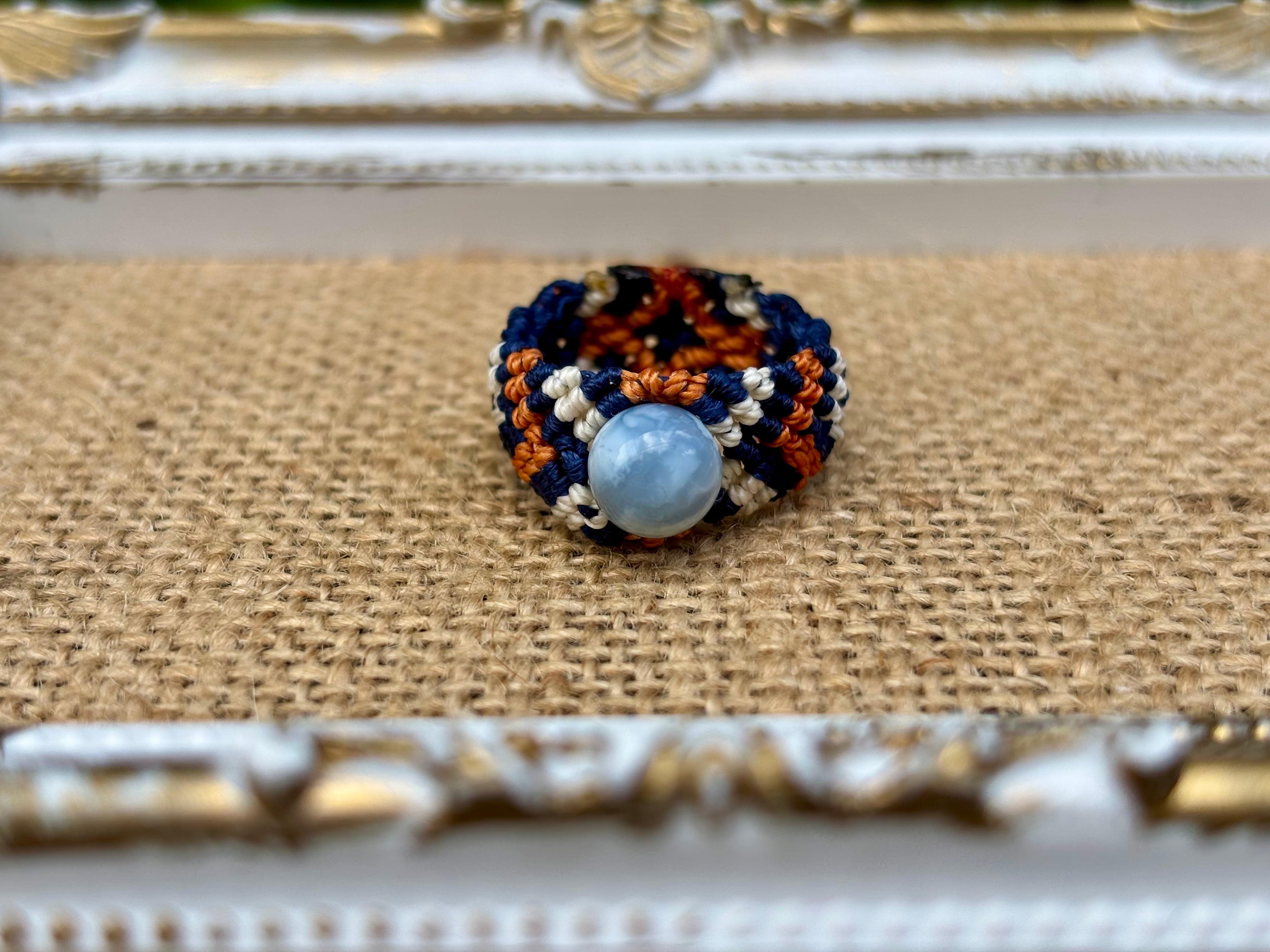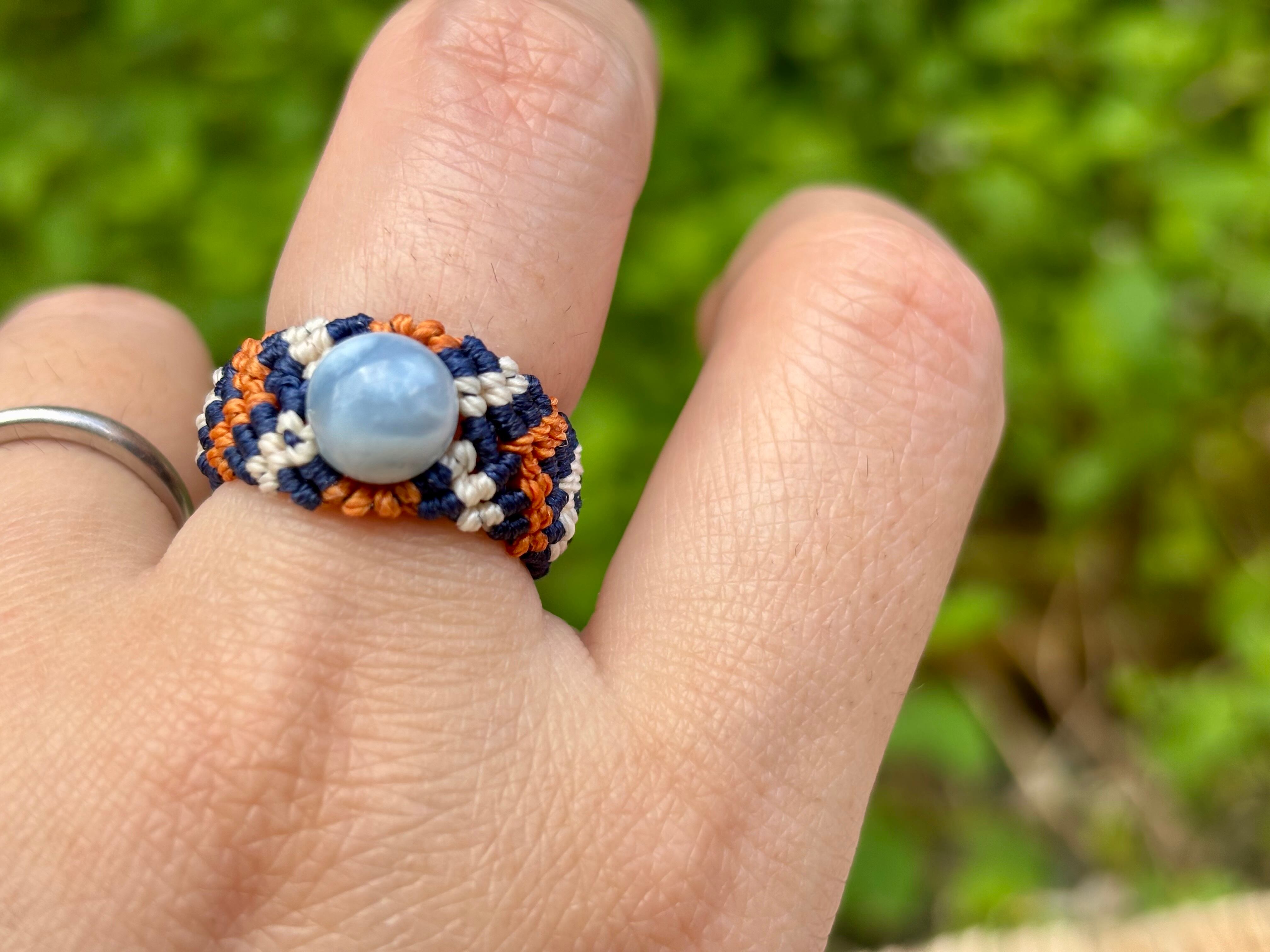 #823天然ブルーオパール(ブルーオパール マクラメ編みリング/指輪)