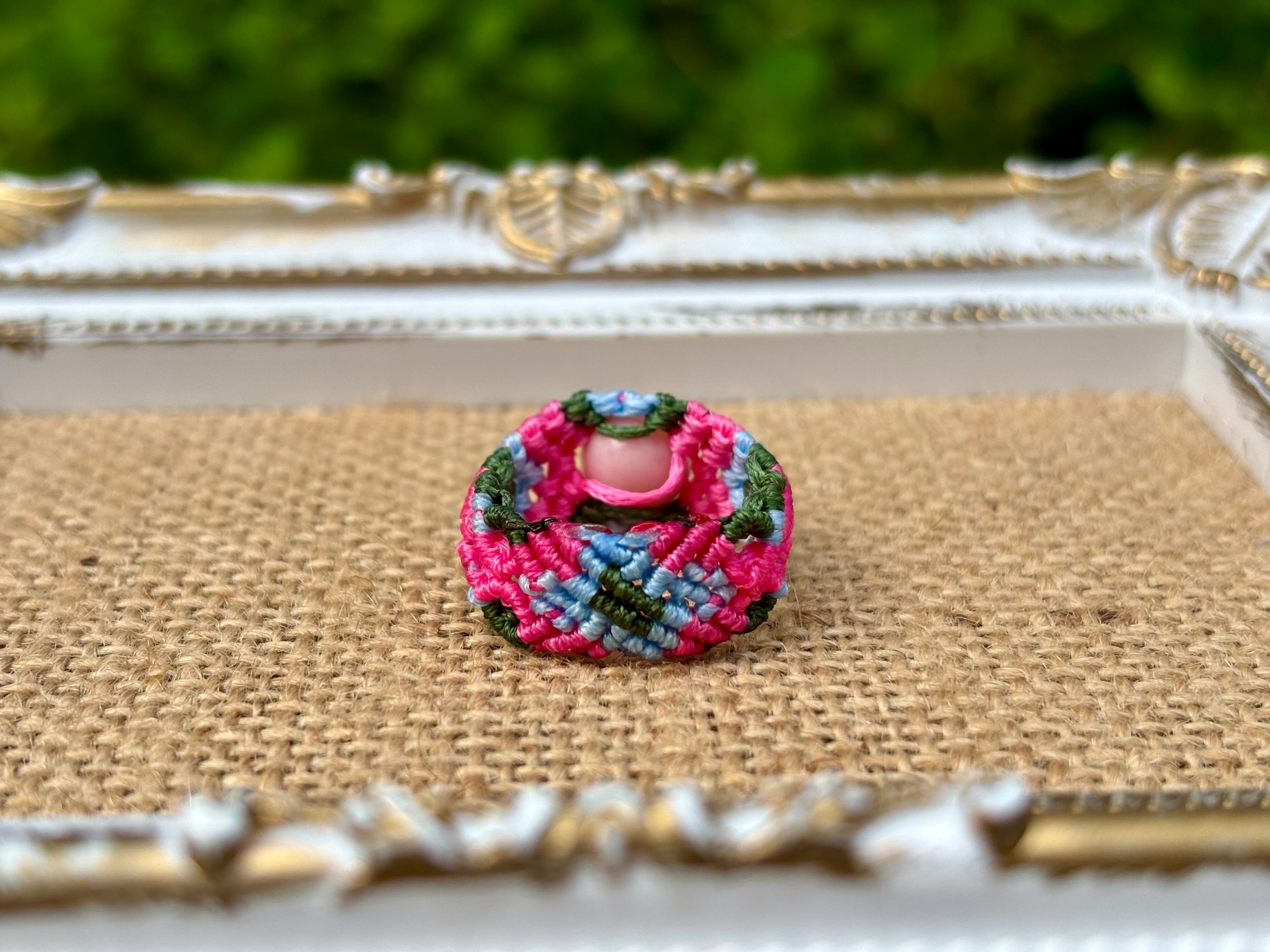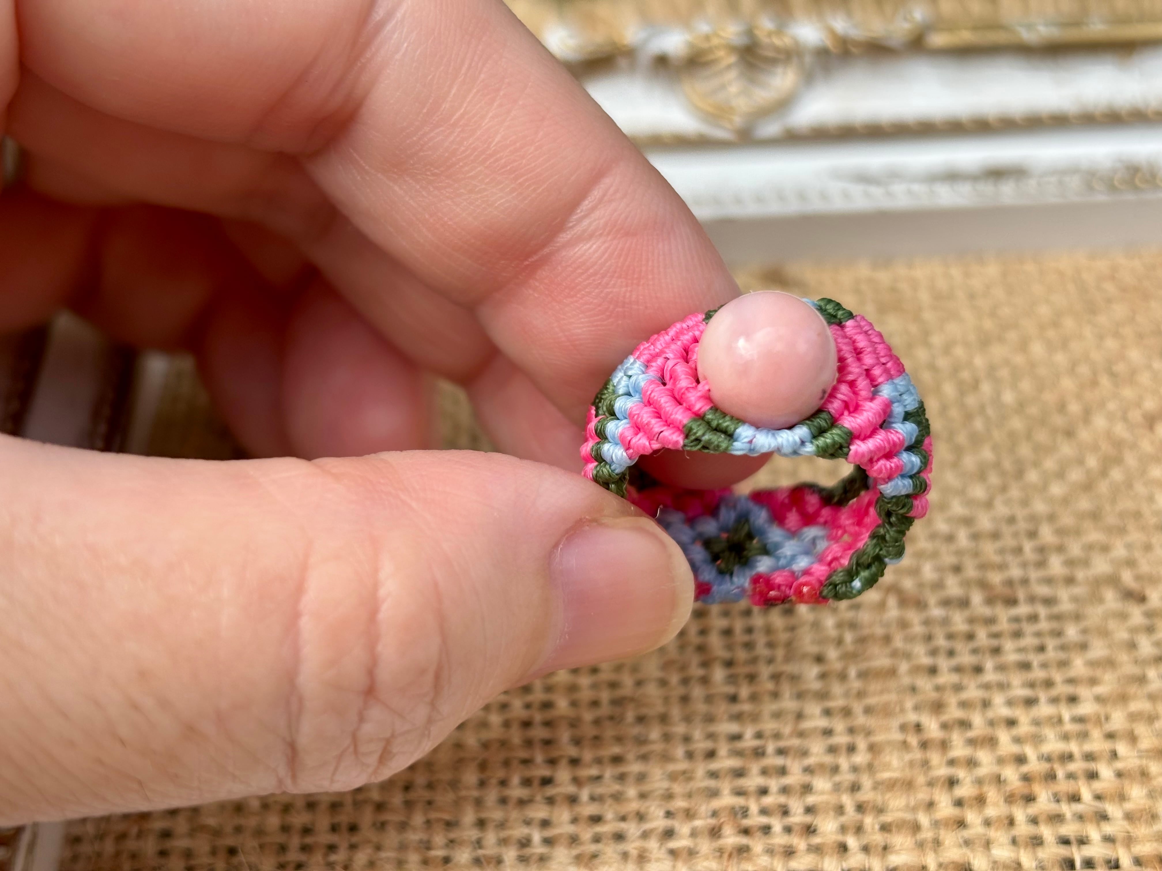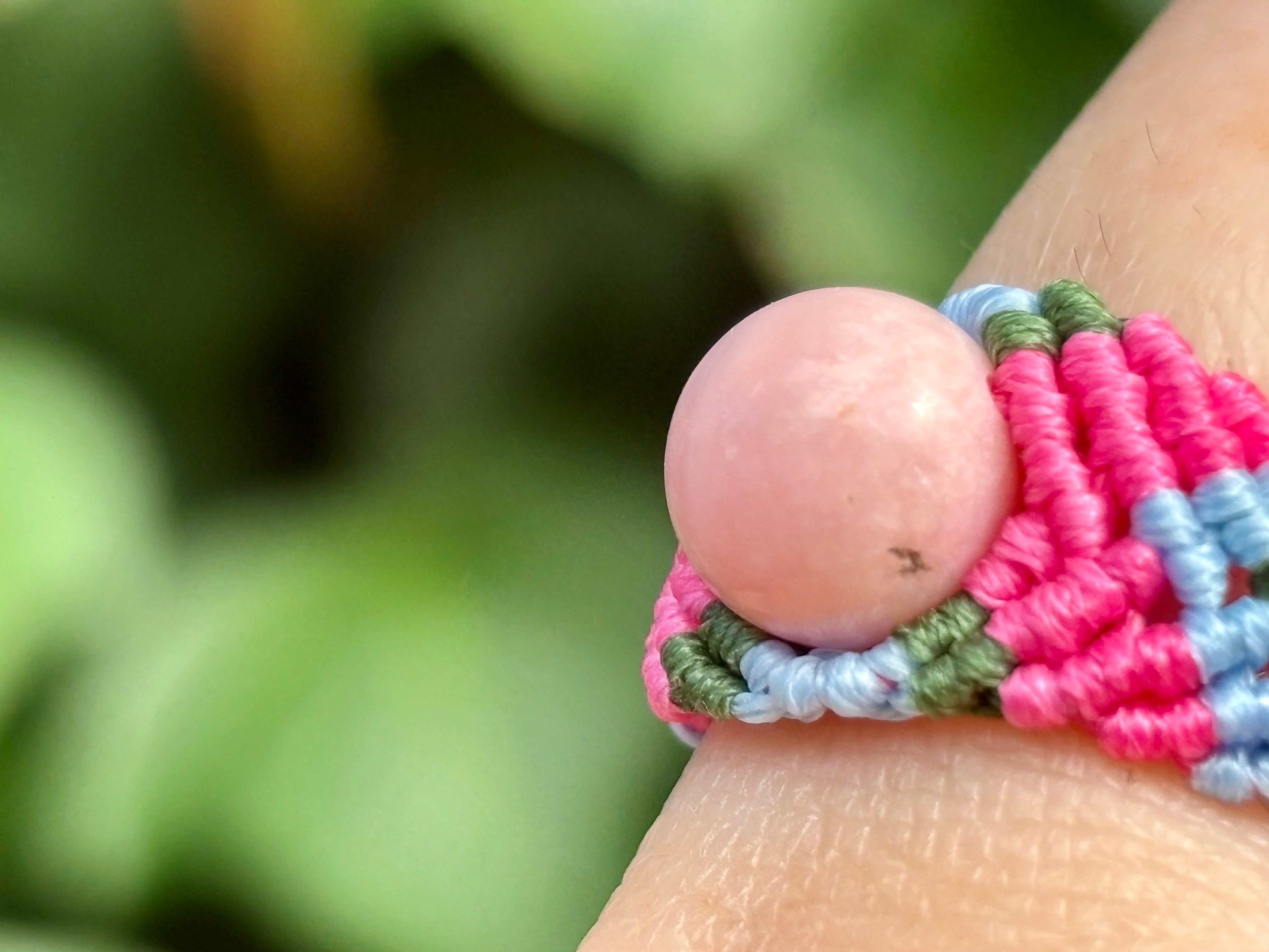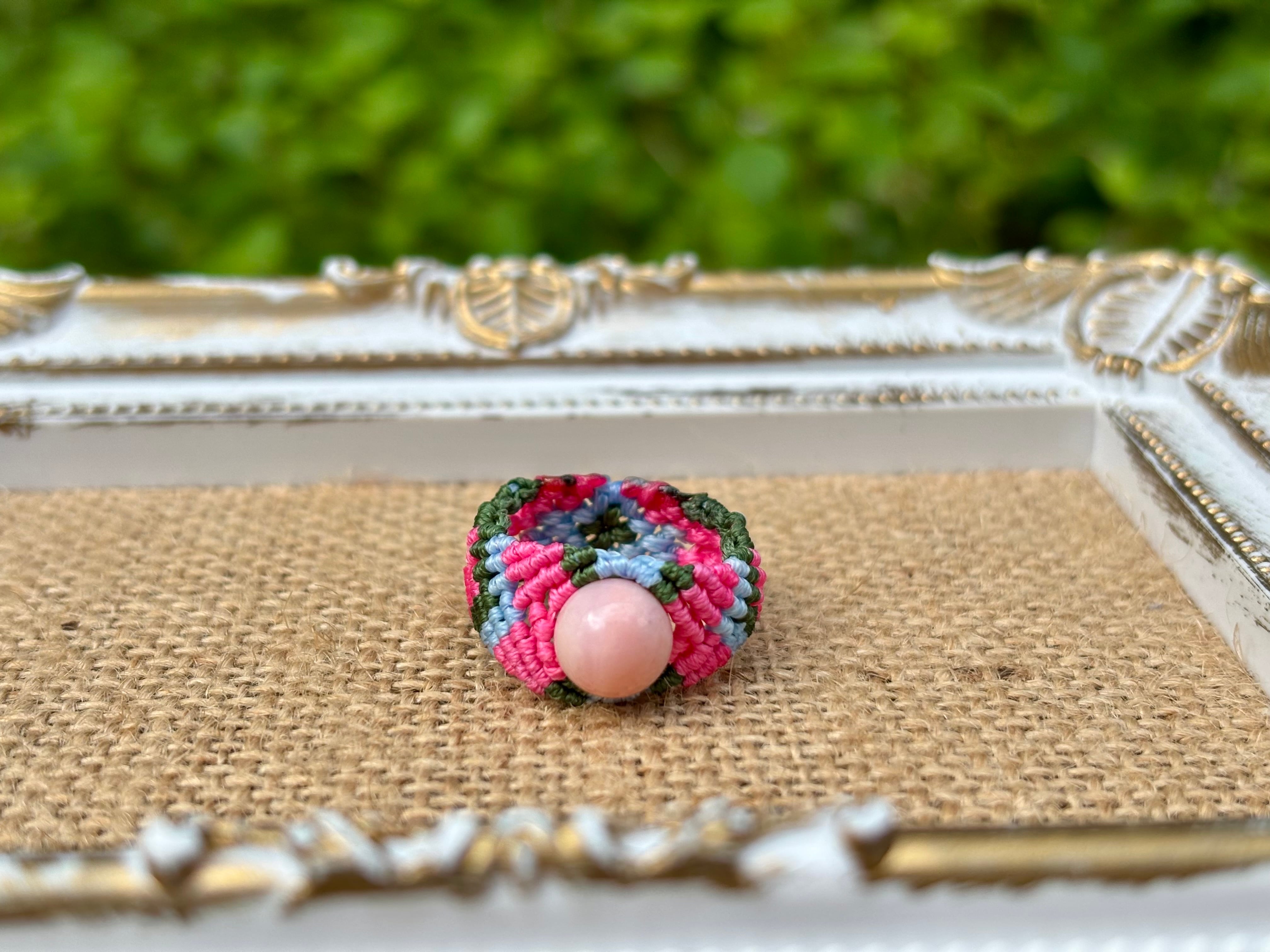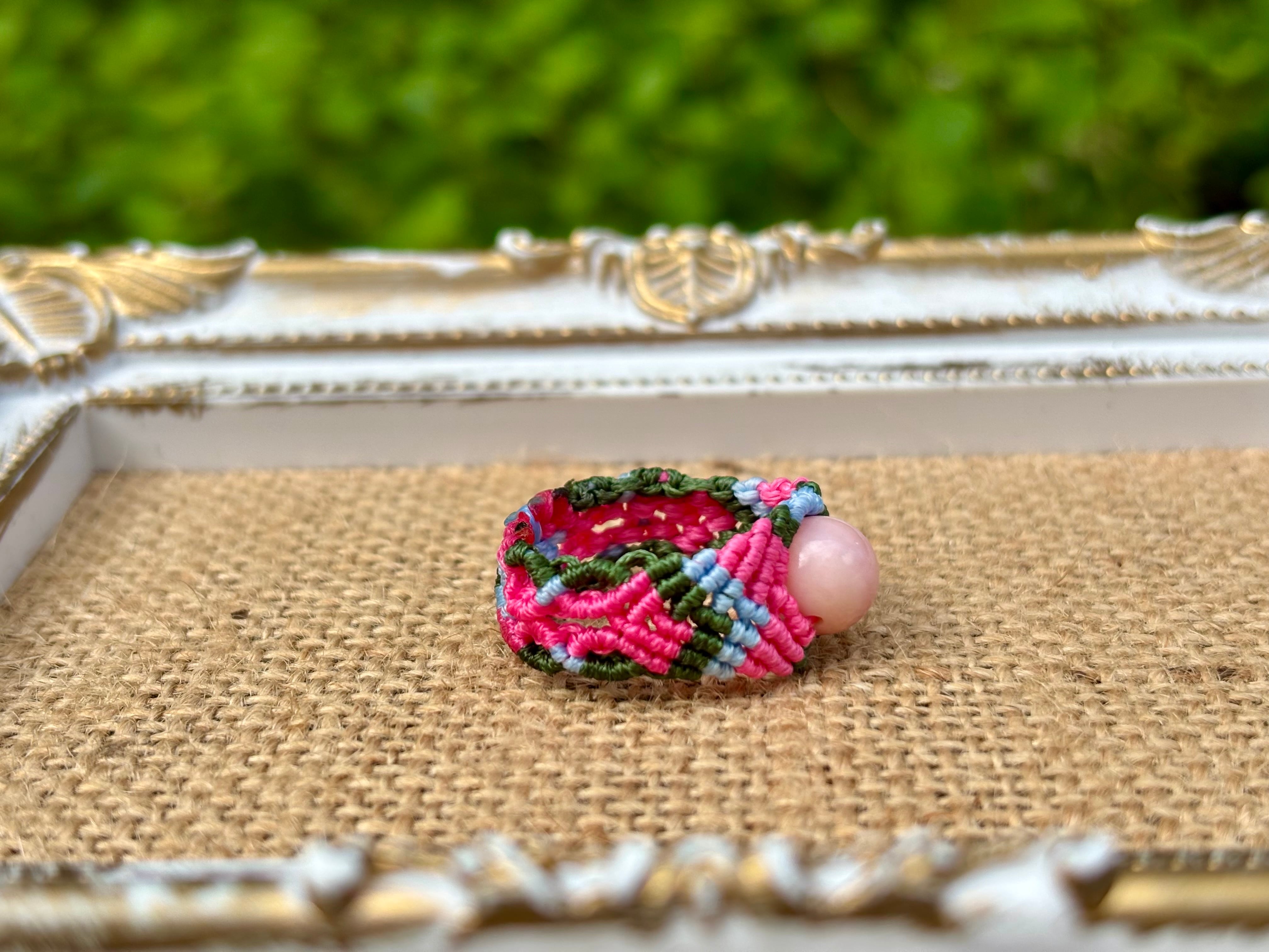 #825最高級ピンクオパール5A♡(ピンクオパール マクラメ編みリング/指輪)