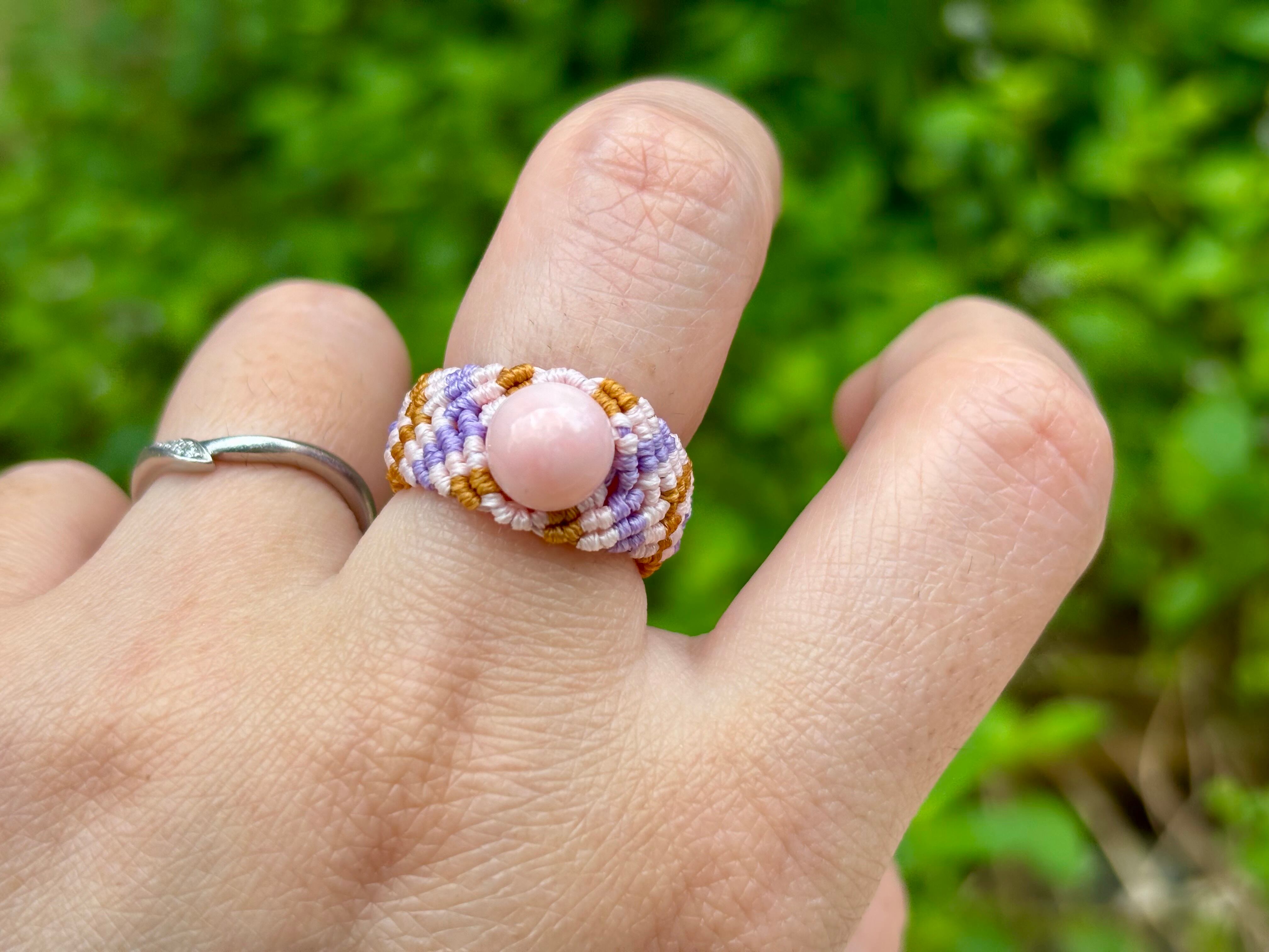 #826最高級ピンクオパール5A♡(ピンクオパール マクラメ編みリング/指輪)