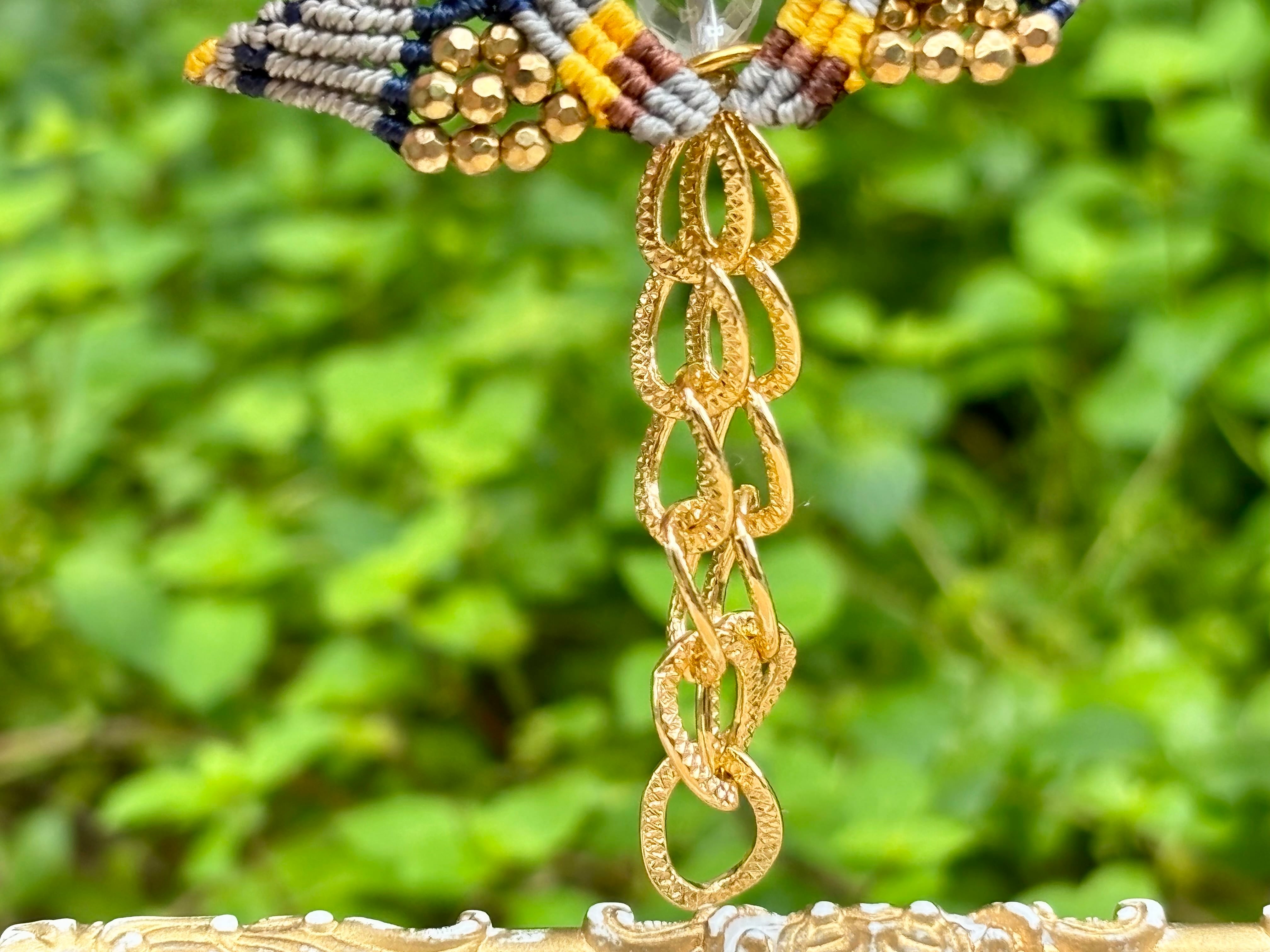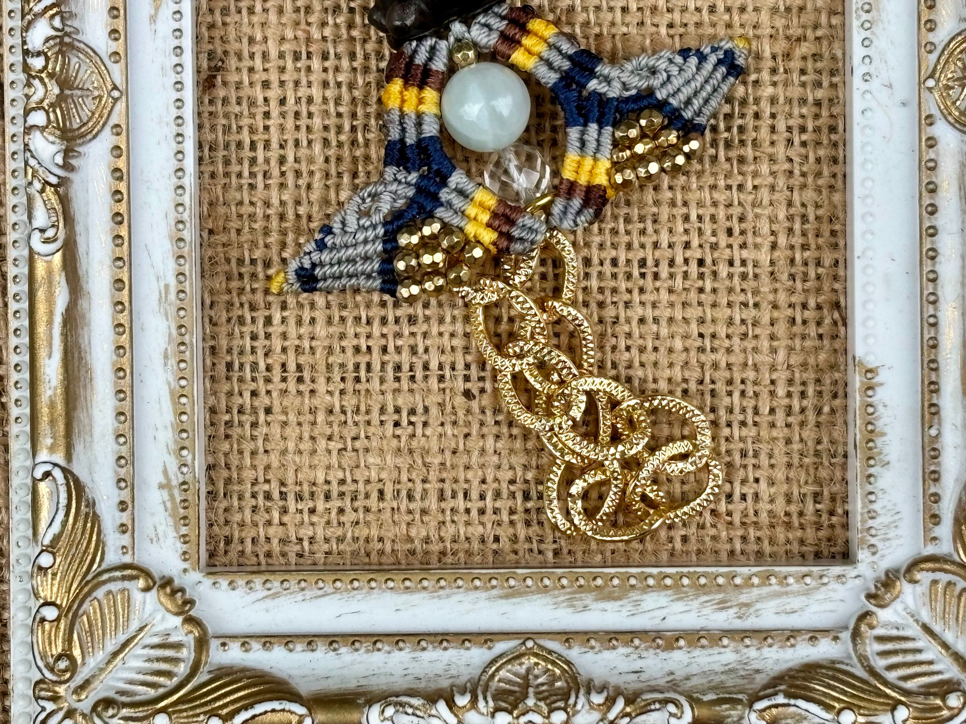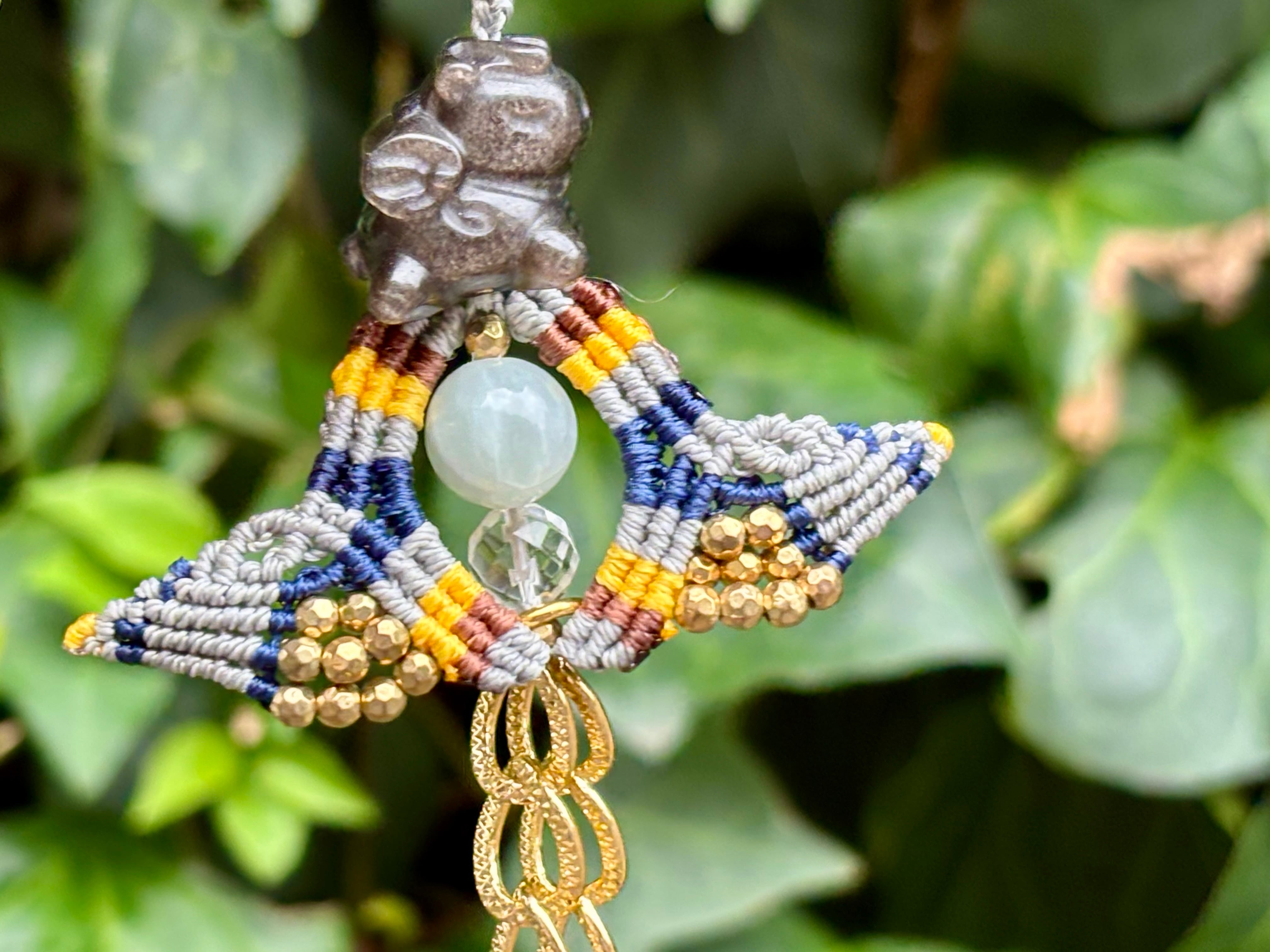 #828 干支『午』シルバーオブシディアン一点物(シルバーオブシディアン×翡翠×水晶 マクラメ編みチャーム/キーホルダー)