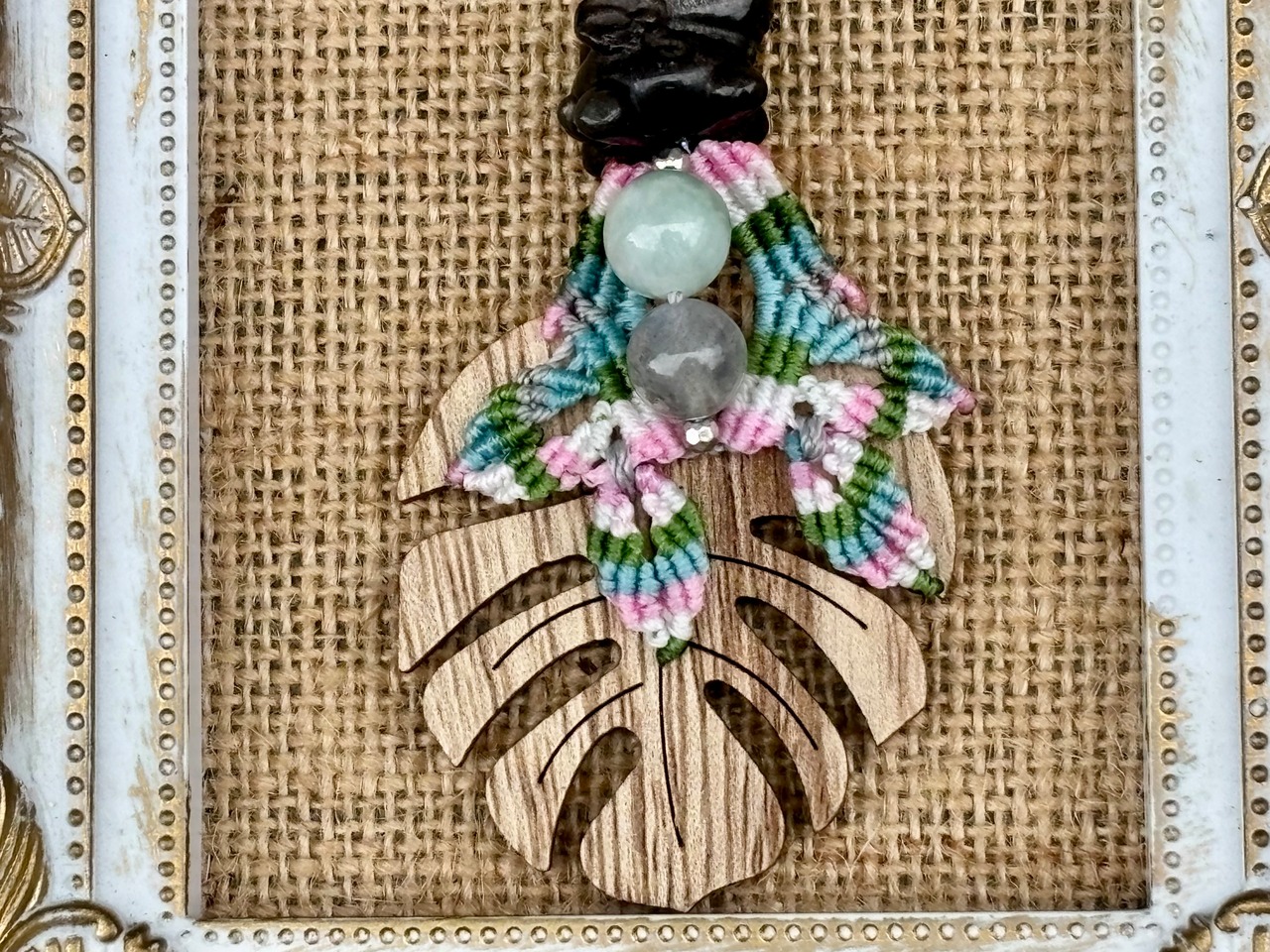 #829 干支『午』シルバーオブシディアン 一点物(シルバーオブシディアン×翡翠×ラブラドライト マクラメ編みチャーム/キーホルダー)