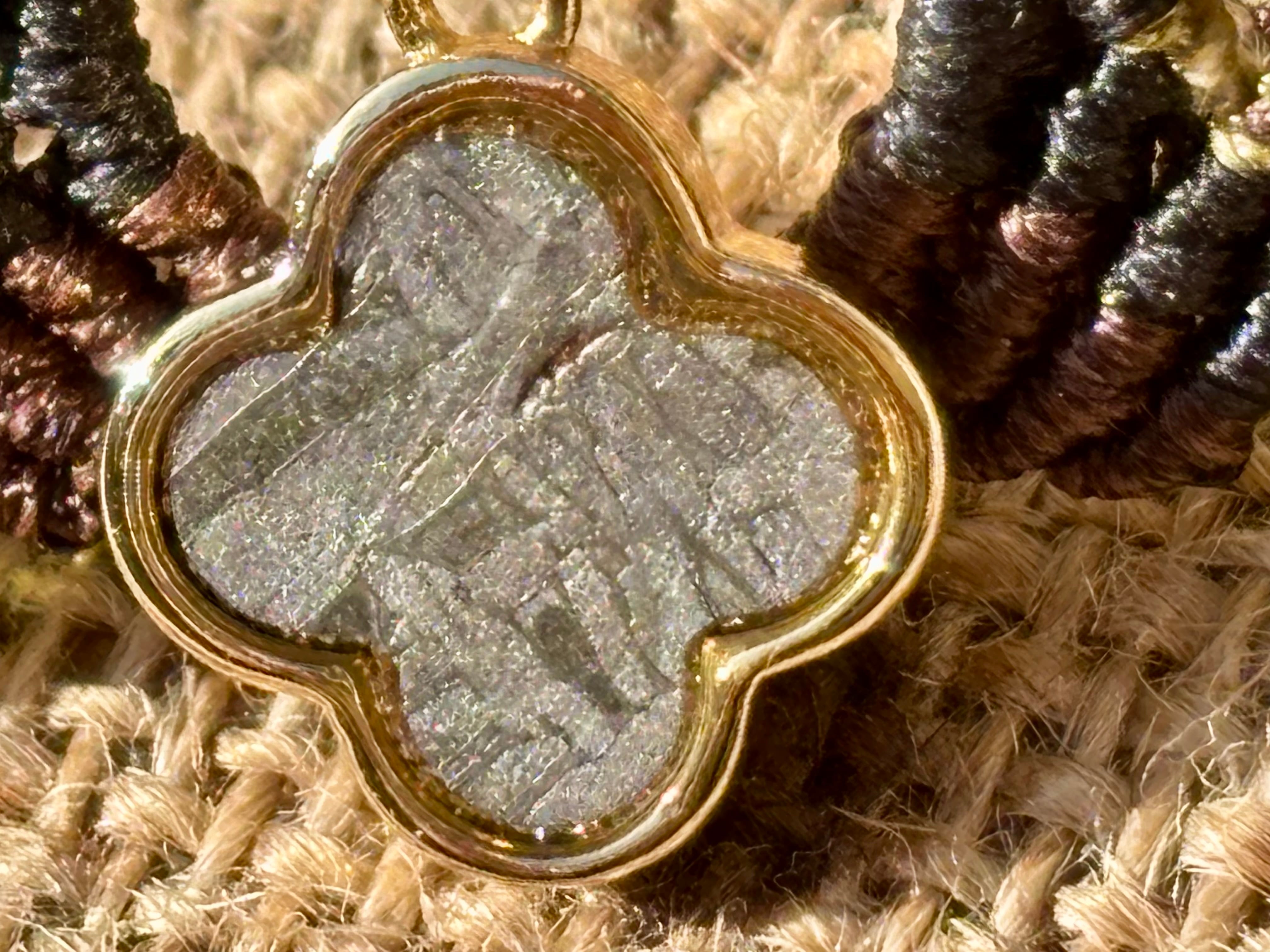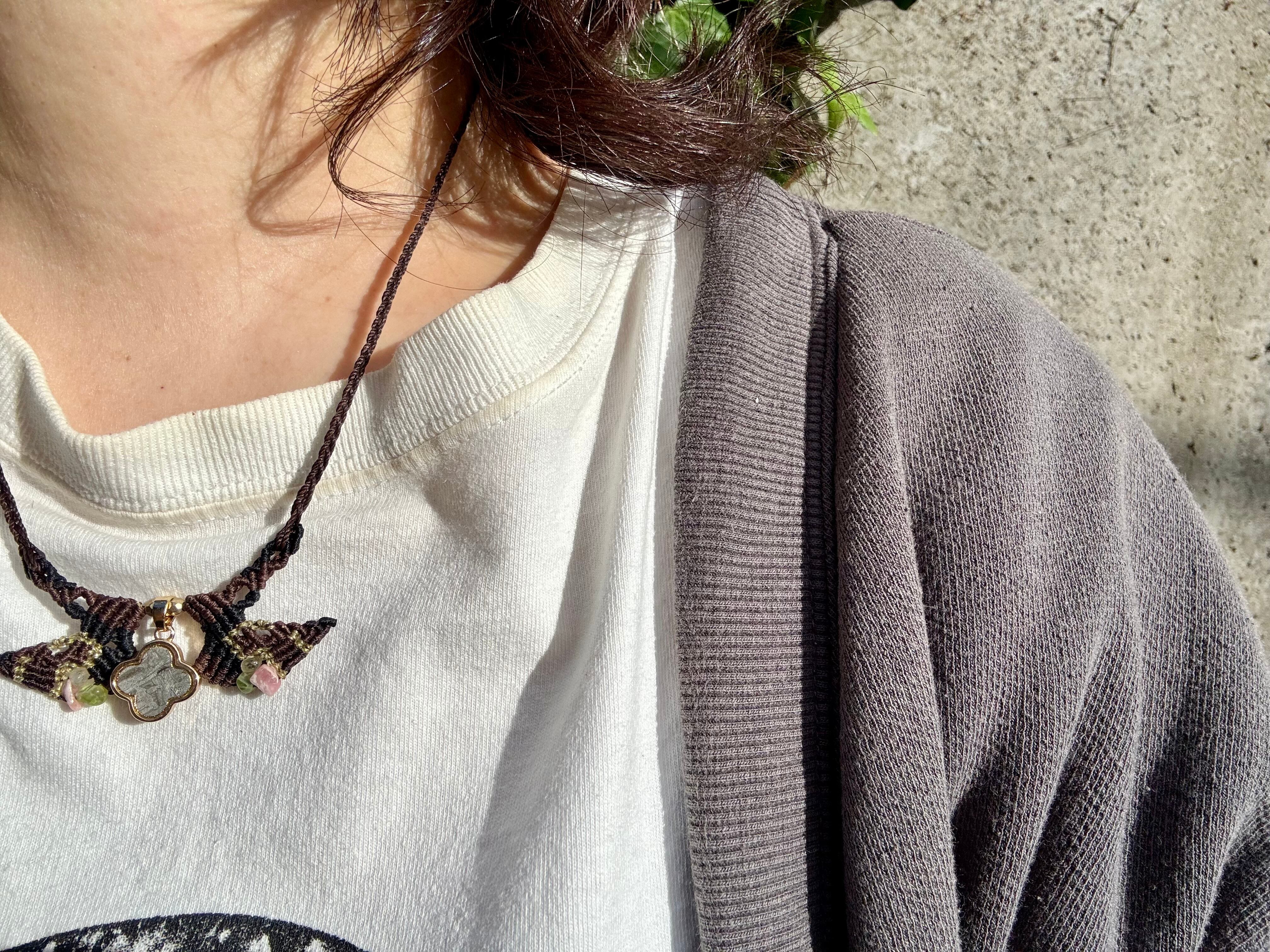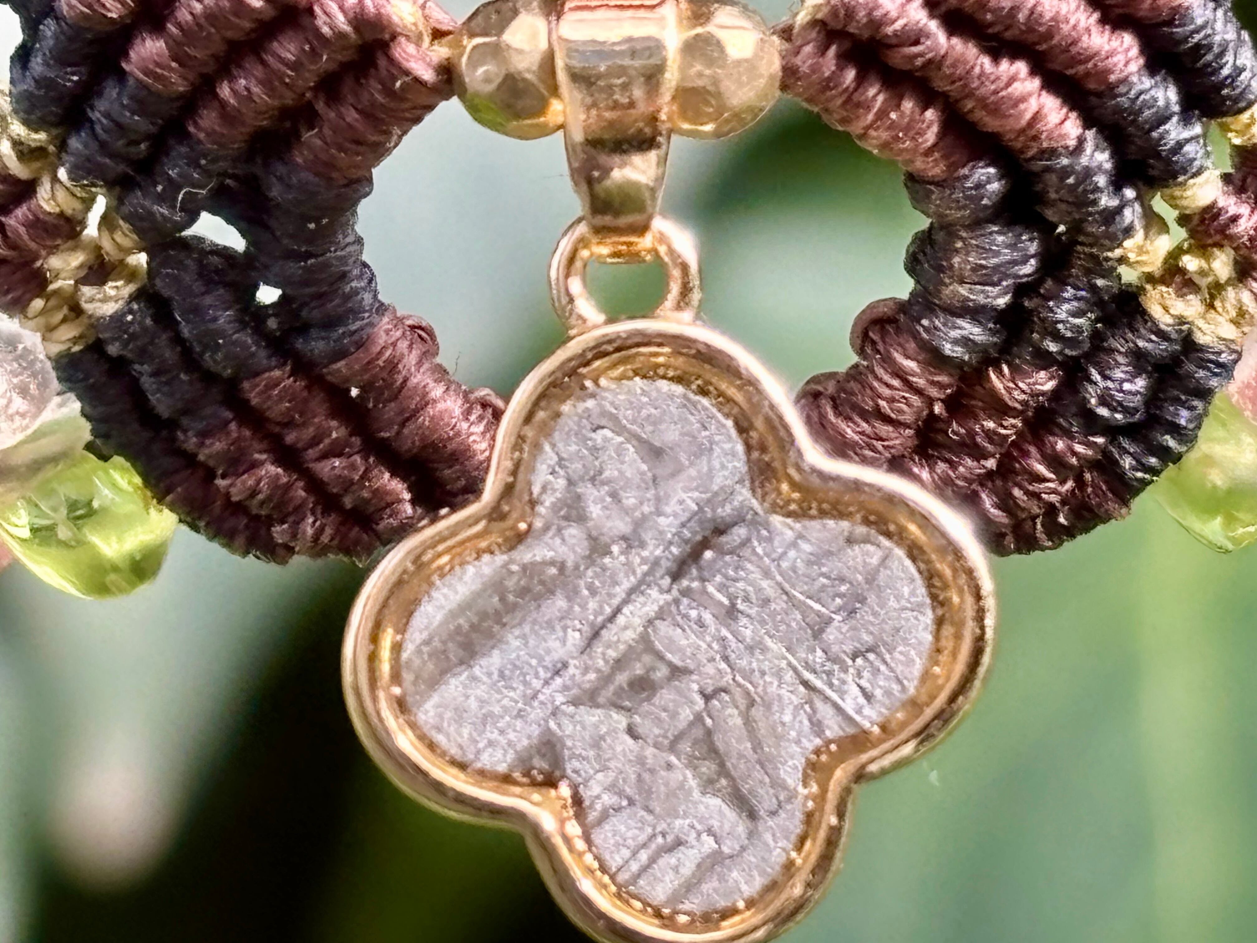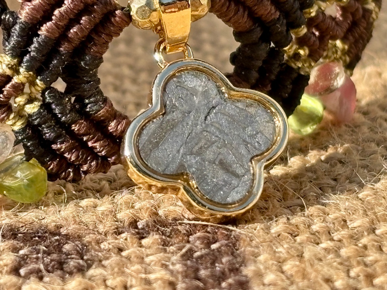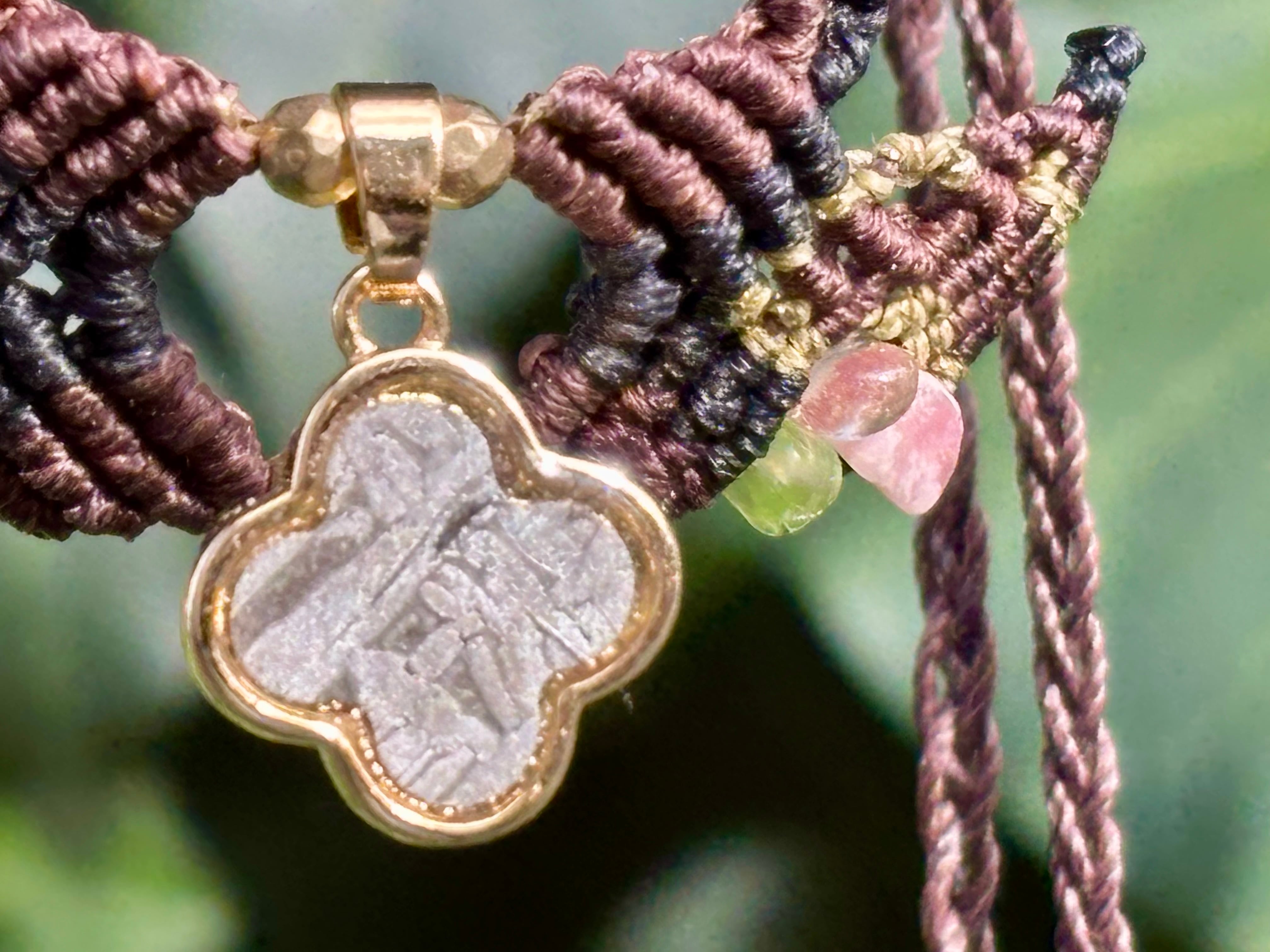 #843再販限定1点!!宇宙からの幸運♡アルタイ隕石(アルタイ隕石四葉型×インカローズ×ペリドット×シトリン×ヘマタイト マクラメ編みネックレス)