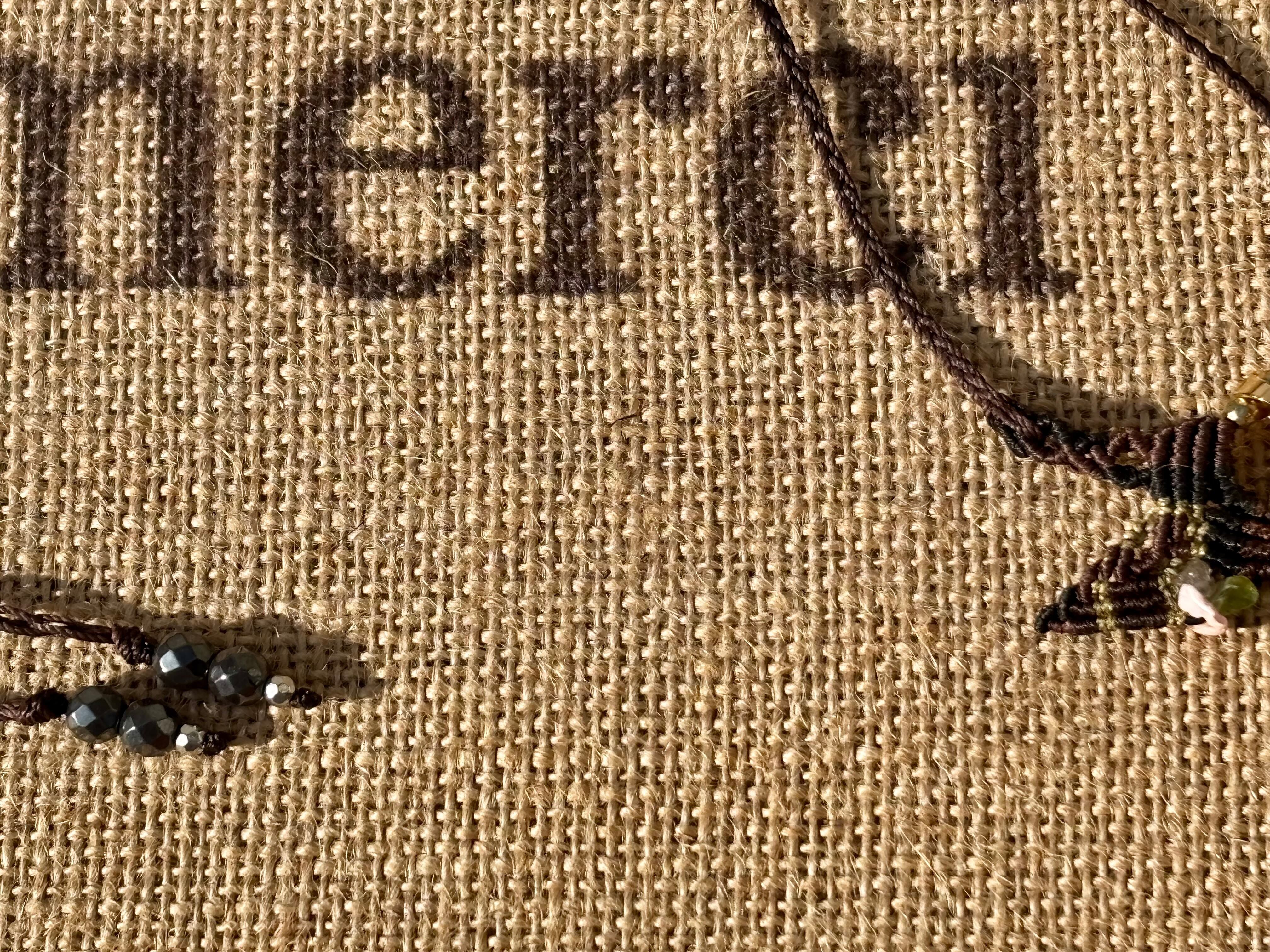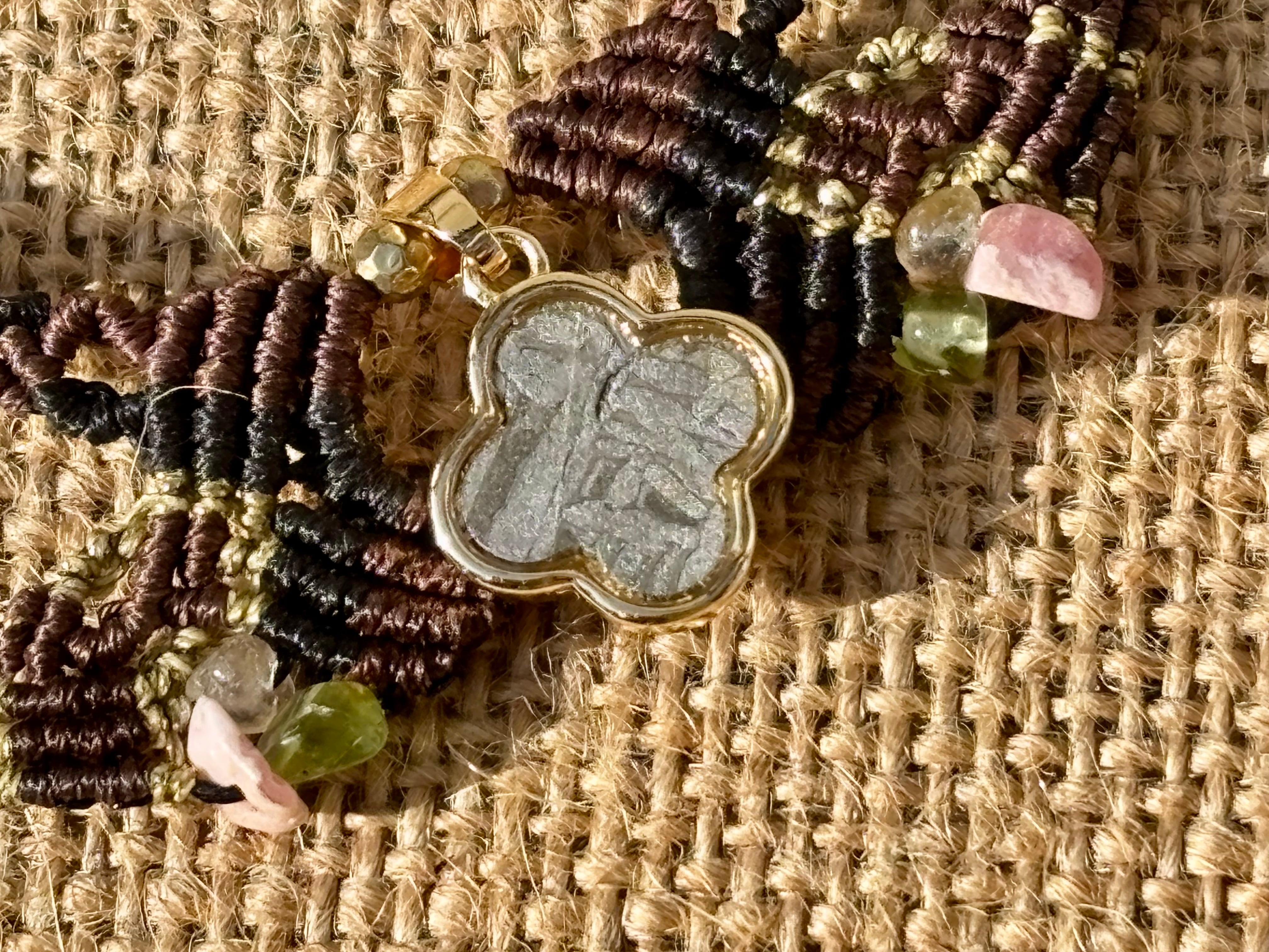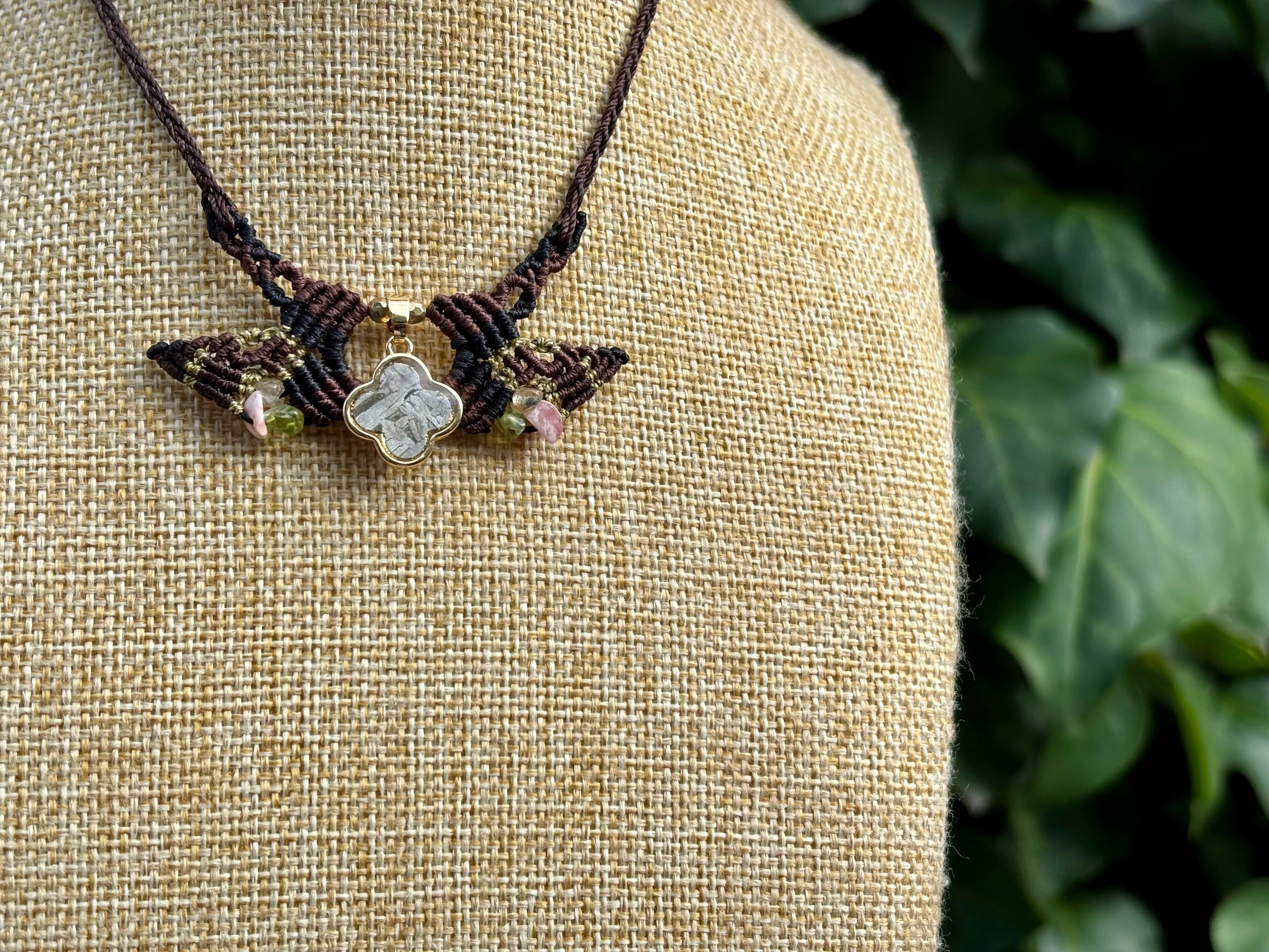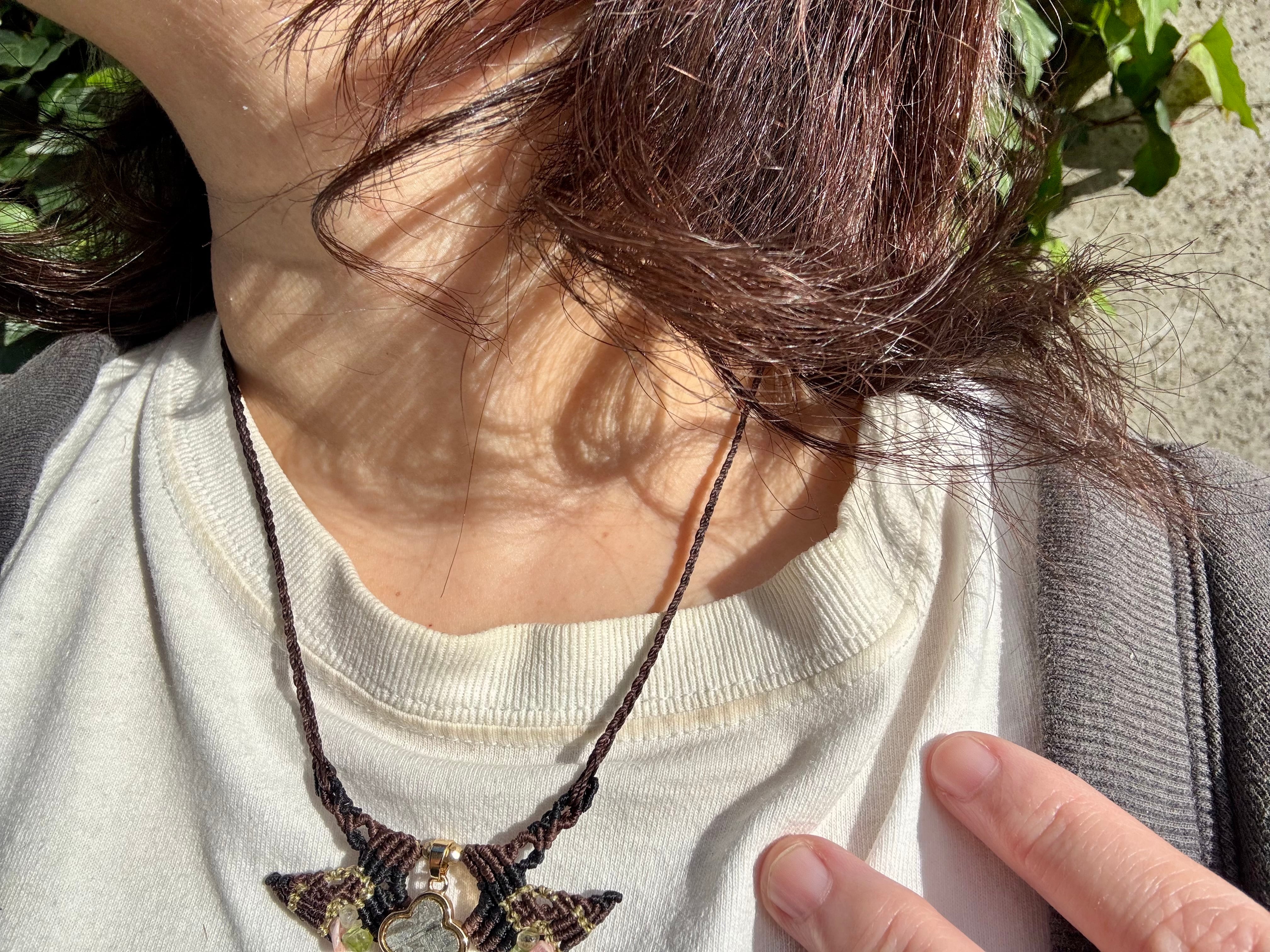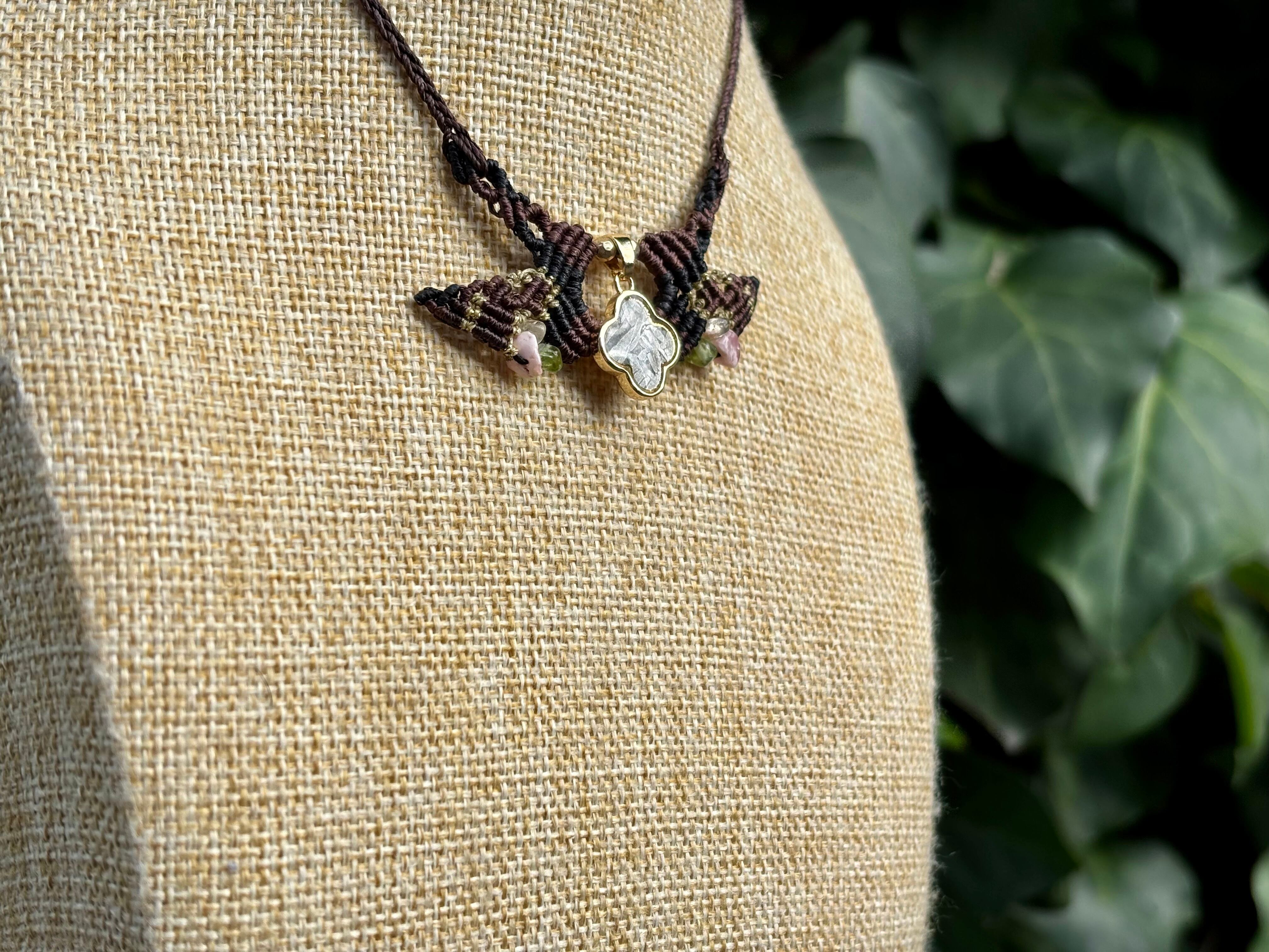 #843再販限定1点!!宇宙からの幸運♡アルタイ隕石(アルタイ隕石四葉型×インカローズ×ペリドット×シトリン×ヘマタイト マクラメ編みネックレス)