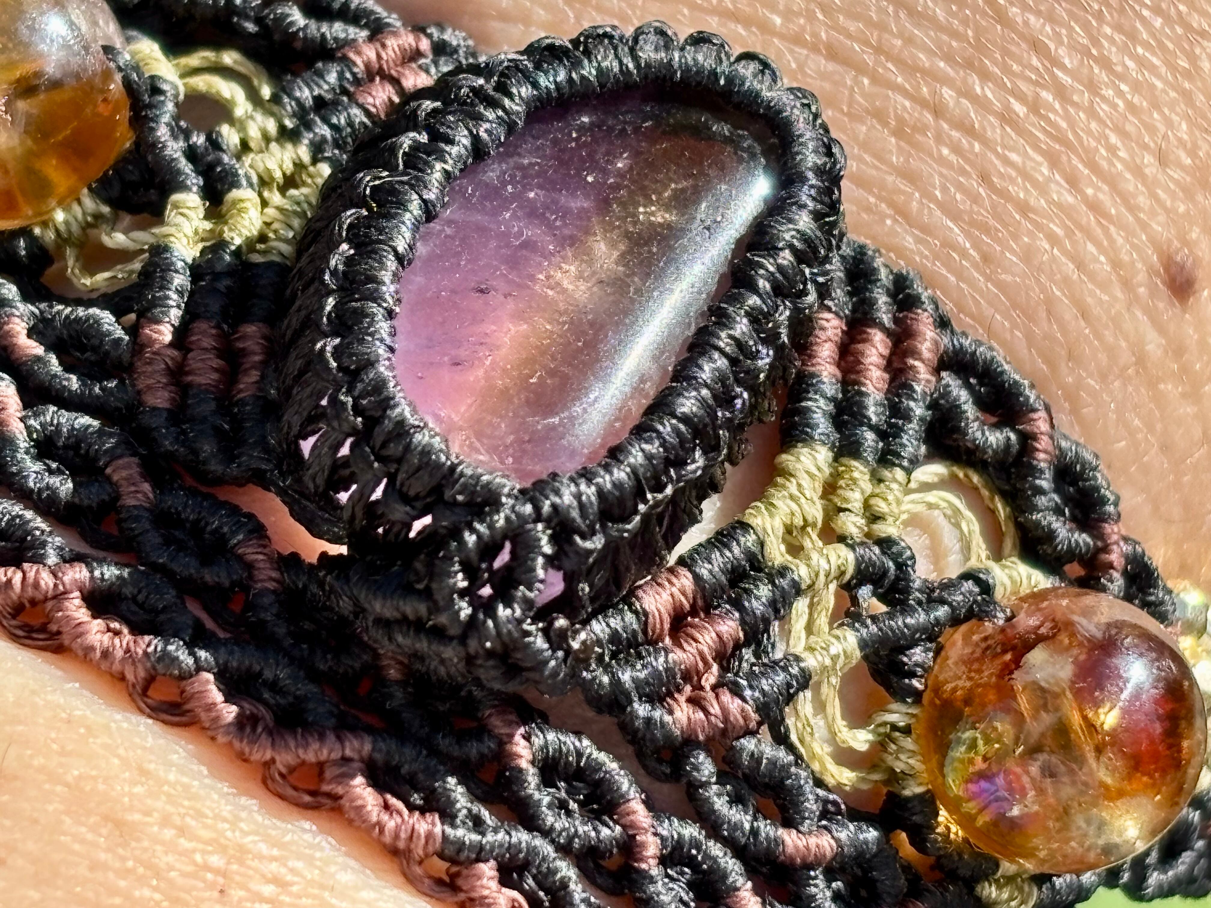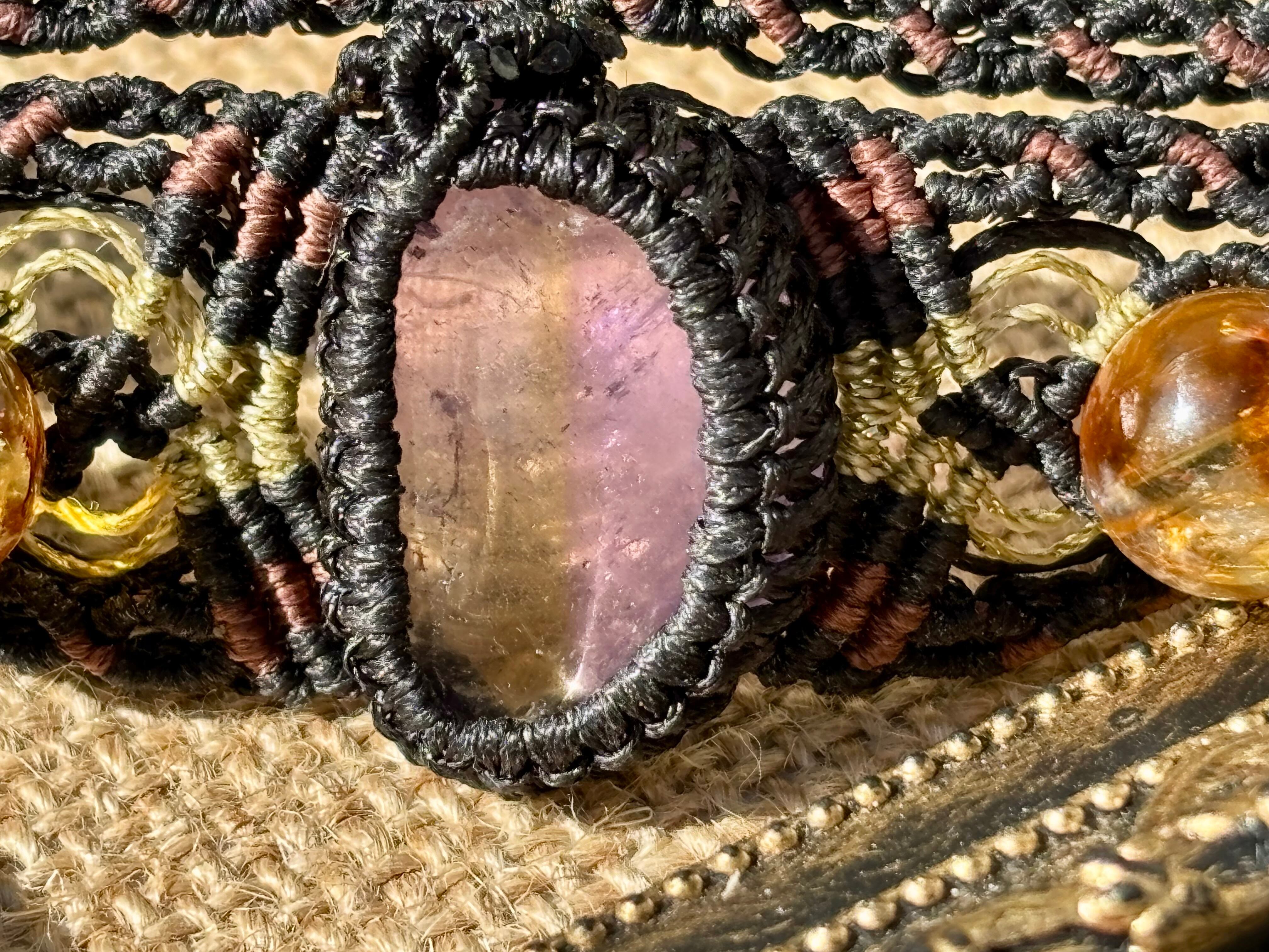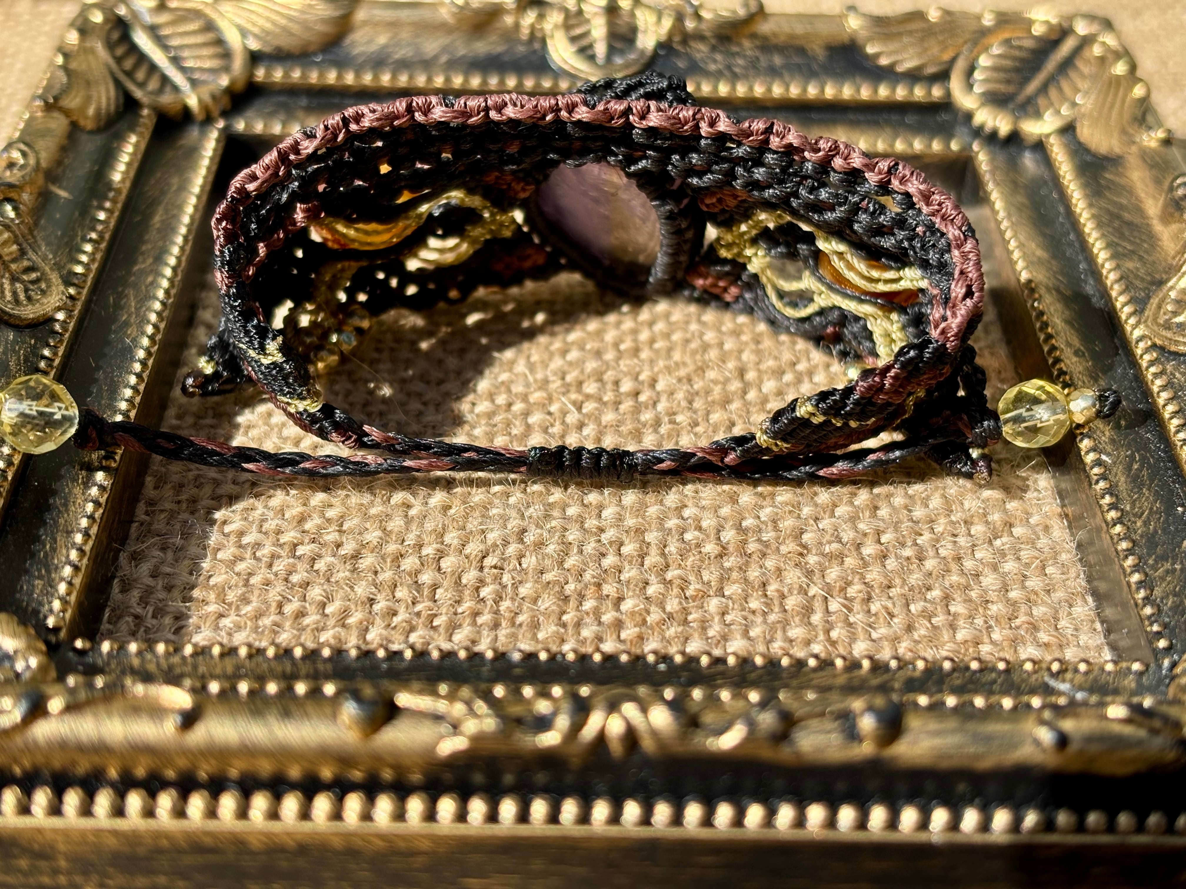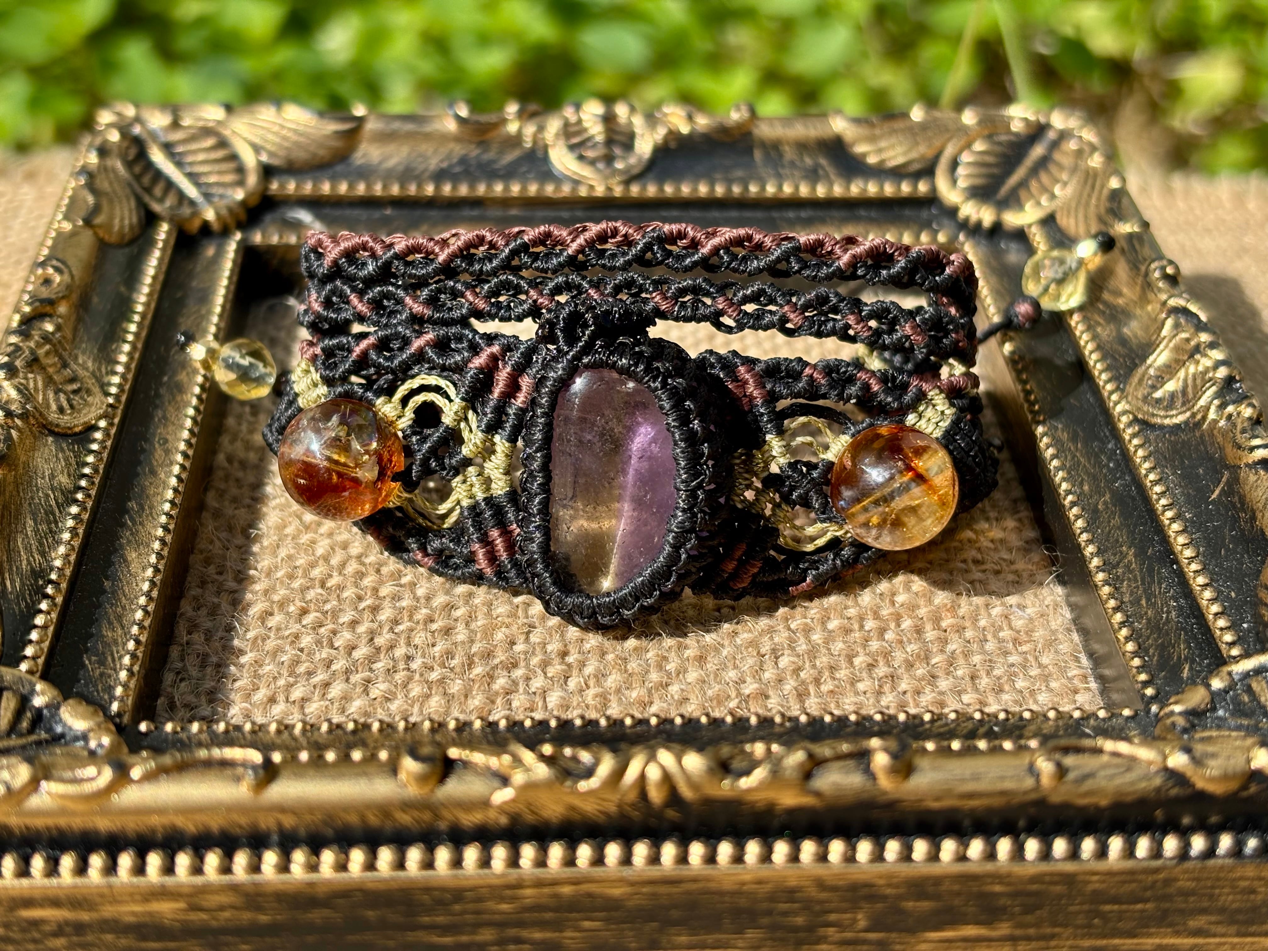 #853希少!アメトリン一点物(アメトリン×ライモナイトインシトリン×シトリン マクラメ編みブレスレット)
