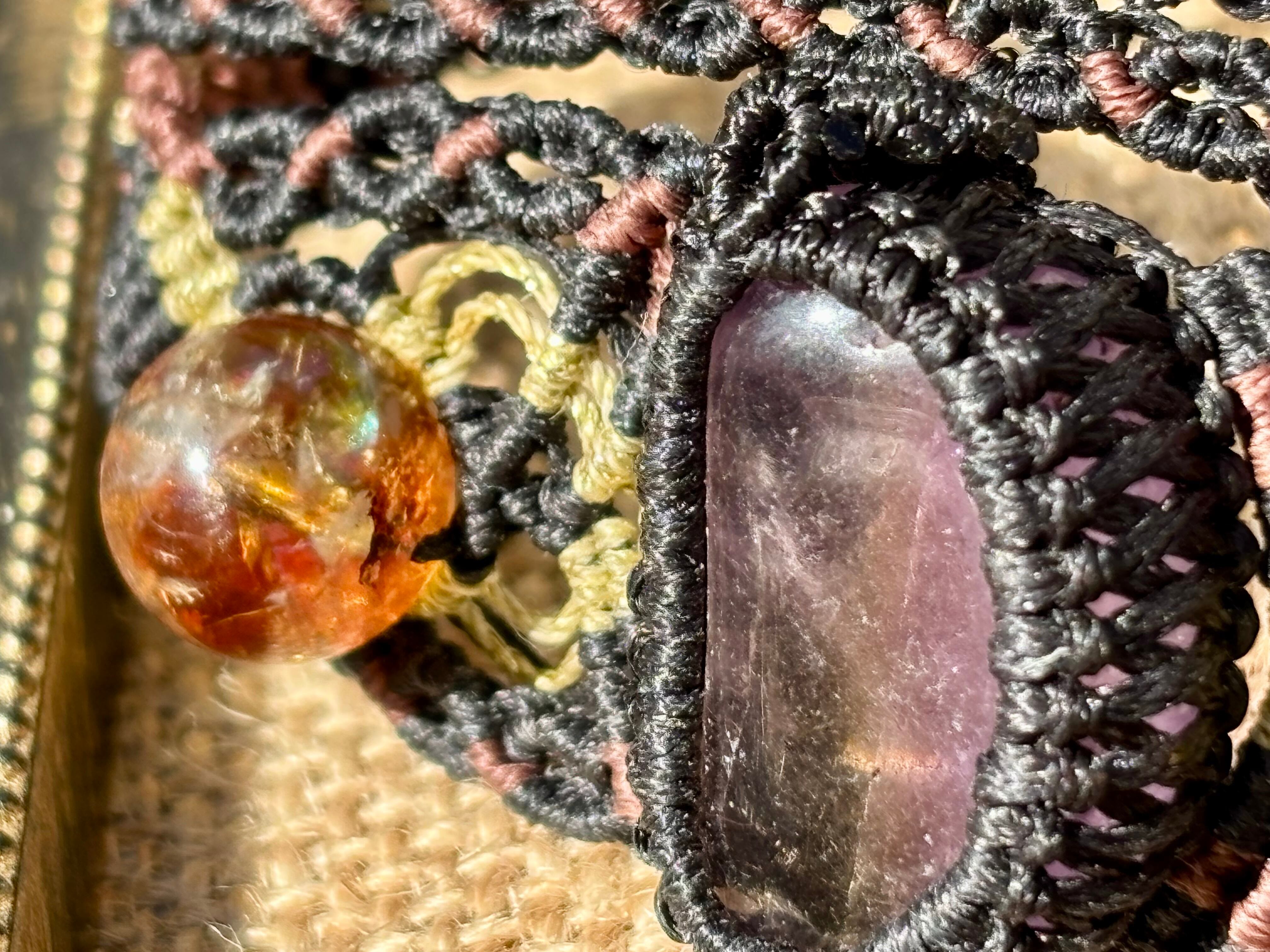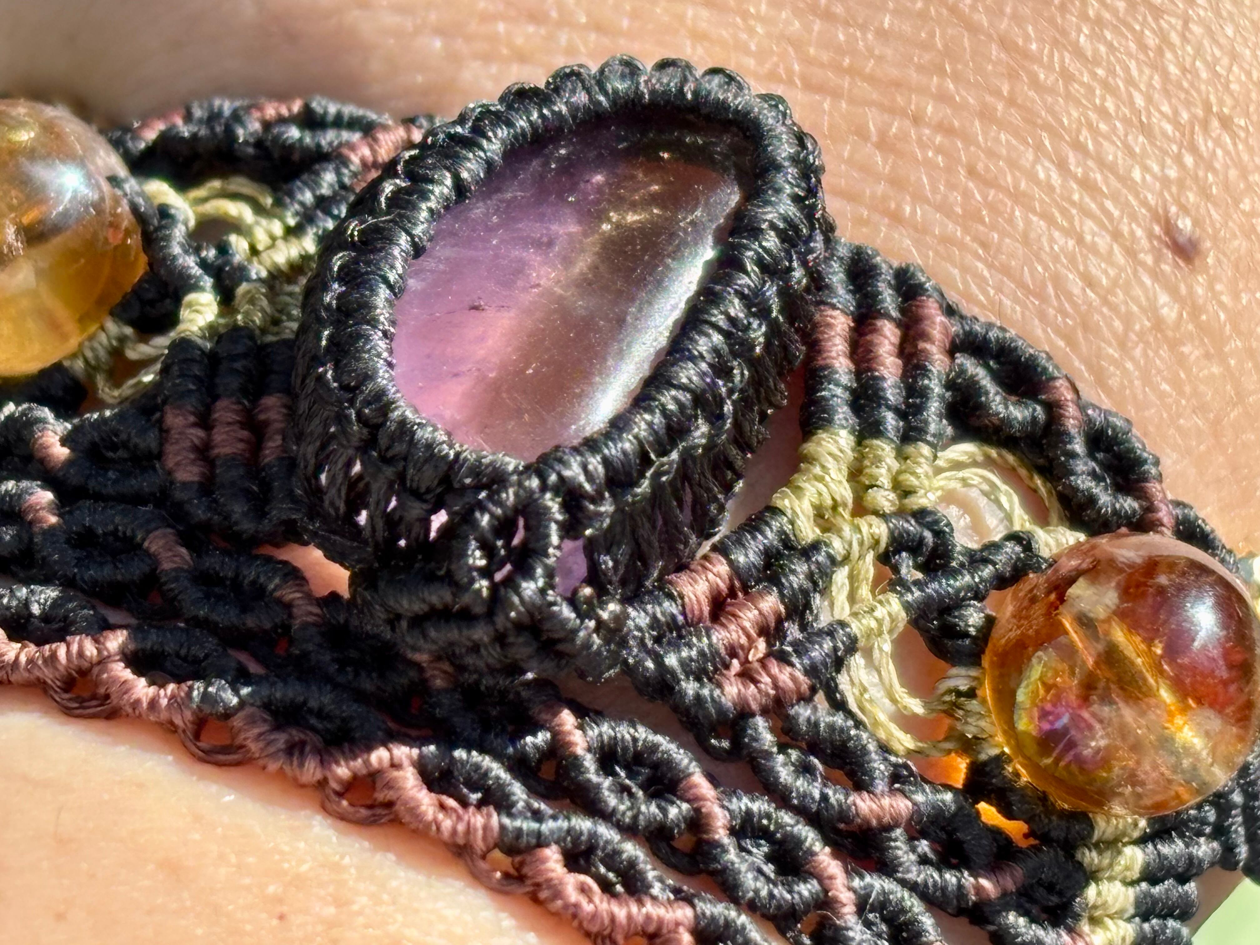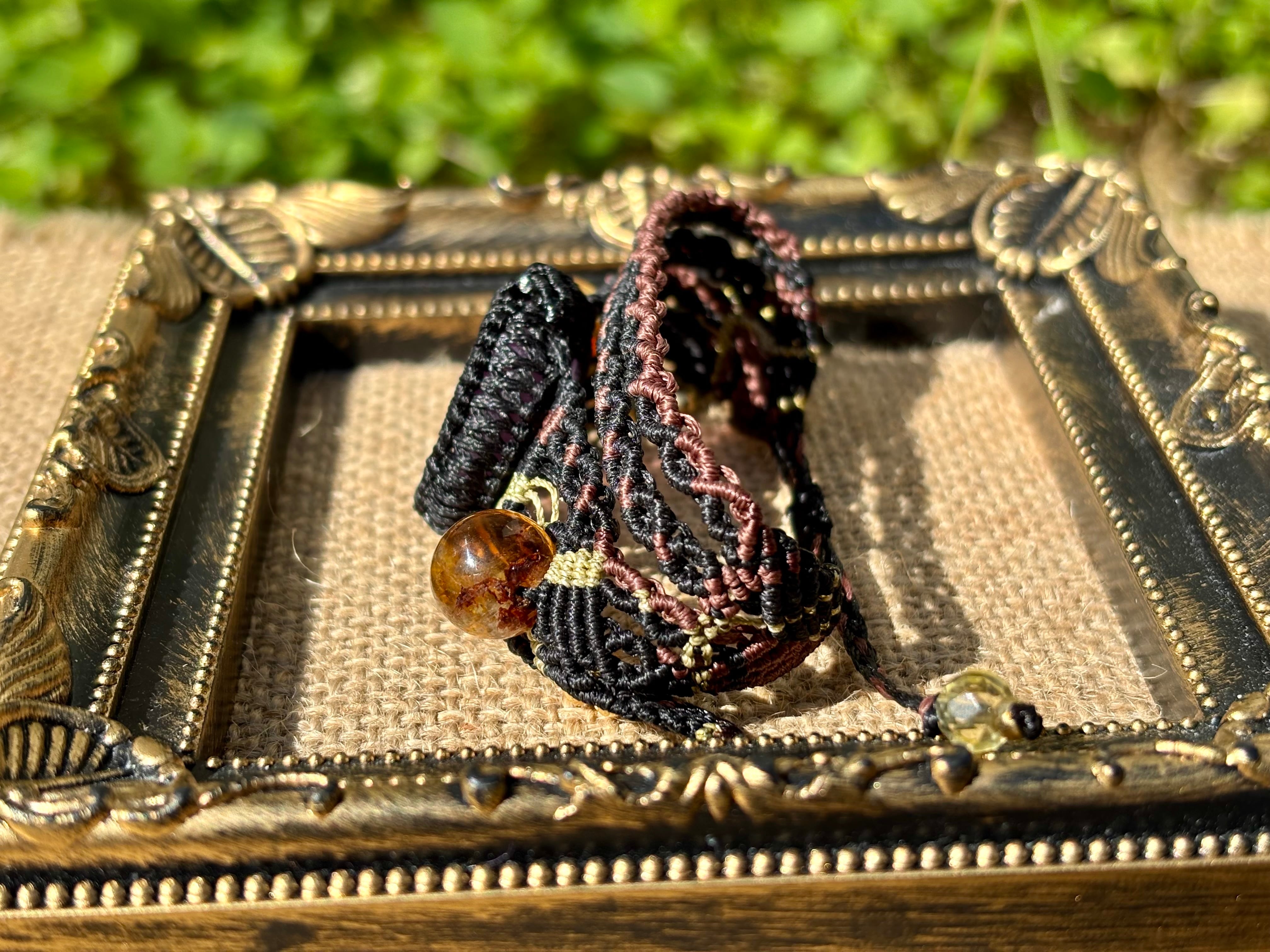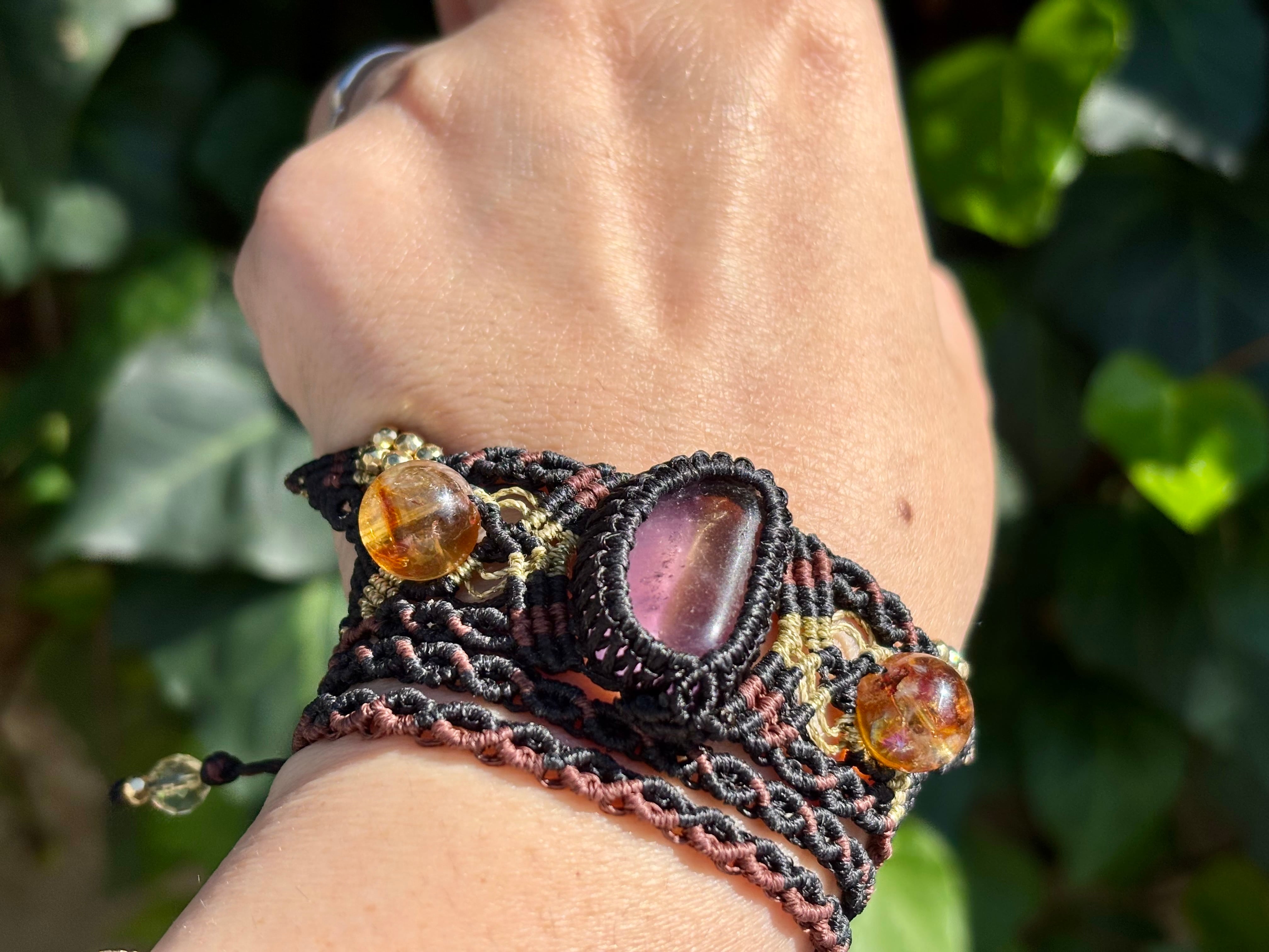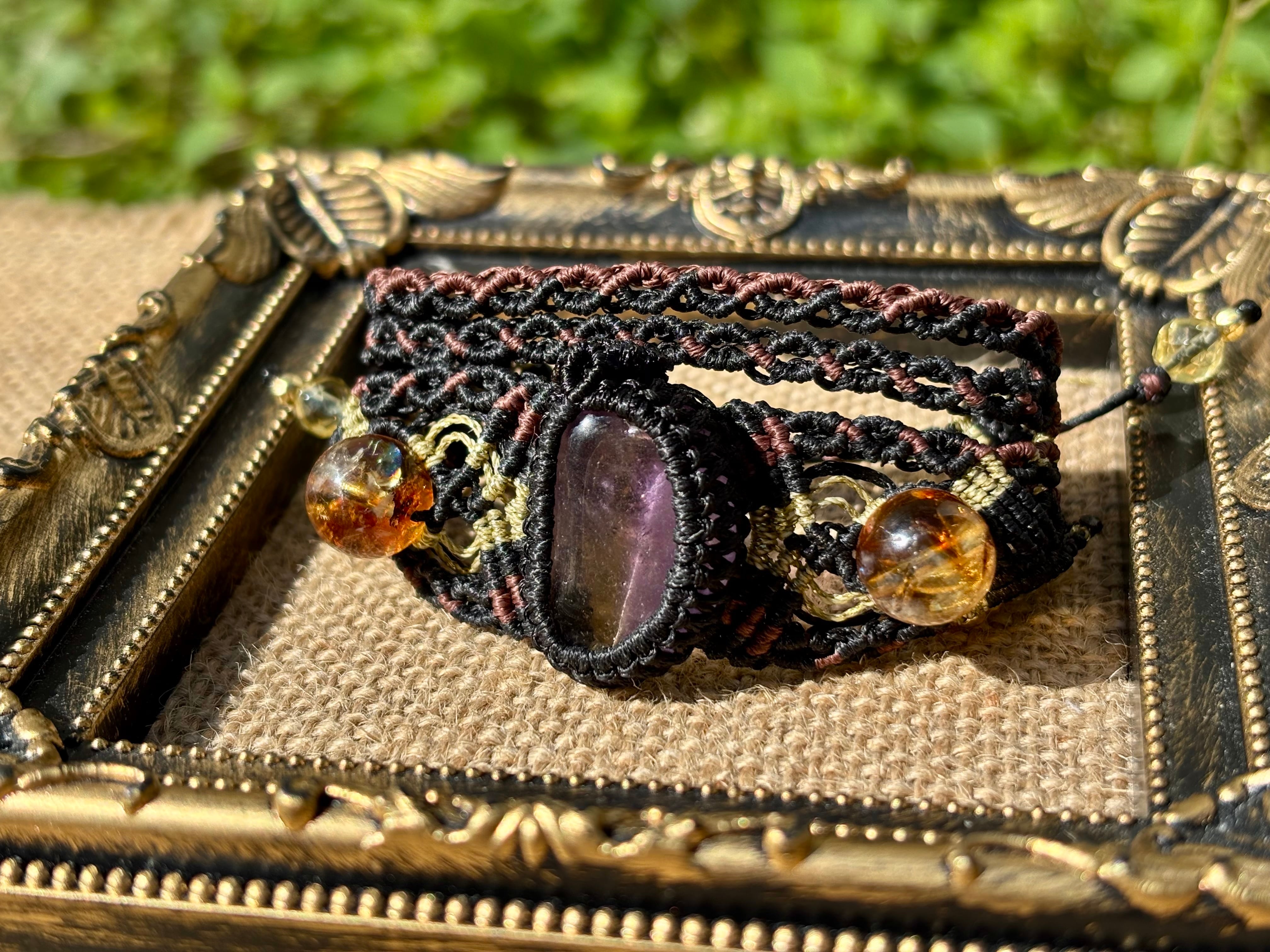 #853希少!アメトリン一点物(アメトリン×ライモナイトインシトリン×シトリン マクラメ編みブレスレット)