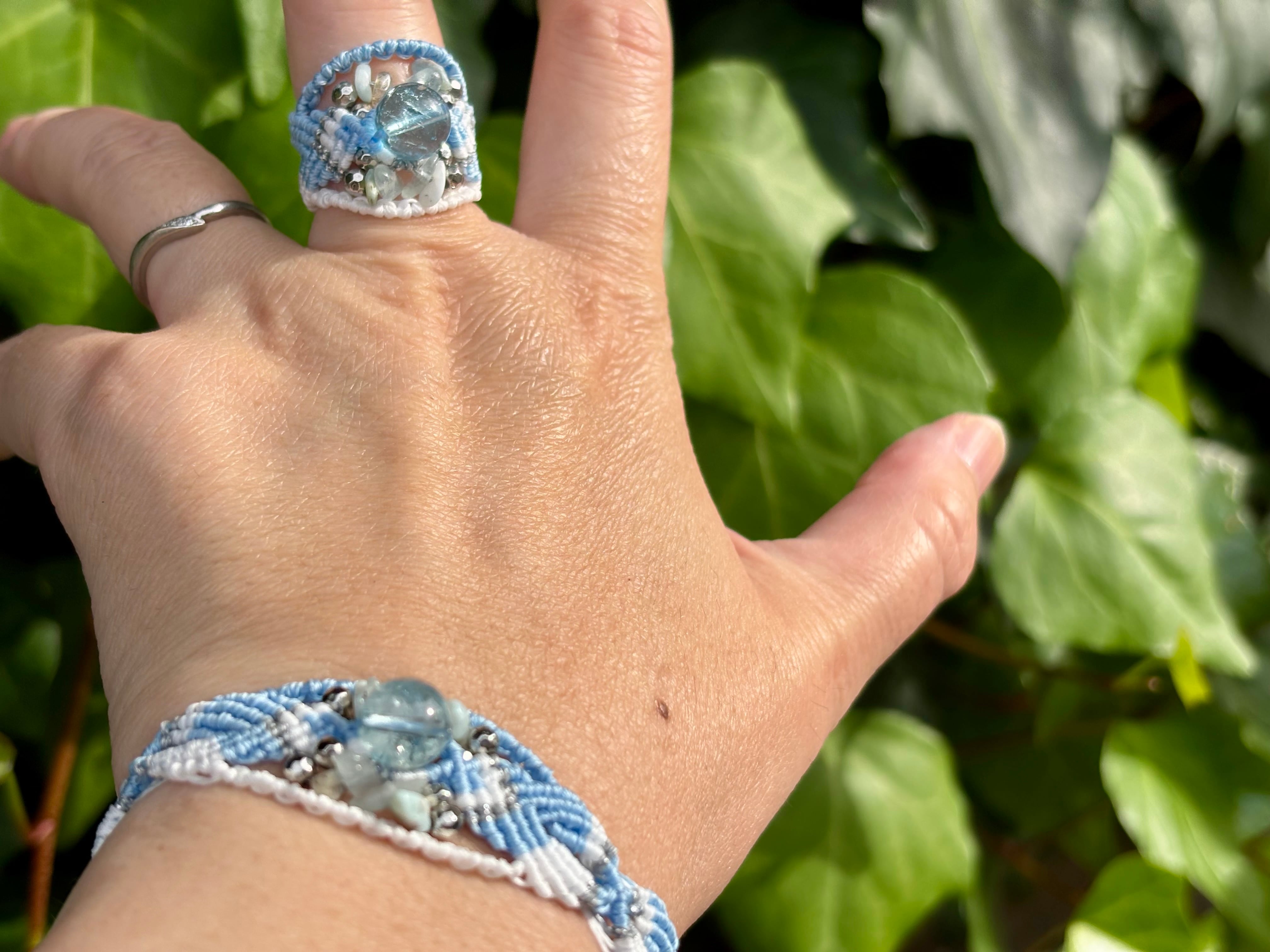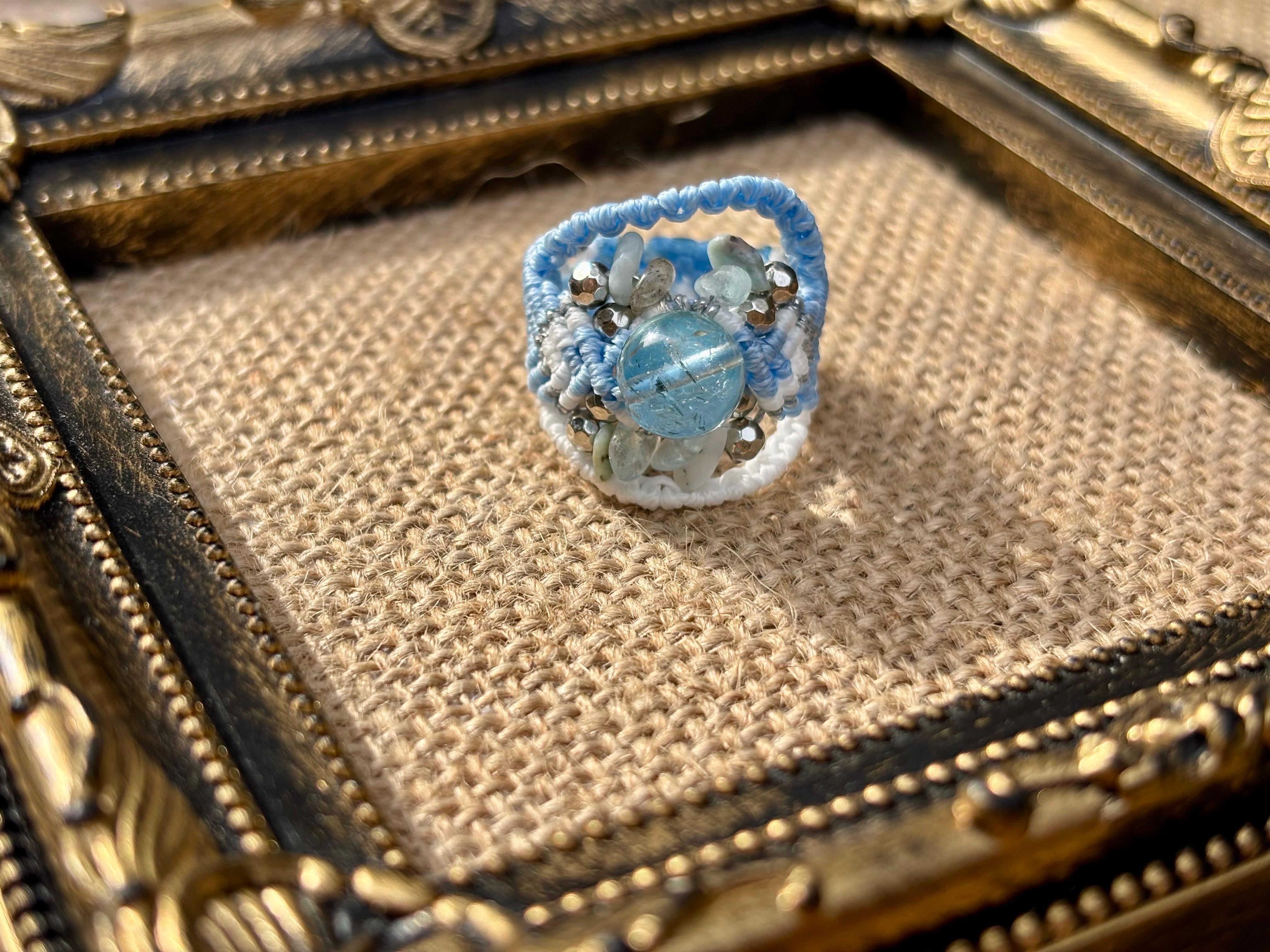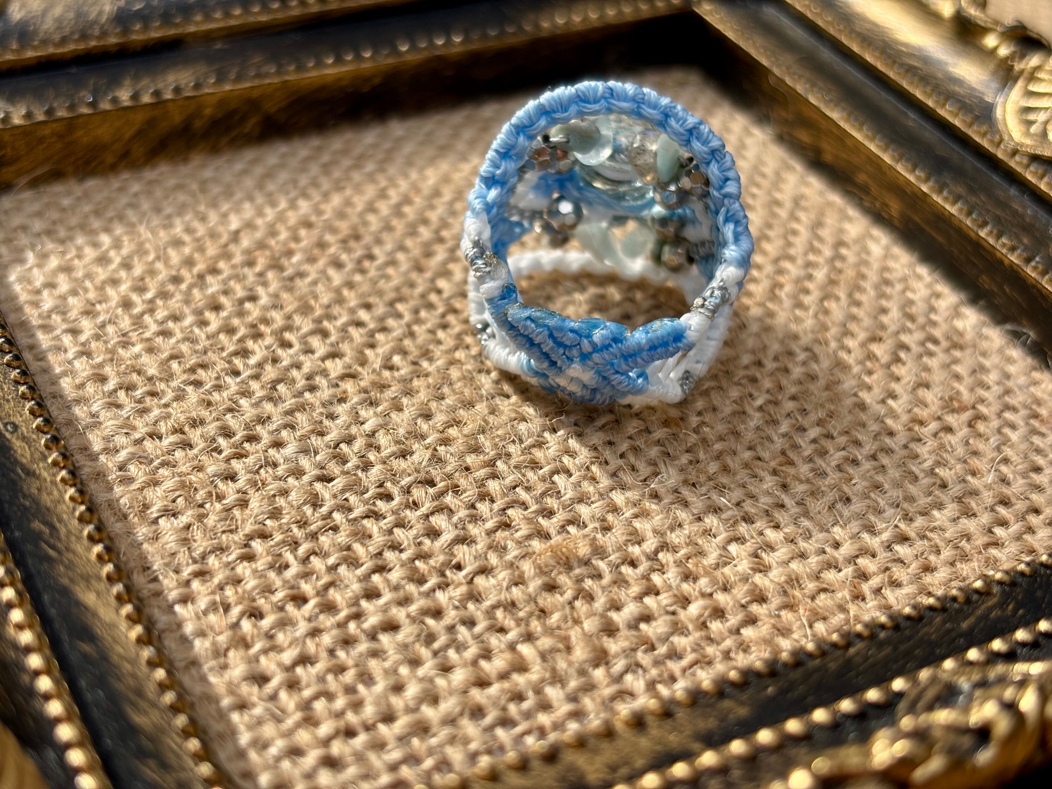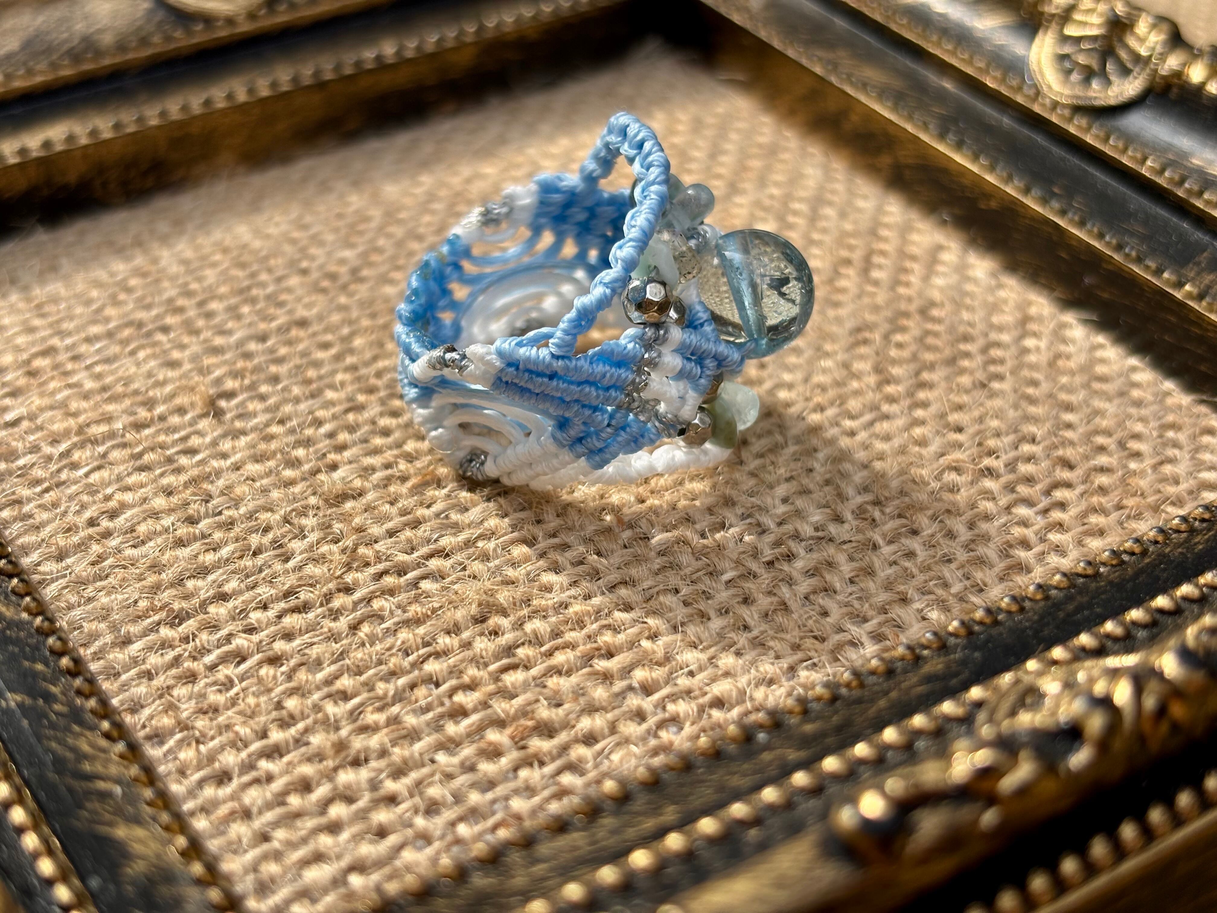 #860超希少ブルートパーズ⭐︎一点物(ブルートパーズ×ラリマー×アクアマリン マクラメ編みリング/指輪)