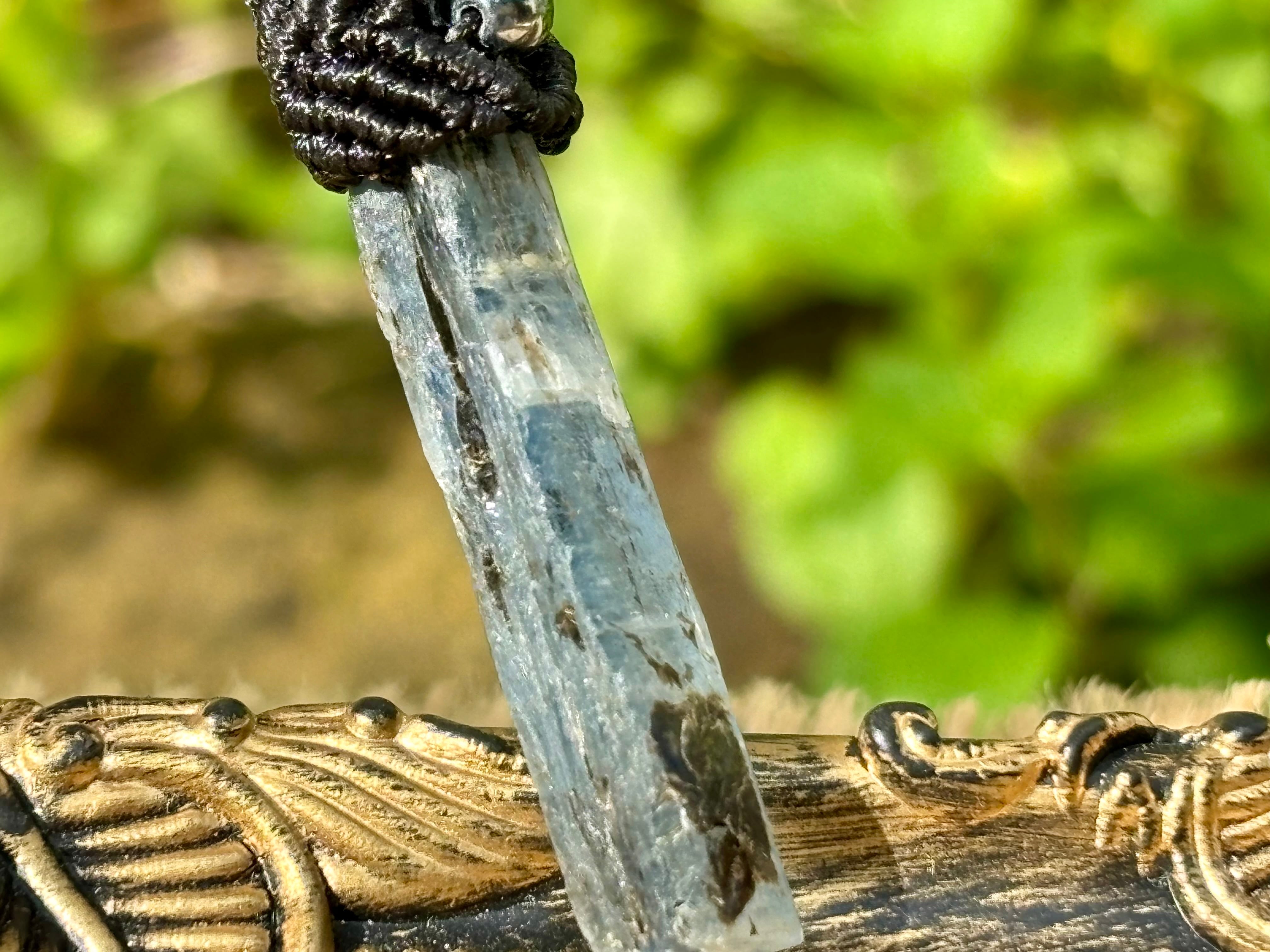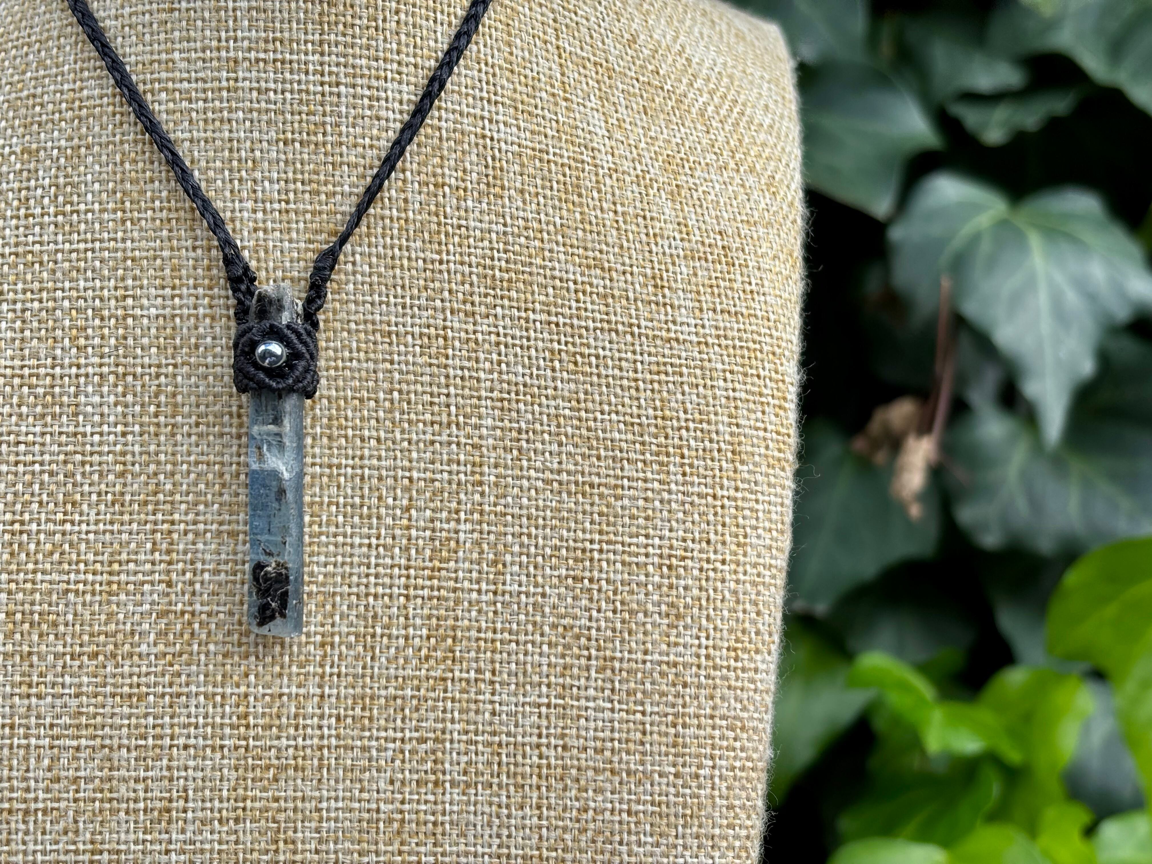 #865天然カイヤナイト一点物(カイヤナイト原石×テラヘルツ マクラメ編みネックレス)