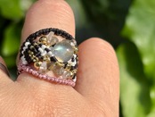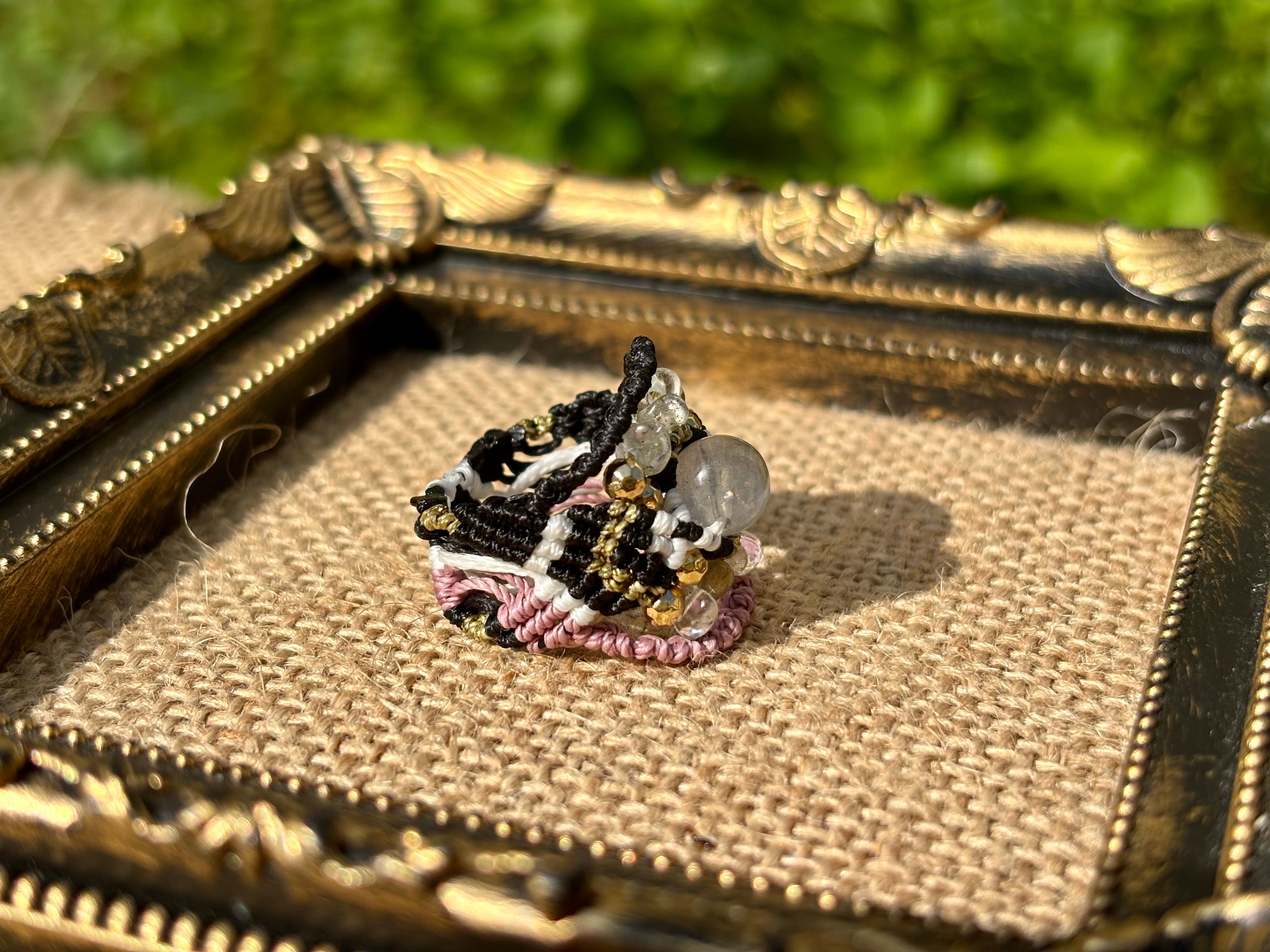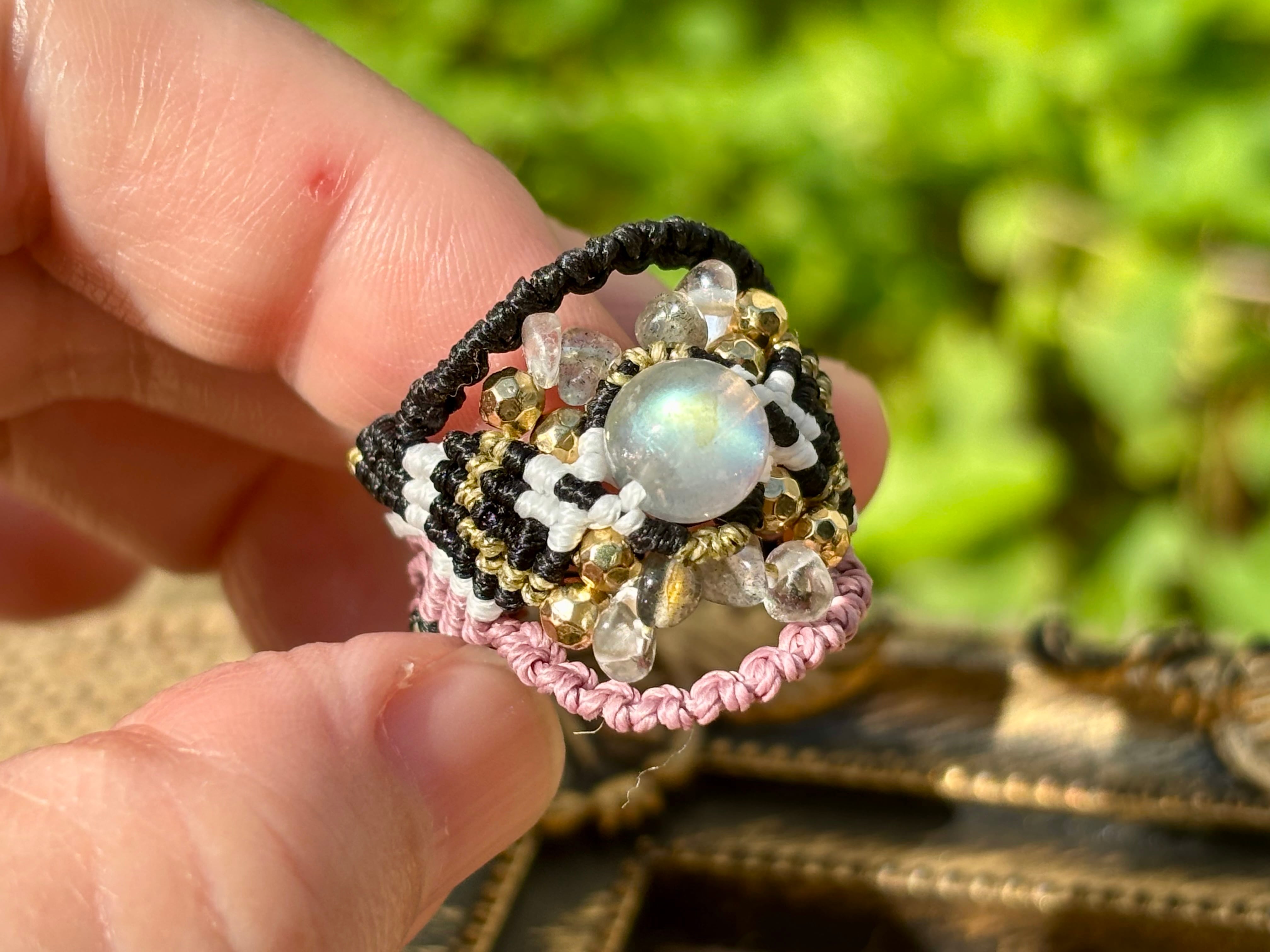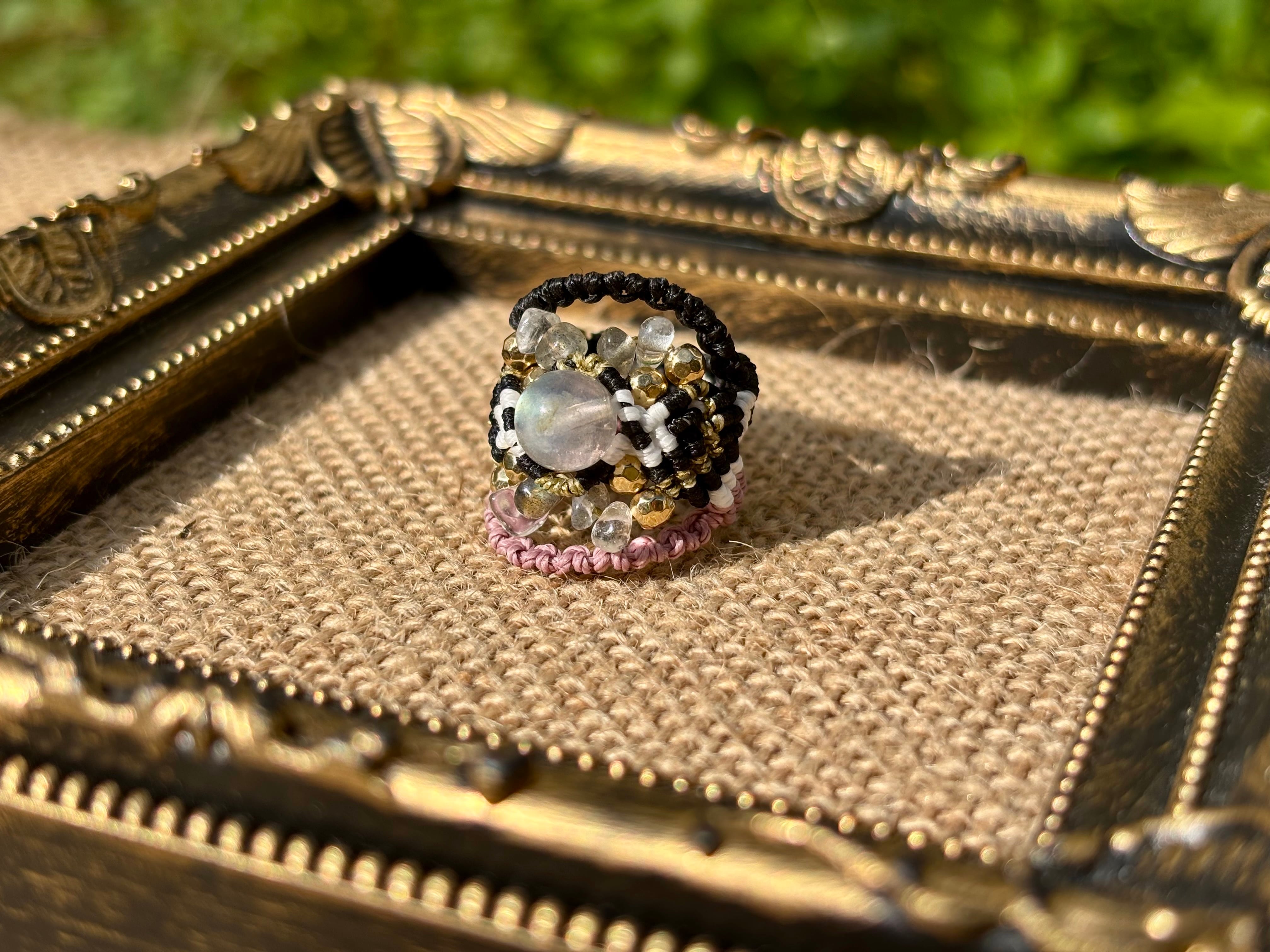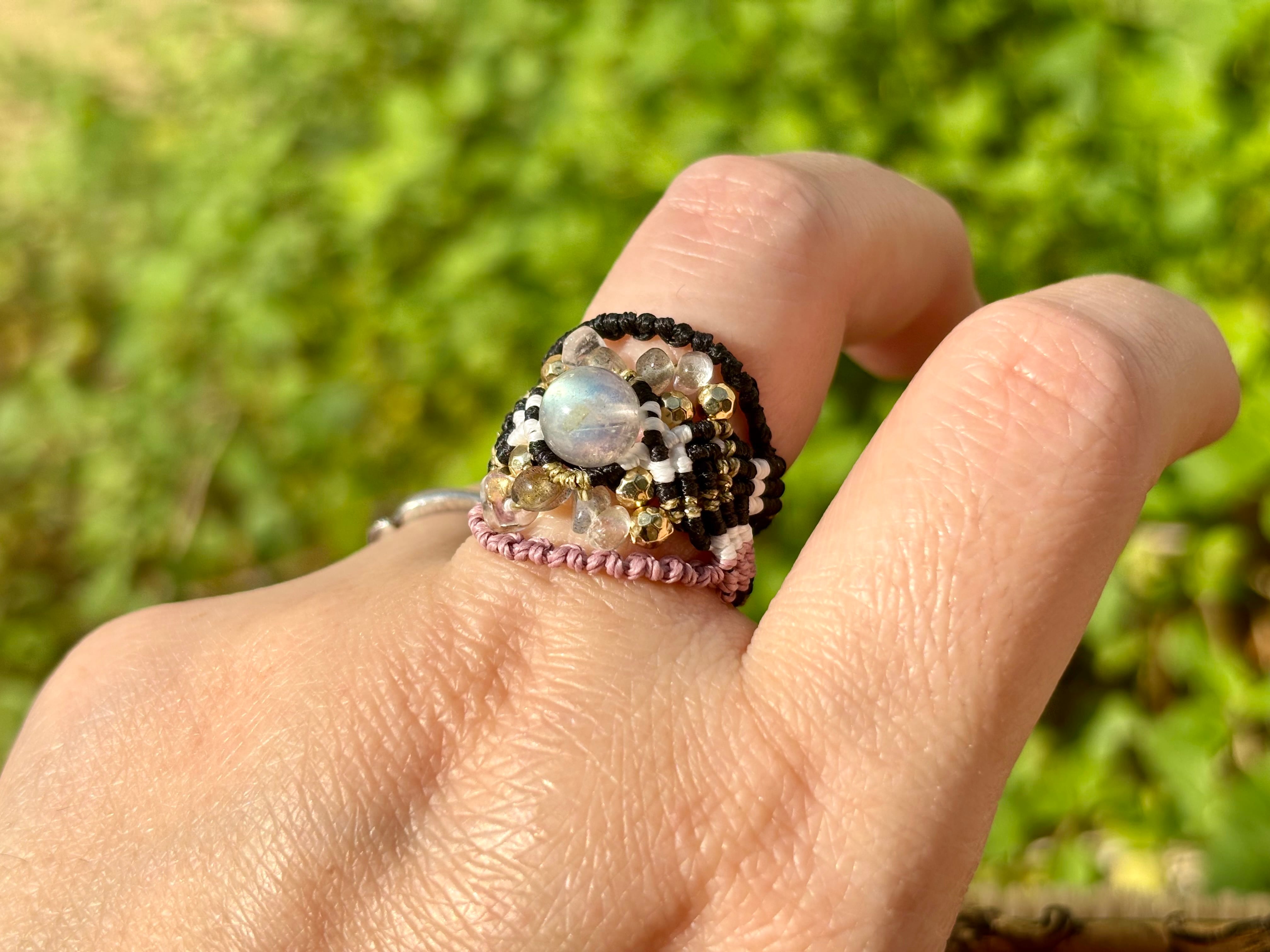 #875高品質ラブラドライト一点物(ラブラドライト×水晶 マクラメ編みリング/指輪)