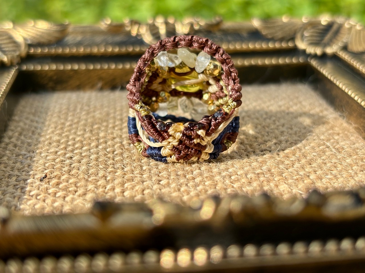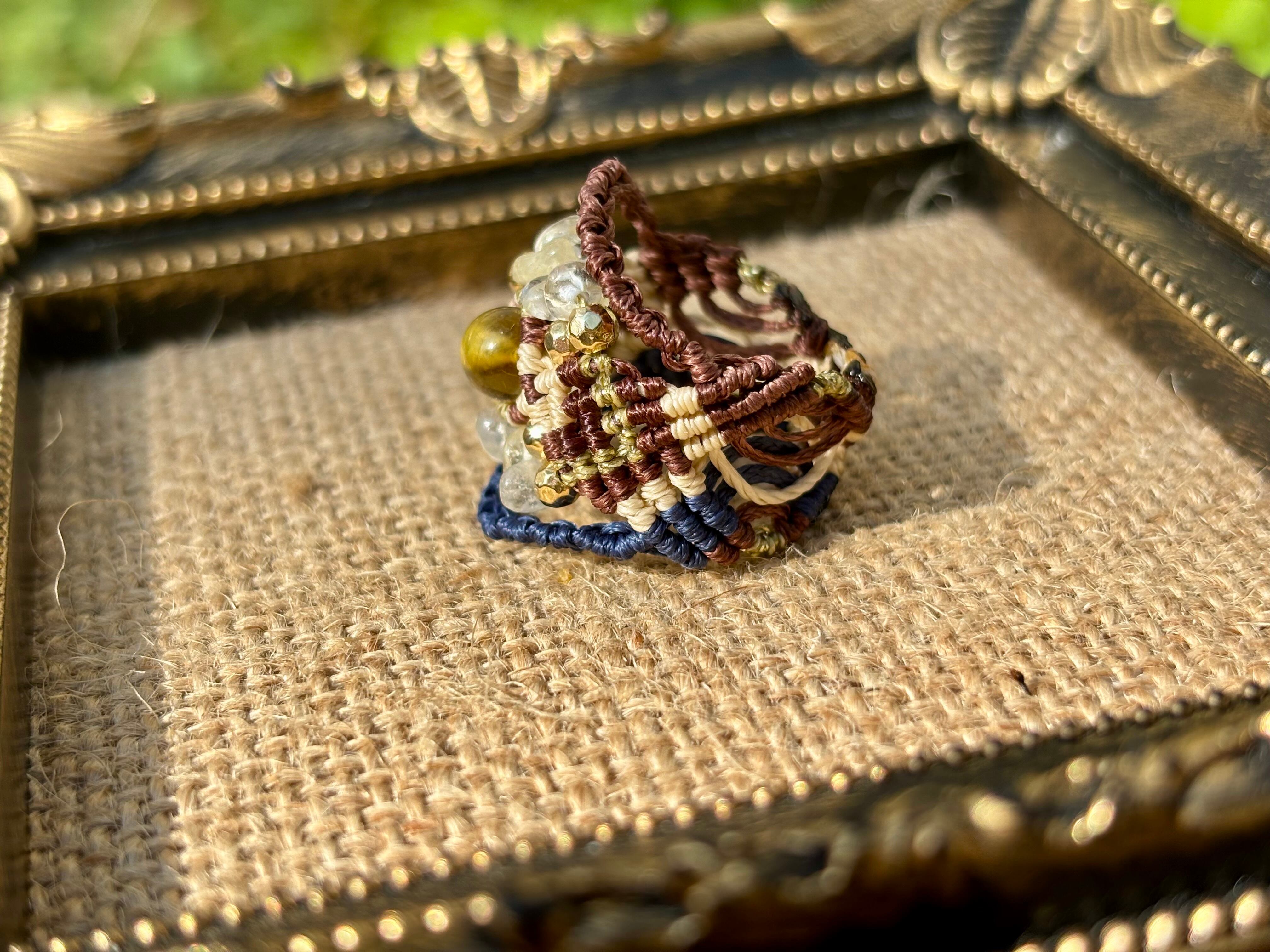 手作業で丁寧に編み込まれたこのリングは、日常のコーディネートに華を添えるだけでなく、特別な場面でも存在感を発揮します。