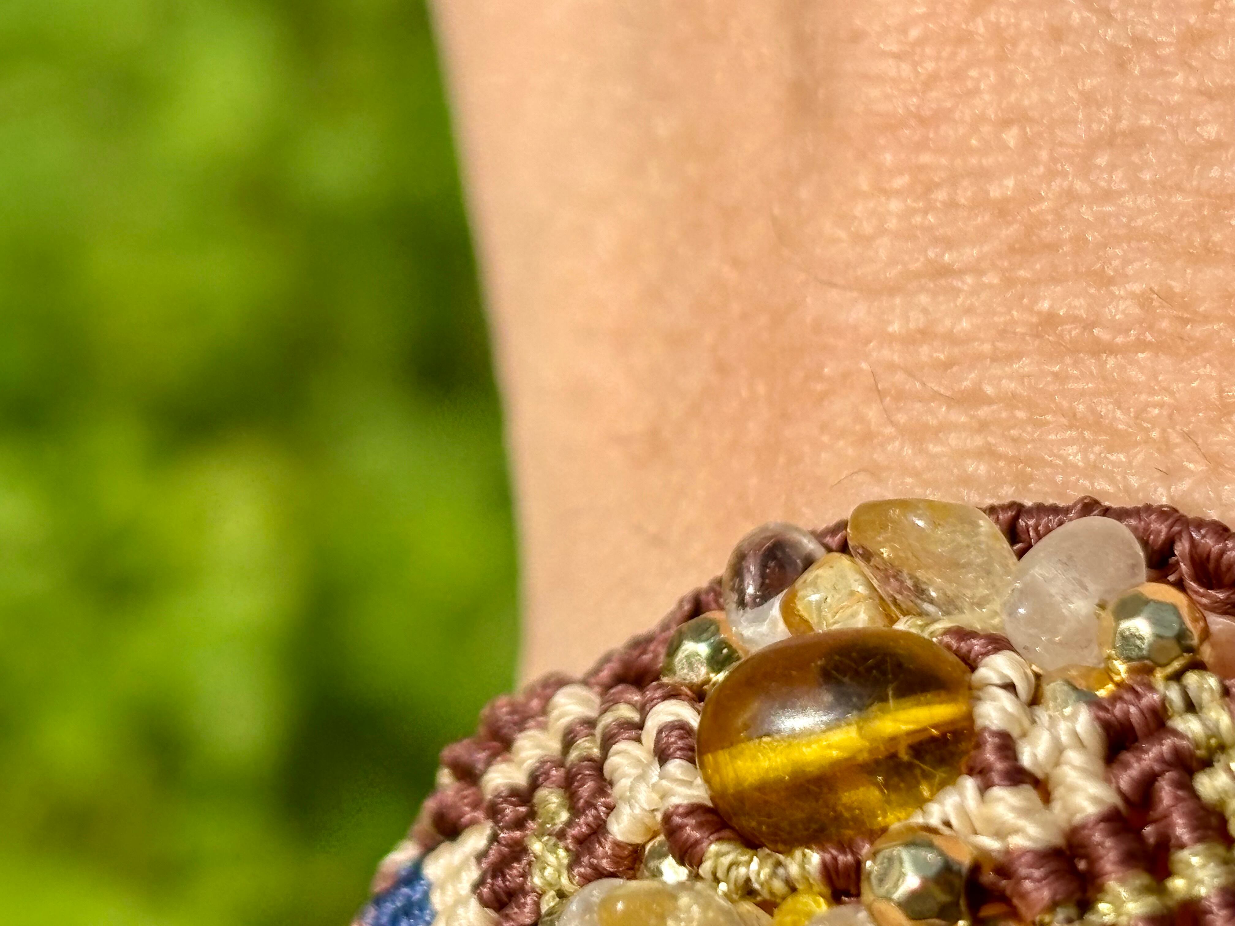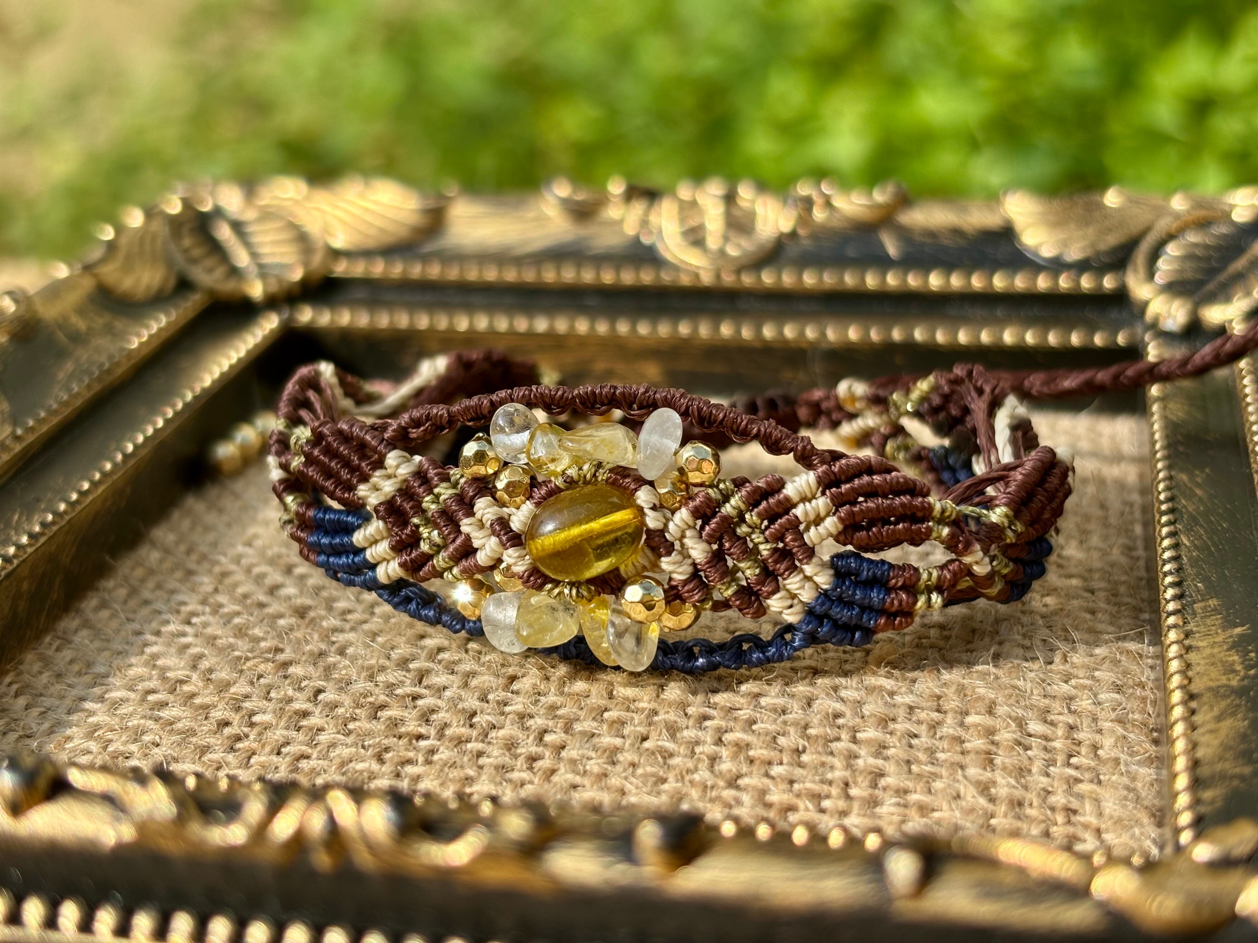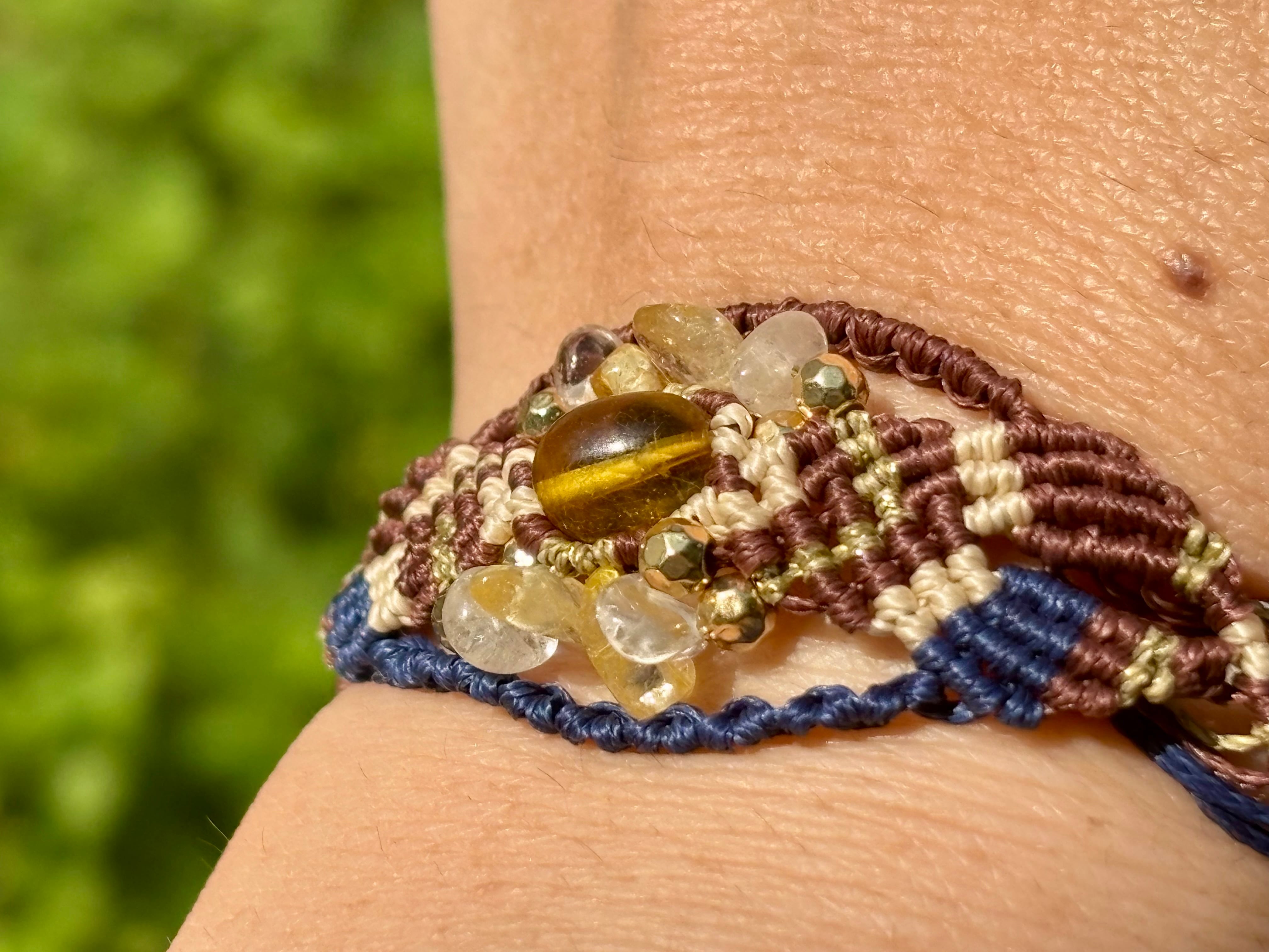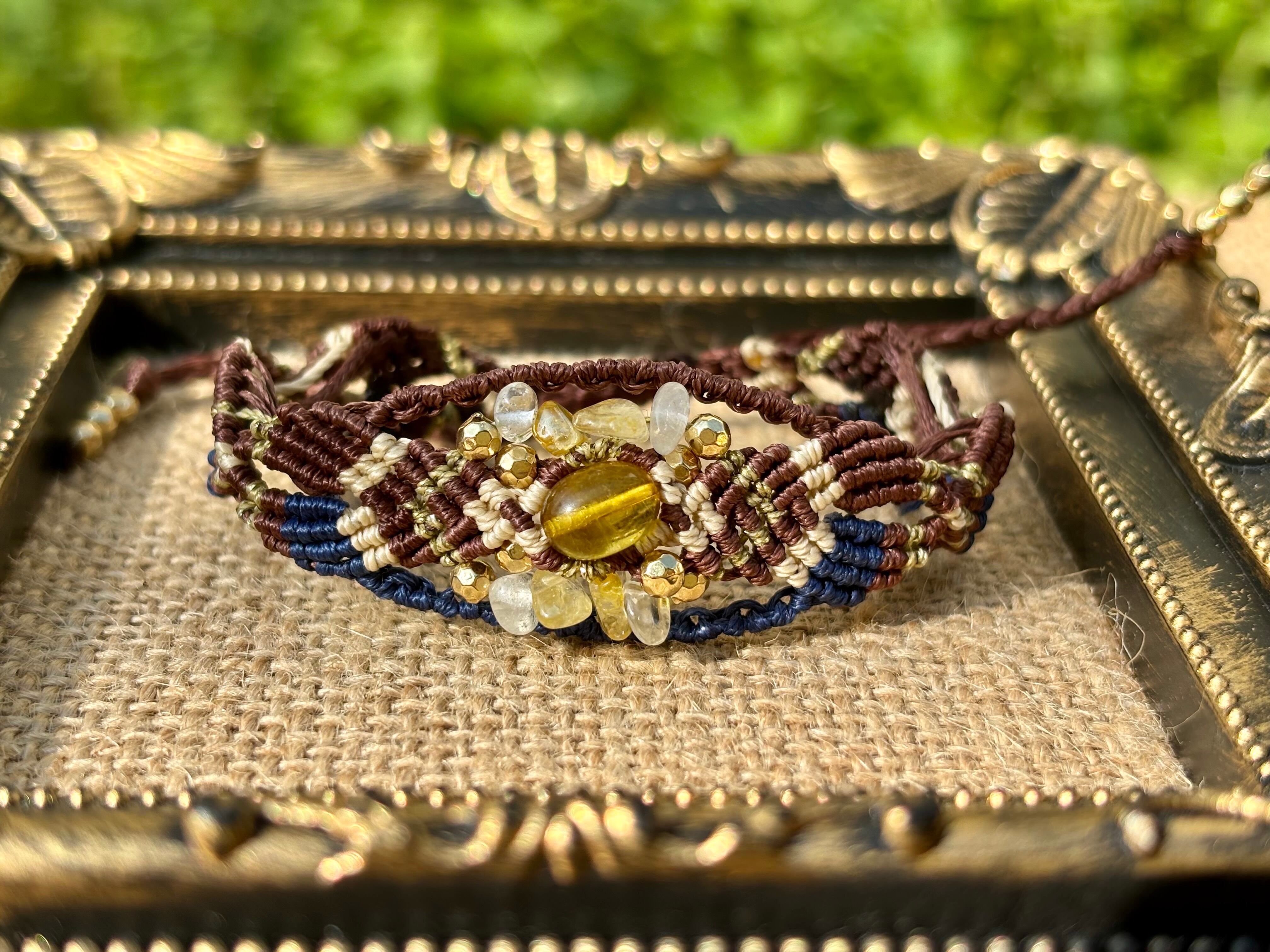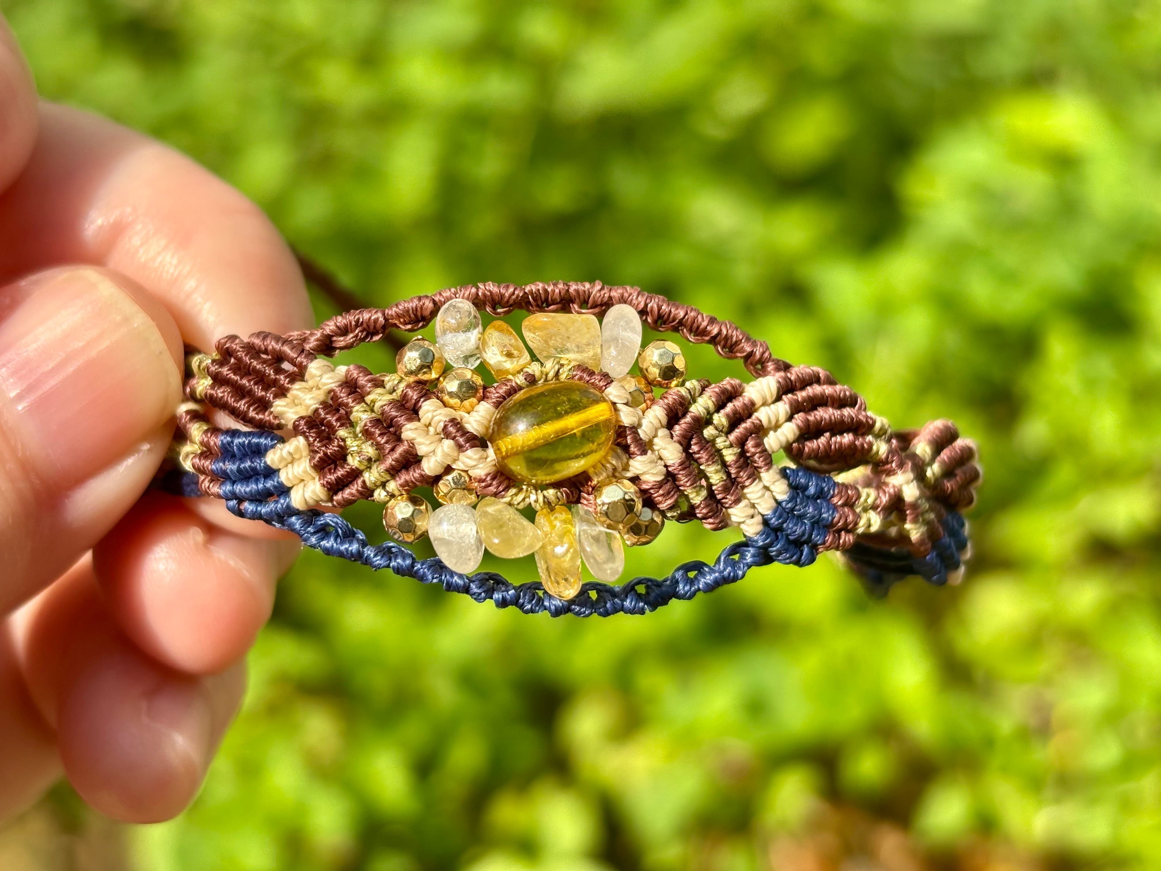 #880リトアニア産グリーンアンバー(グリーンアンバー×シトリン×水晶 マクラメ編みブレスレット)