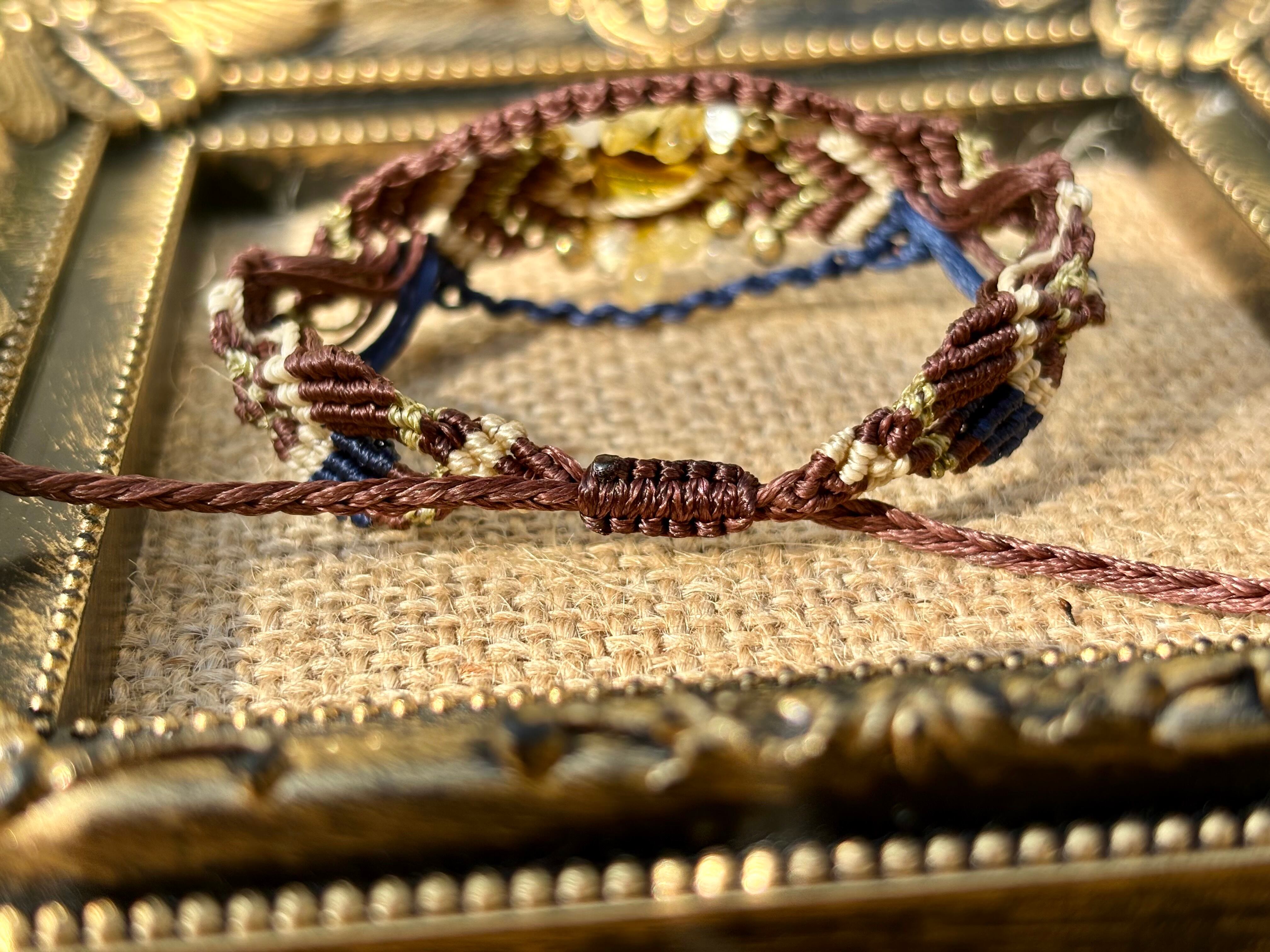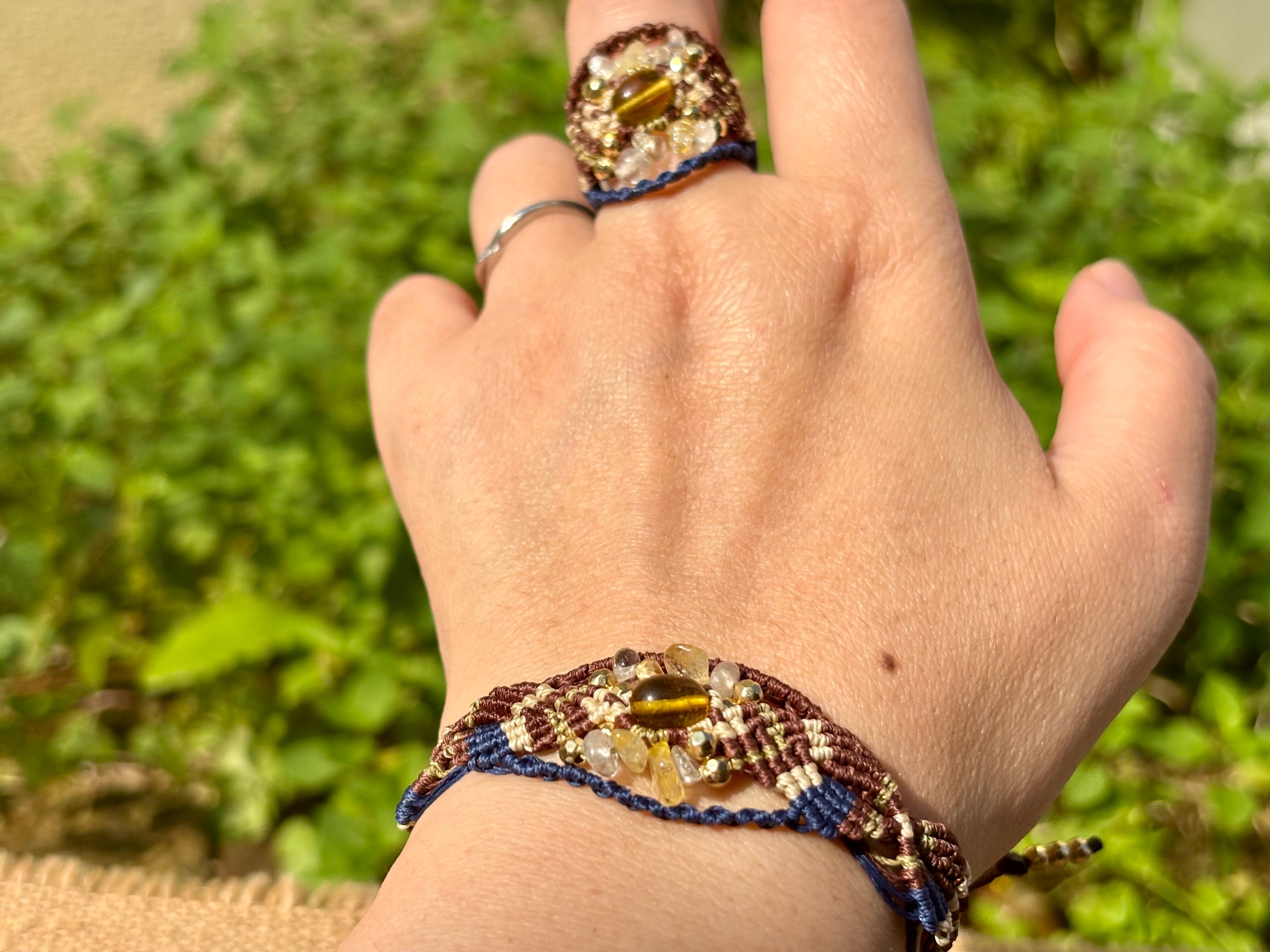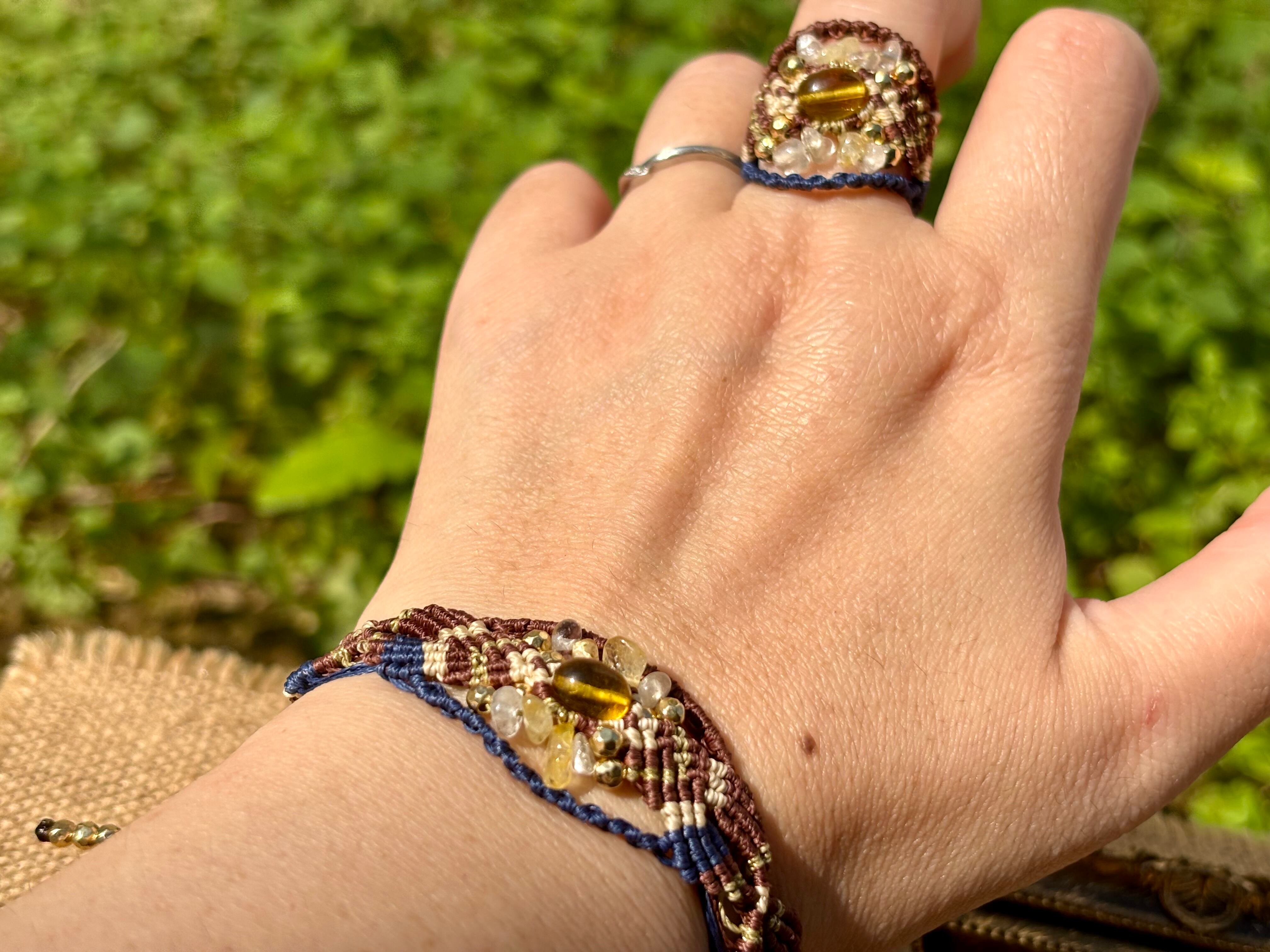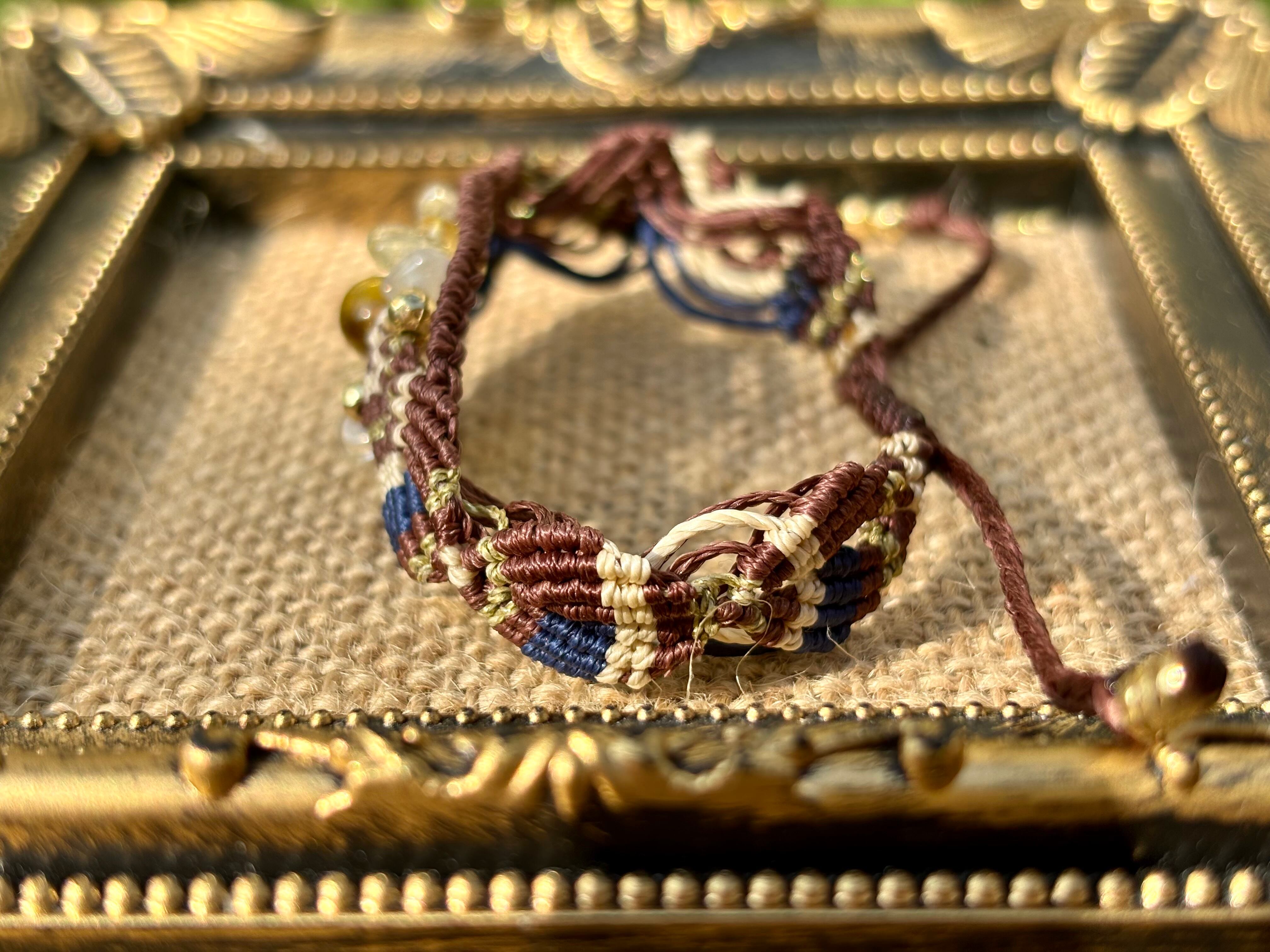 手作業で丁寧に編み込まれたこのブレスレットは、日常のコーディネートに華を添えるだけでなく、特別な場面でも存在感を発揮します。