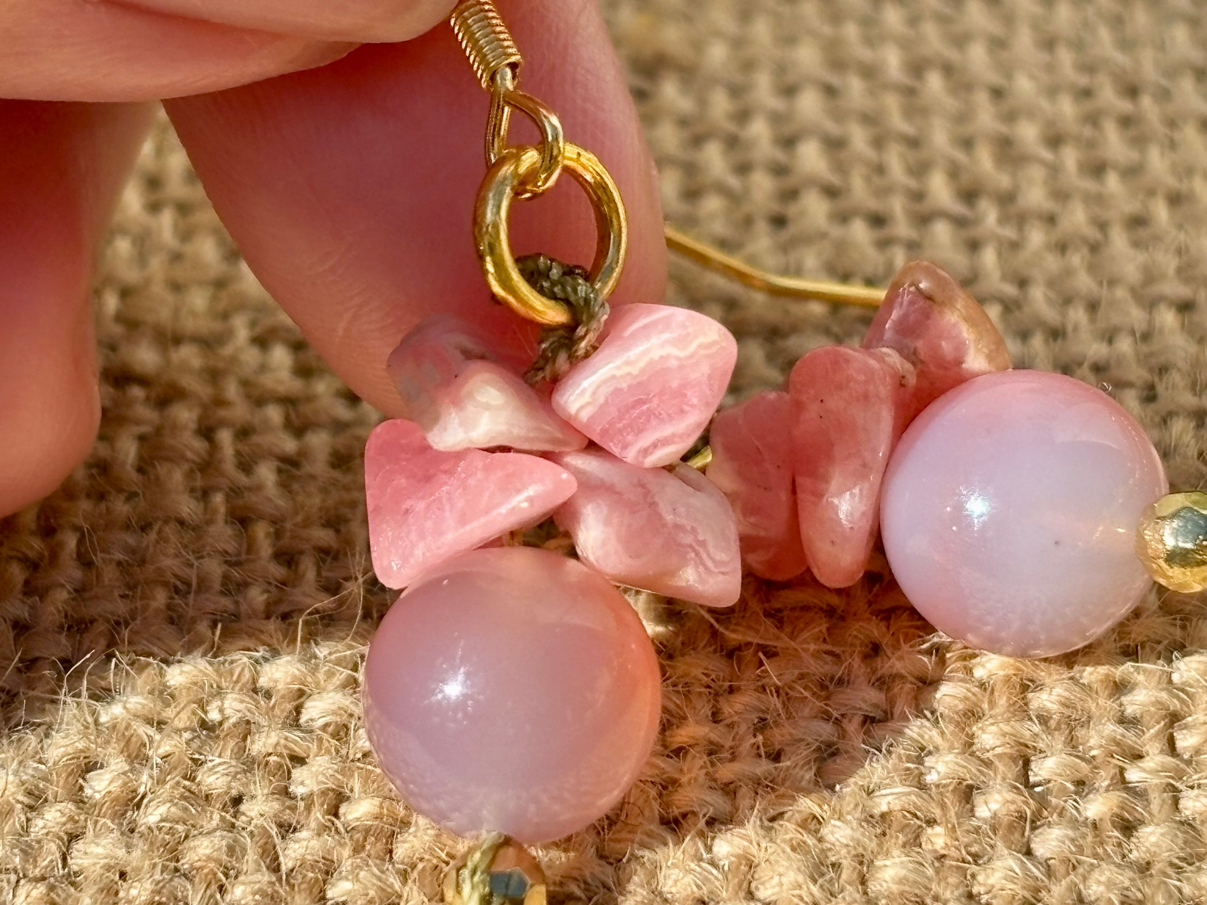 #890希少ぷるつや♡ソルトソースアゲート×インカローズ一点物 マクラメ編みピアス