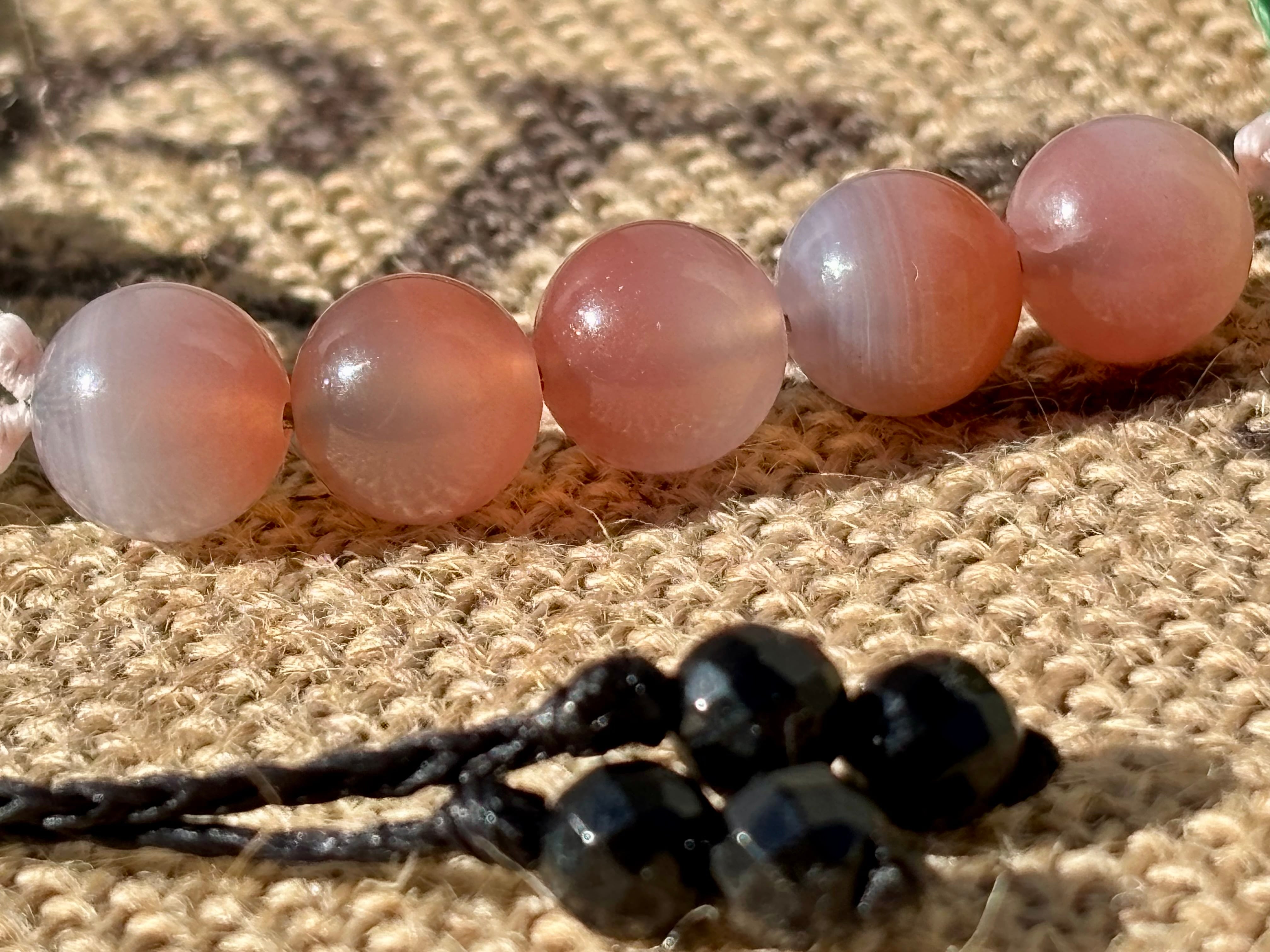 #892希少ぷるつや♡ソルトソースアゲート×オニキス 一点物 マクラメ編みネックレス