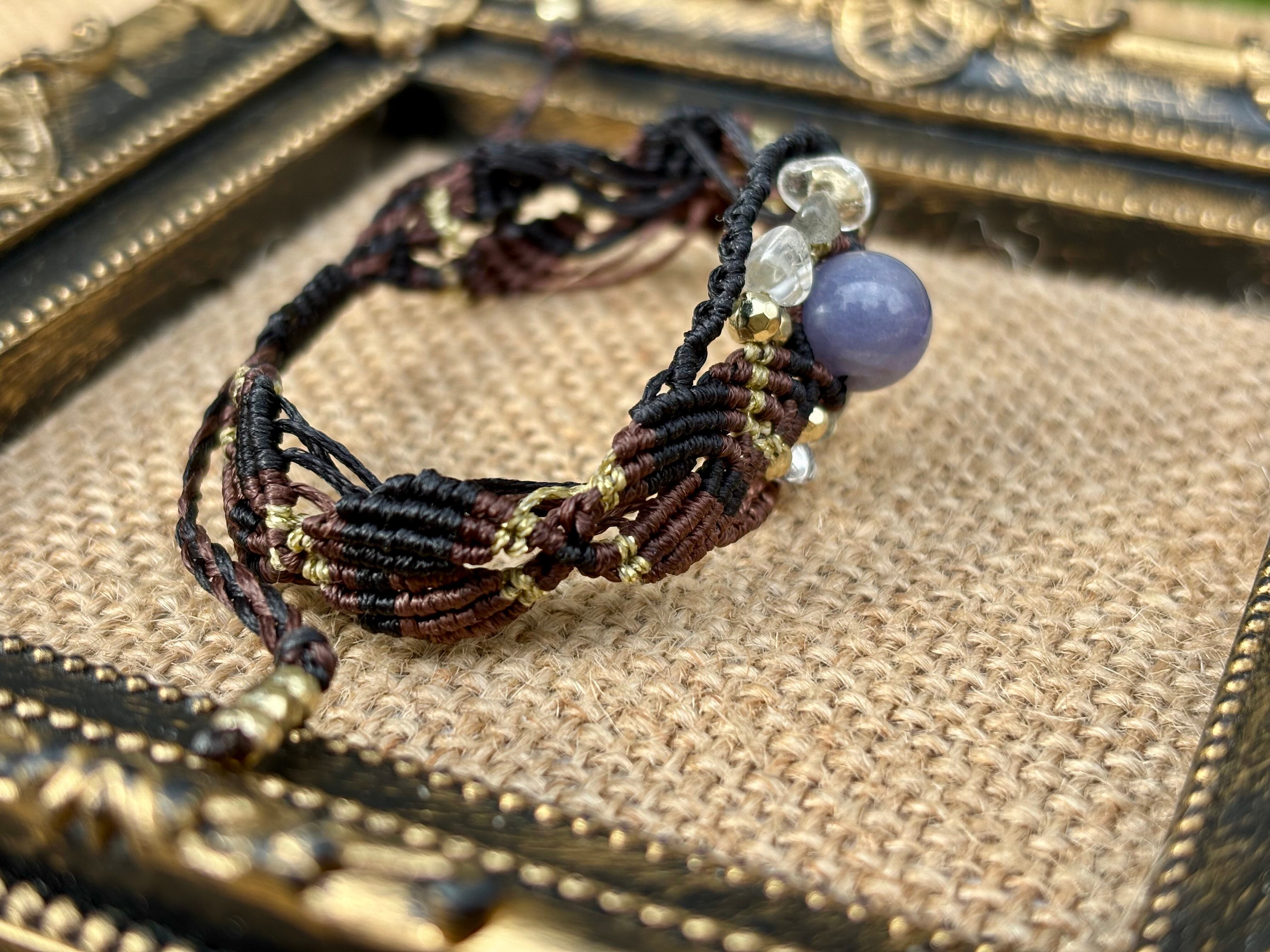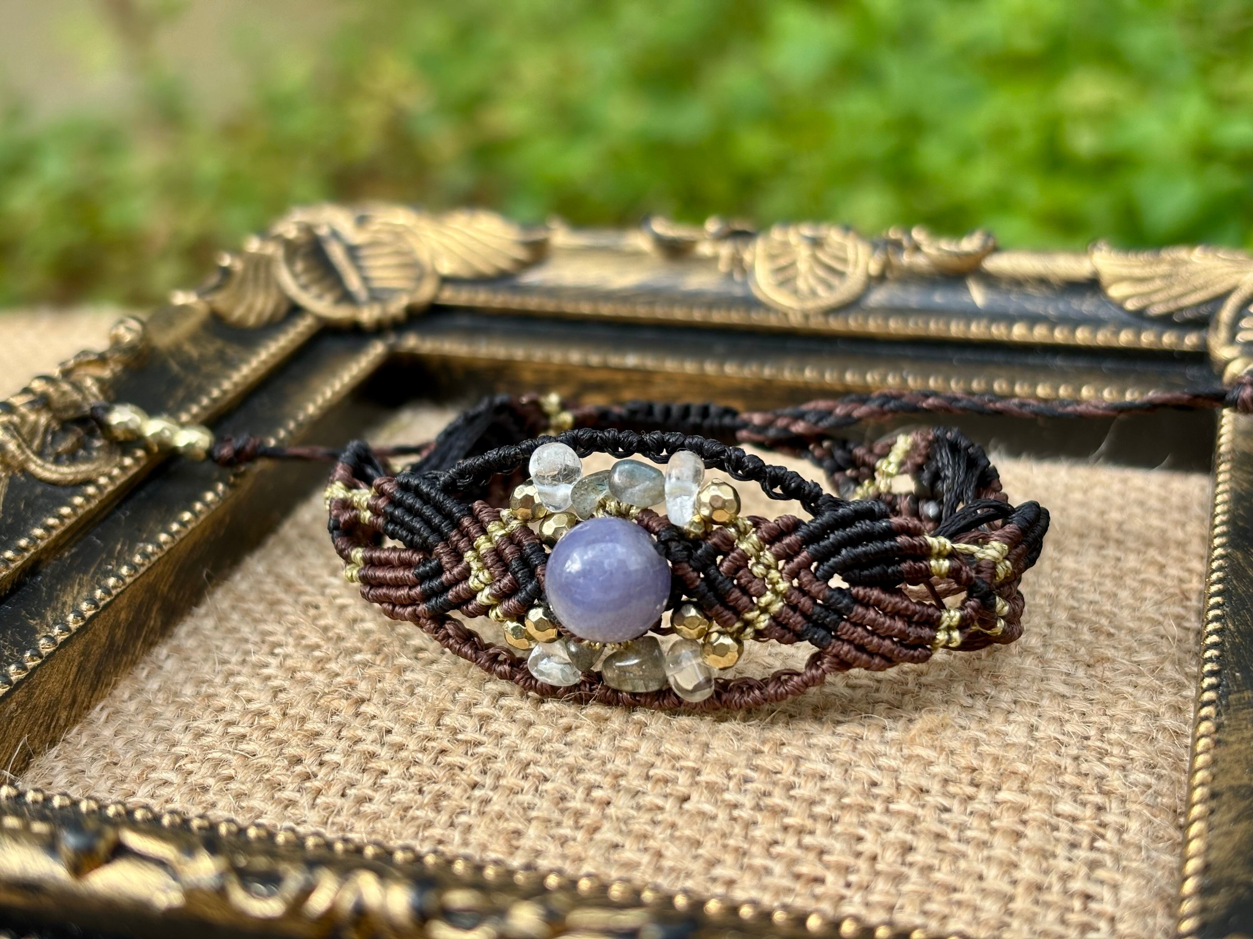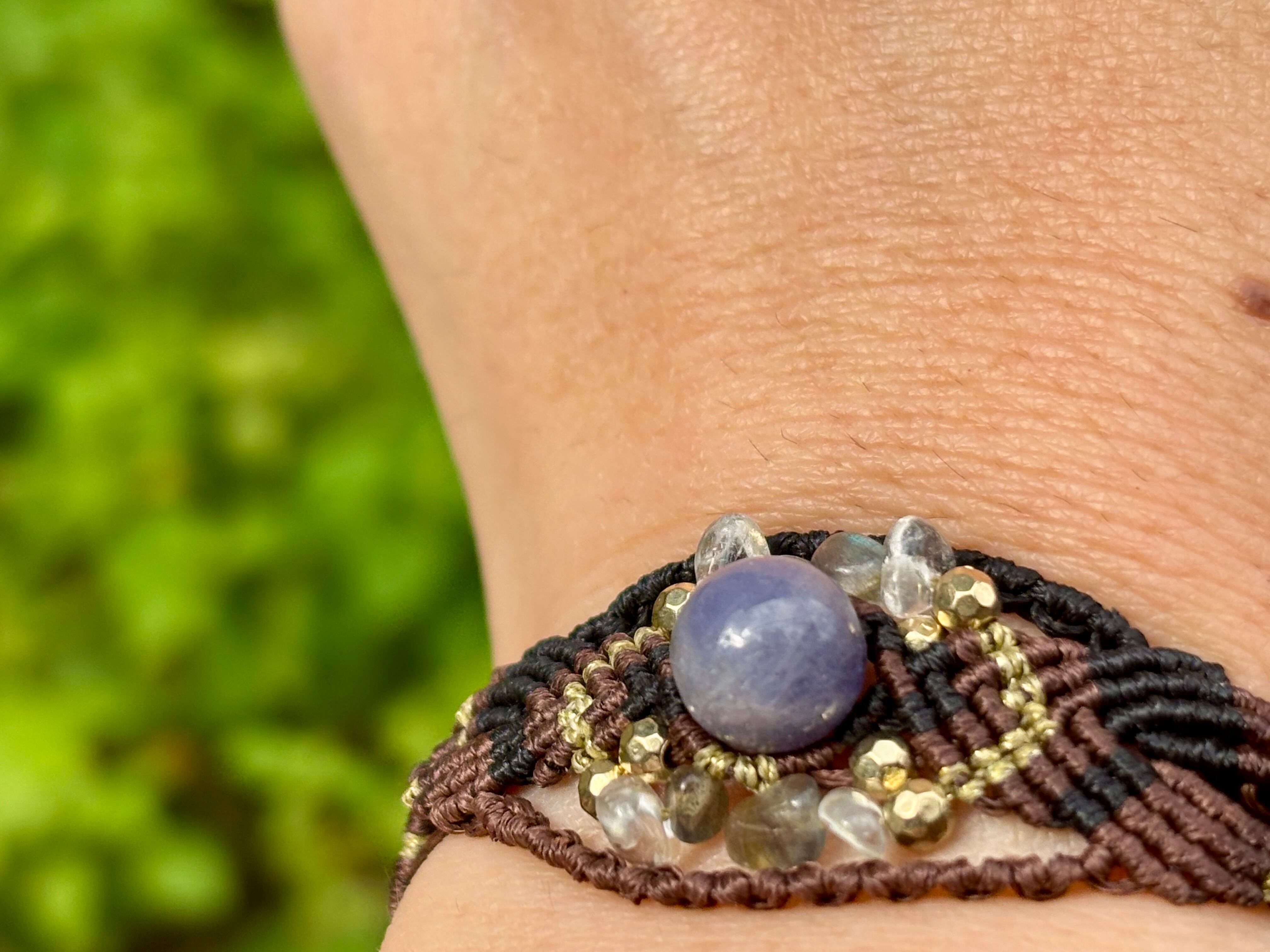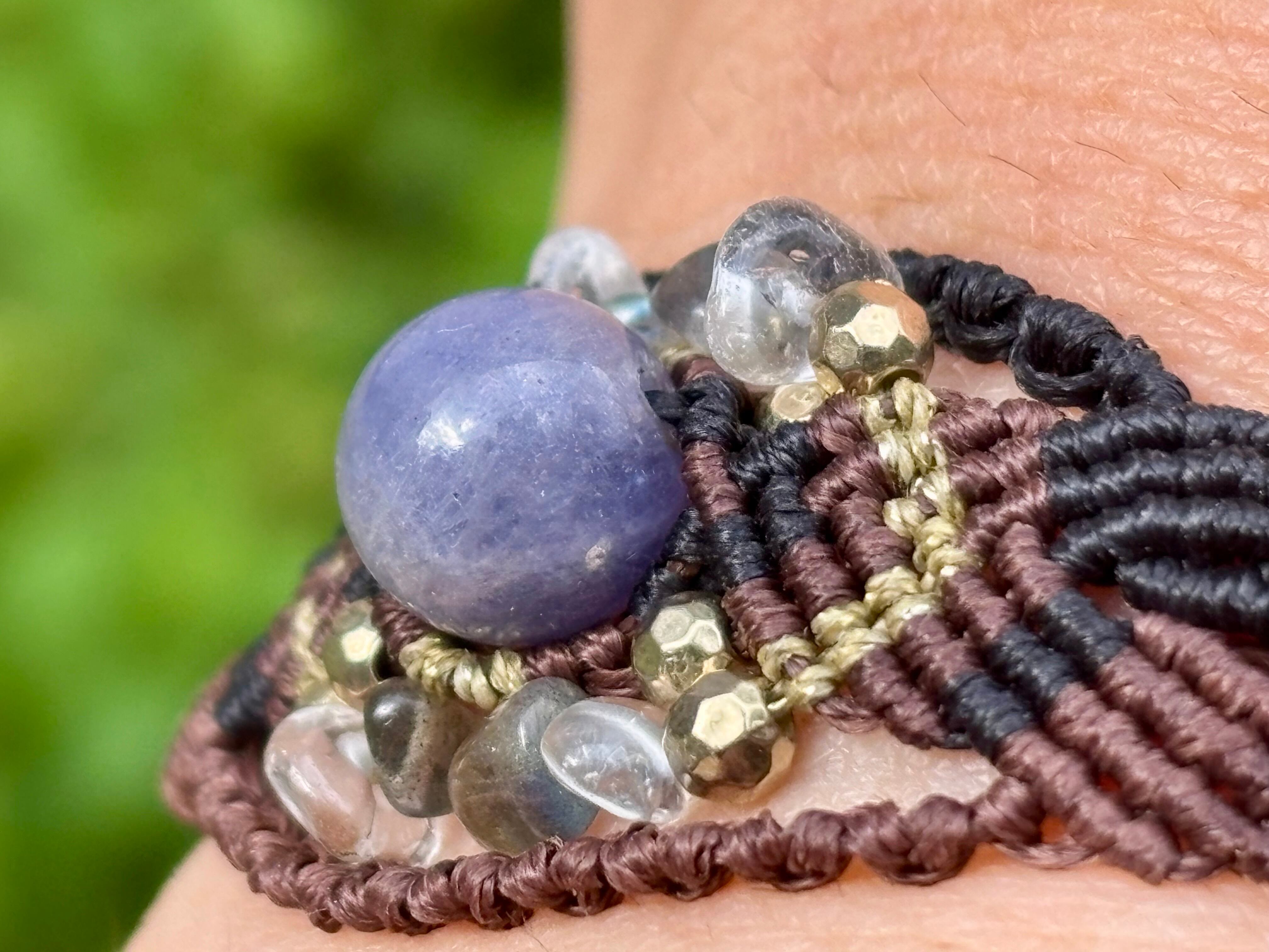 #894希少タンザナイト一点物(タンザナイト×水晶×ラブラドライト マクラメ編みブレスレット)