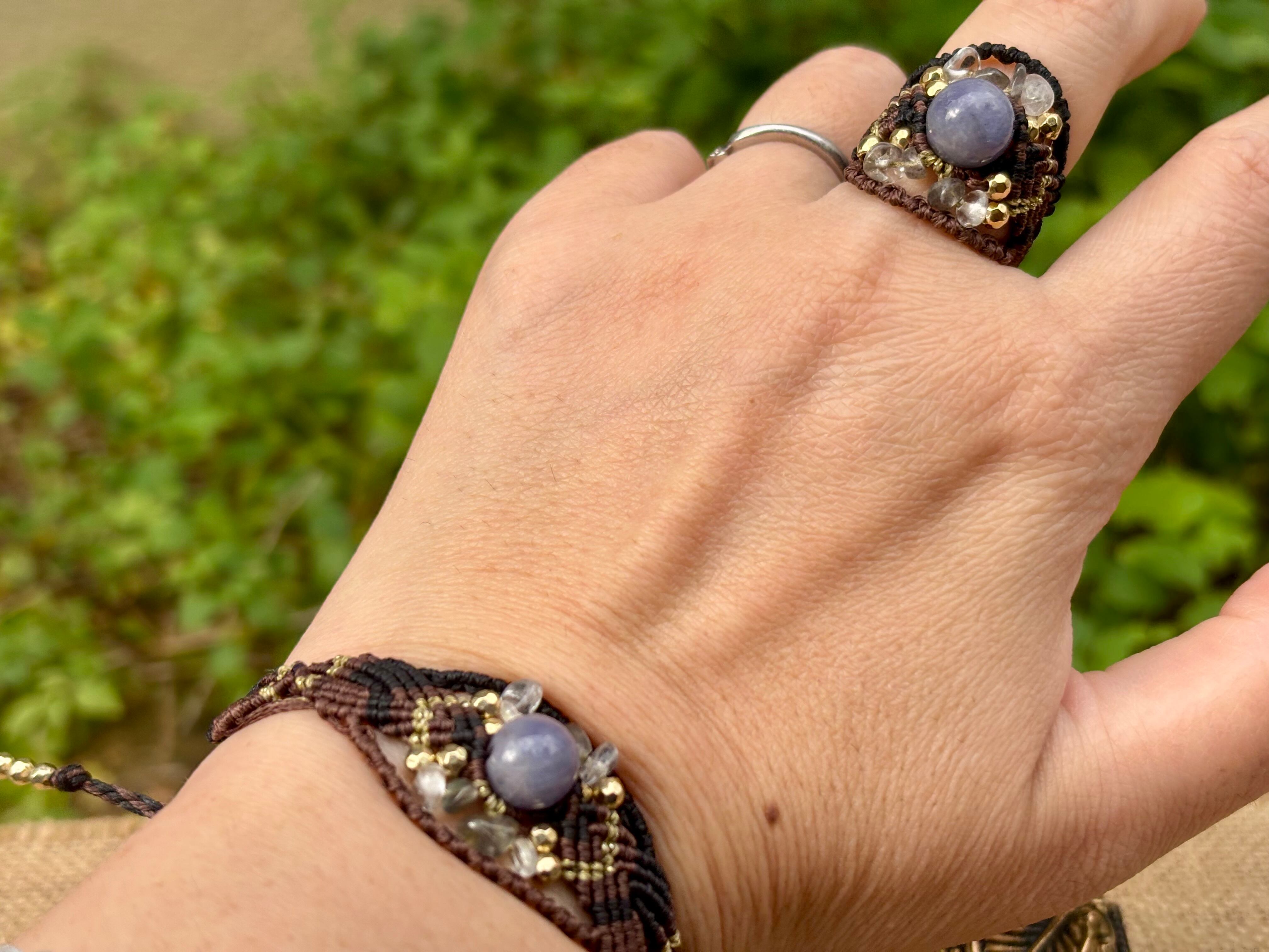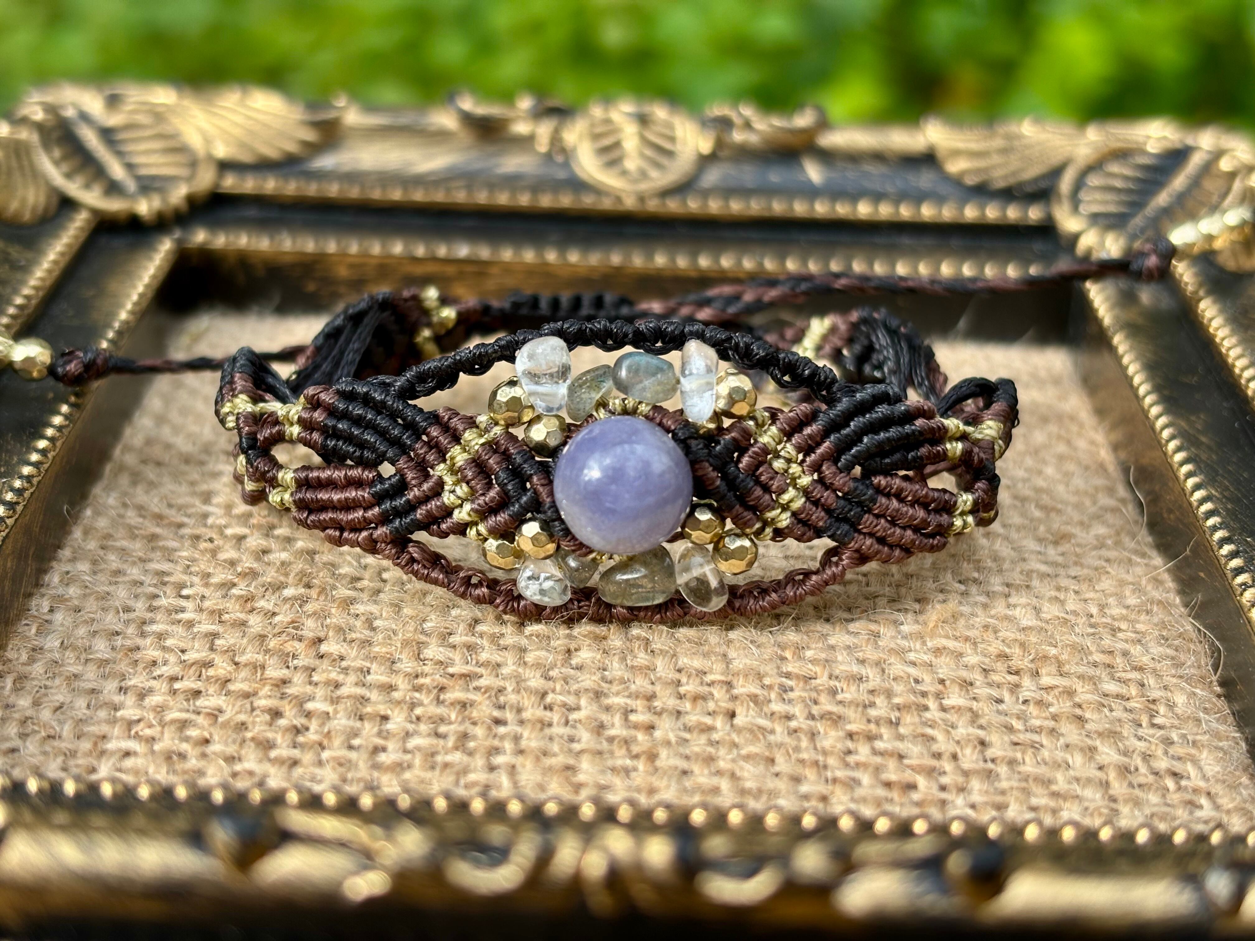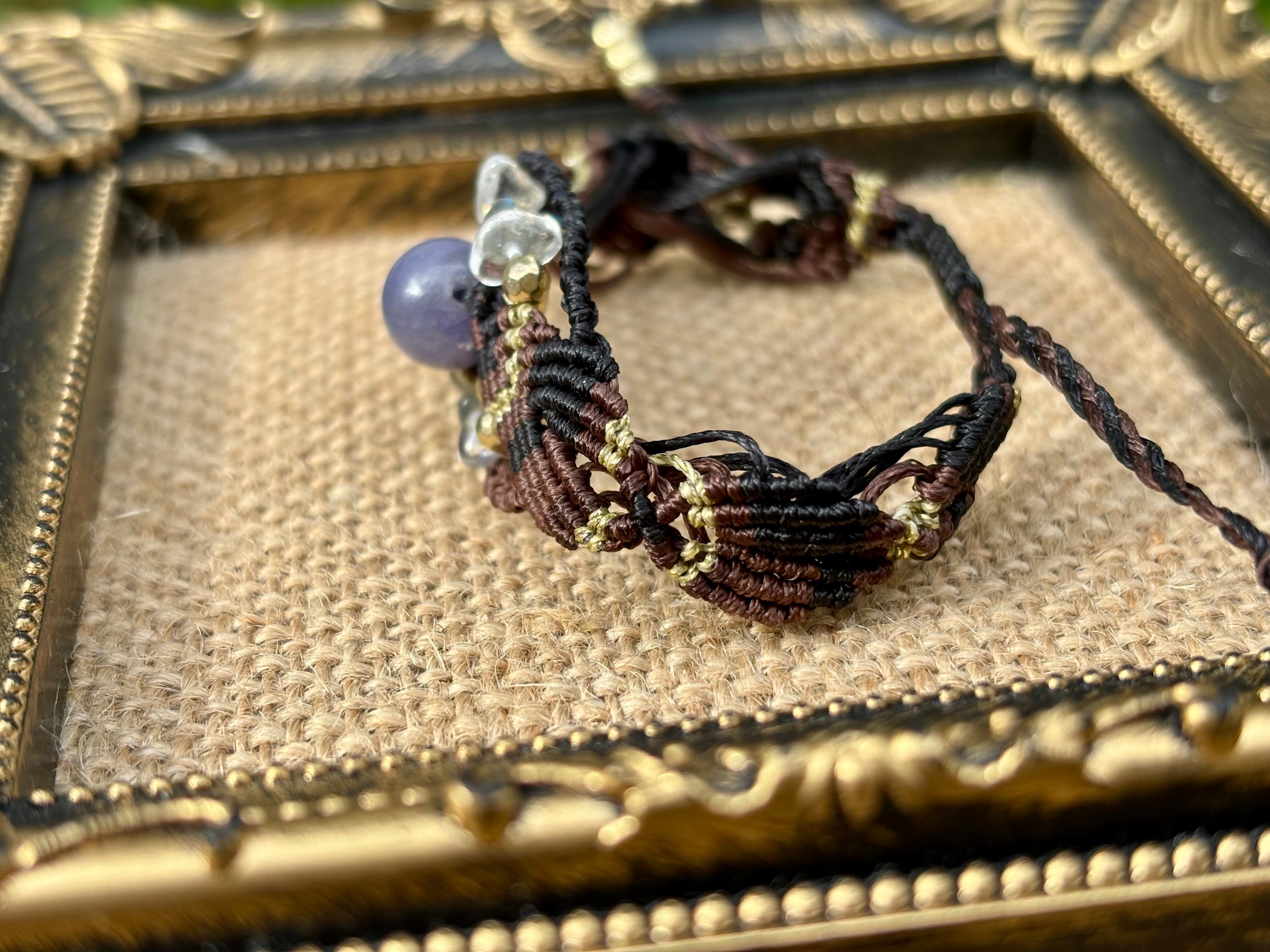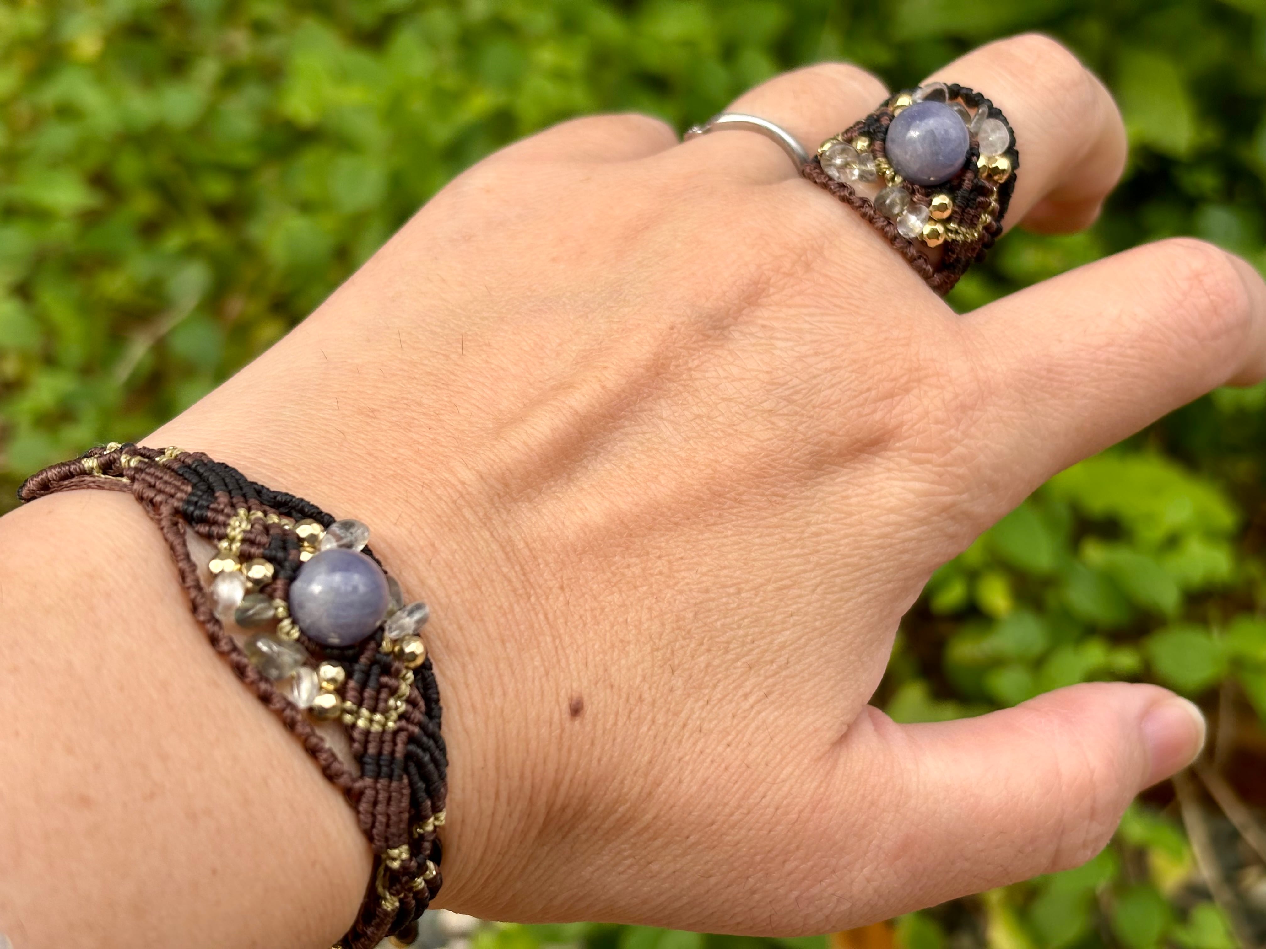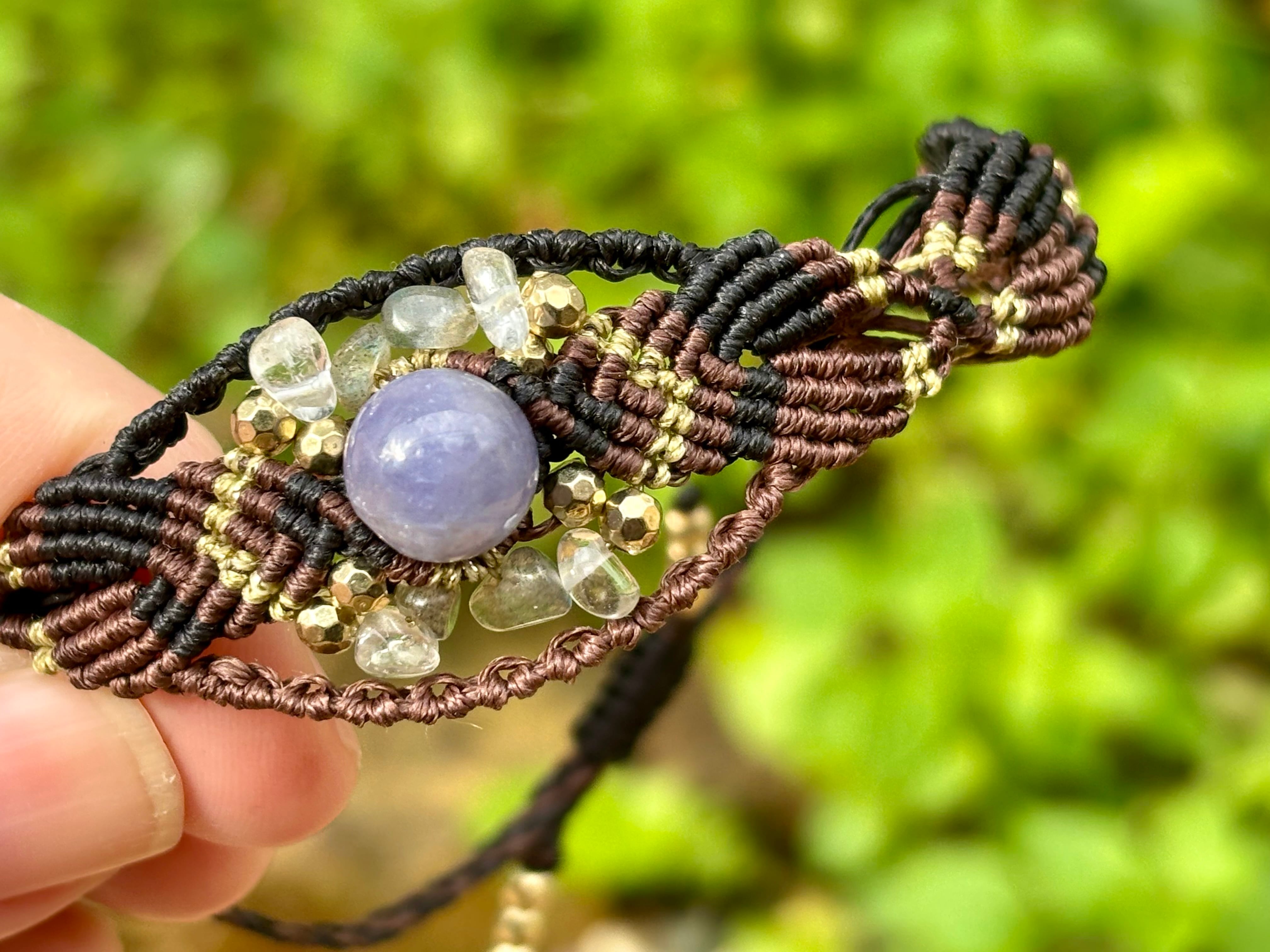 #894希少タンザナイト一点物(タンザナイト×水晶×ラブラドライト マクラメ編みブレスレット)