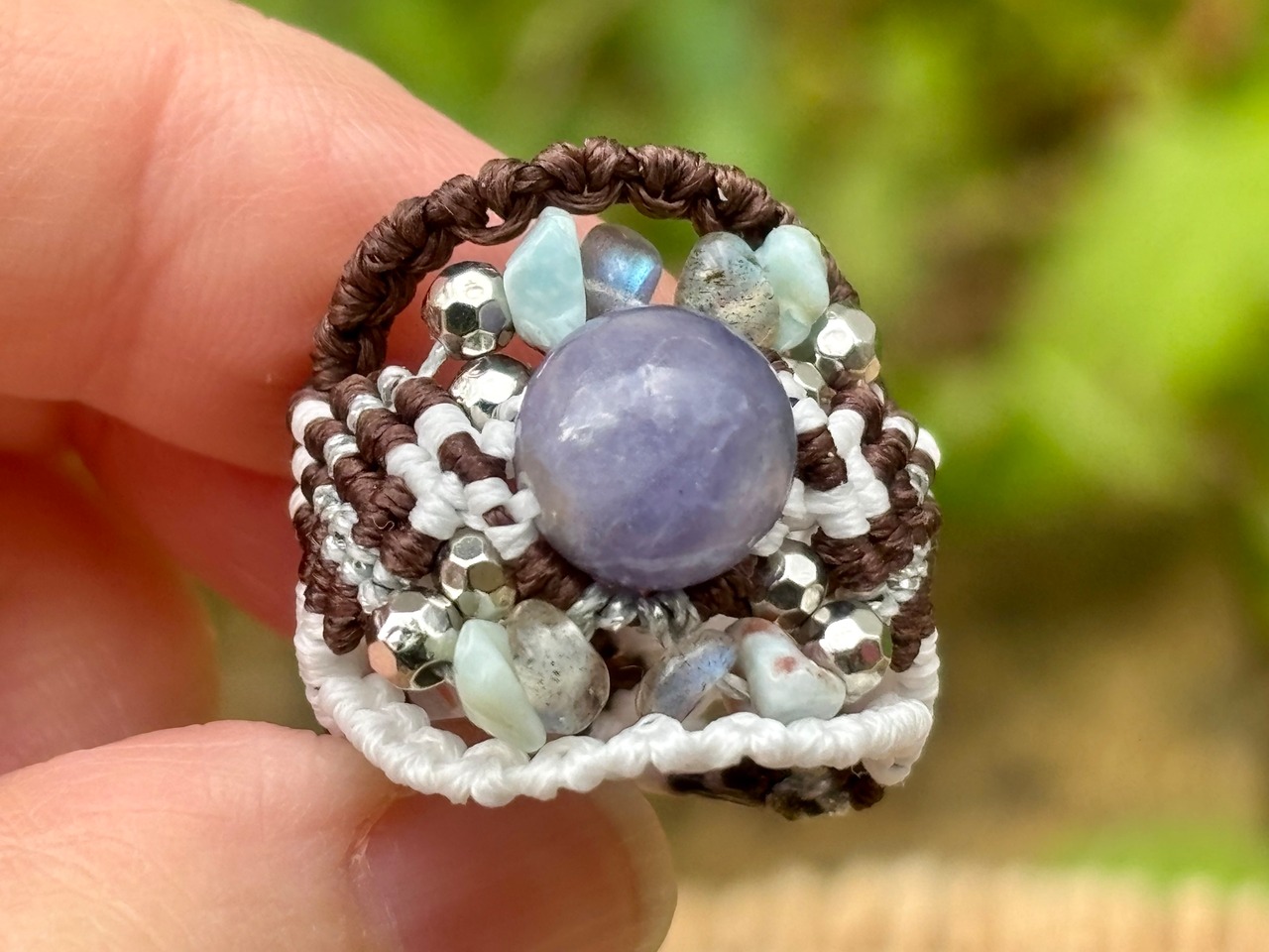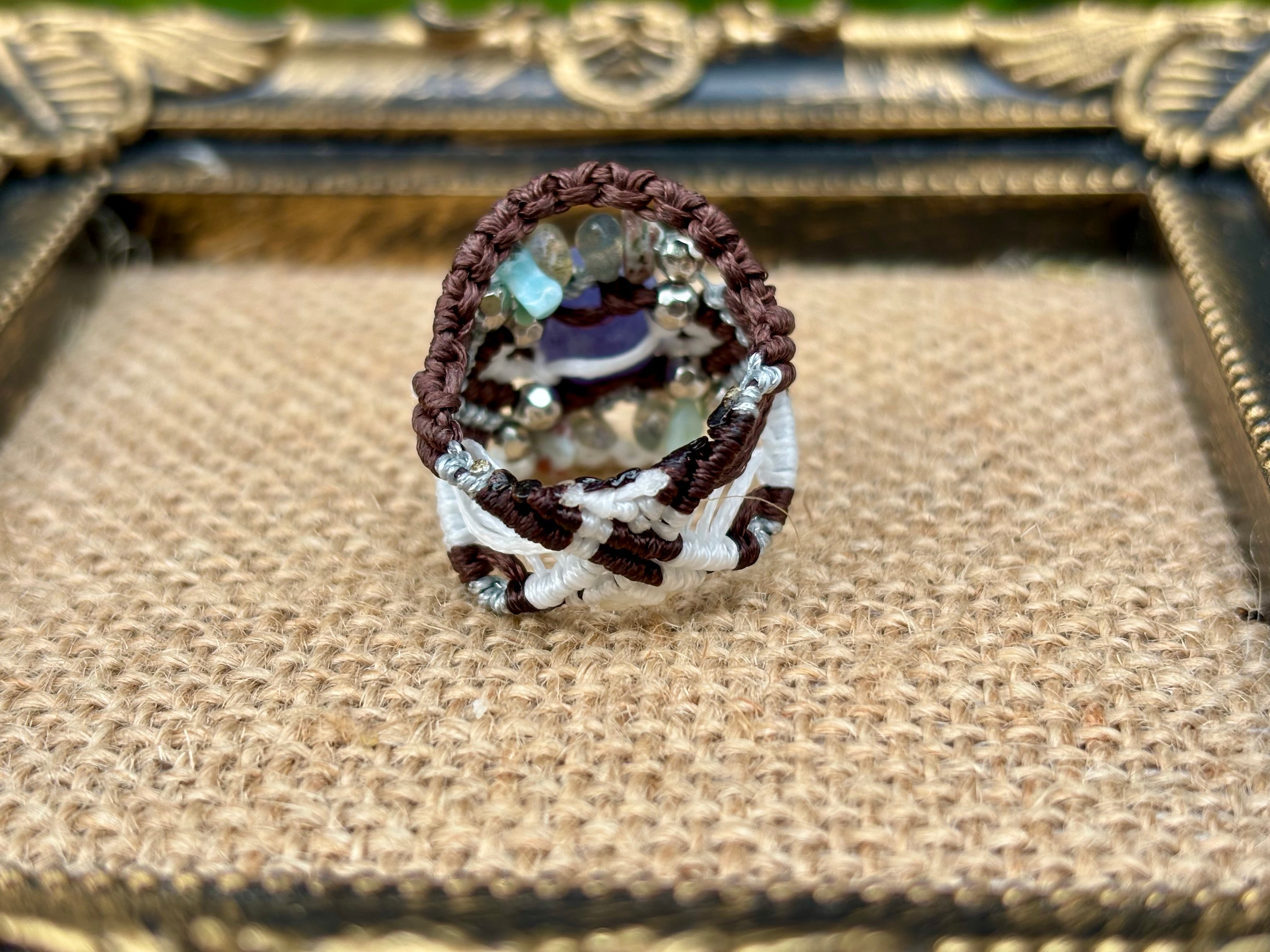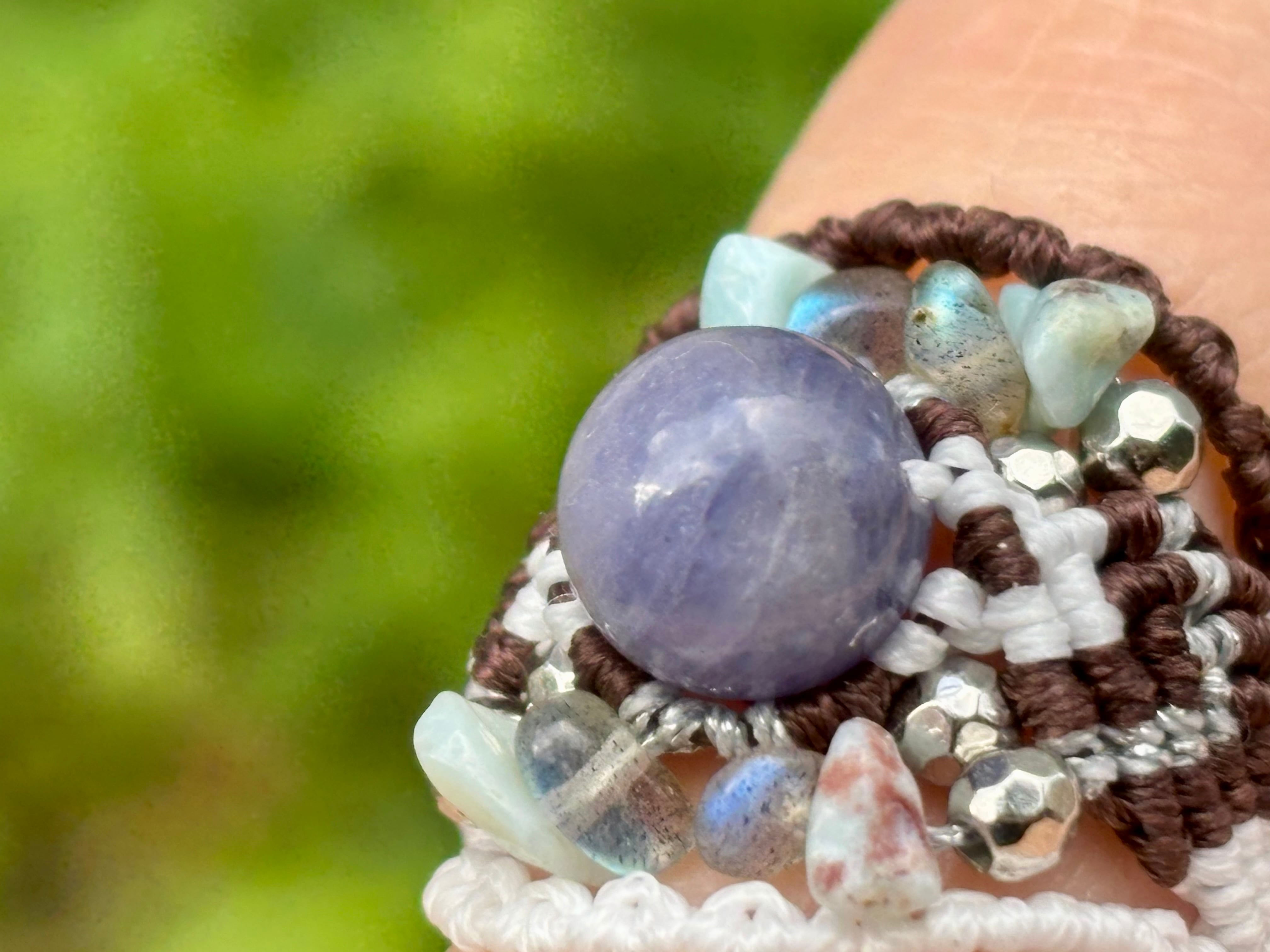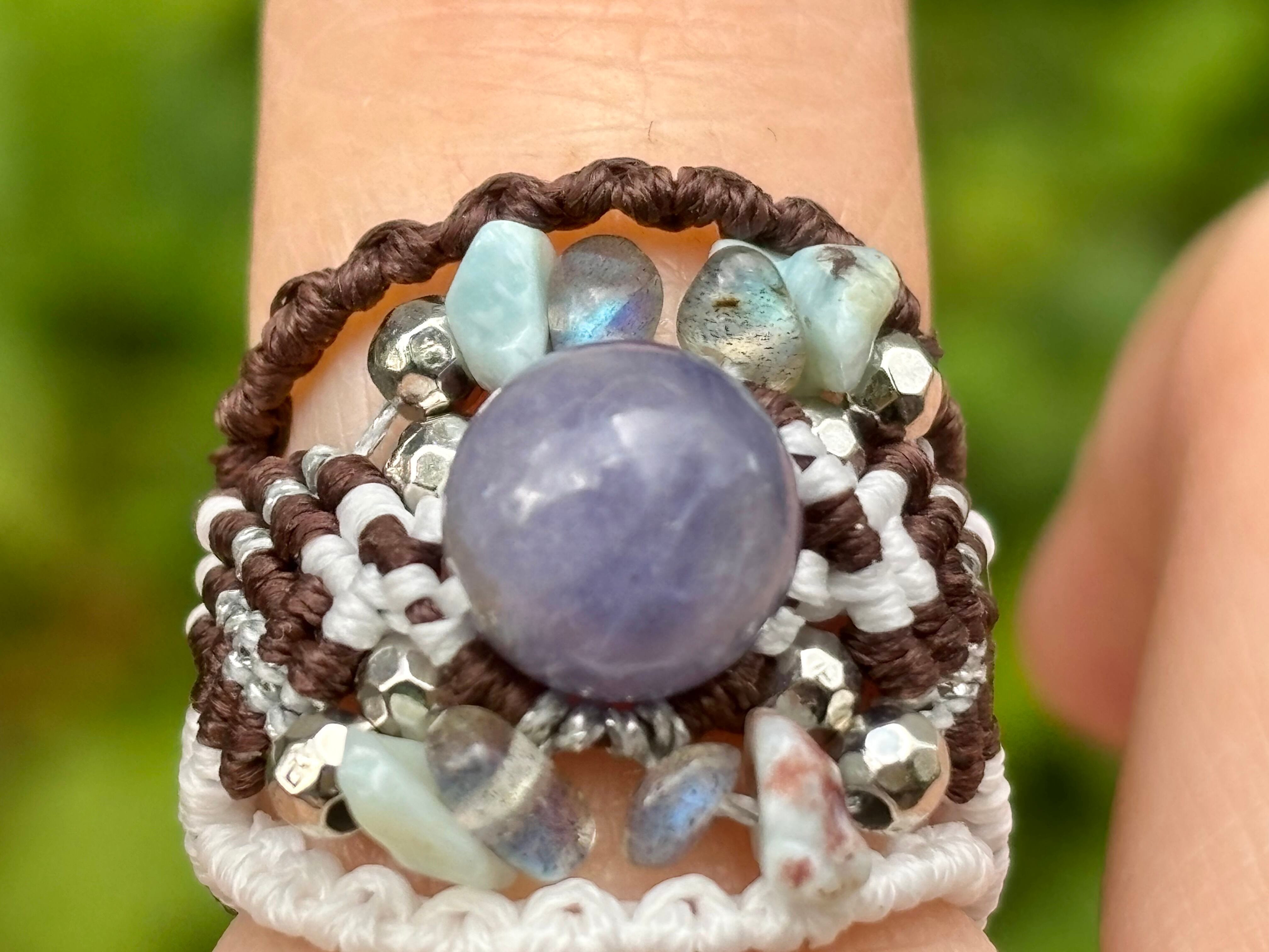 #895希少タンザナイト一点物(タンザナイト×ラリマー×ラブラドライト マクラメ編みリング/指輪)