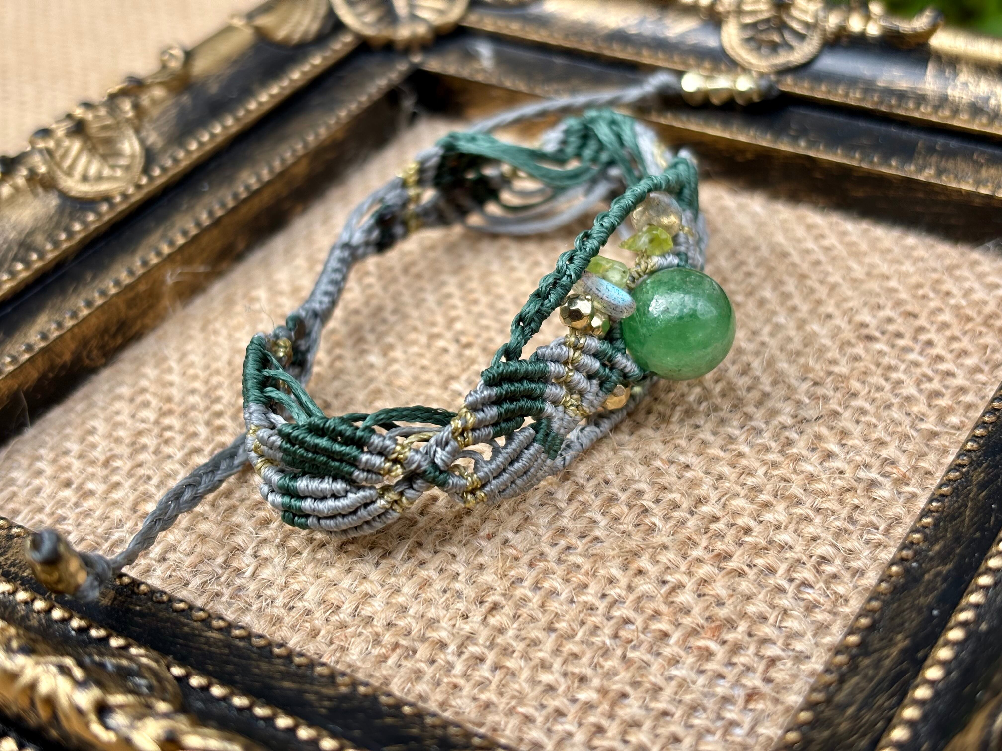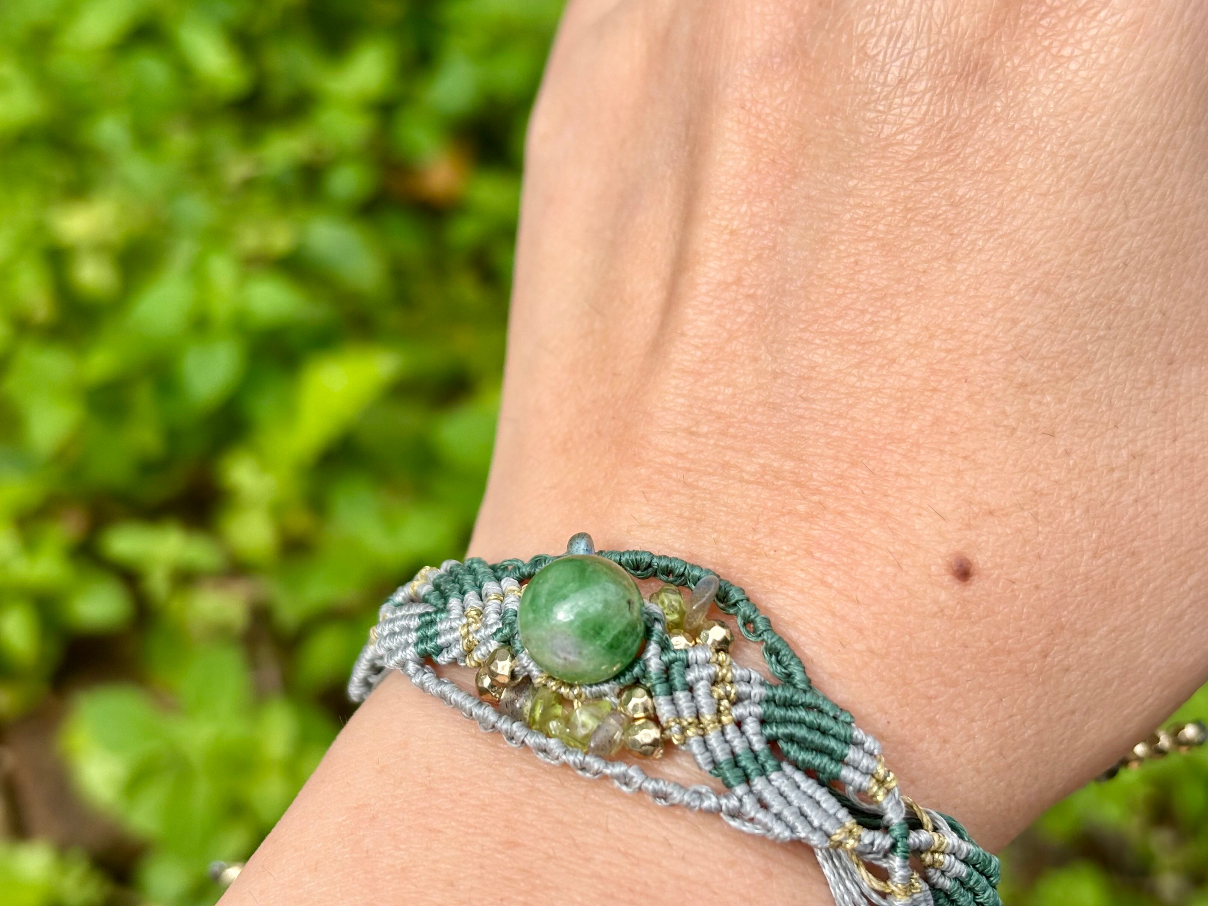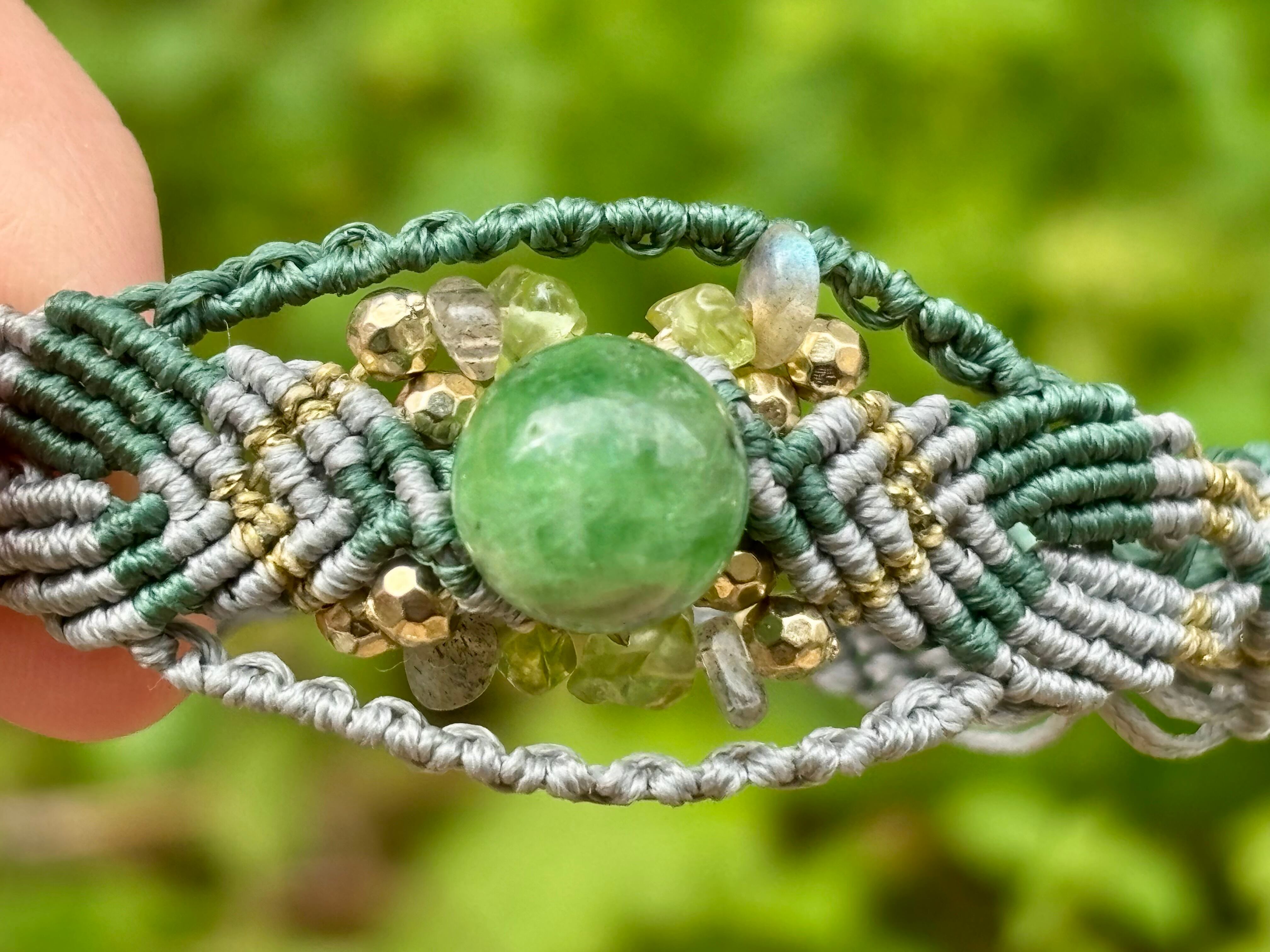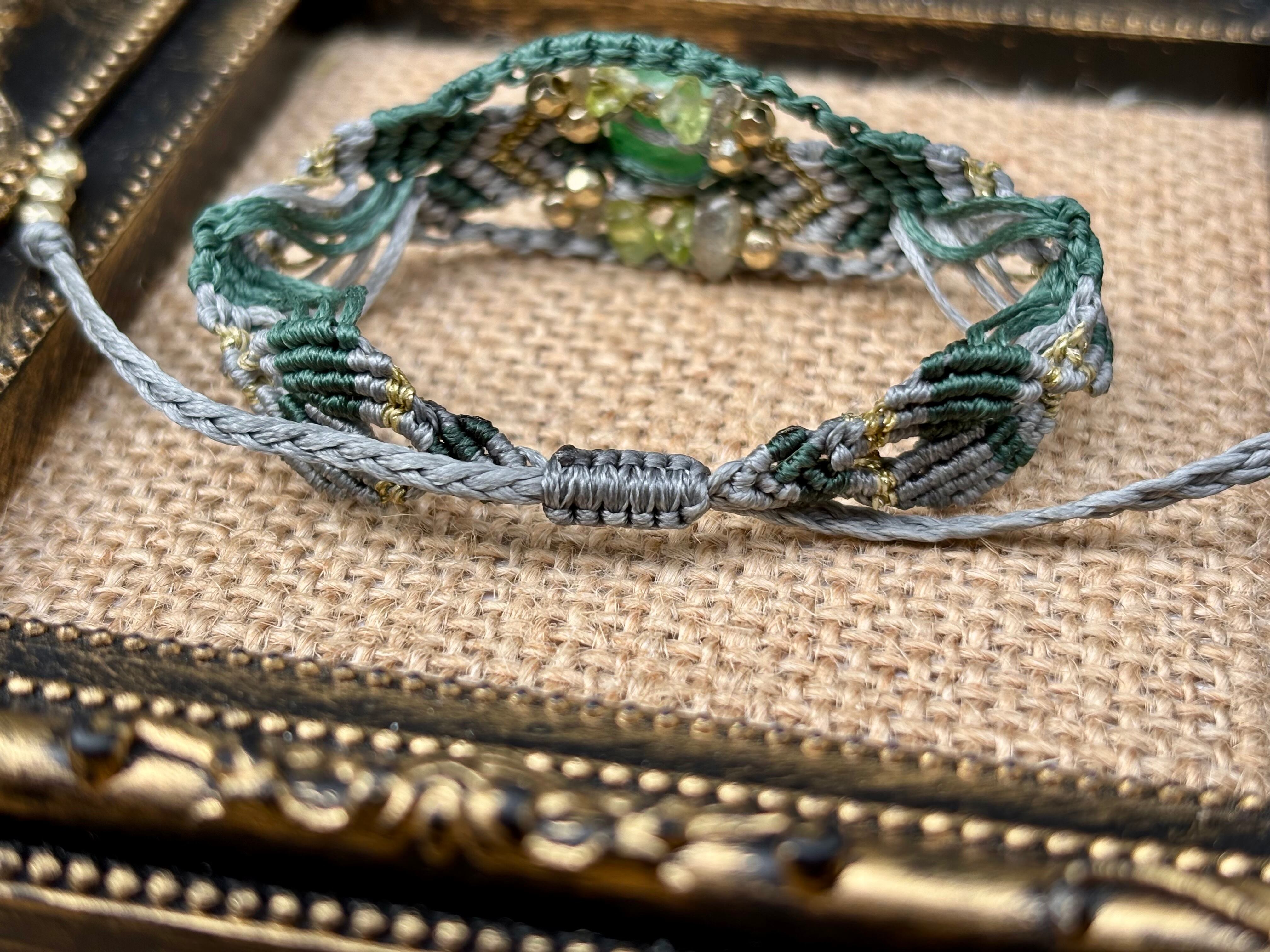 #900希少グリーンタンザナイト一点物(グリーンタンザナイト×ペリドット×ラブラドライト マクラメ編みブレスレット)