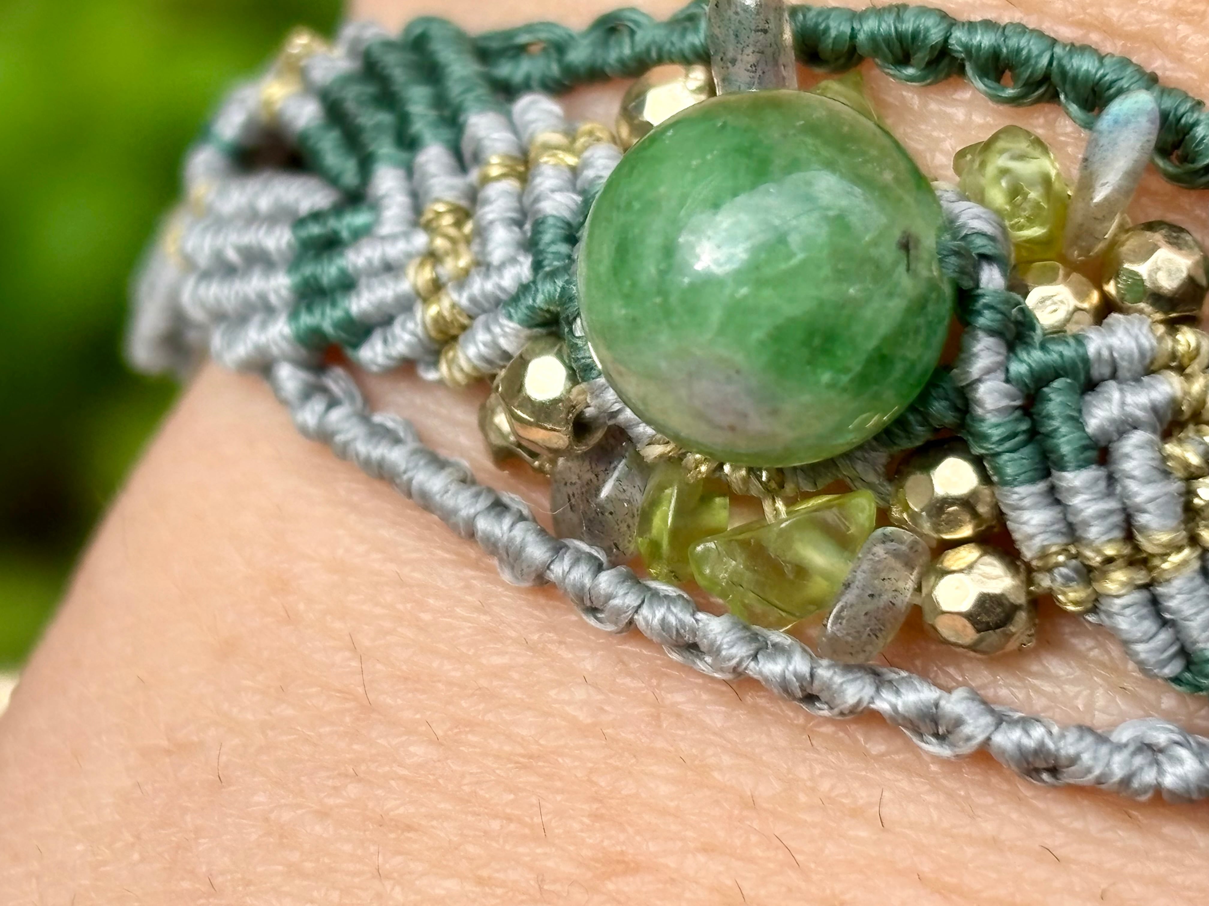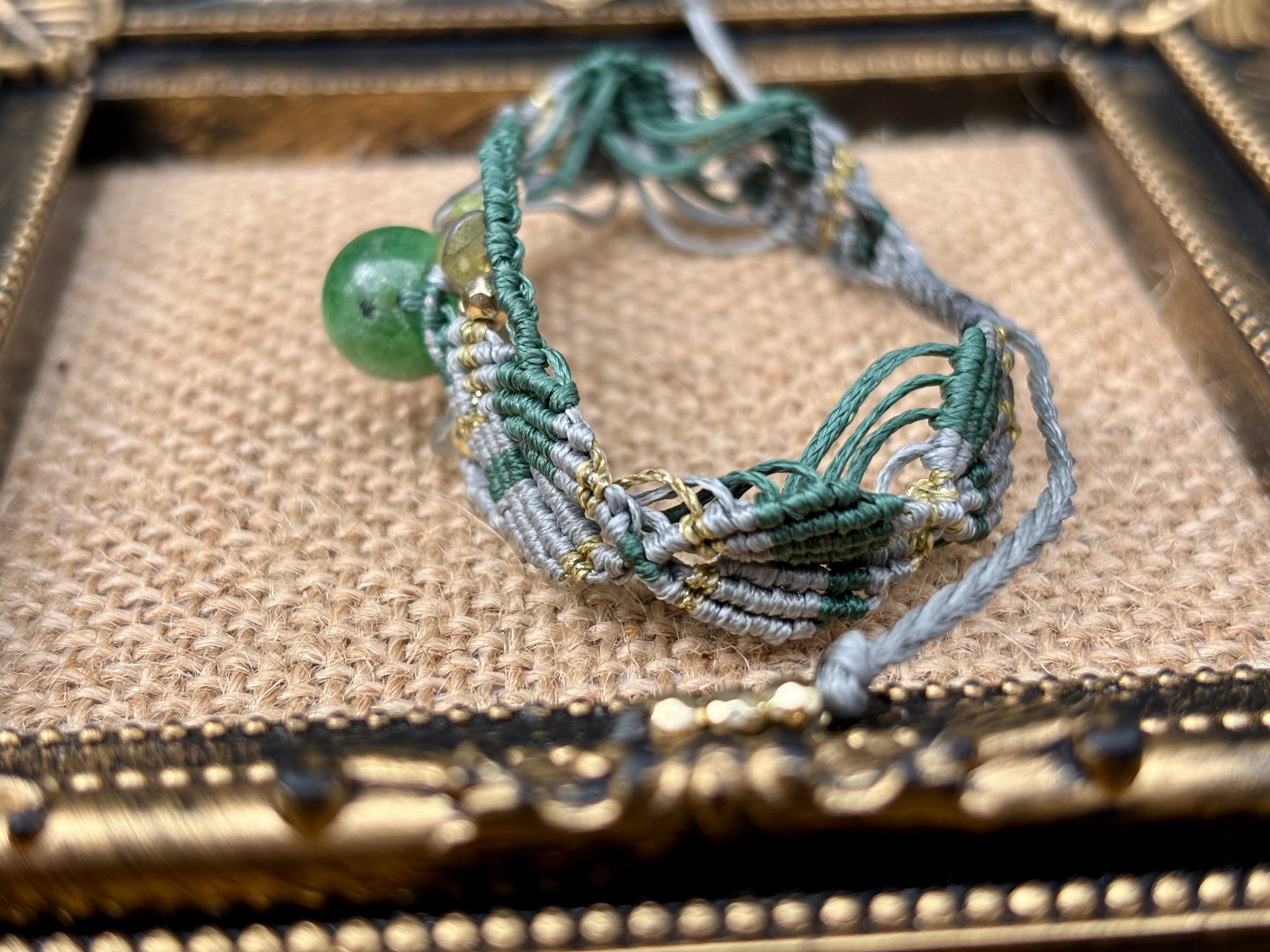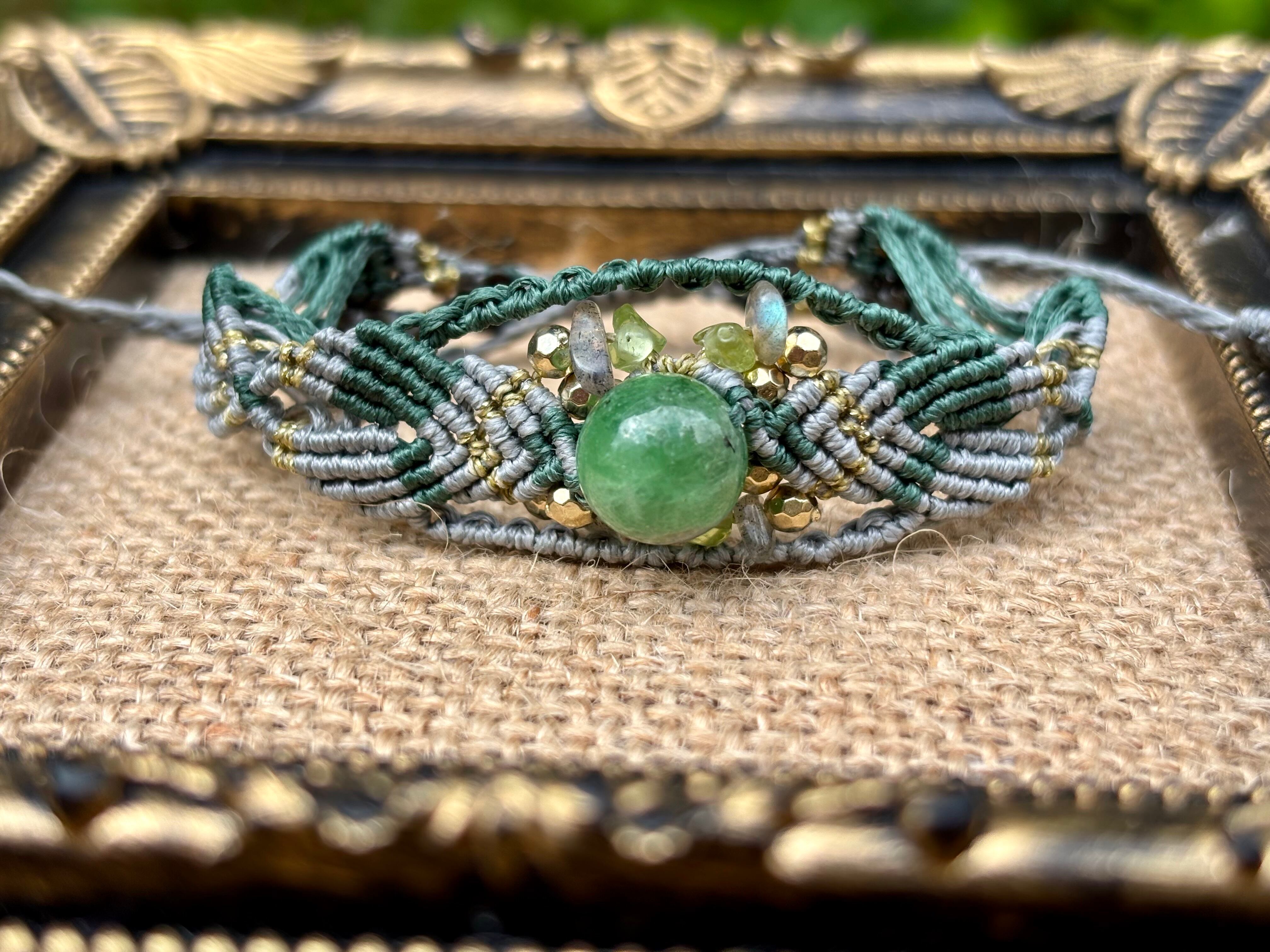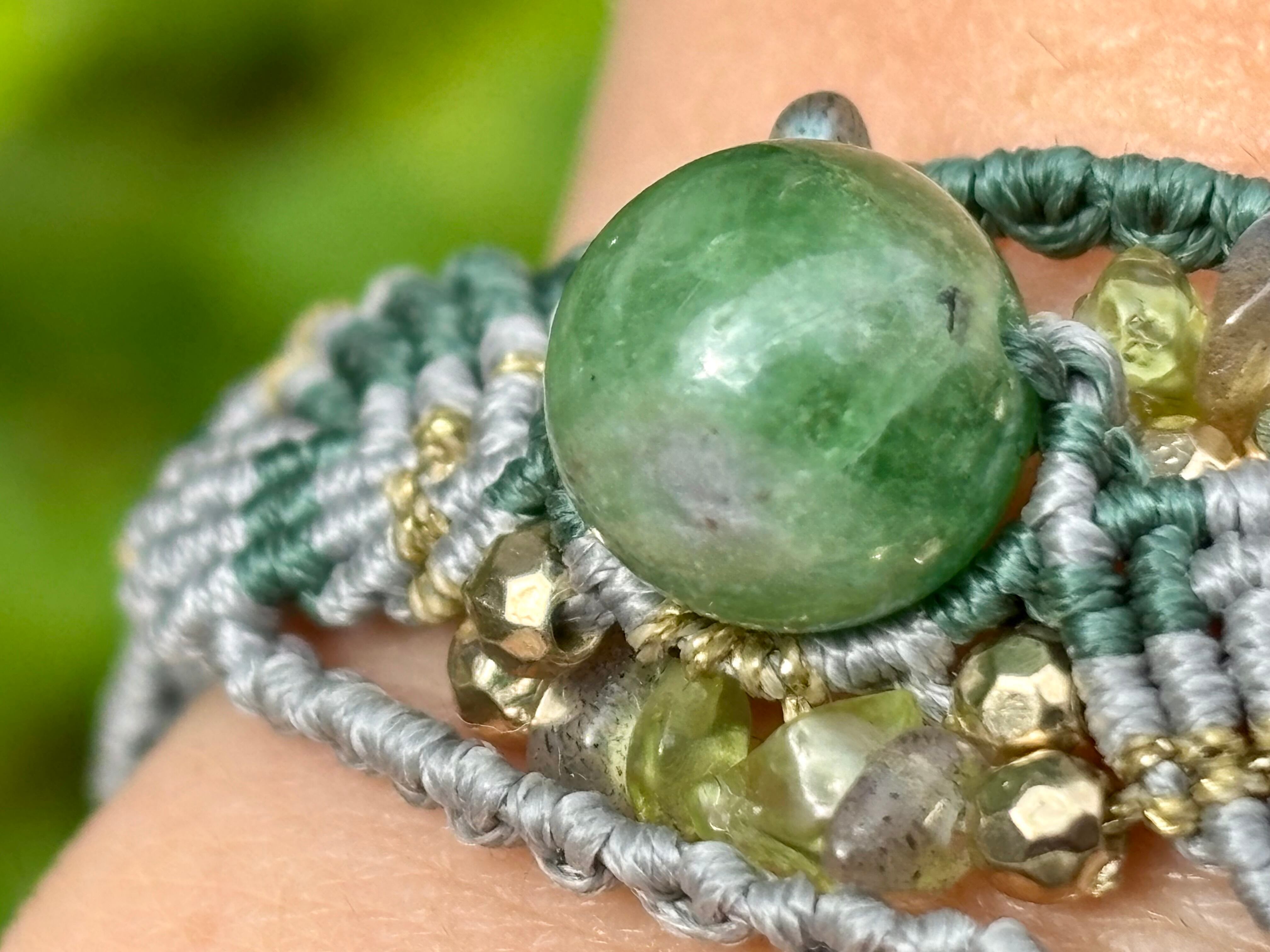 #900希少グリーンタンザナイト一点物(グリーンタンザナイト×ペリドット×ラブラドライト マクラメ編みブレスレット)