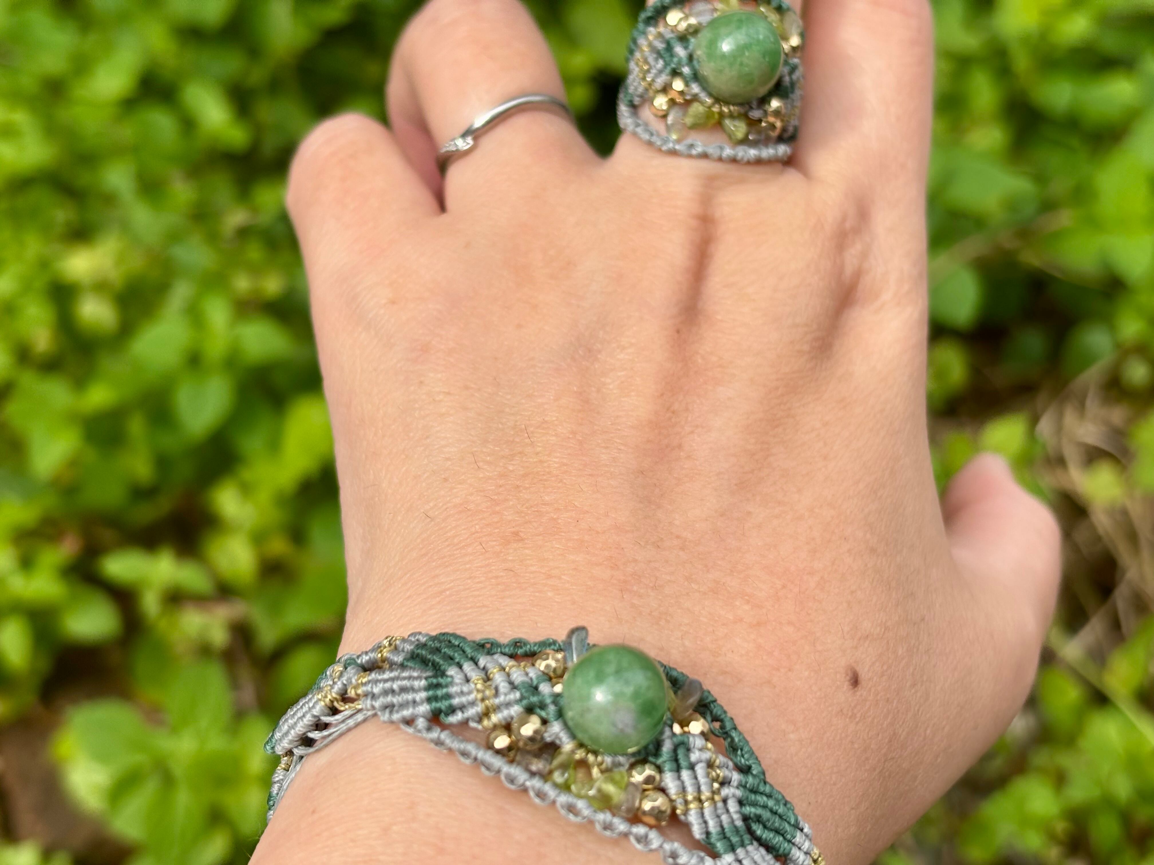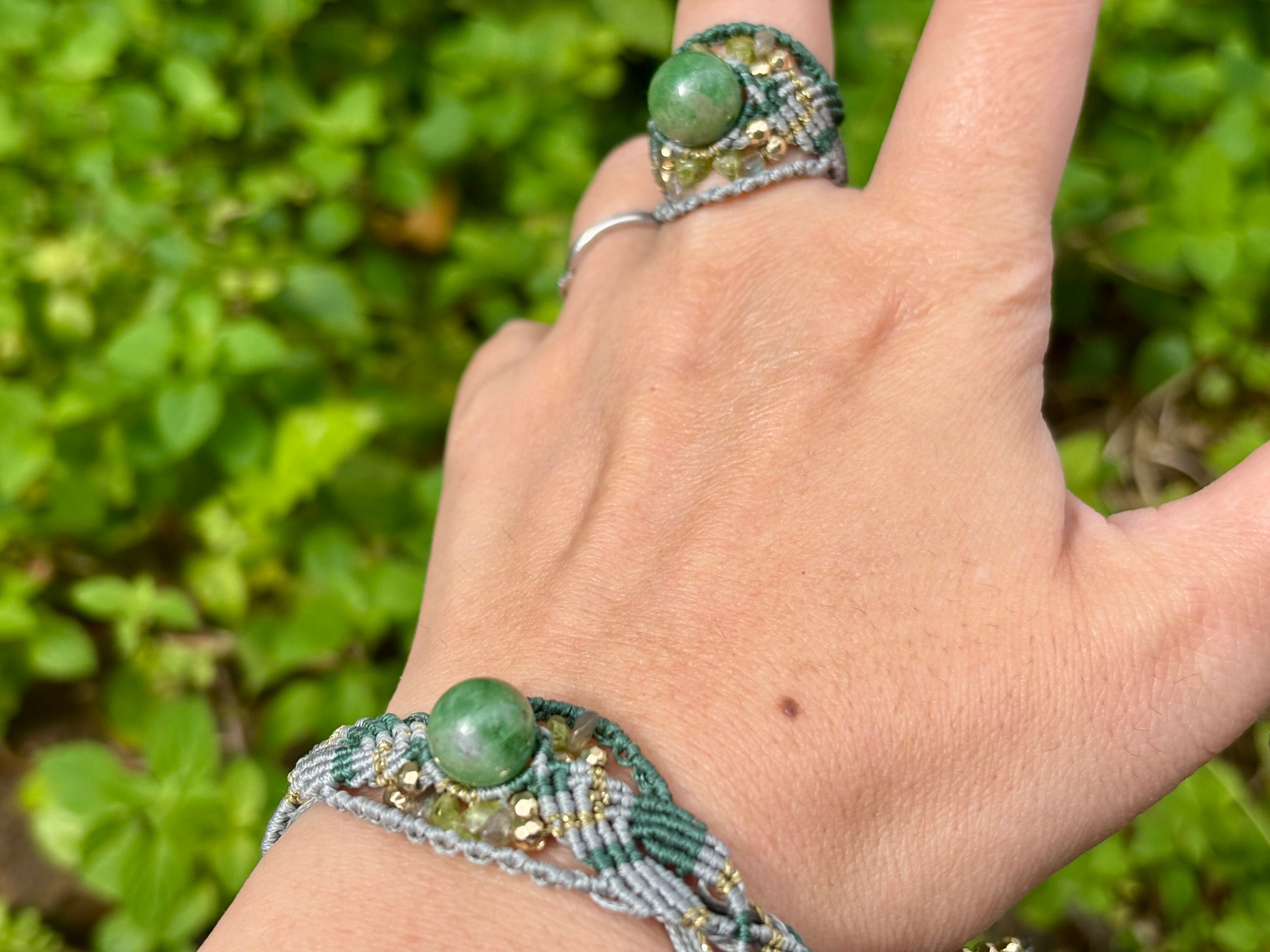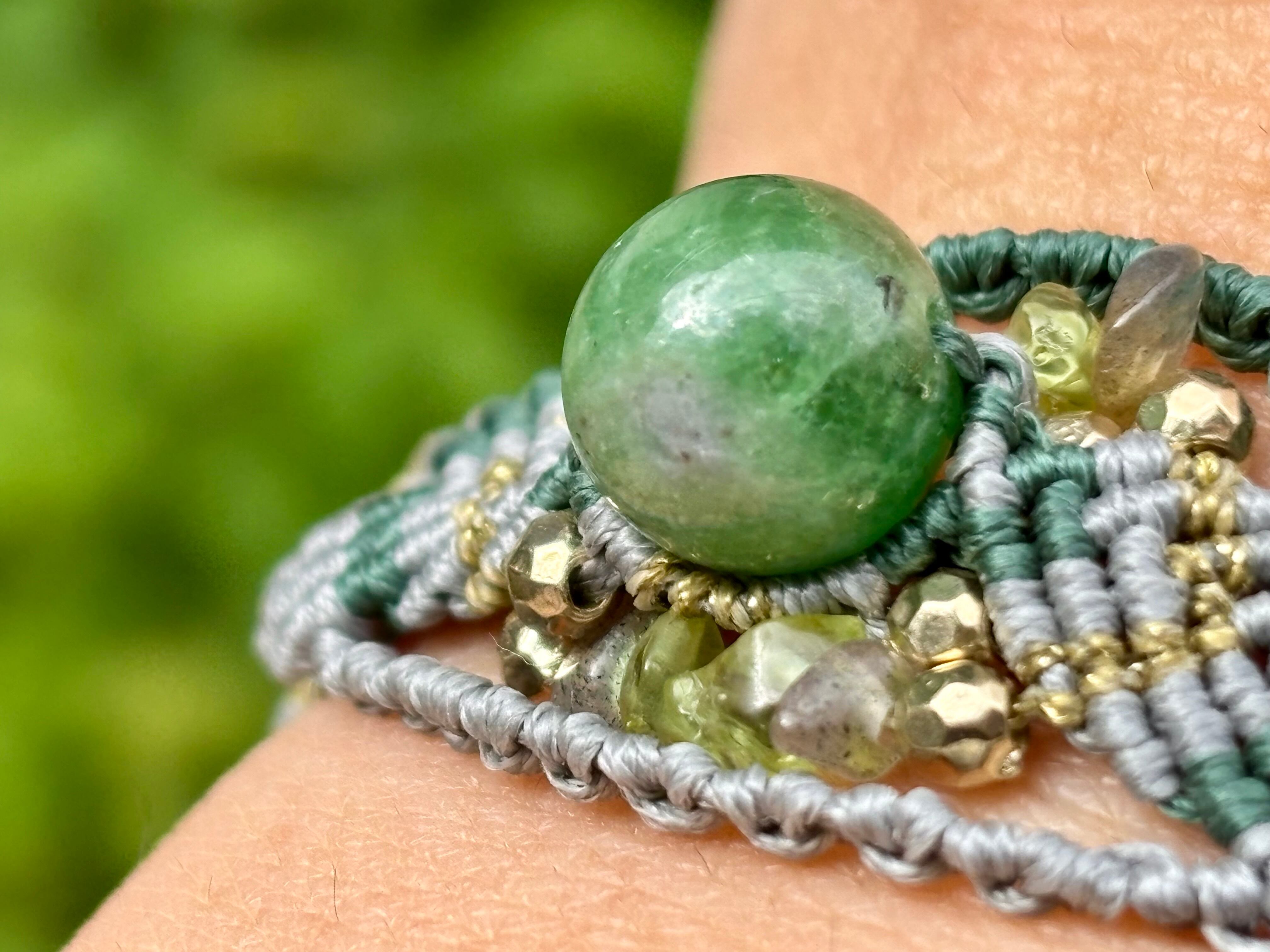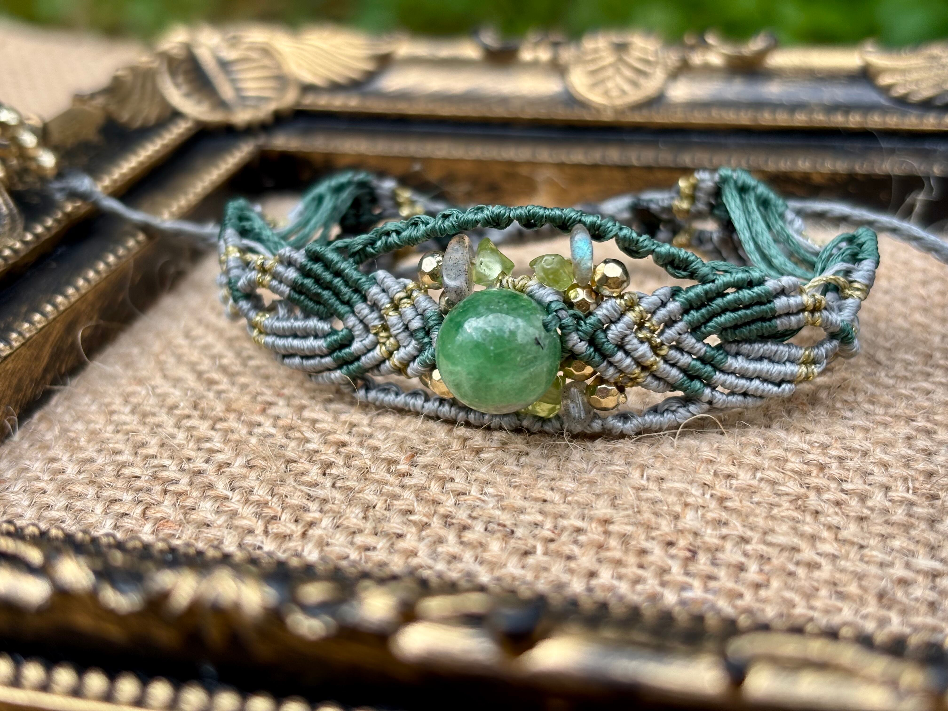 #900希少グリーンタンザナイト一点物(グリーンタンザナイト×ペリドット×ラブラドライト マクラメ編みブレスレット)