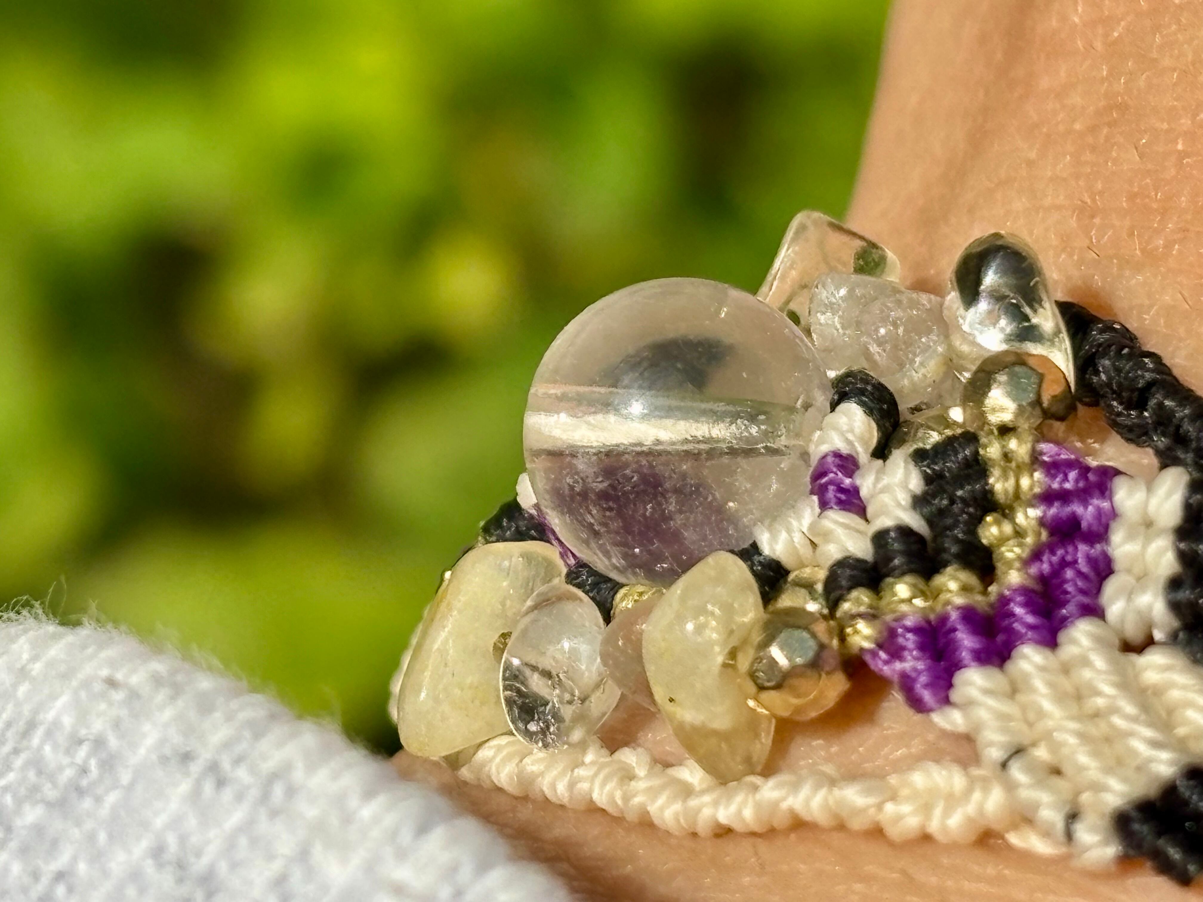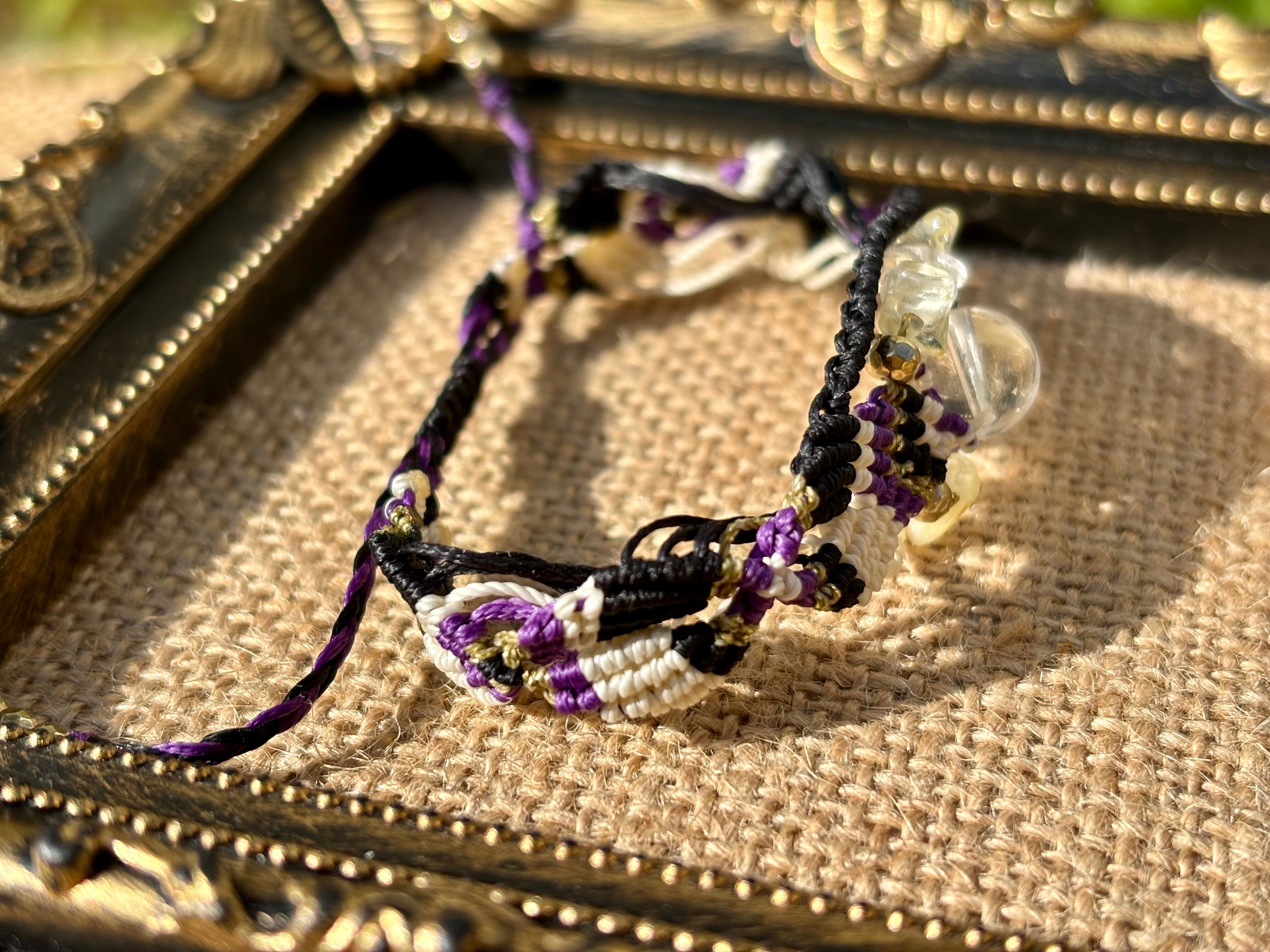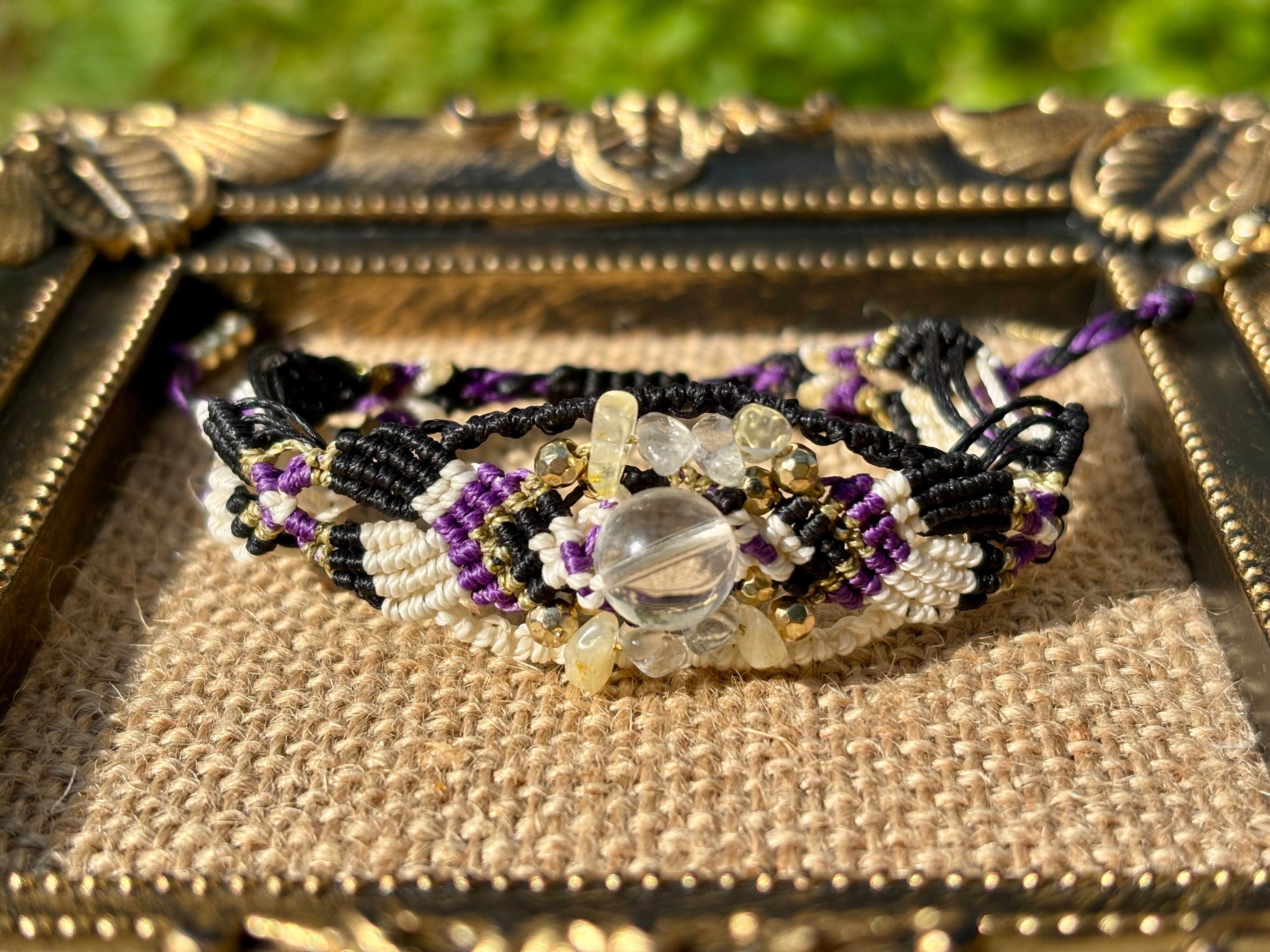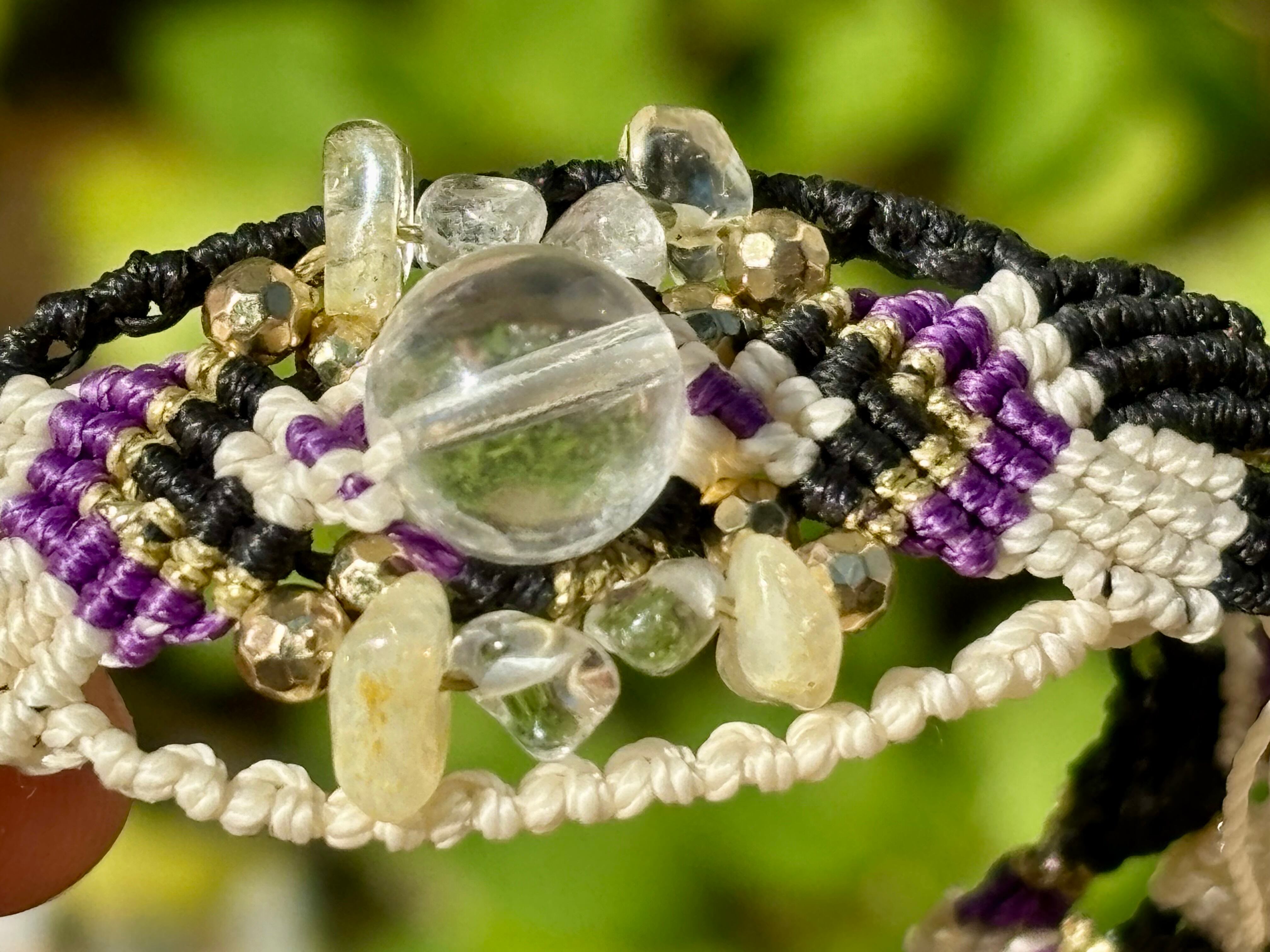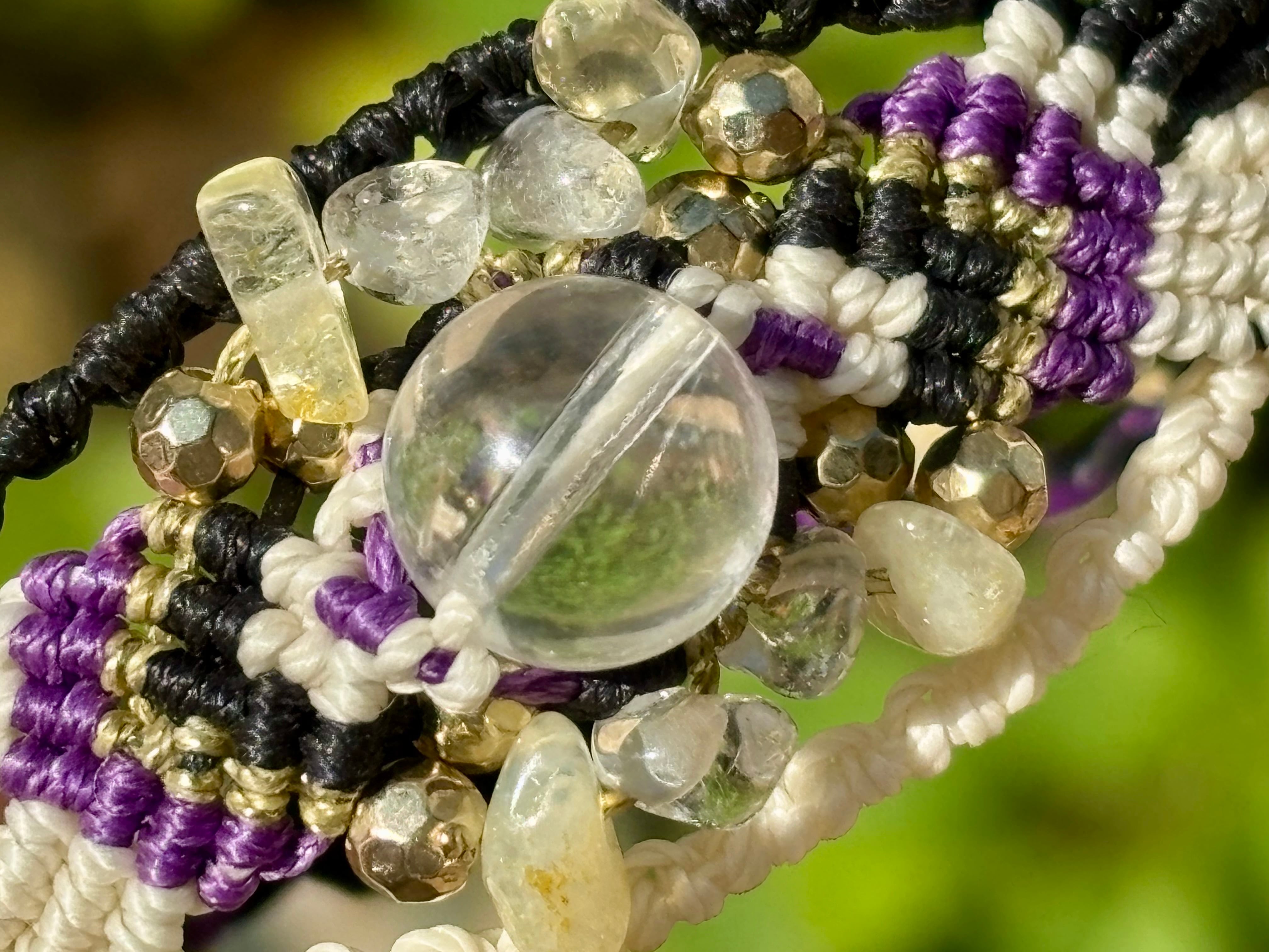#905高品質レムリアン水晶一点物(レムリアン水晶×水晶×シトリン マクラメ編みブレスレット)