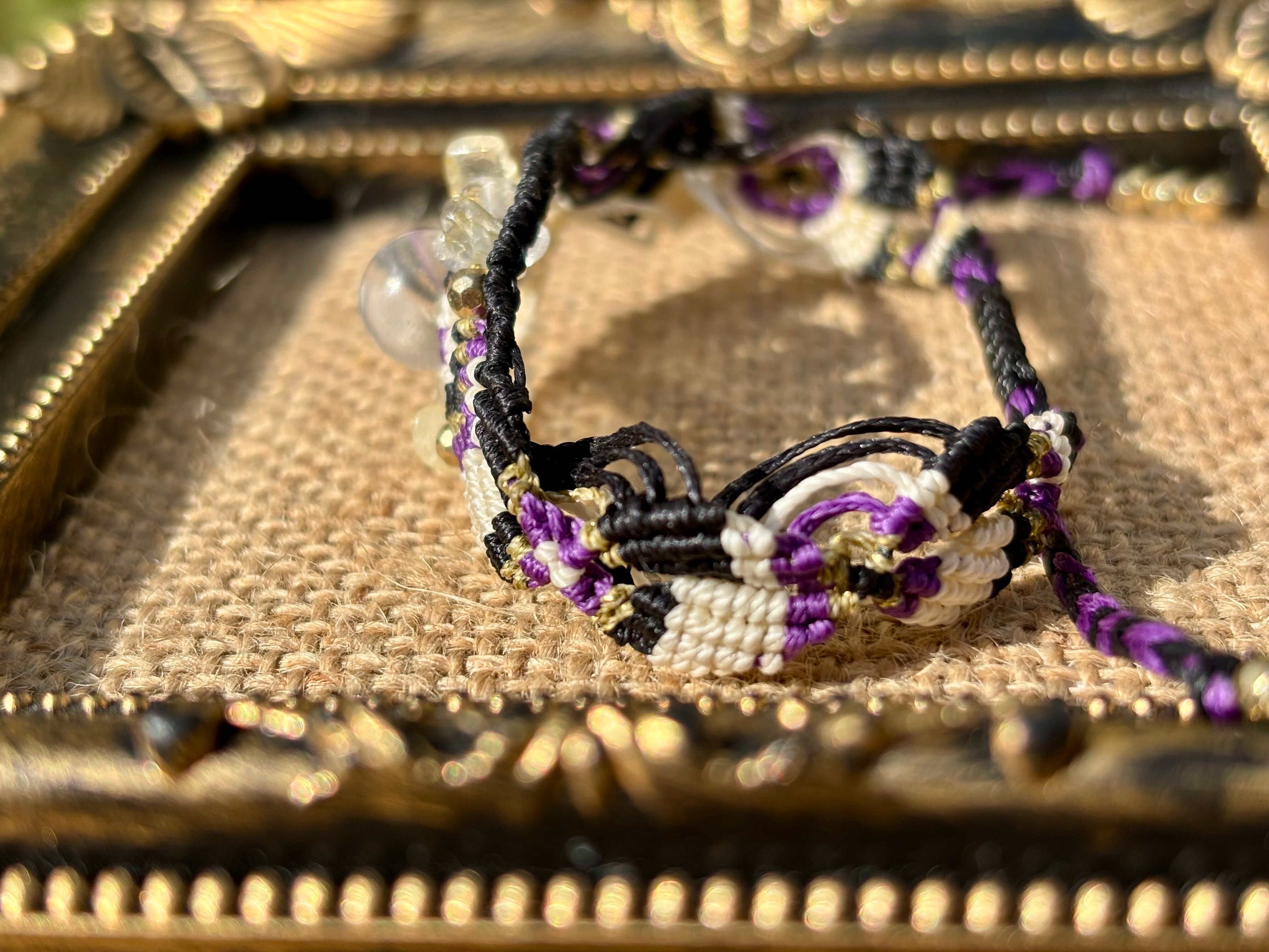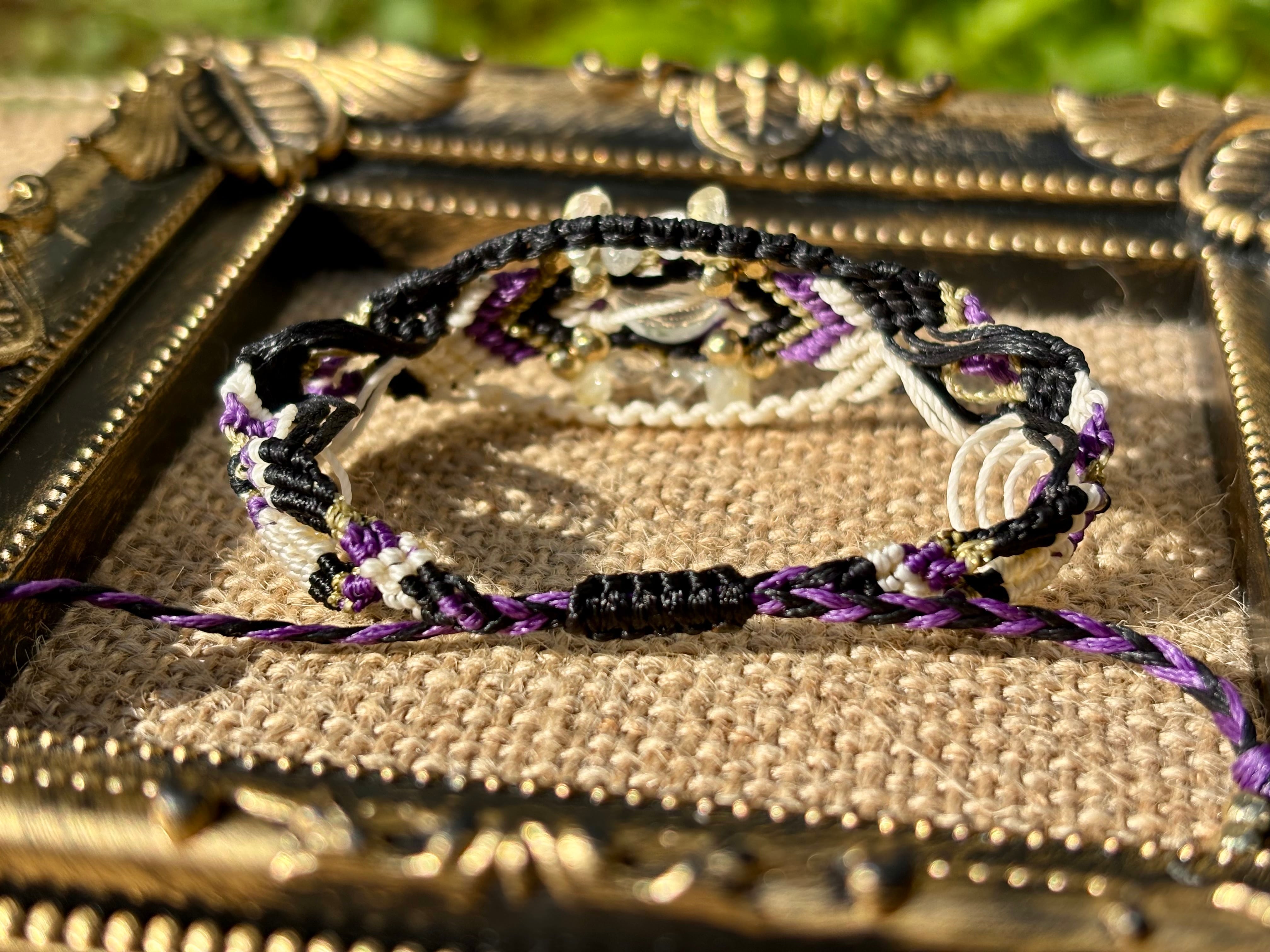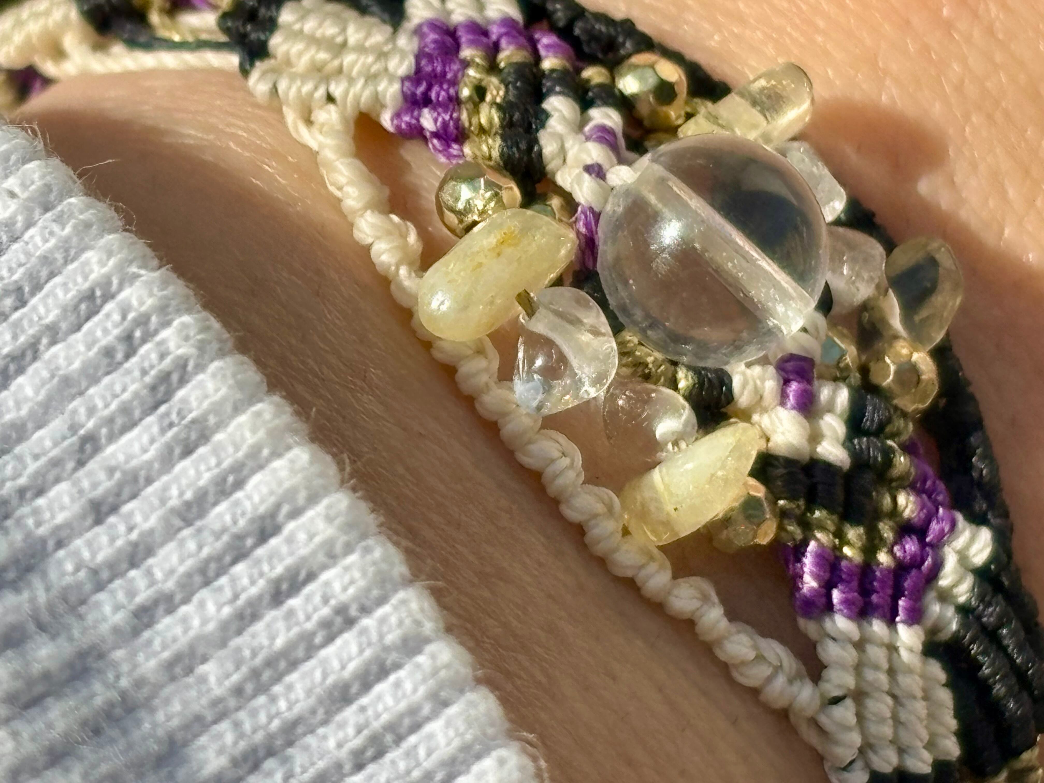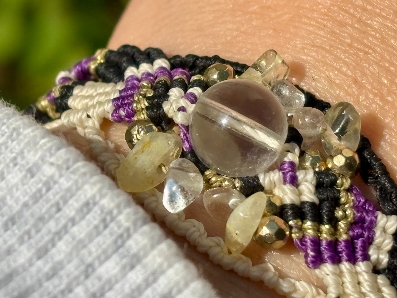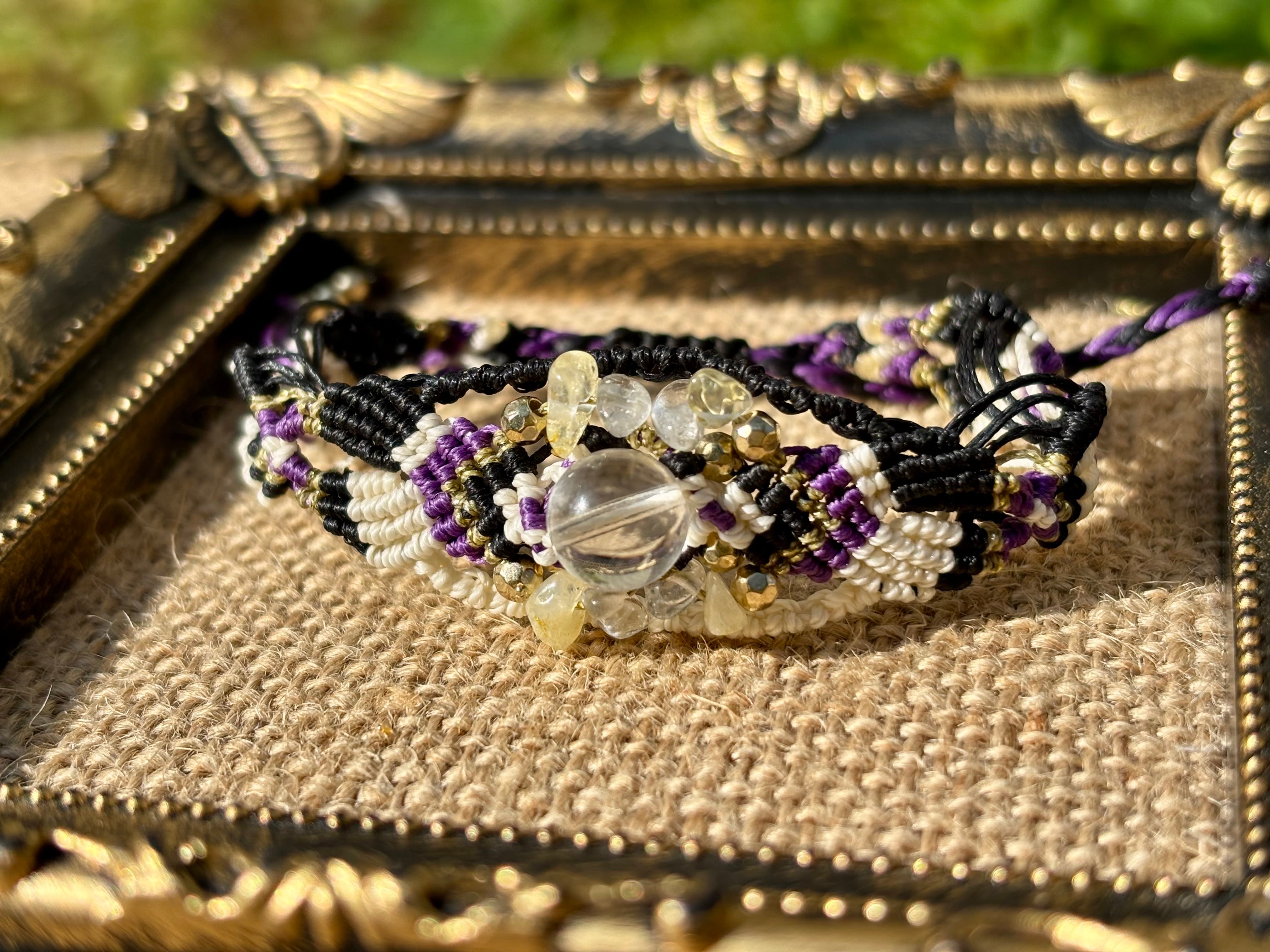 #905高品質レムリアン水晶一点物(レムリアン水晶×水晶×シトリン マクラメ編みブレスレット)
