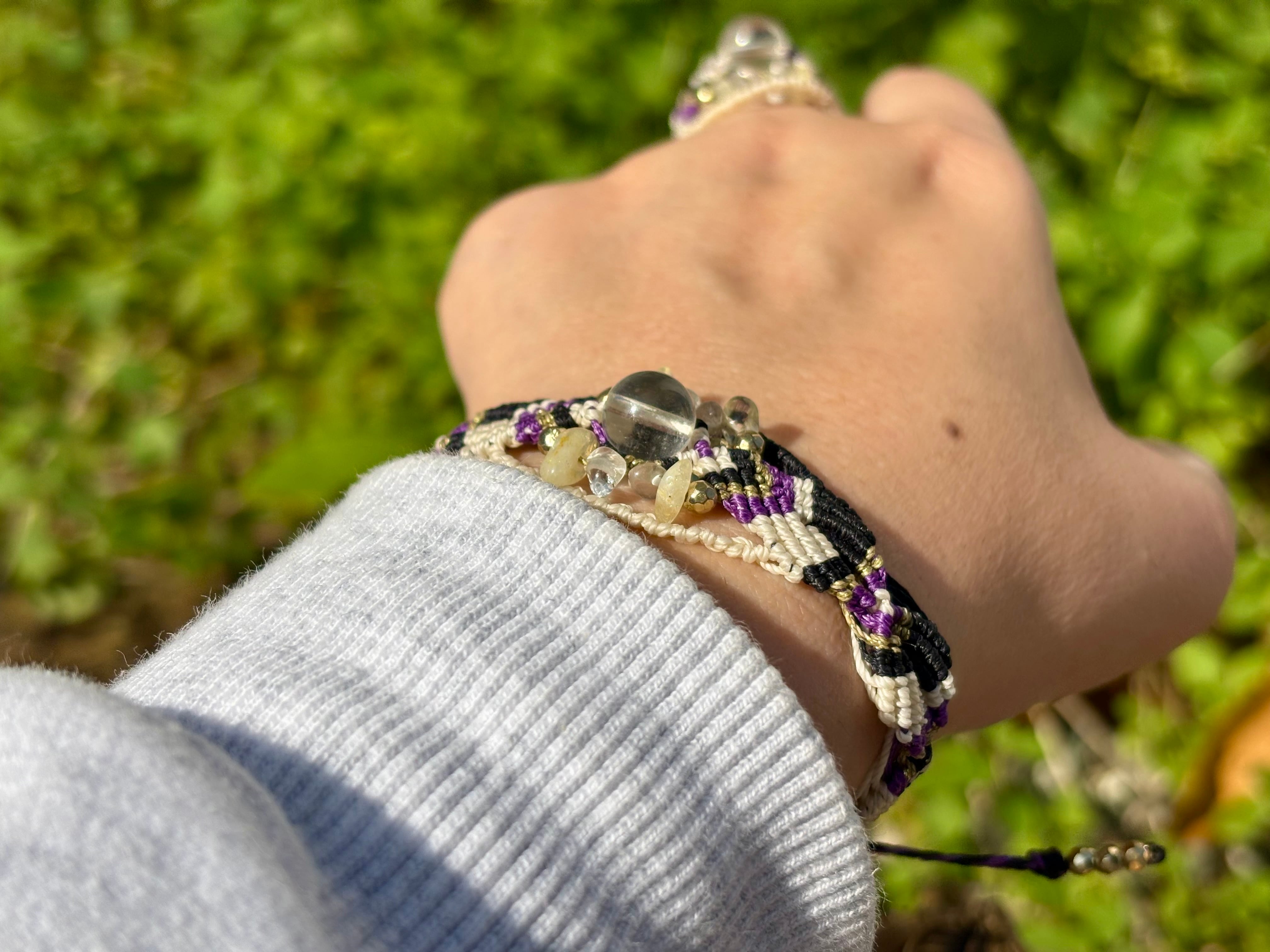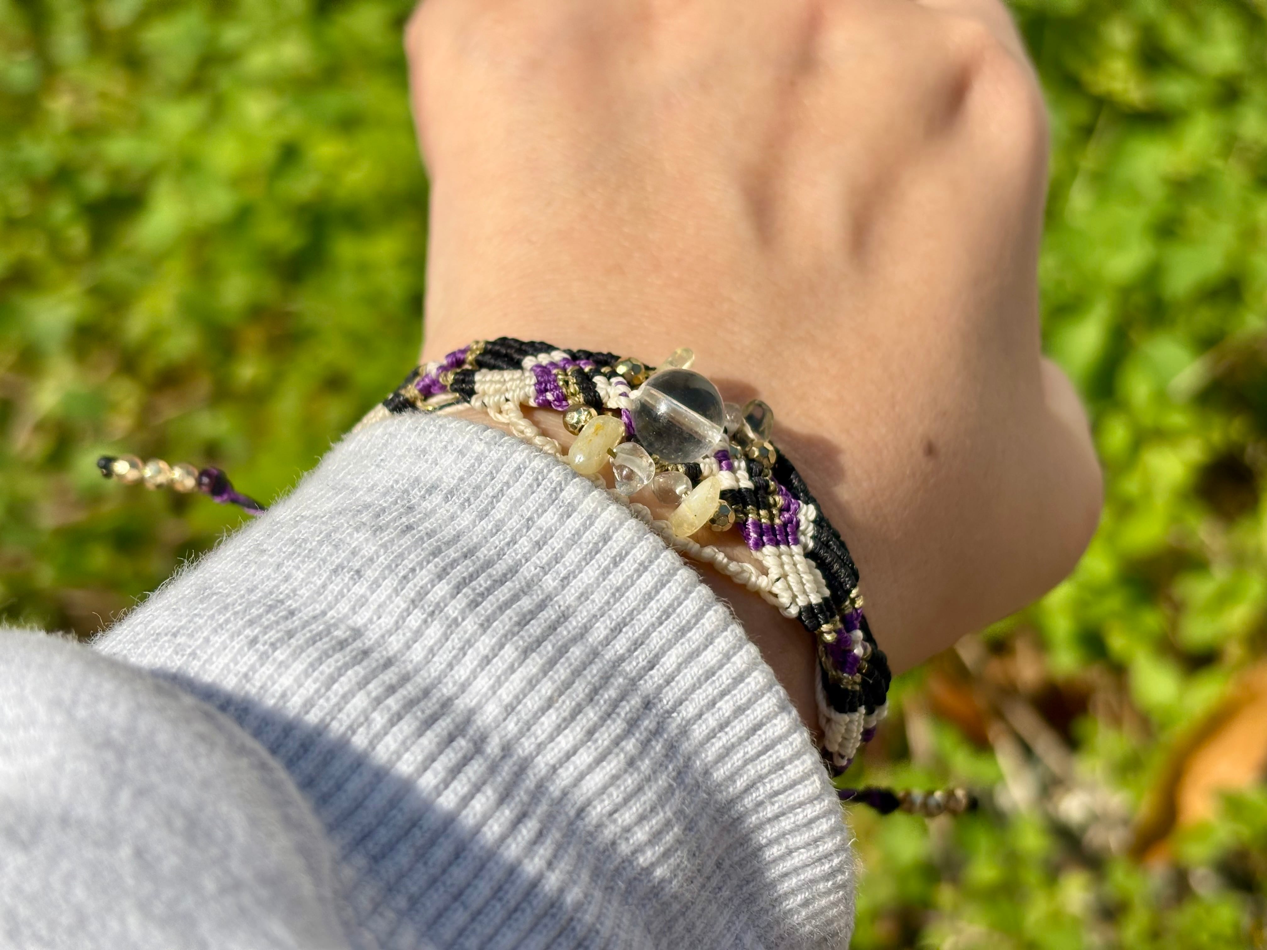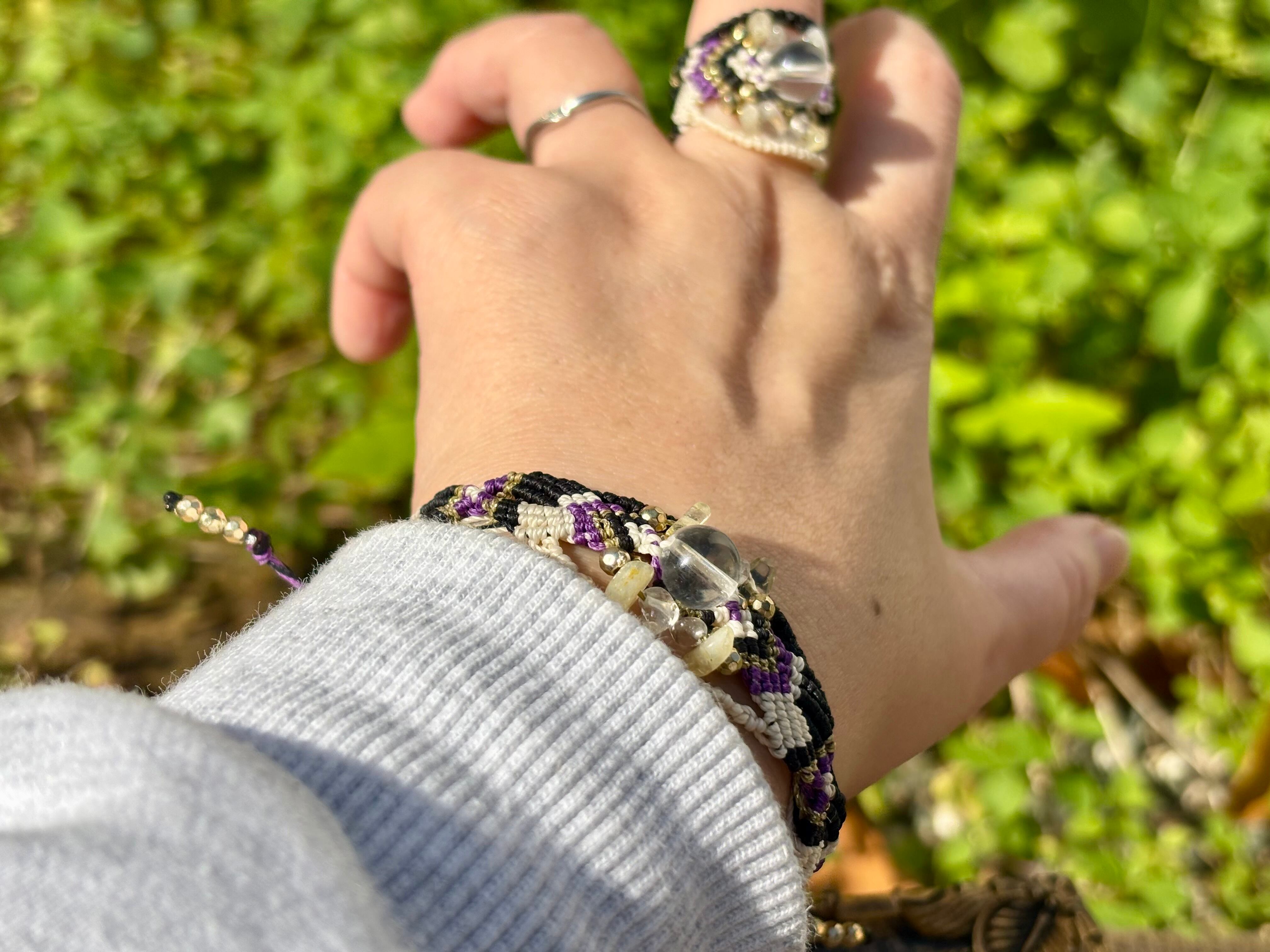 手作業で丁寧に編み込まれたこのブレスレットは、日常のコーディネートに華を添えるだけでなく、特別な場面でも存在感を発揮します。