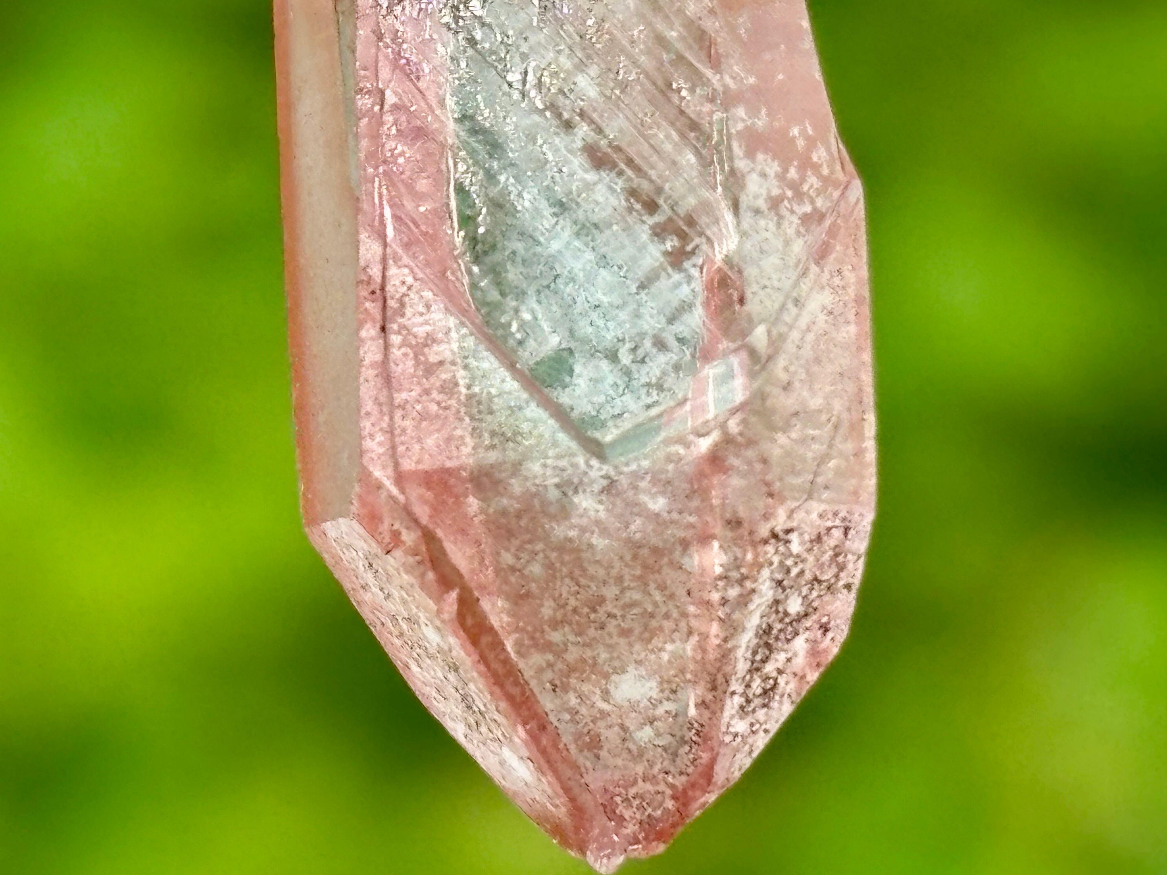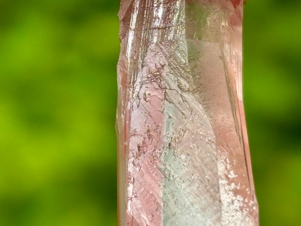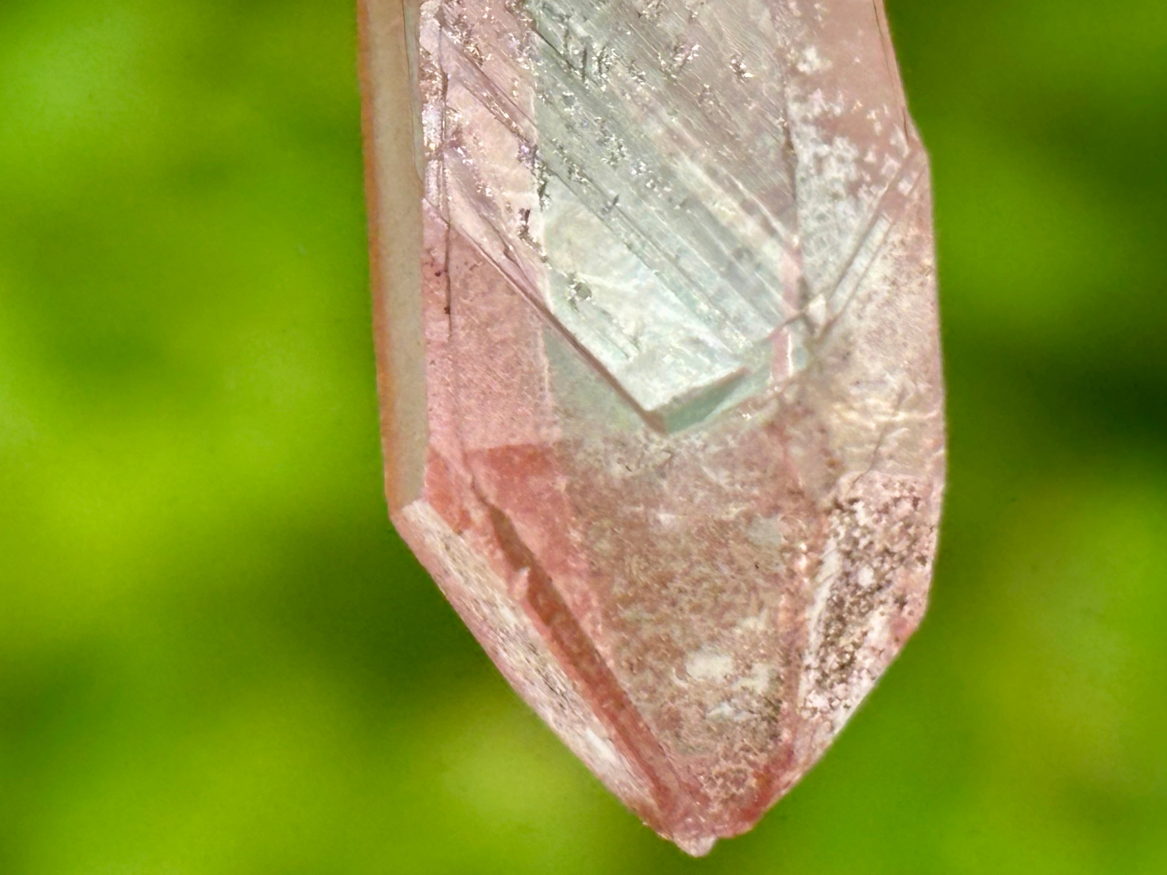 ピンクレムリアンシードは、ブラジルで発見された希少なレムリアンシードクリスタルの一種で、ヘマタイトなどの鉄分が付着することでピンク色を帯びたものです。その表面にはバーコードのような「レムリアンリッジ」と呼ばれる条線があり、古代レムリア人の叡智が宿っているとされ、インスピレーションや自己覚醒を促すと信じられています。