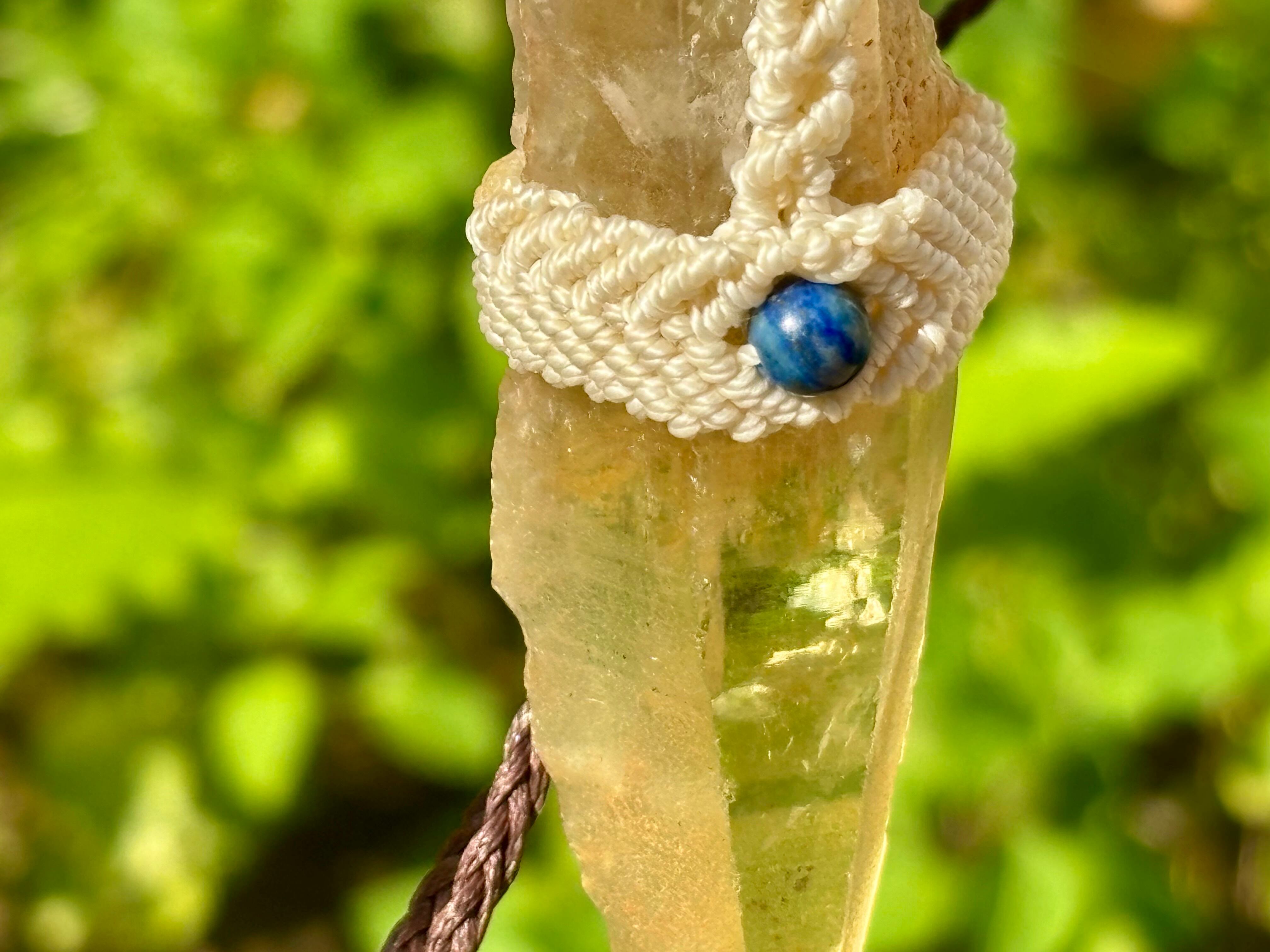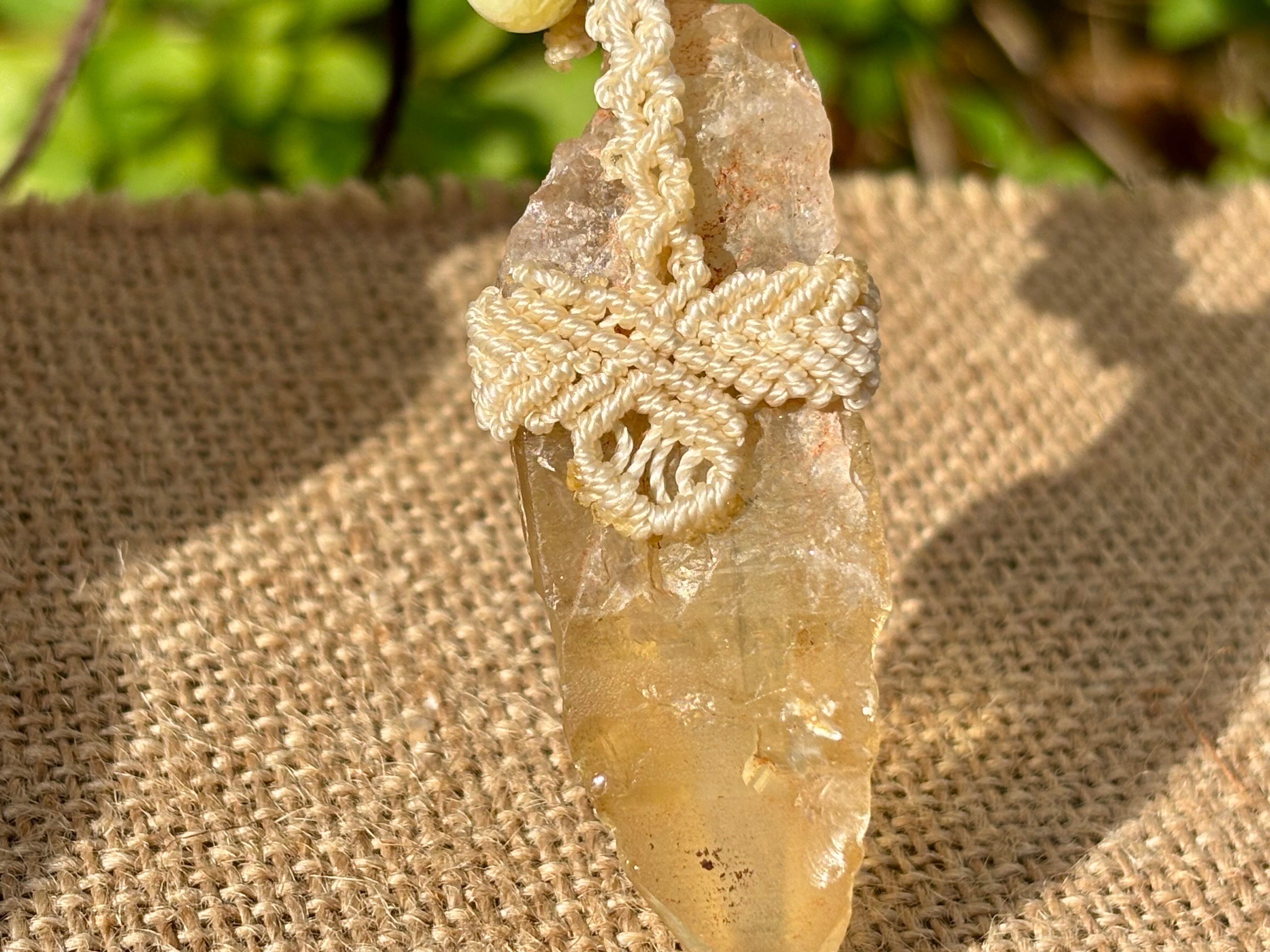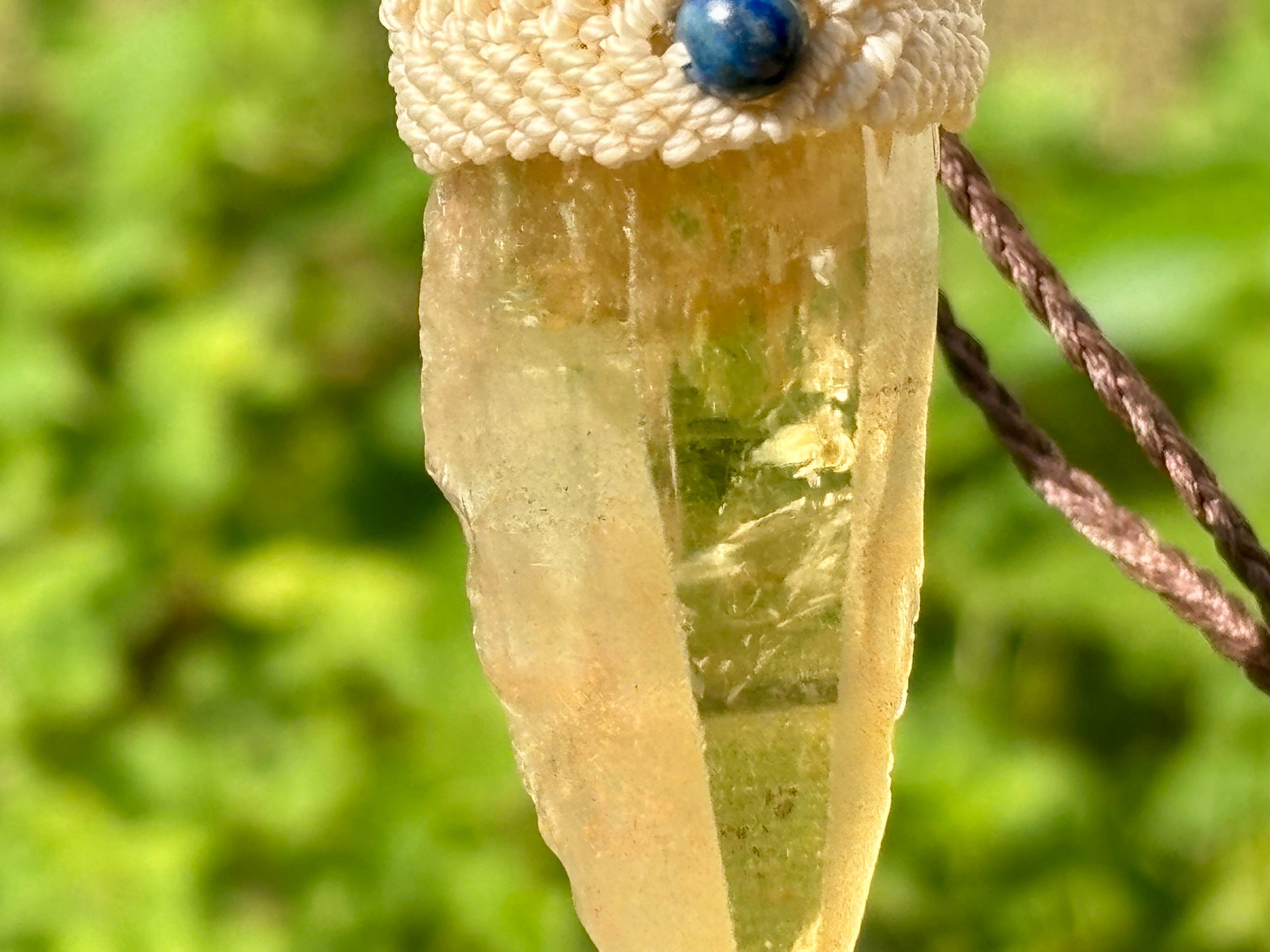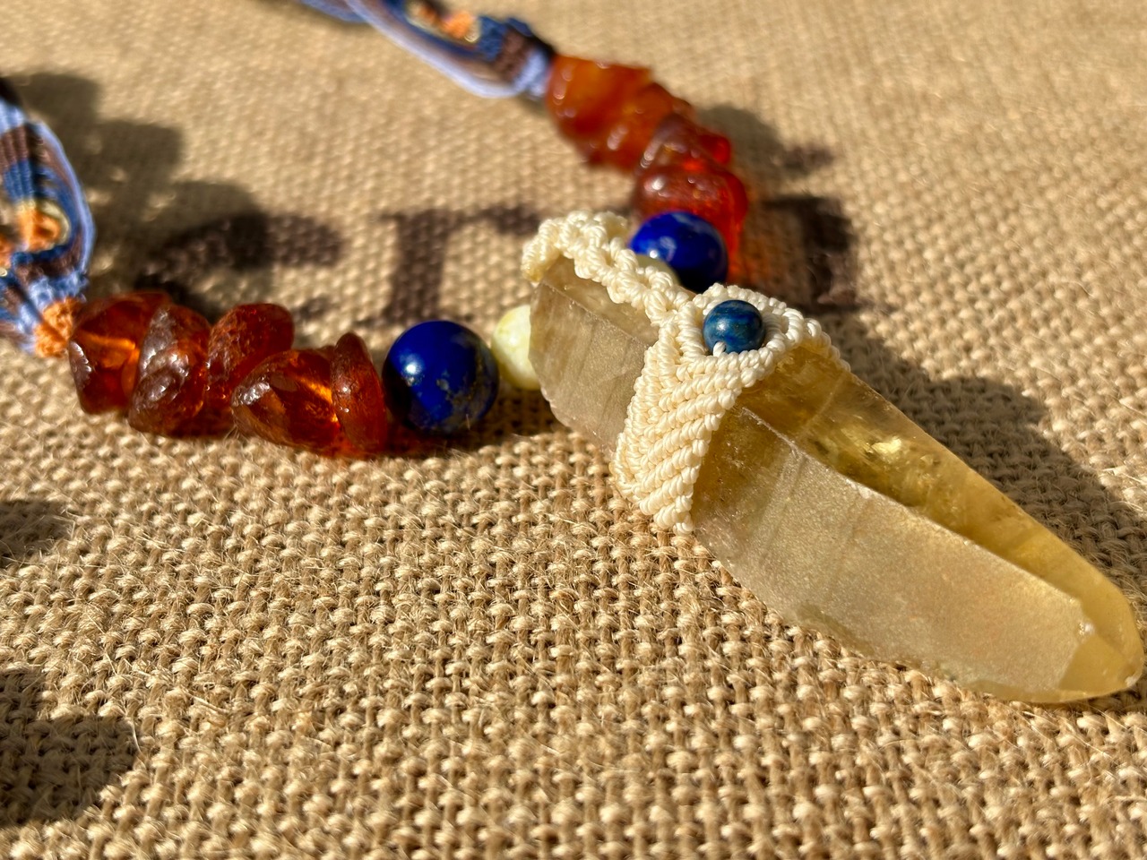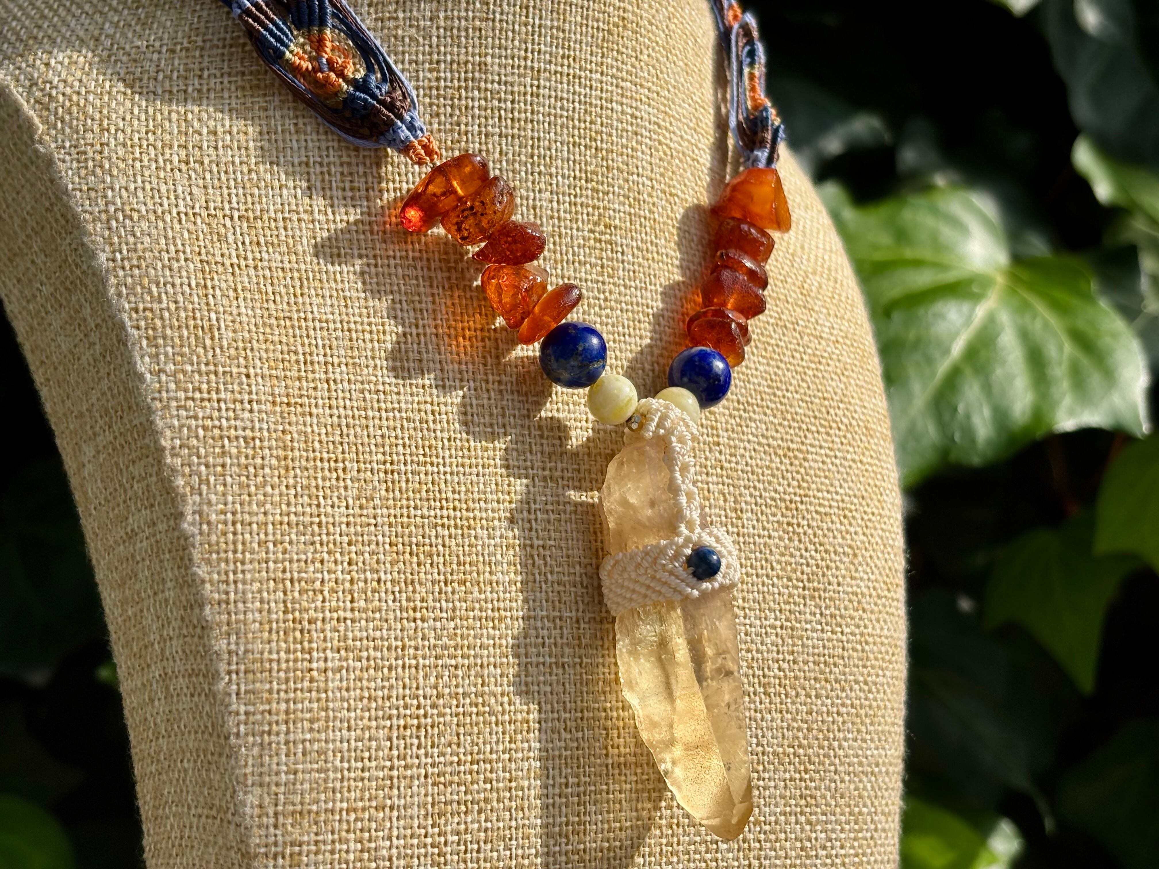 #911超希少ゴールデンレムリアンシード一点物 (ゴールデンレムリアンシード×ハニーイエローオパール×ラピスラズリ×アンバー マクラメ編みデザインネックレス)