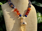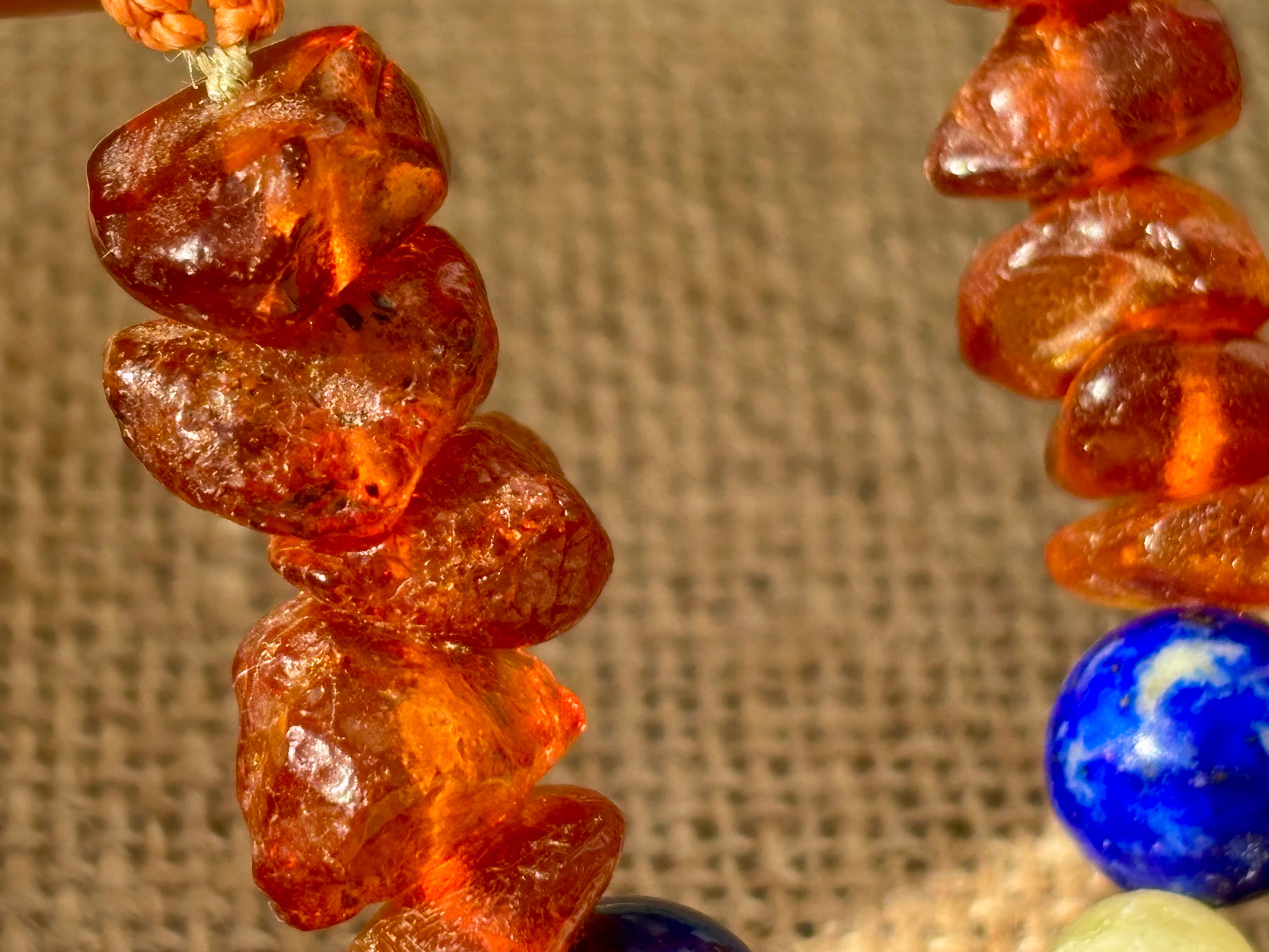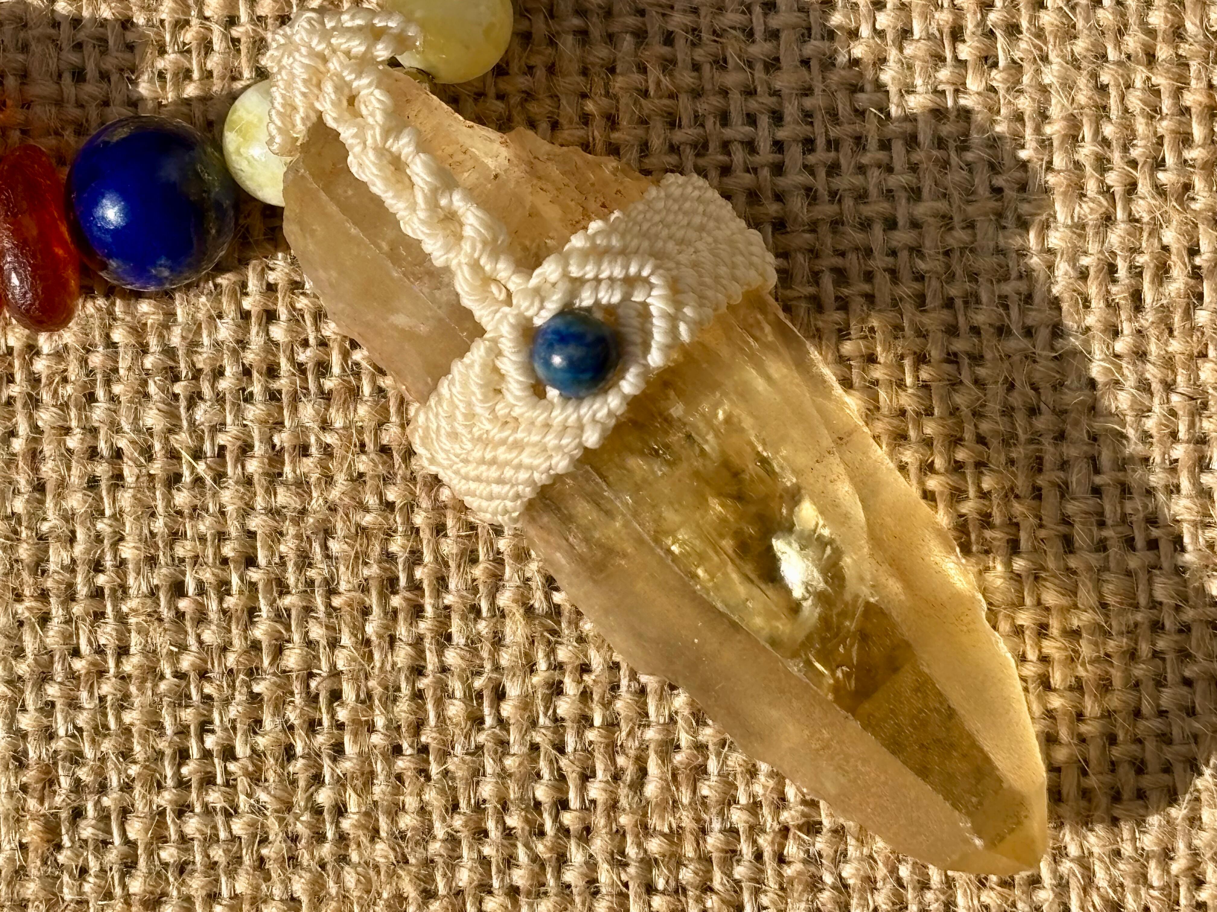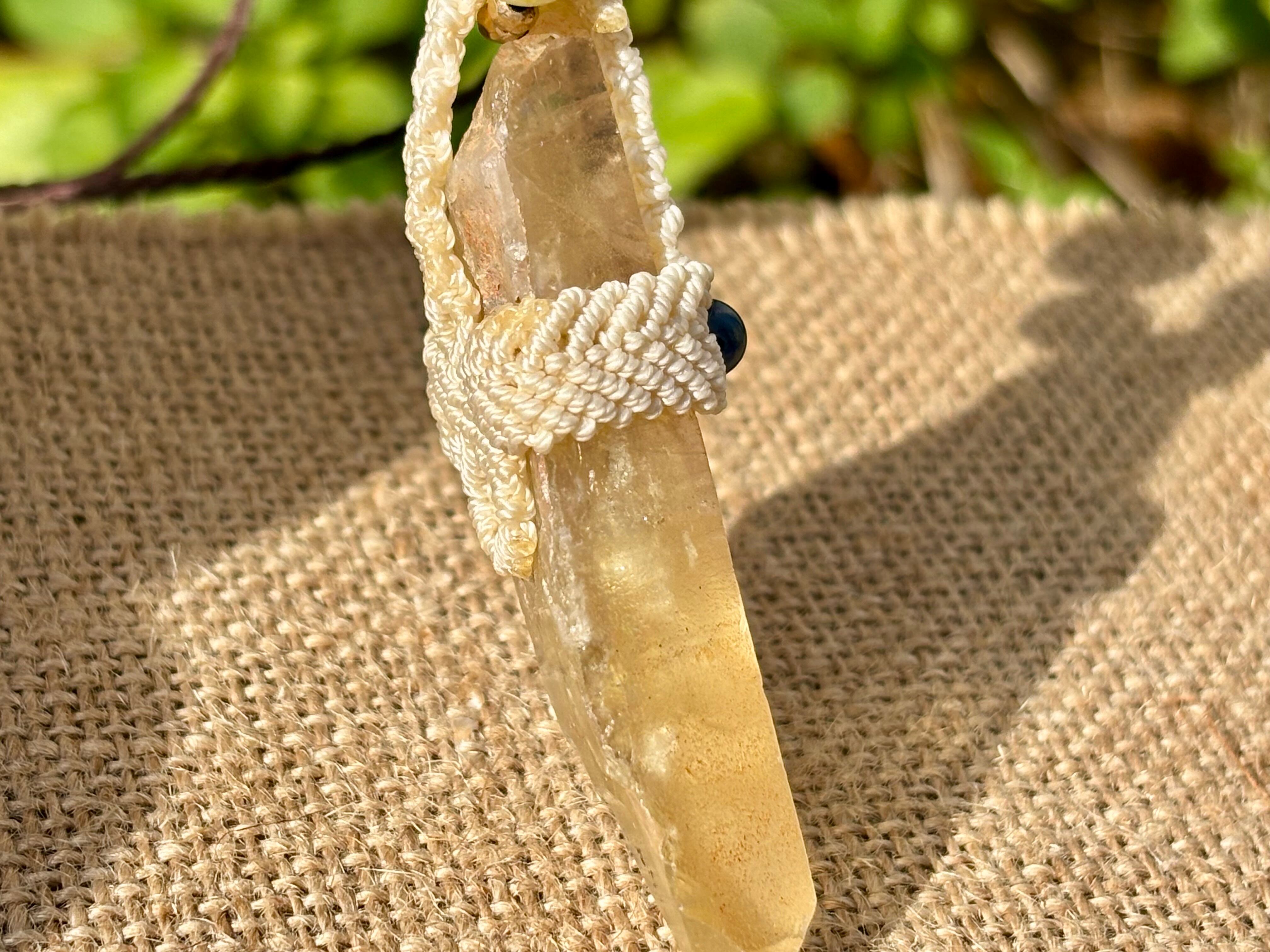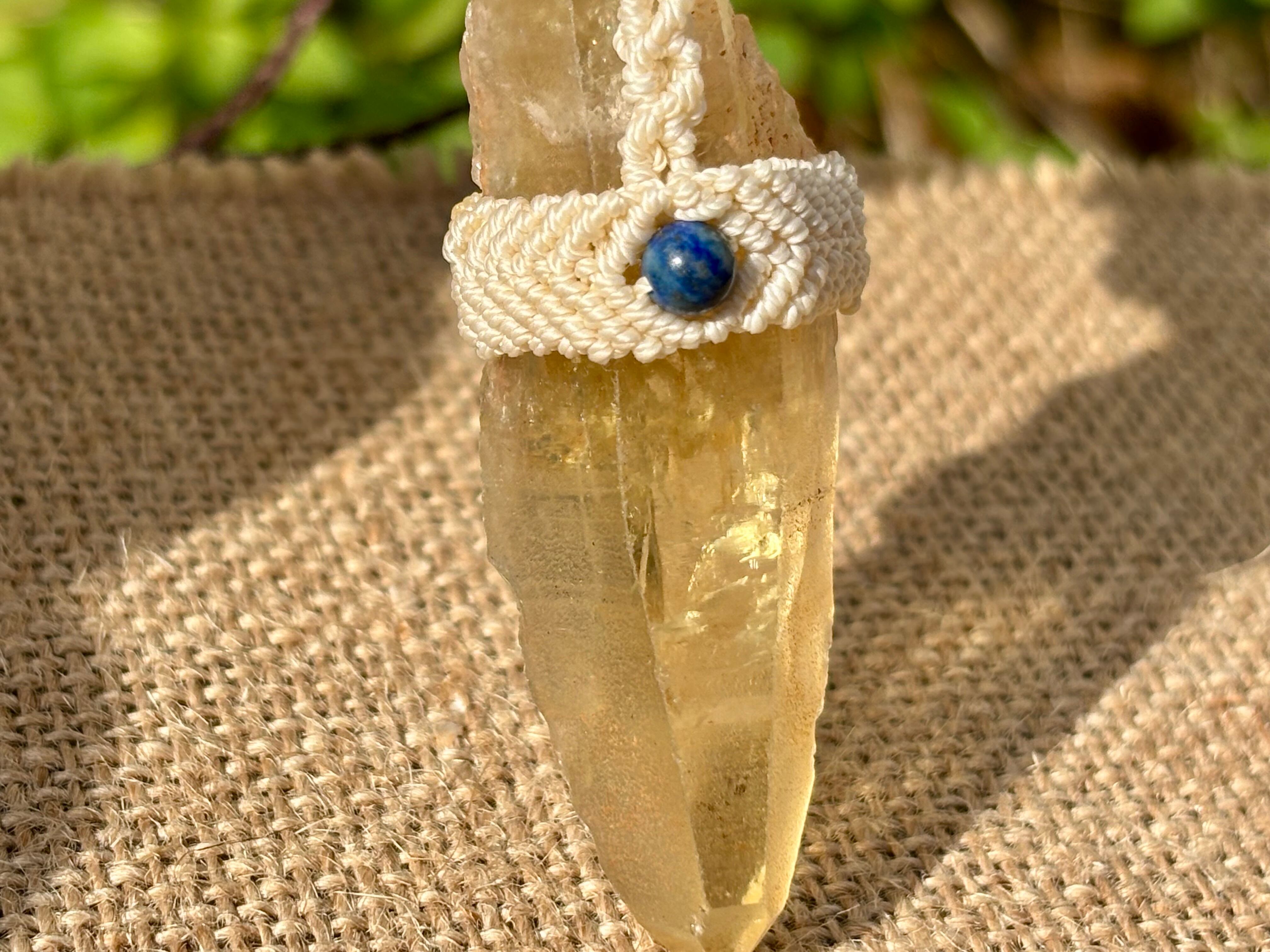 #911超希少ゴールデンレムリアンシード一点物 (ゴールデンレムリアンシード×ハニーイエローオパール×ラピスラズリ×アンバー マクラメ編みデザインネックレス)