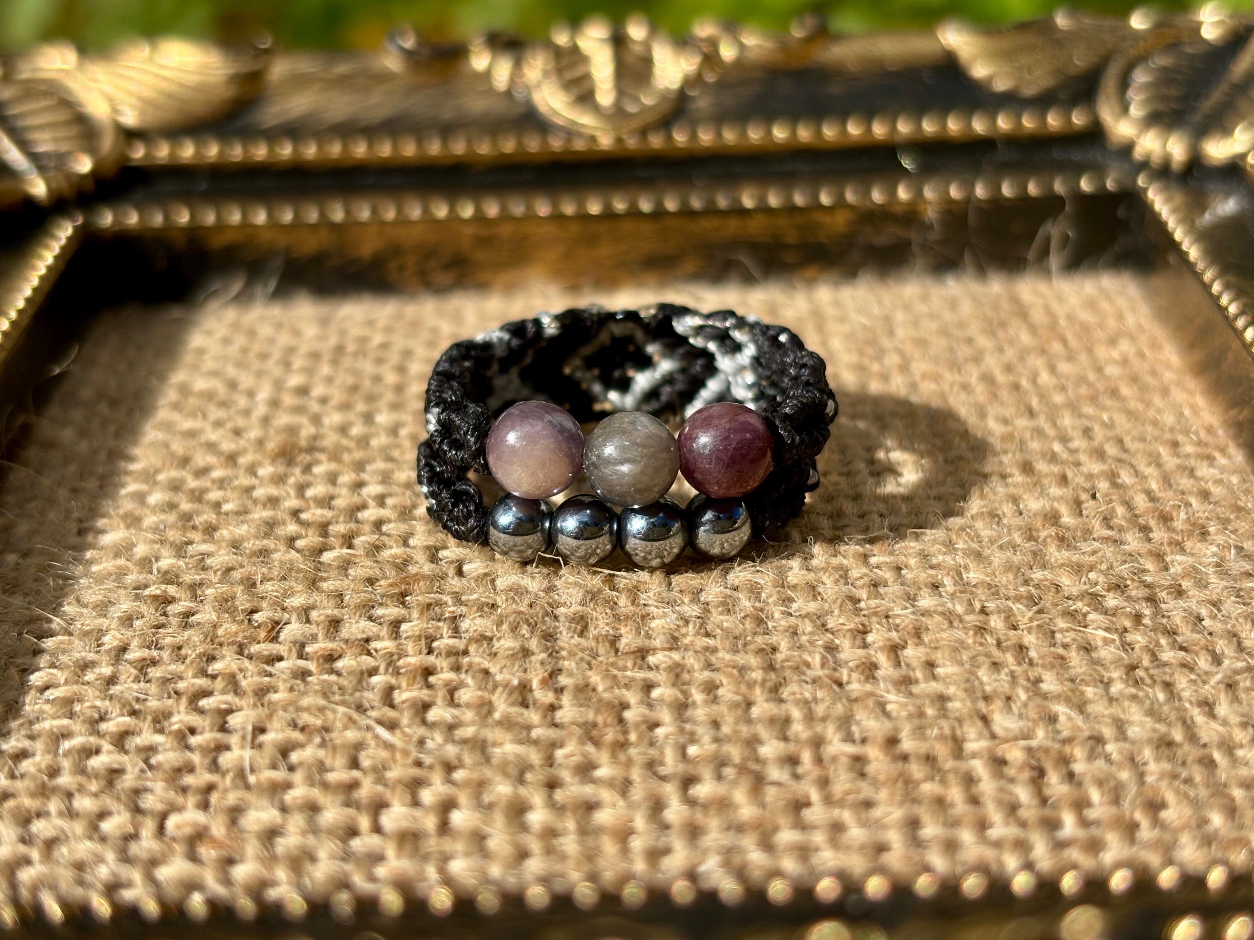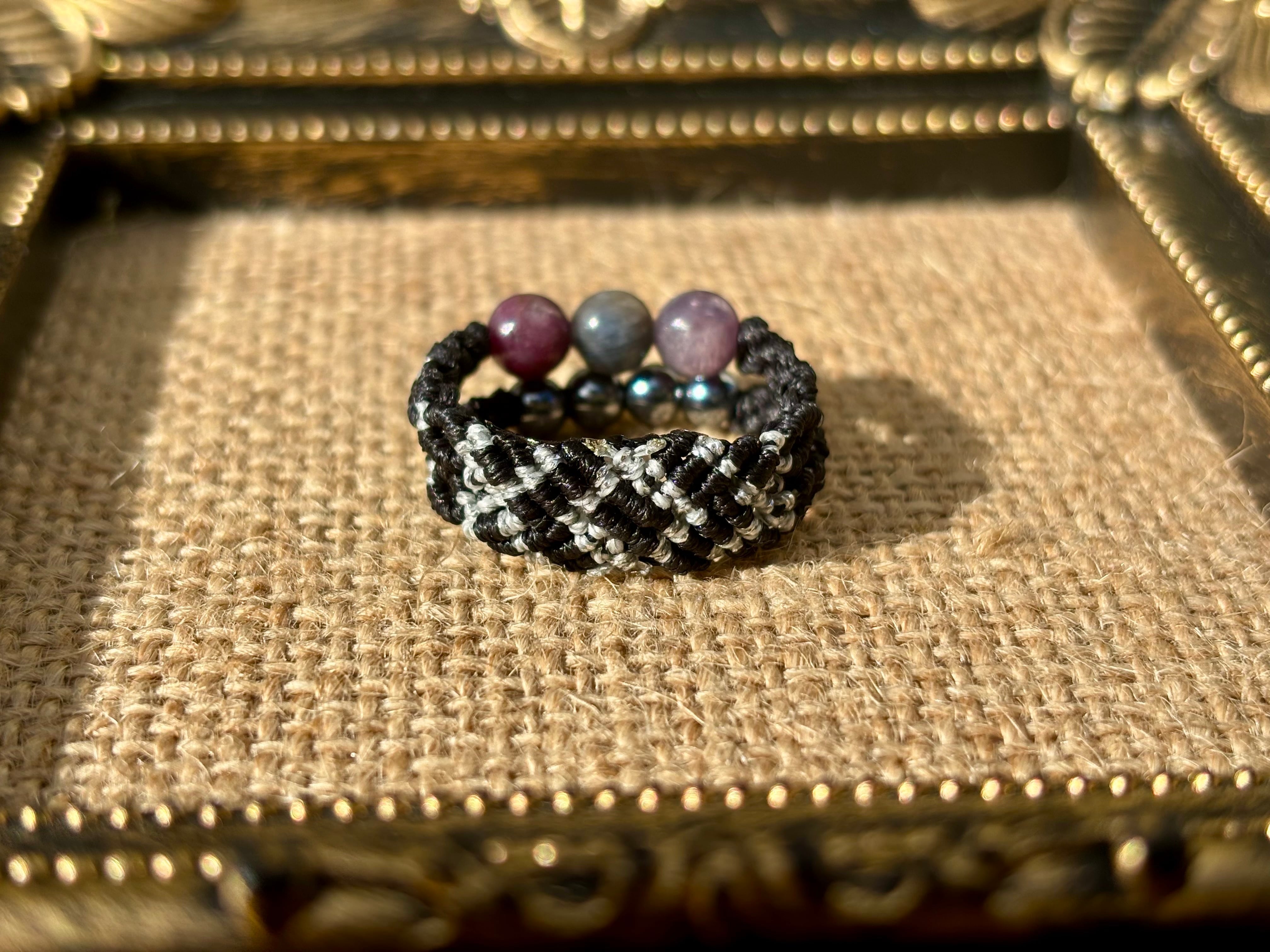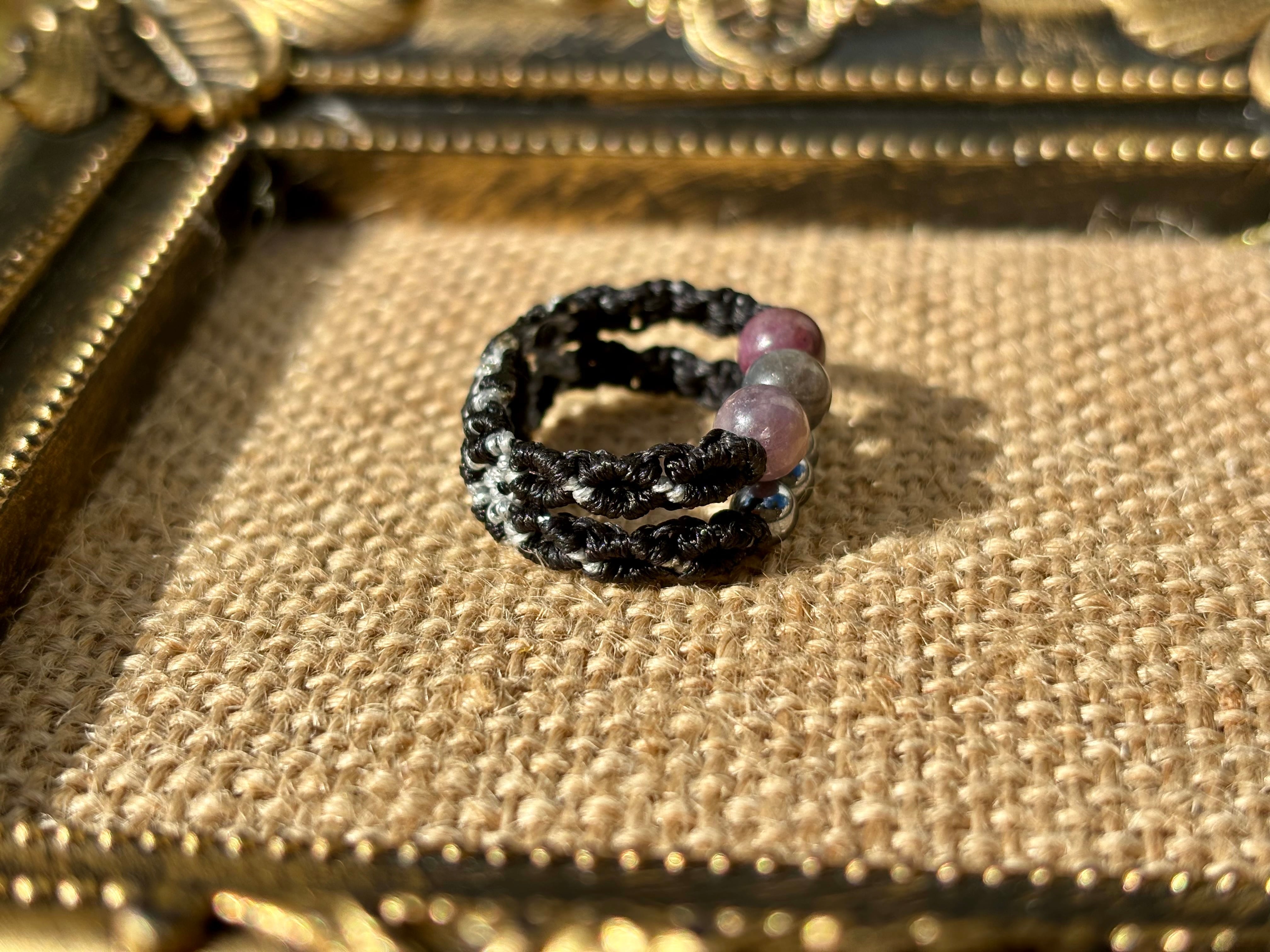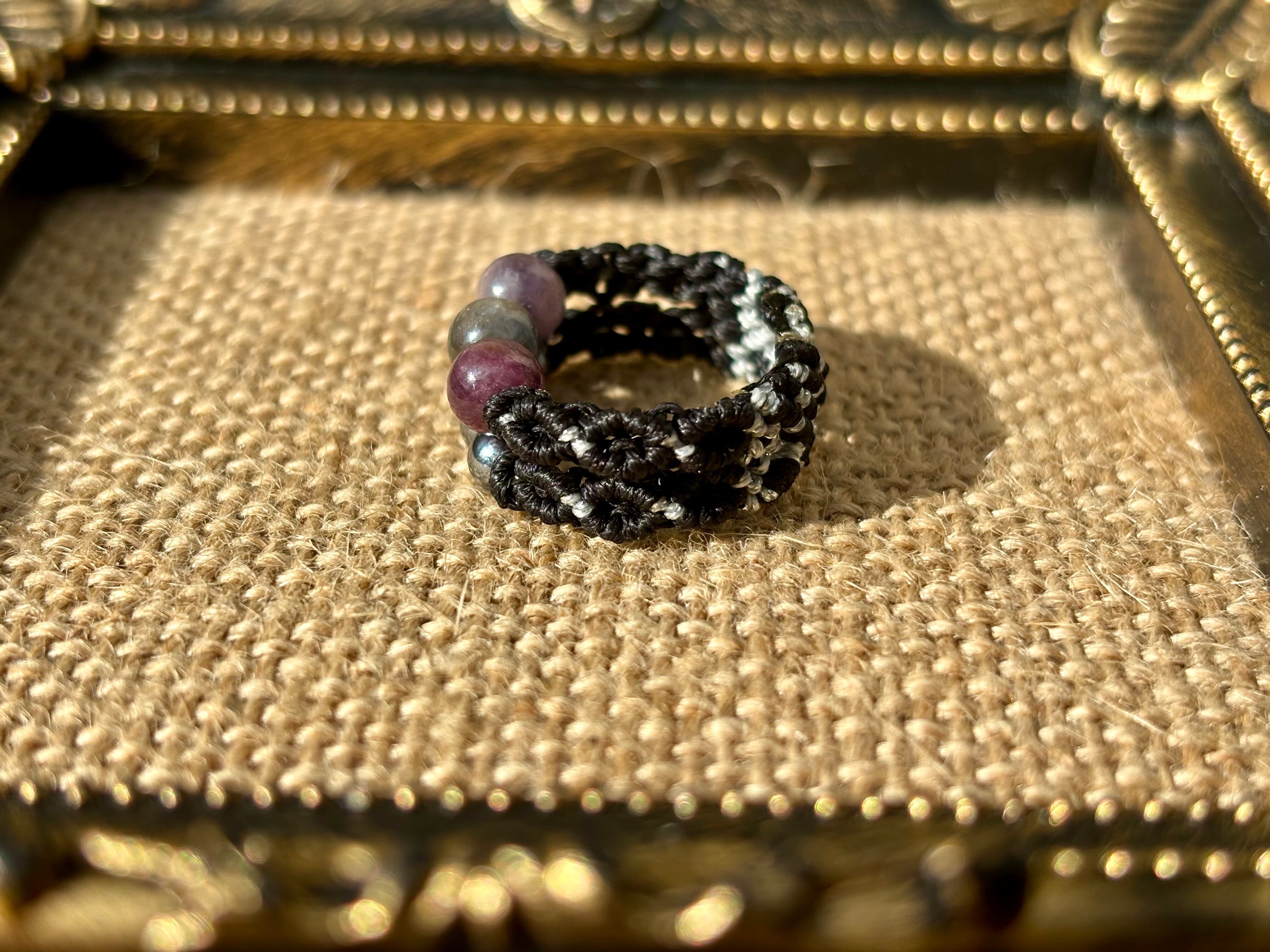 #916天然カラフルサファイア一点物(カラフルサファイア×テラヘルツ マクラメ編み二連リング/指輪)