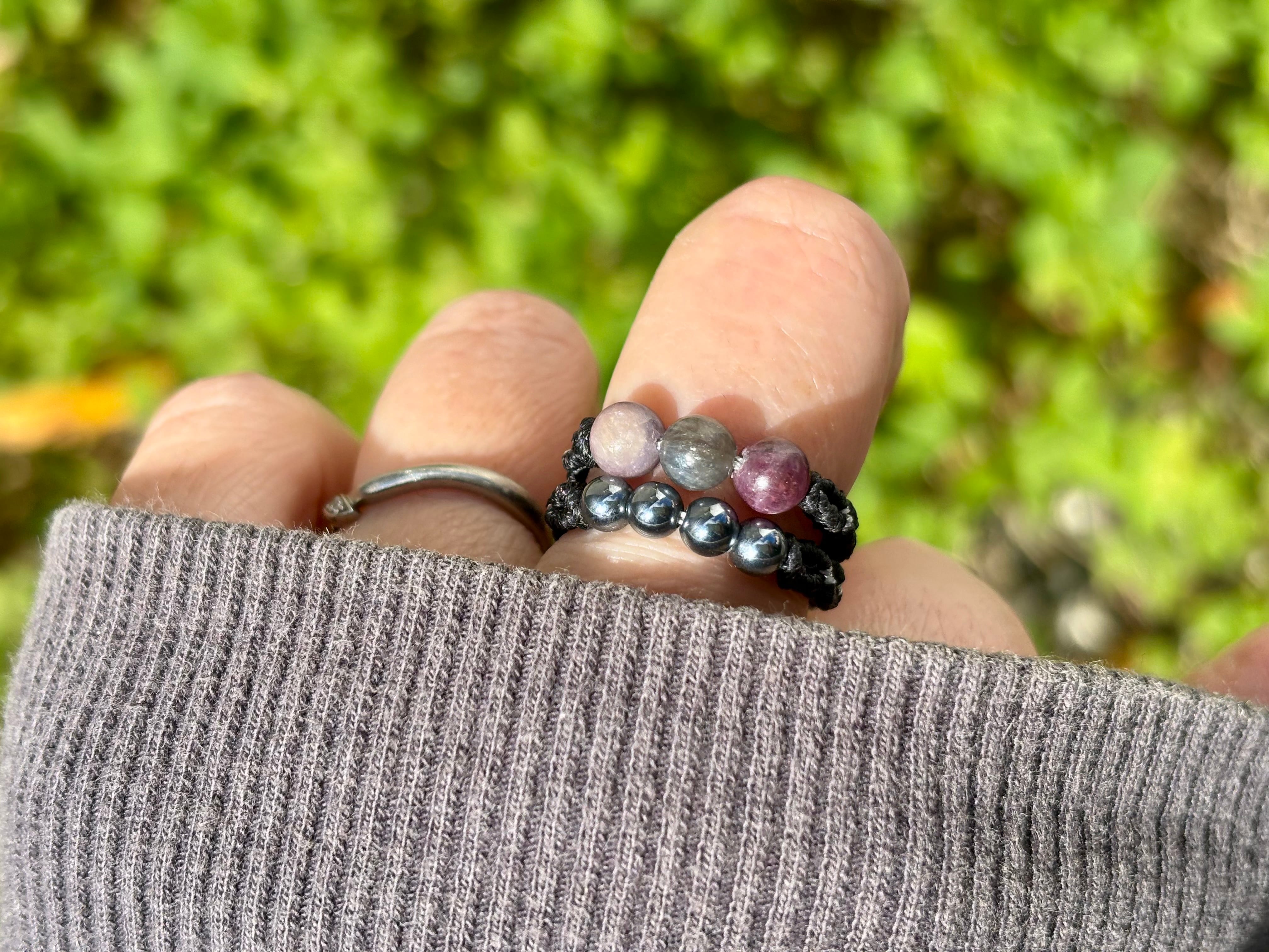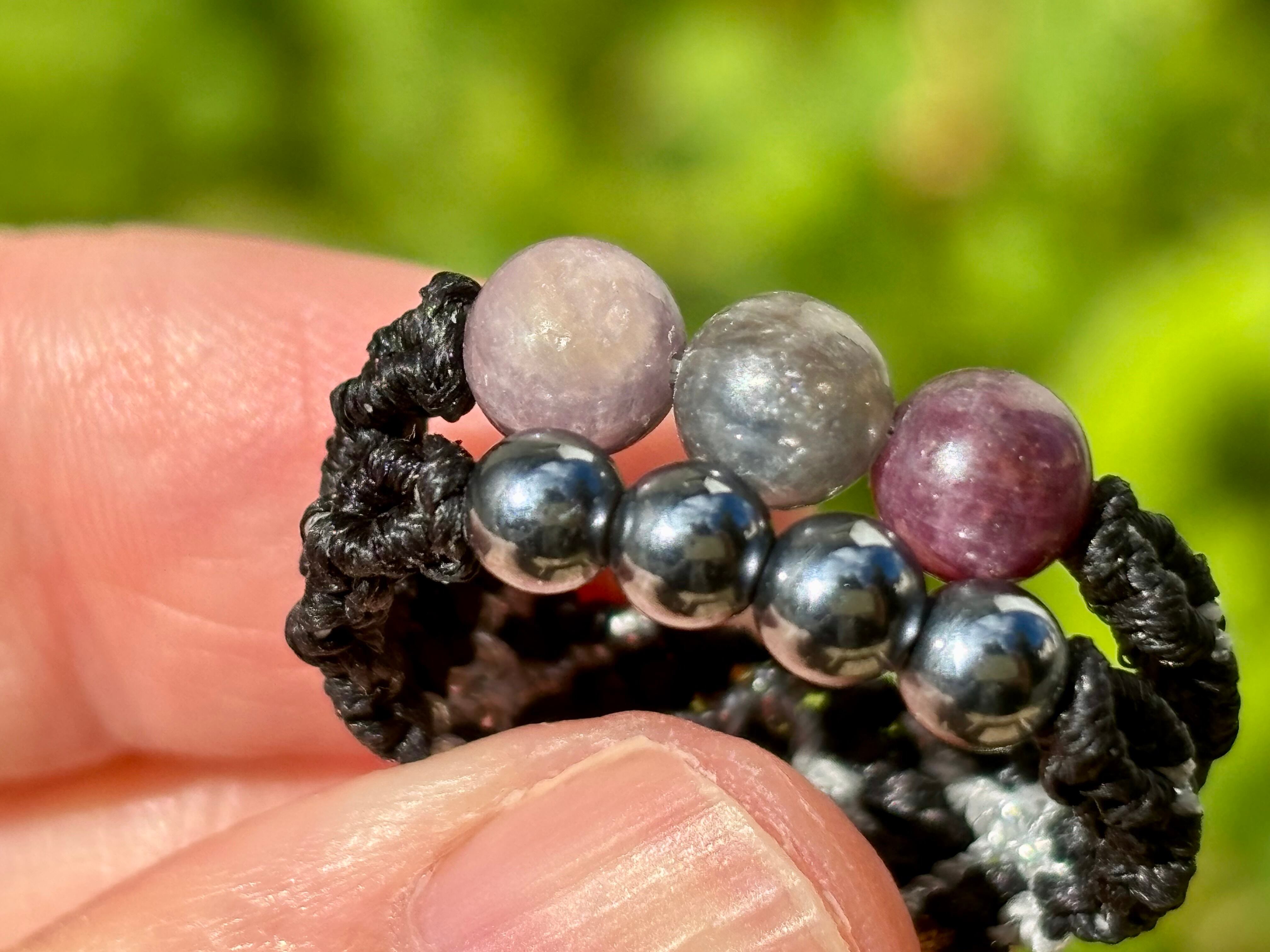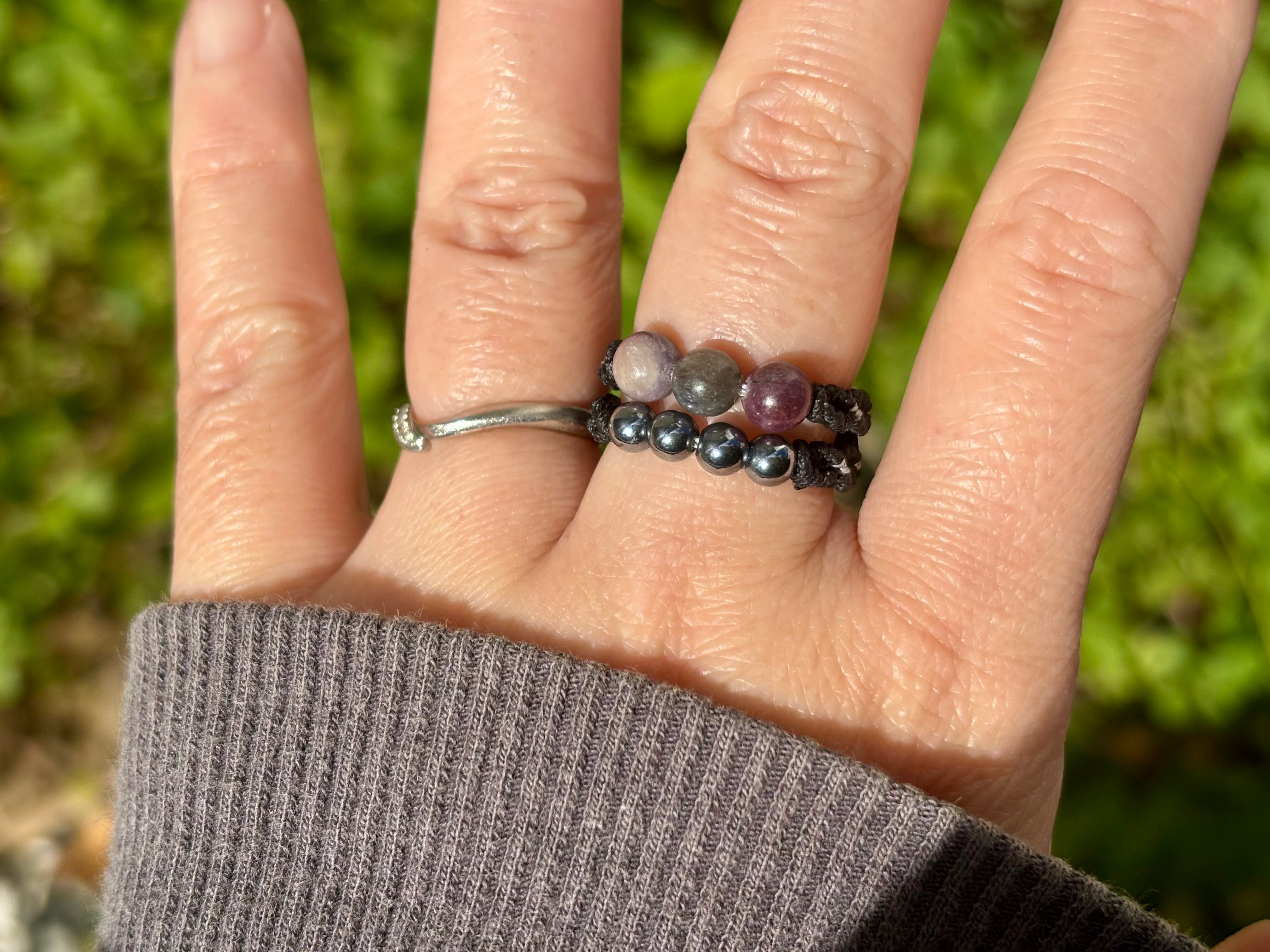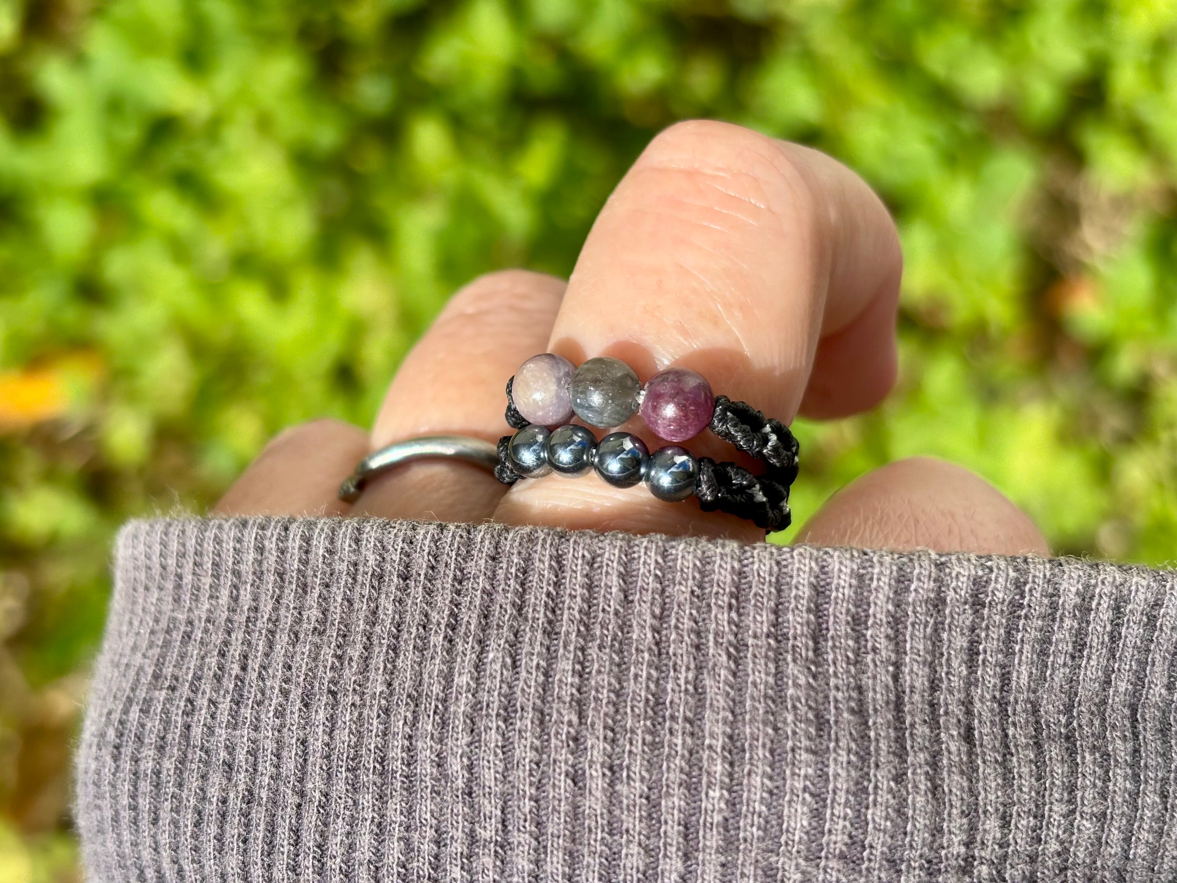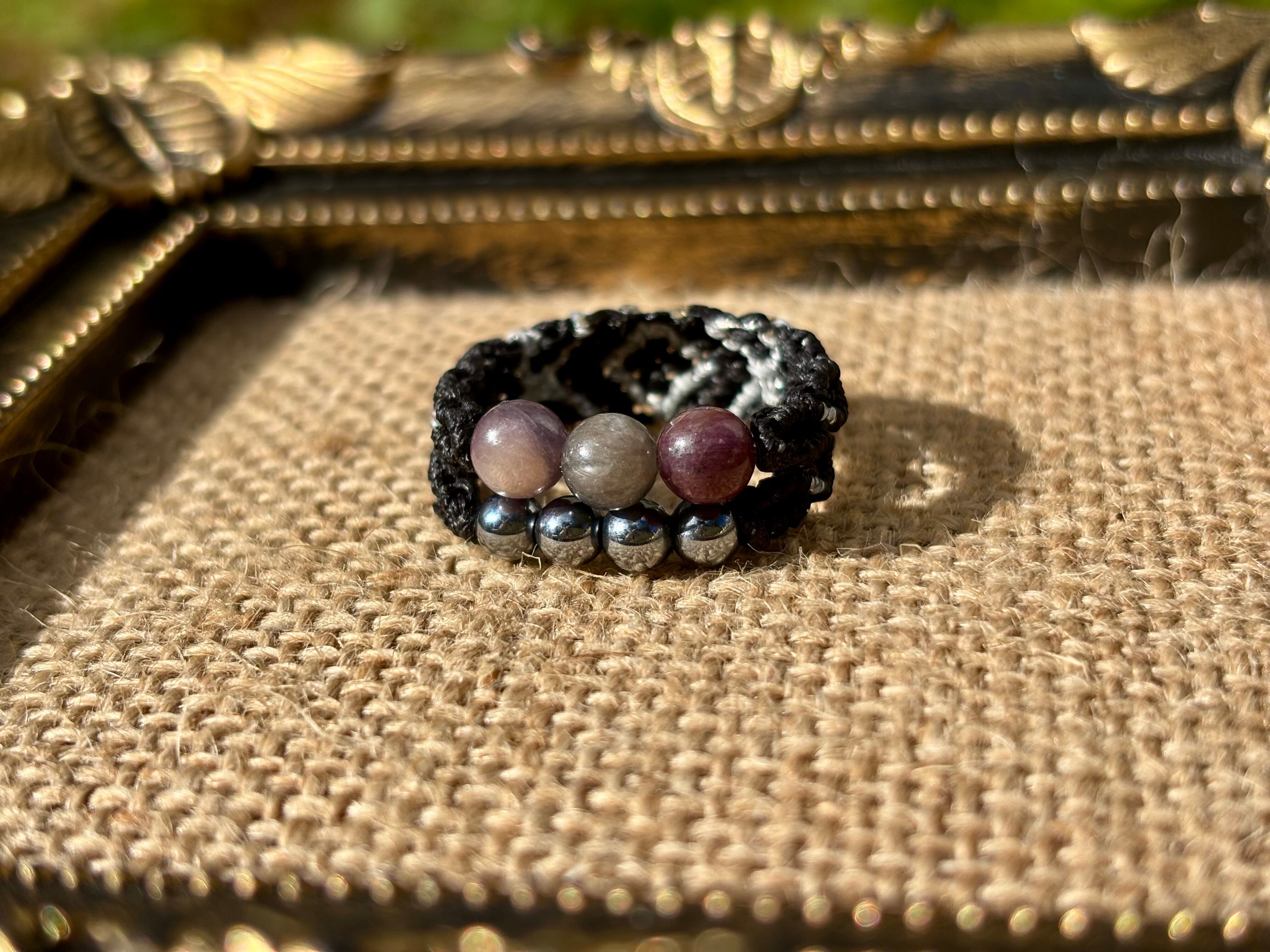 #916天然カラフルサファイア一点物(カラフルサファイア×テラヘルツ マクラメ編み二連リング/指輪)