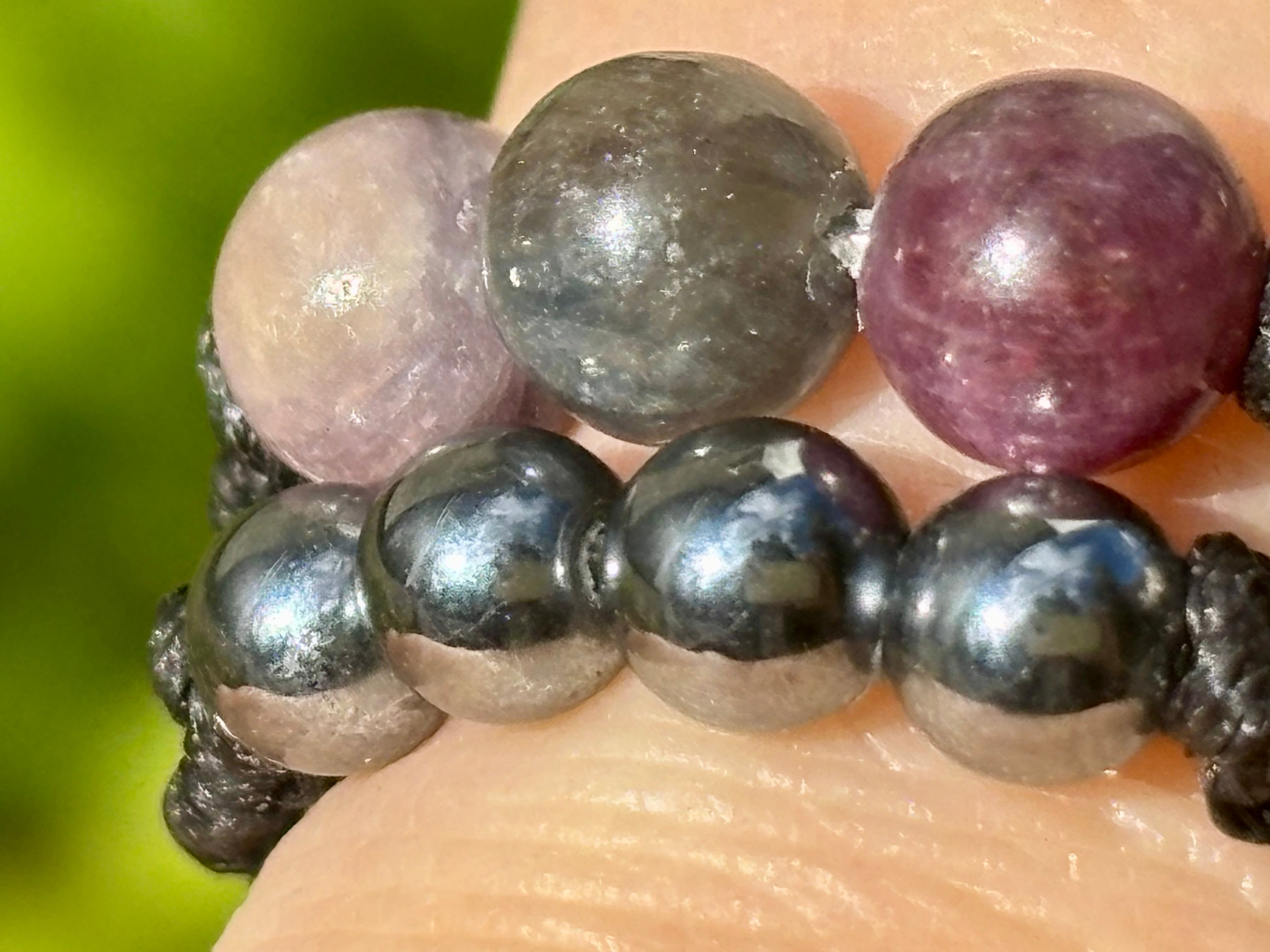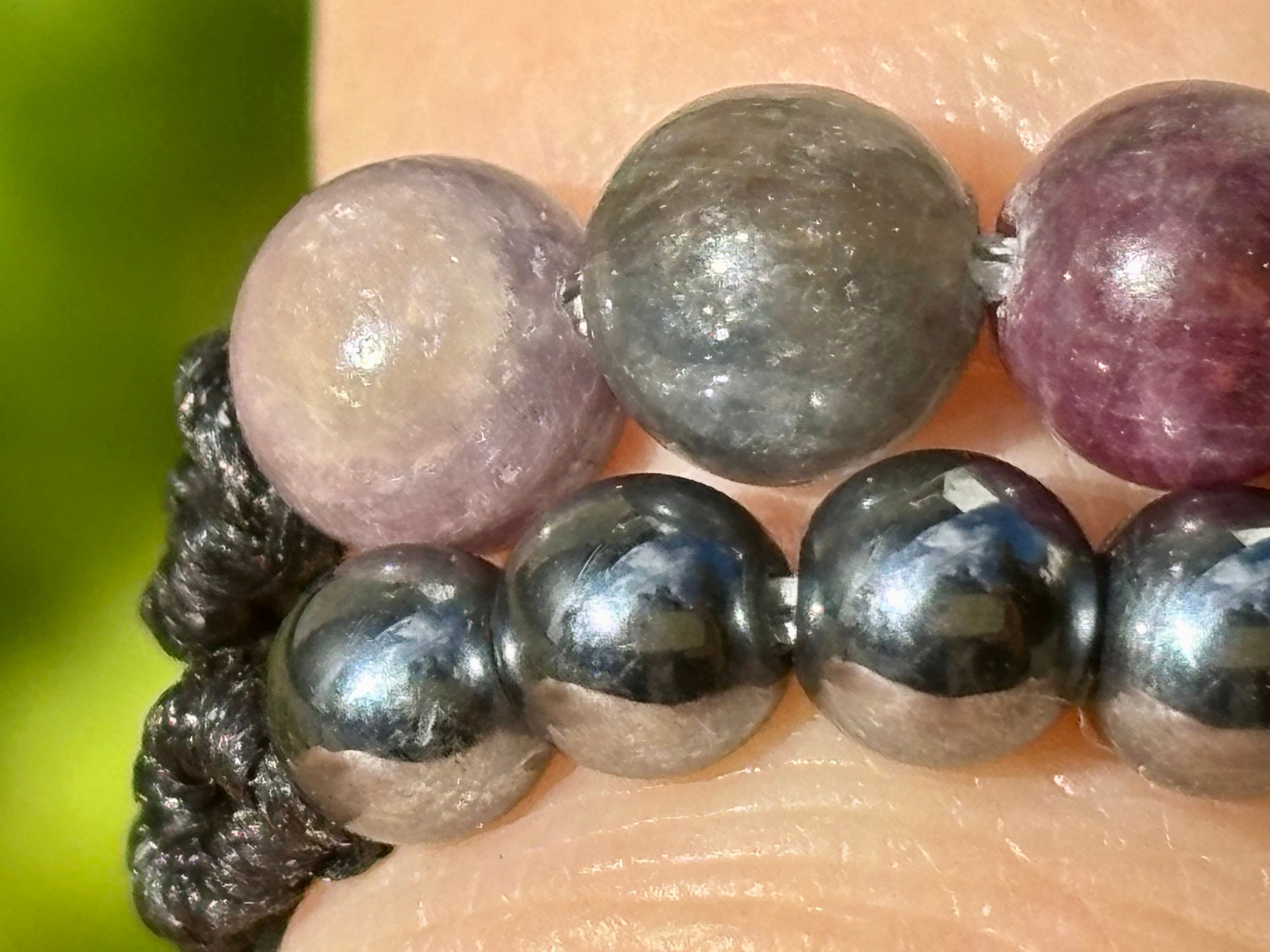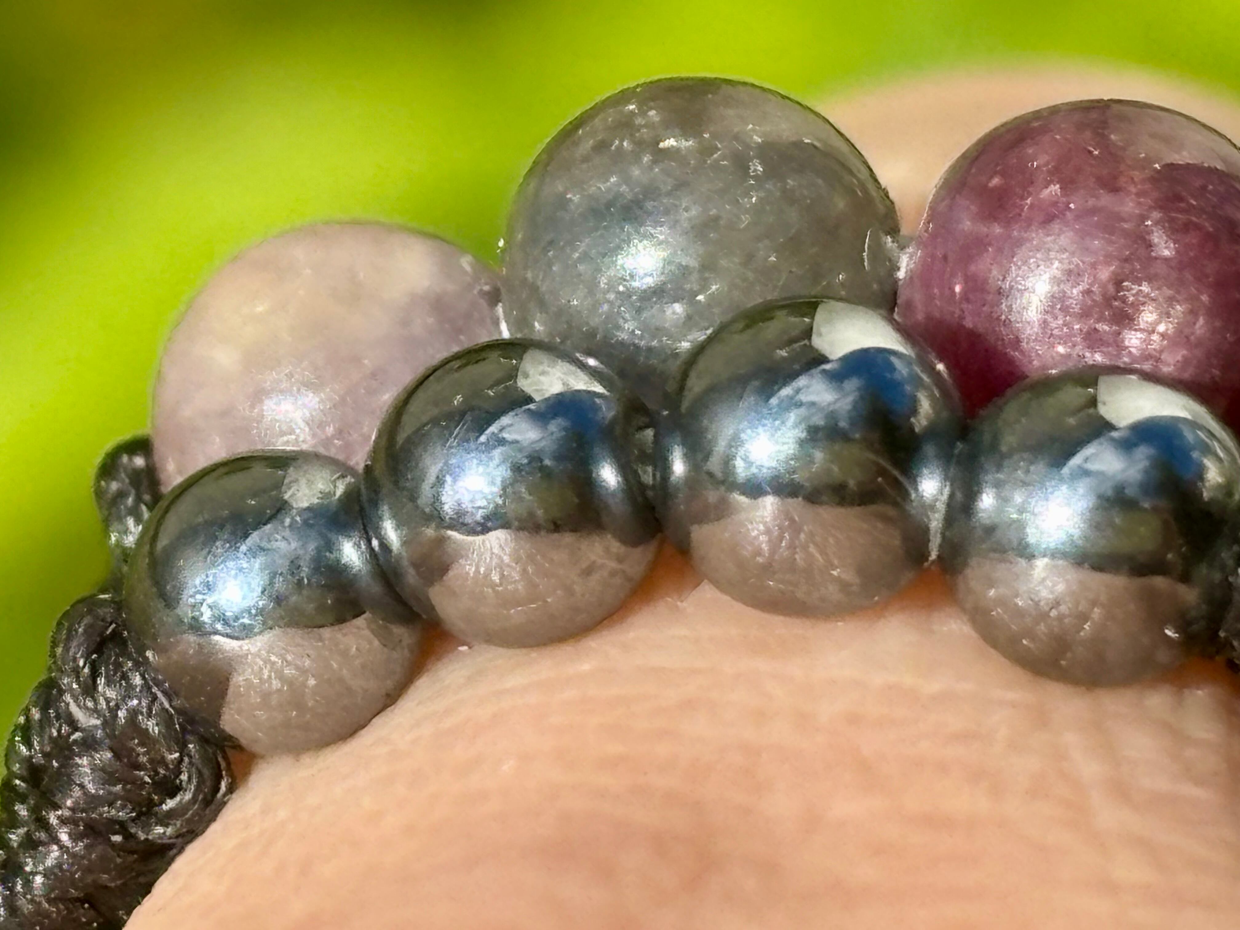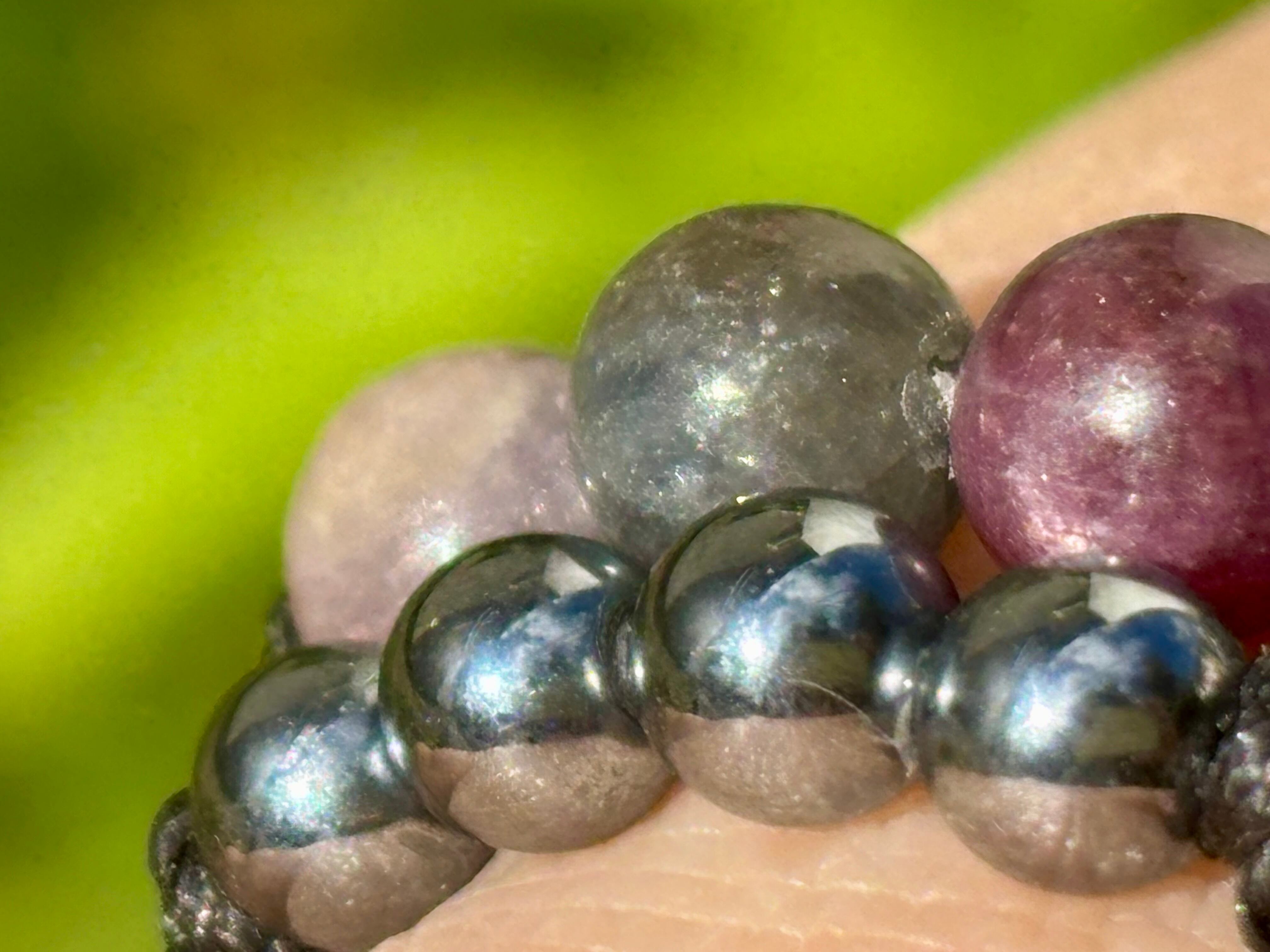 #916天然カラフルサファイア一点物(カラフルサファイア×テラヘルツ マクラメ編み二連リング/指輪)