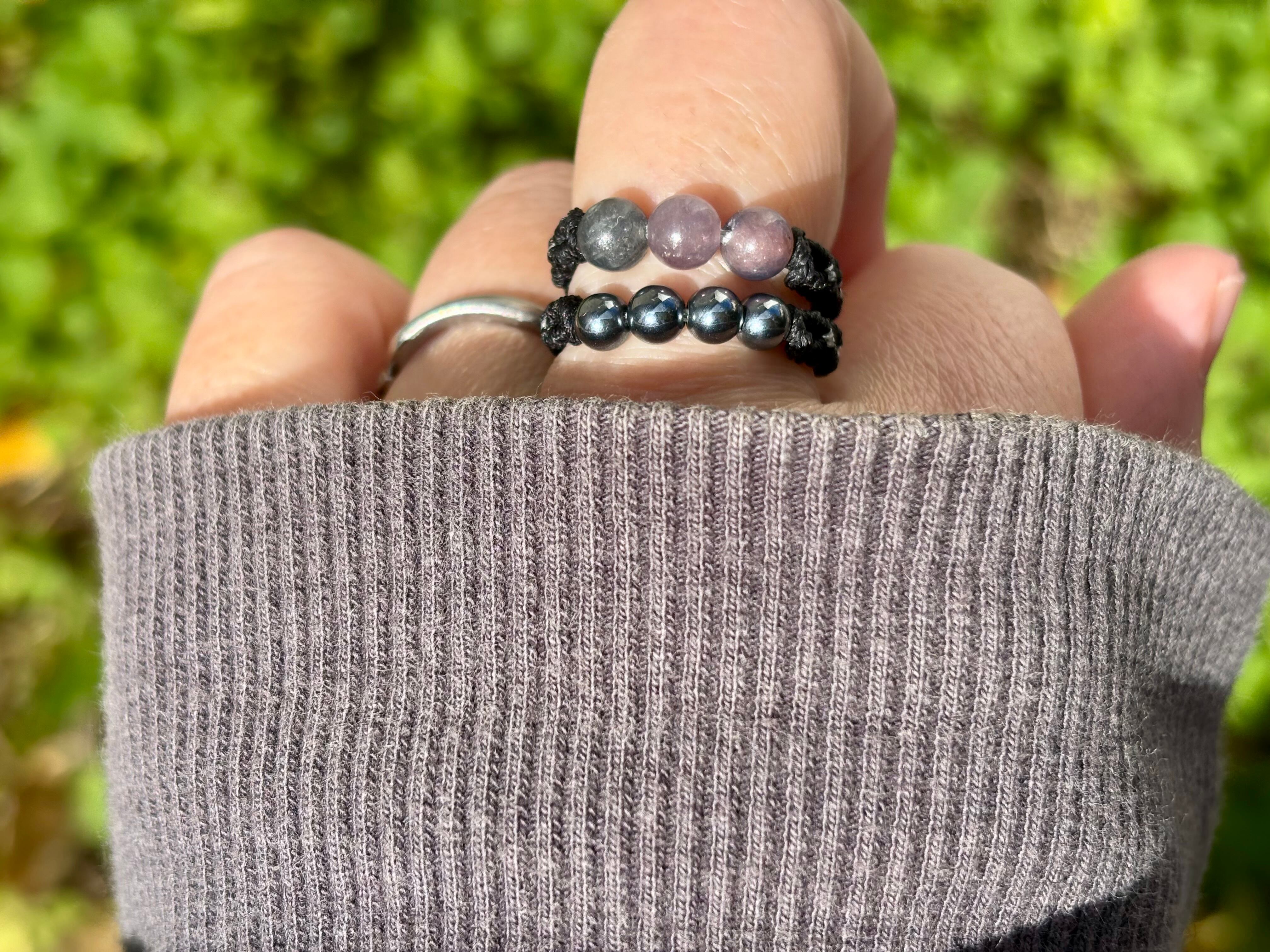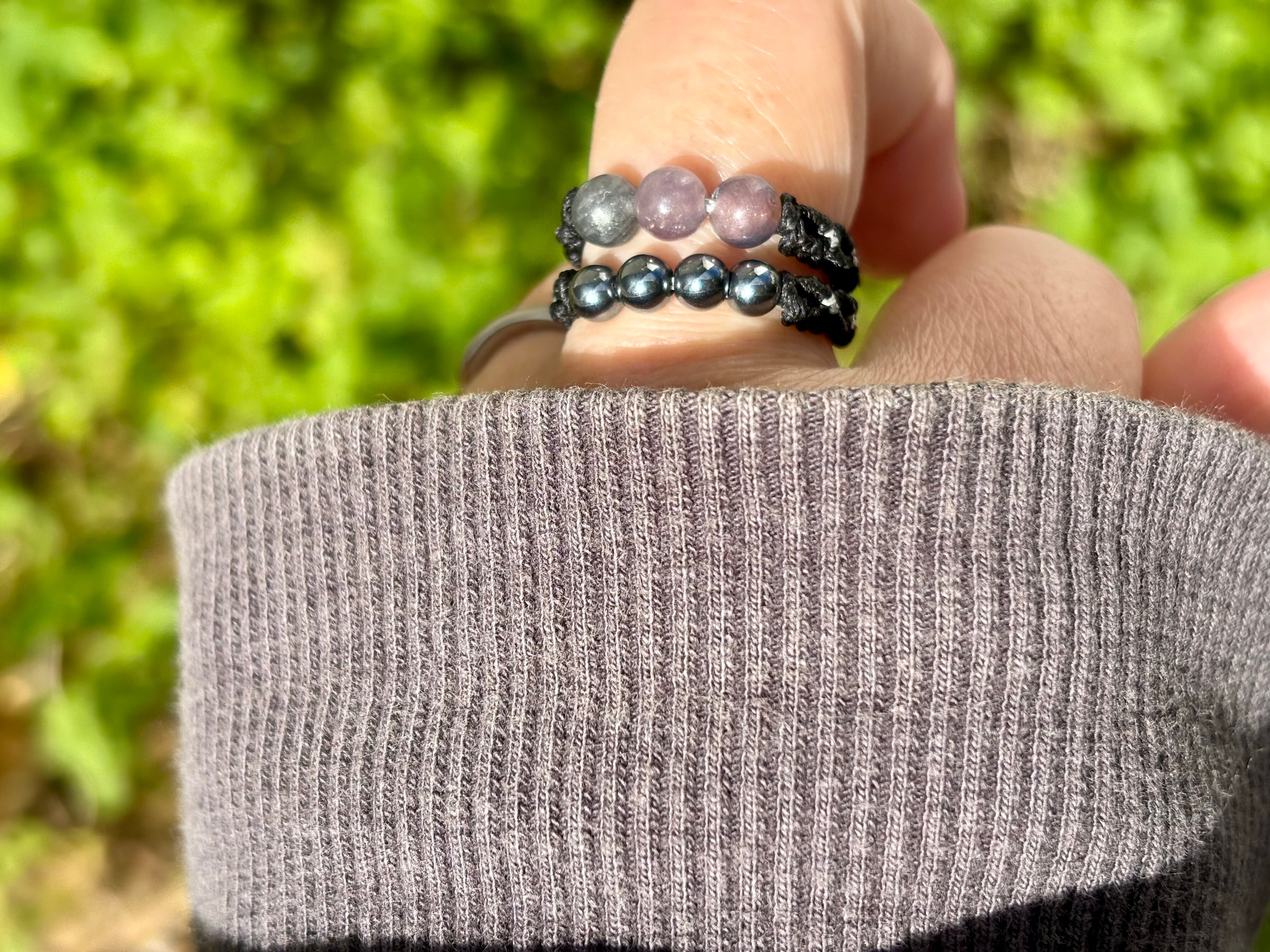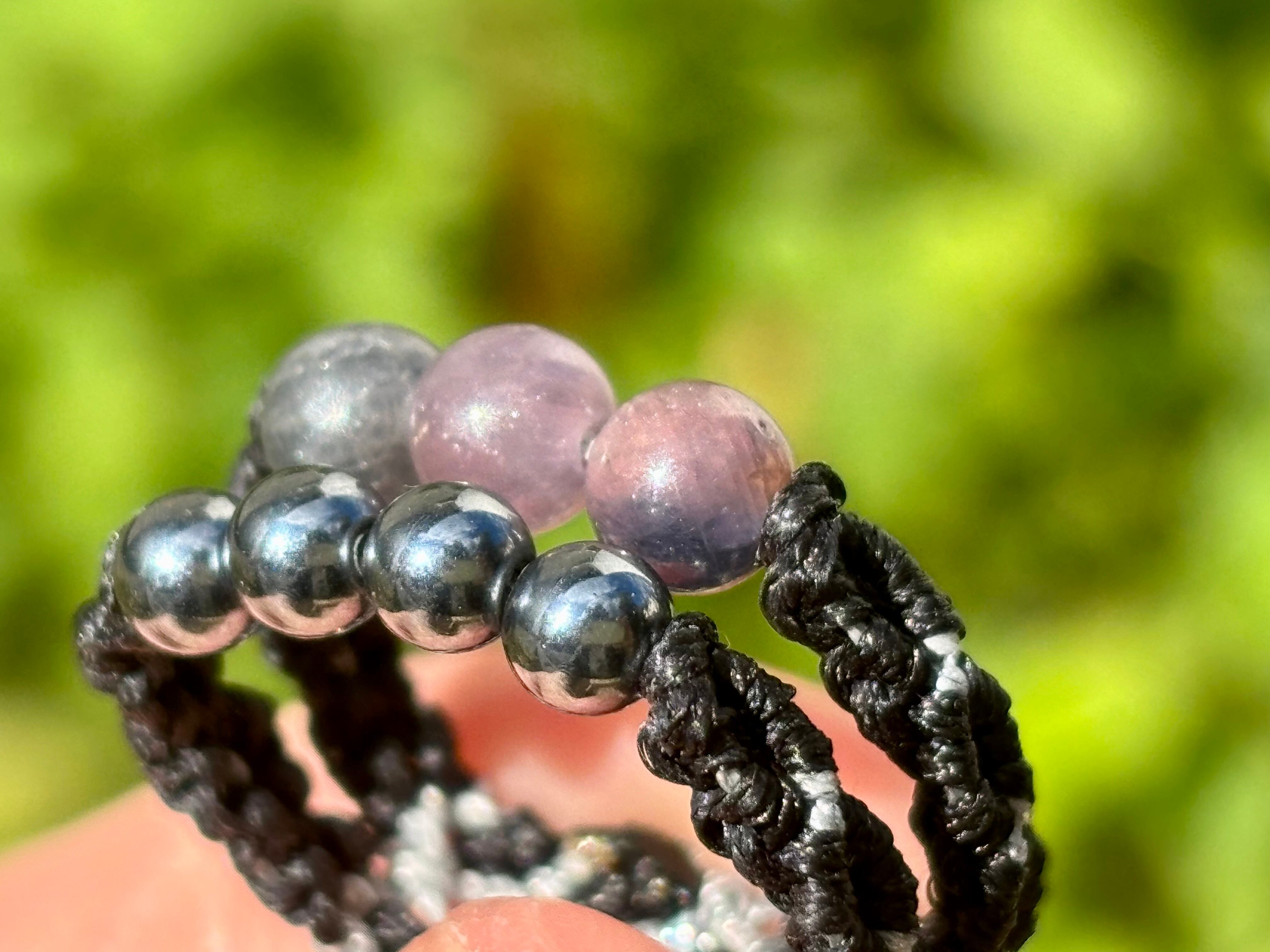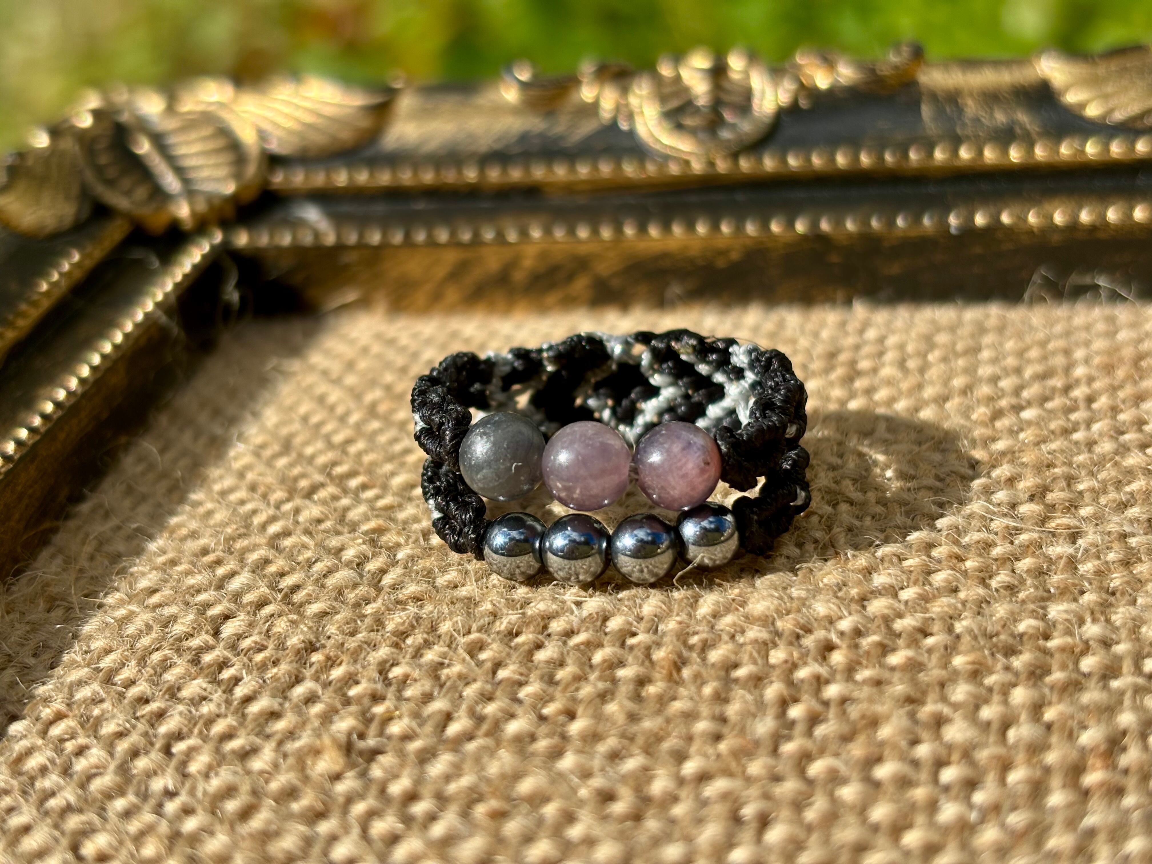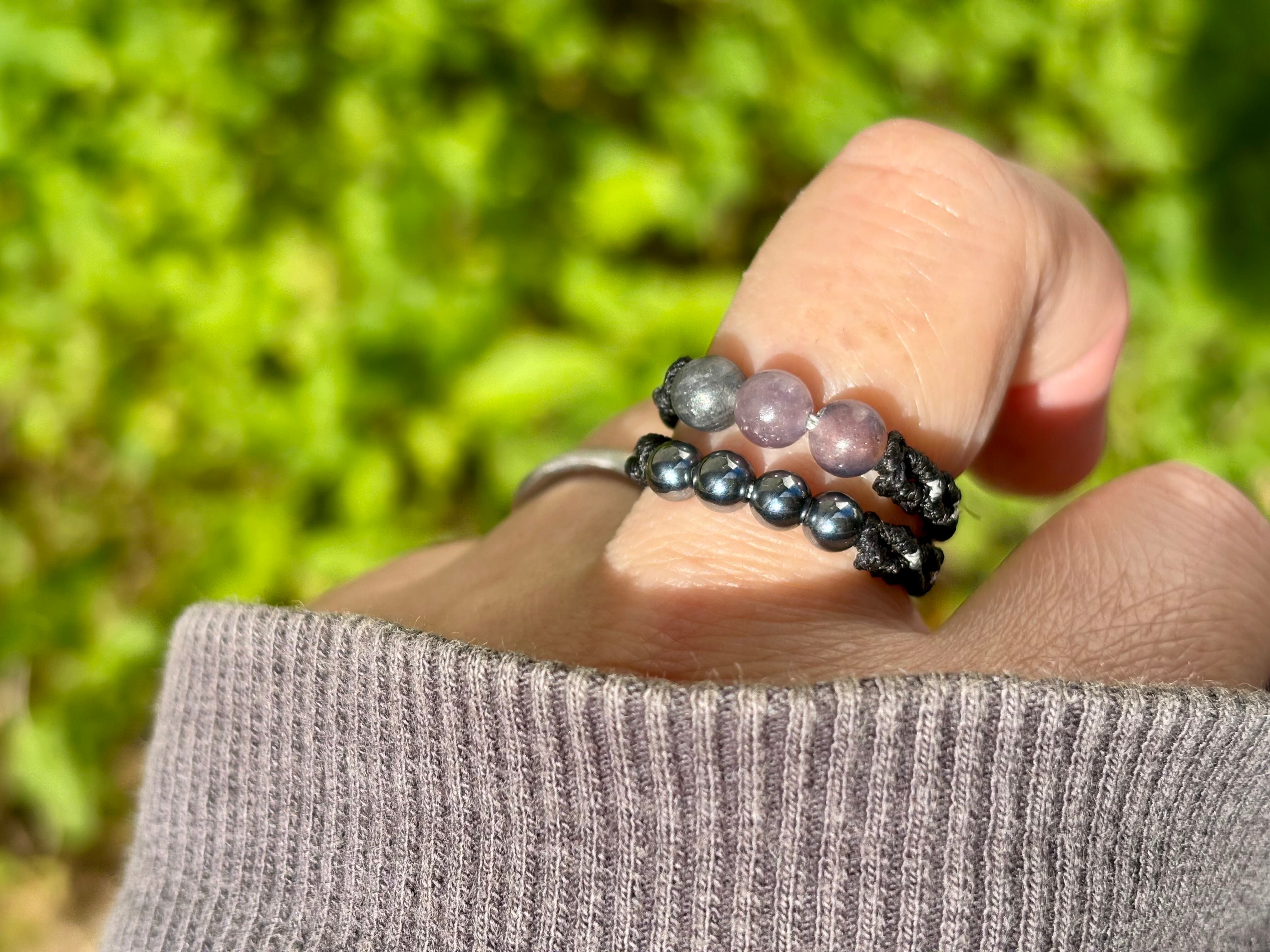#917天然カラフルサファイア一点物(カラフルサファイア×テラヘルツ マクラメ編み二連リング/指輪)