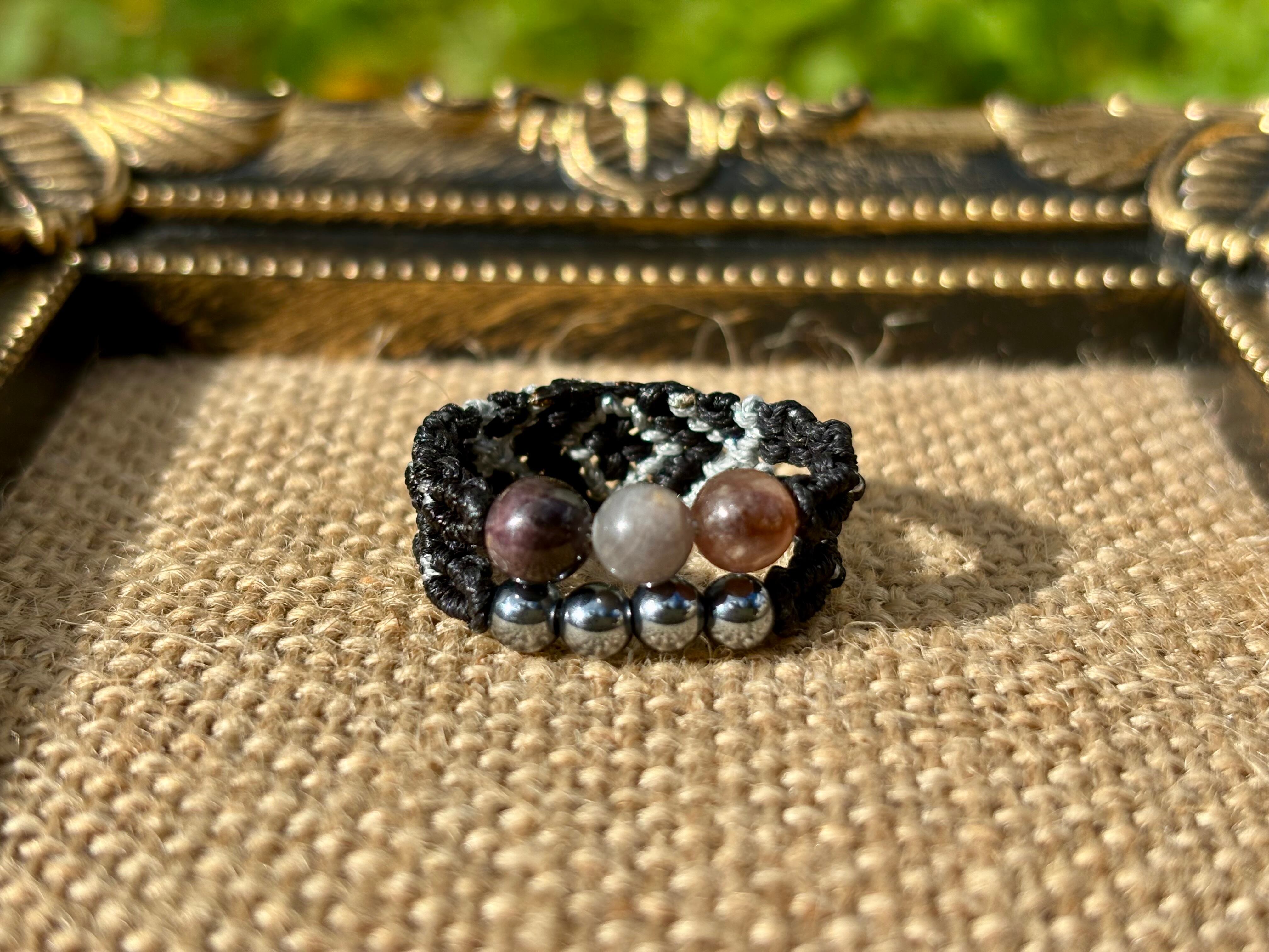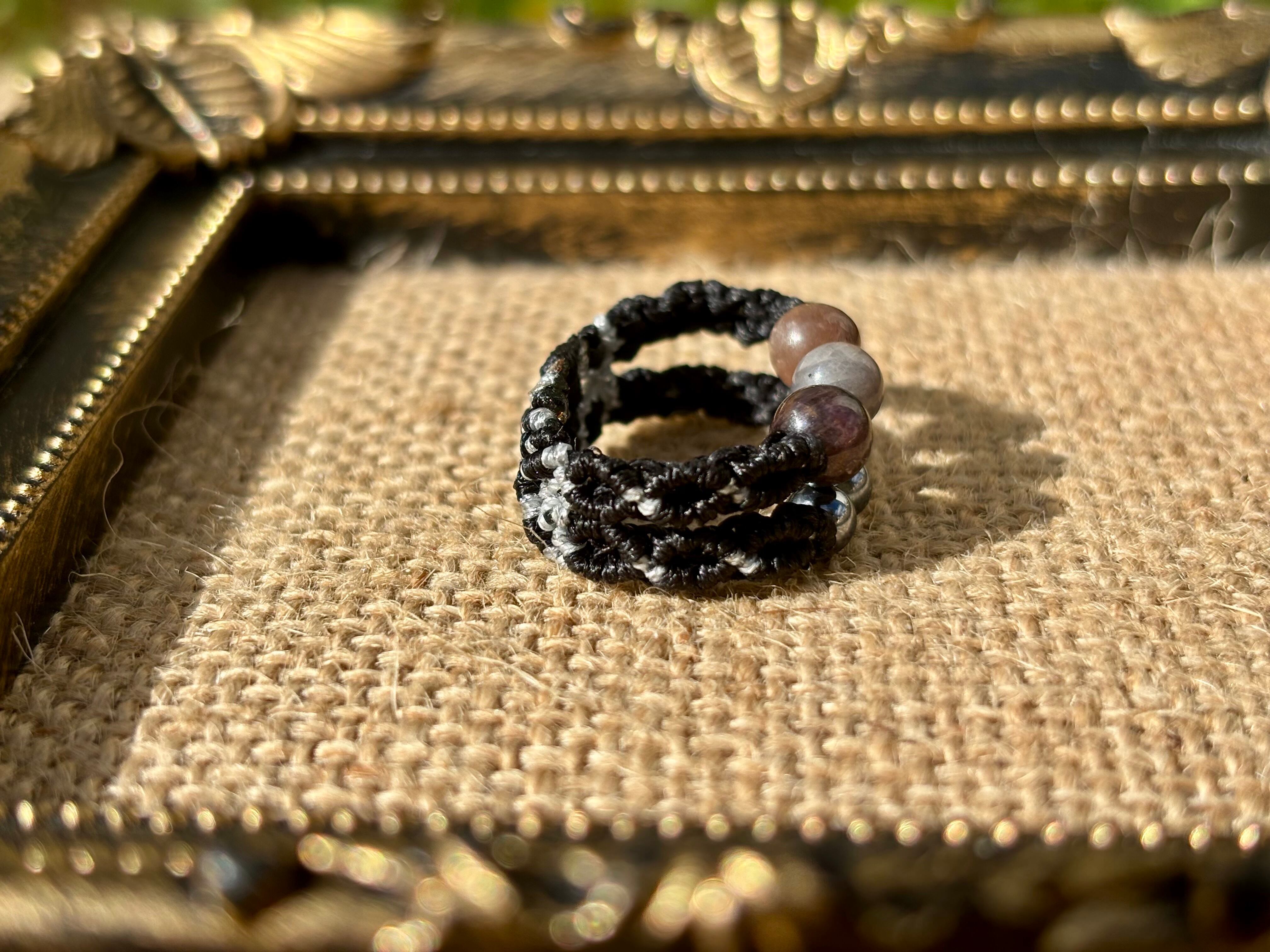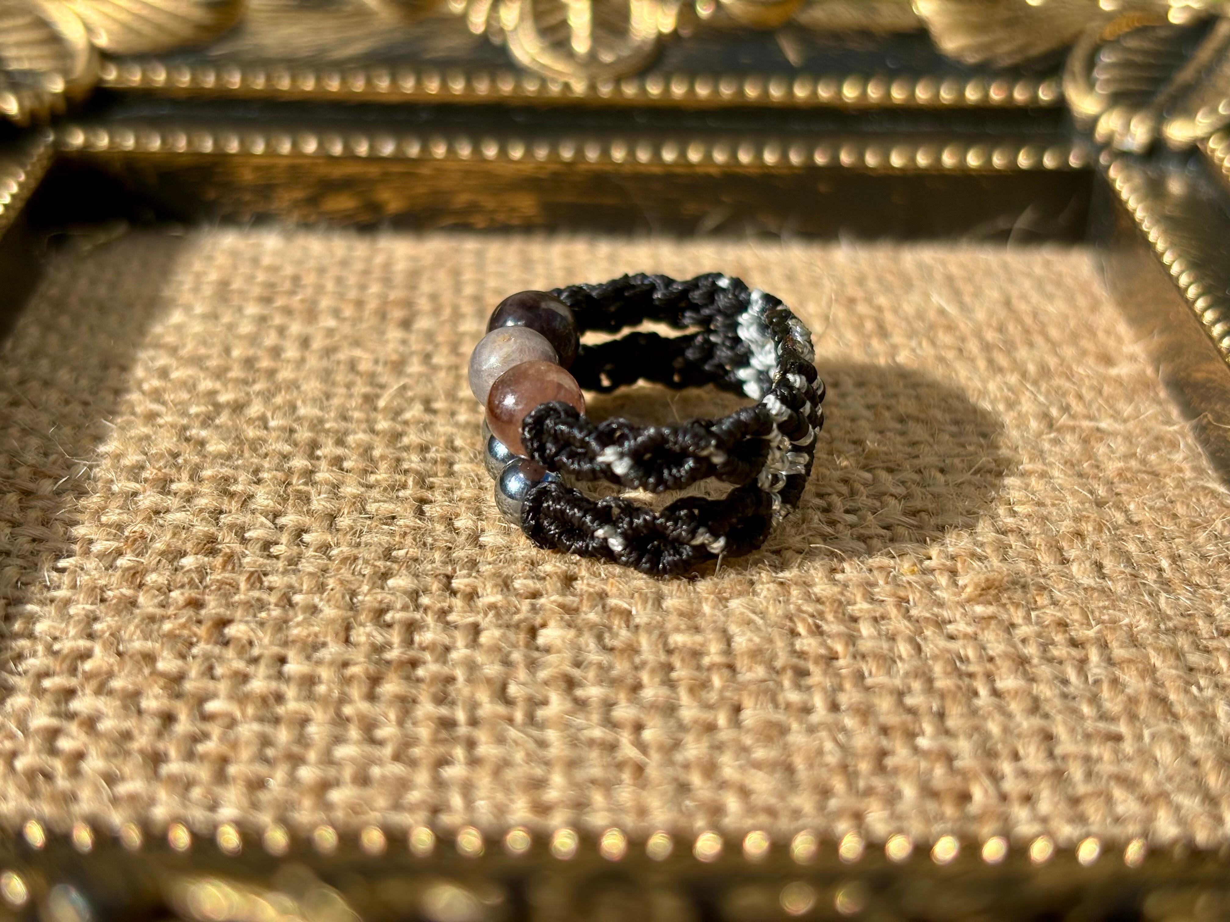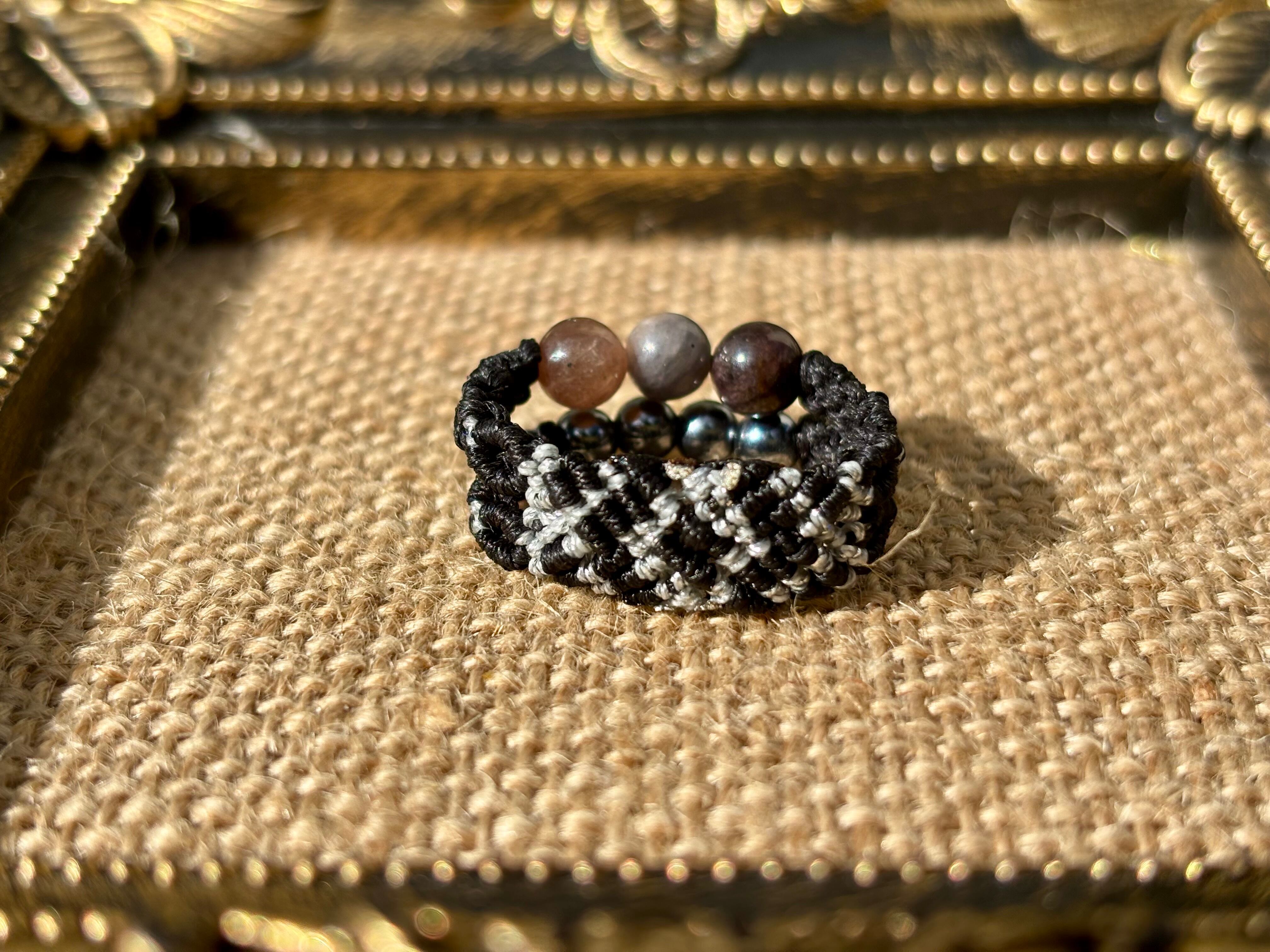 #919天然カラフルサファイア一点物(カラフルサファイア×テラヘルツ マクラメ編み二連リング/指輪)