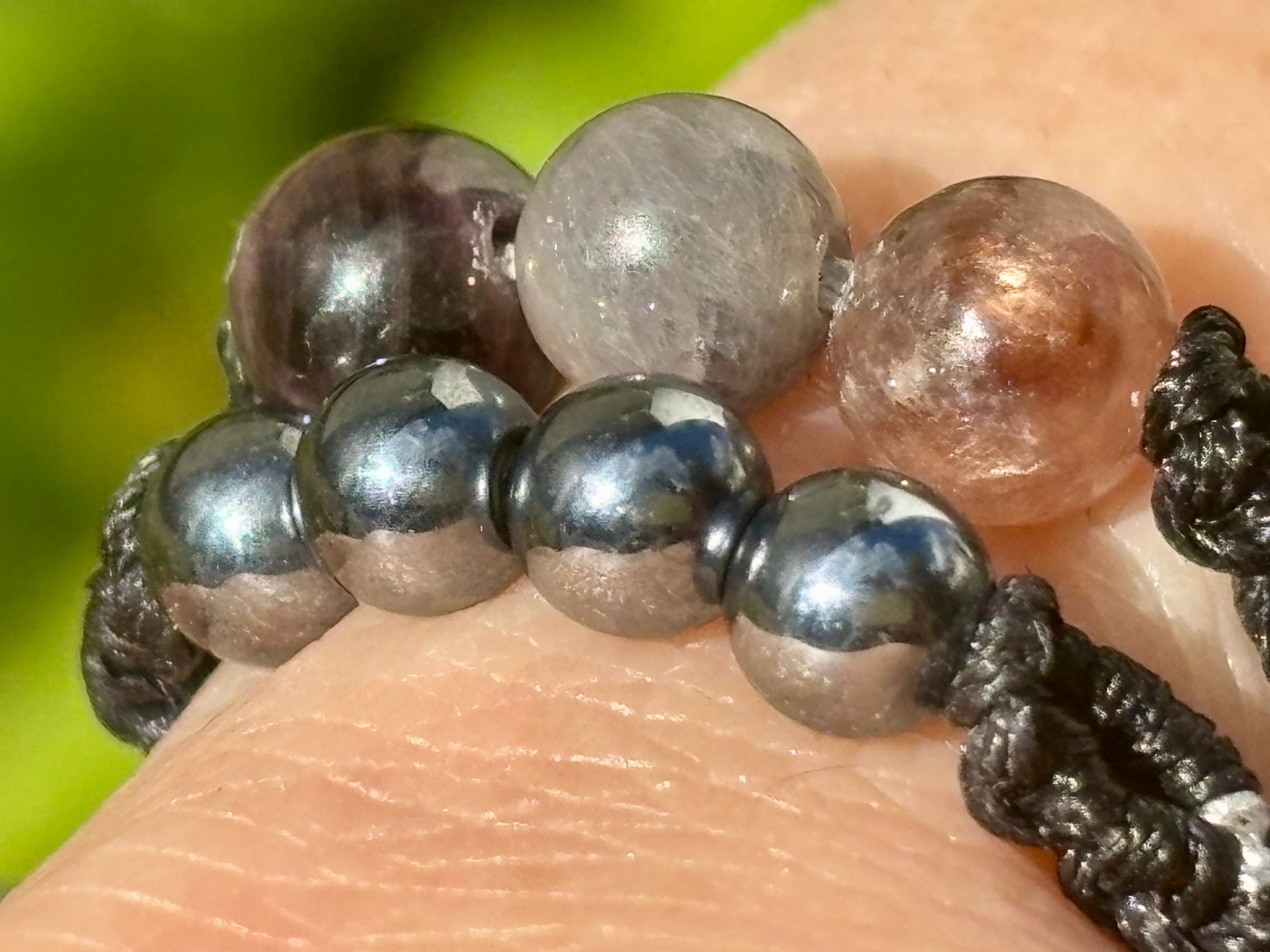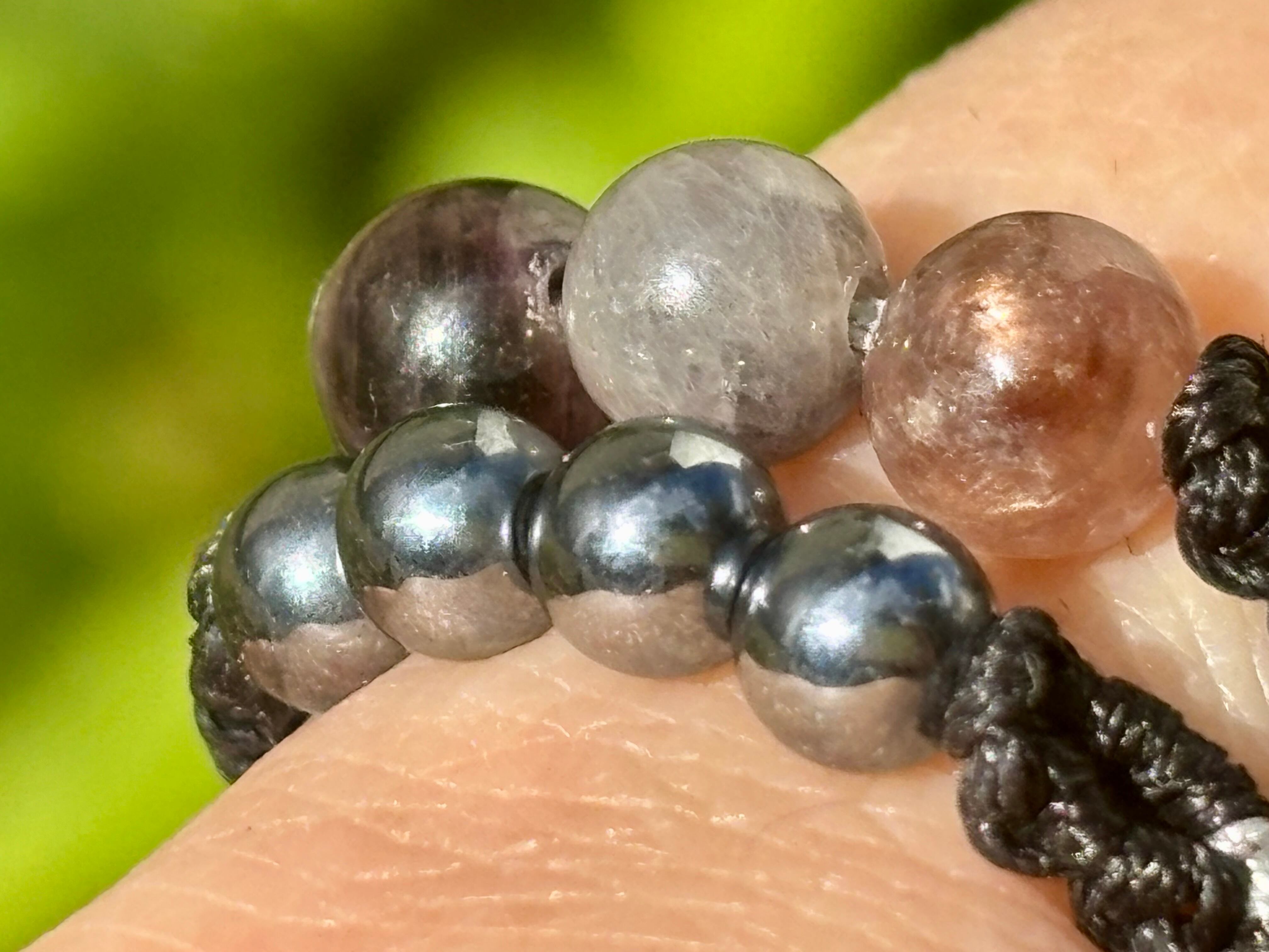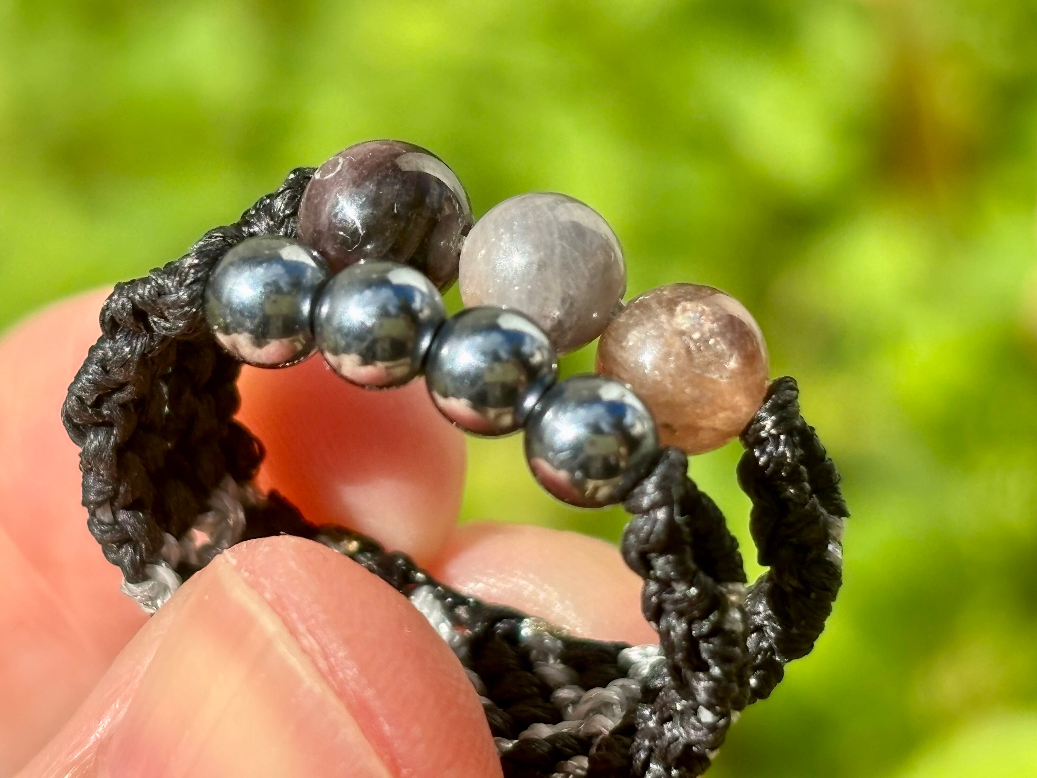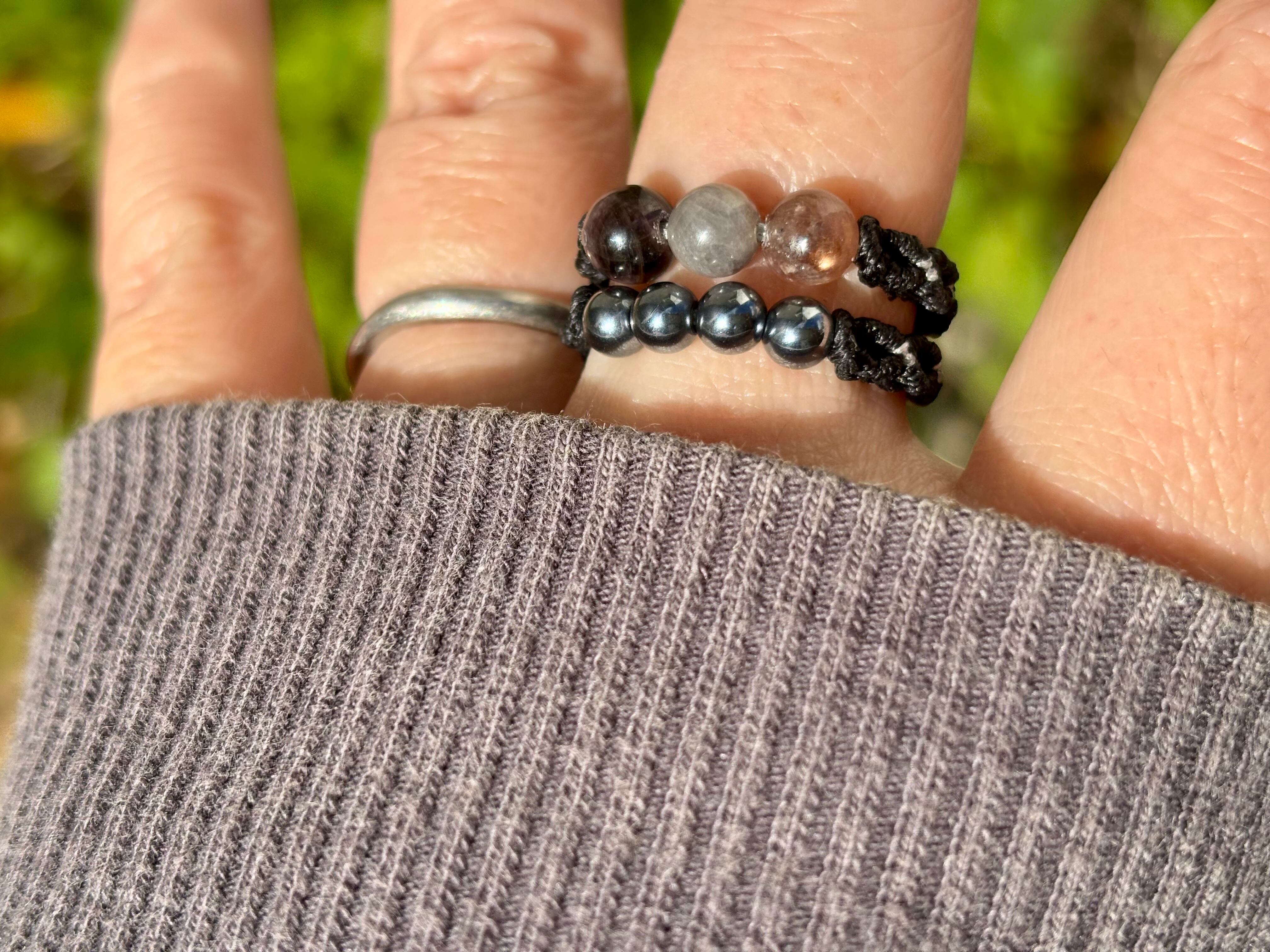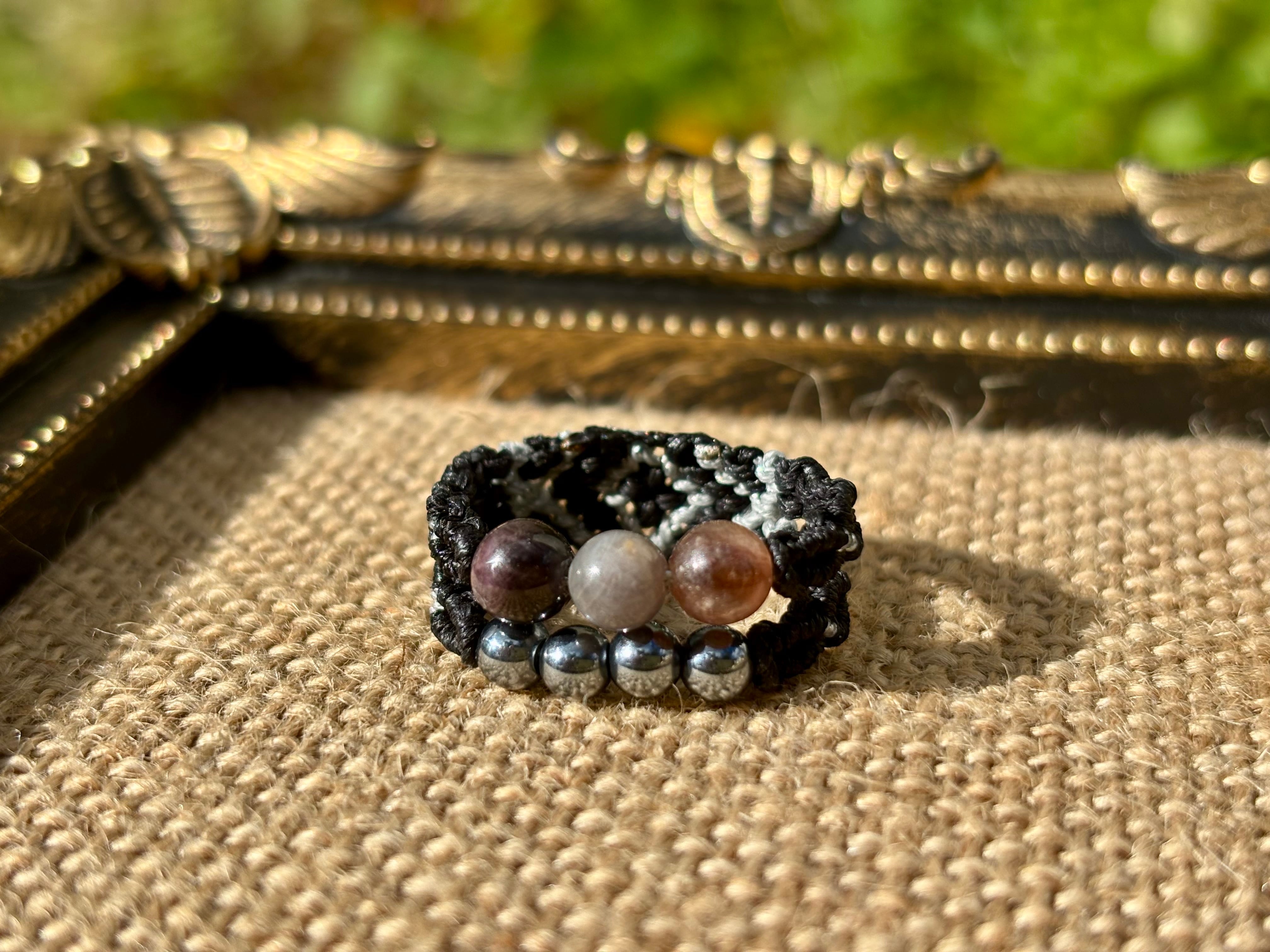 #919天然カラフルサファイア一点物(カラフルサファイア×テラヘルツ マクラメ編み二連リング/指輪)