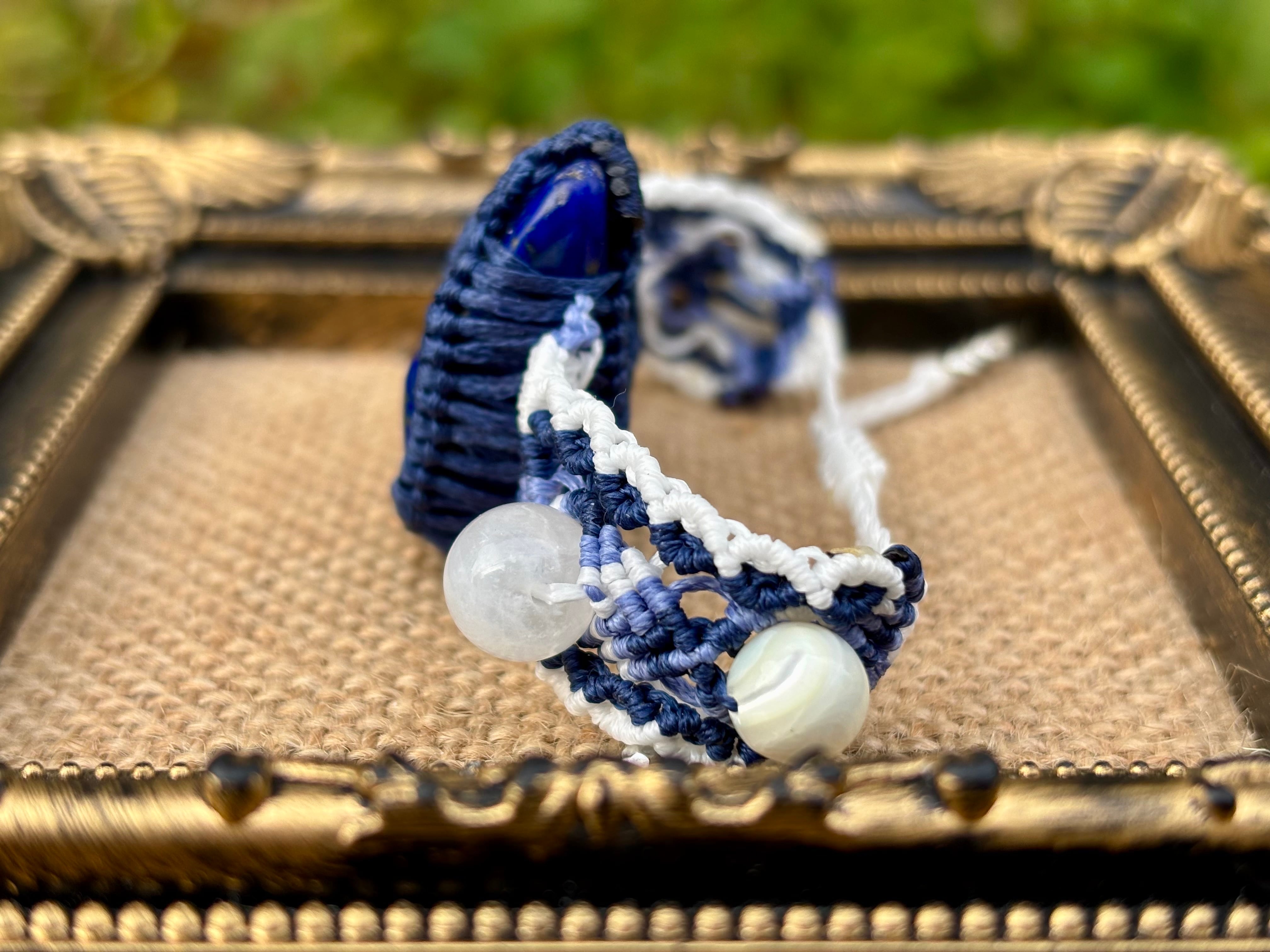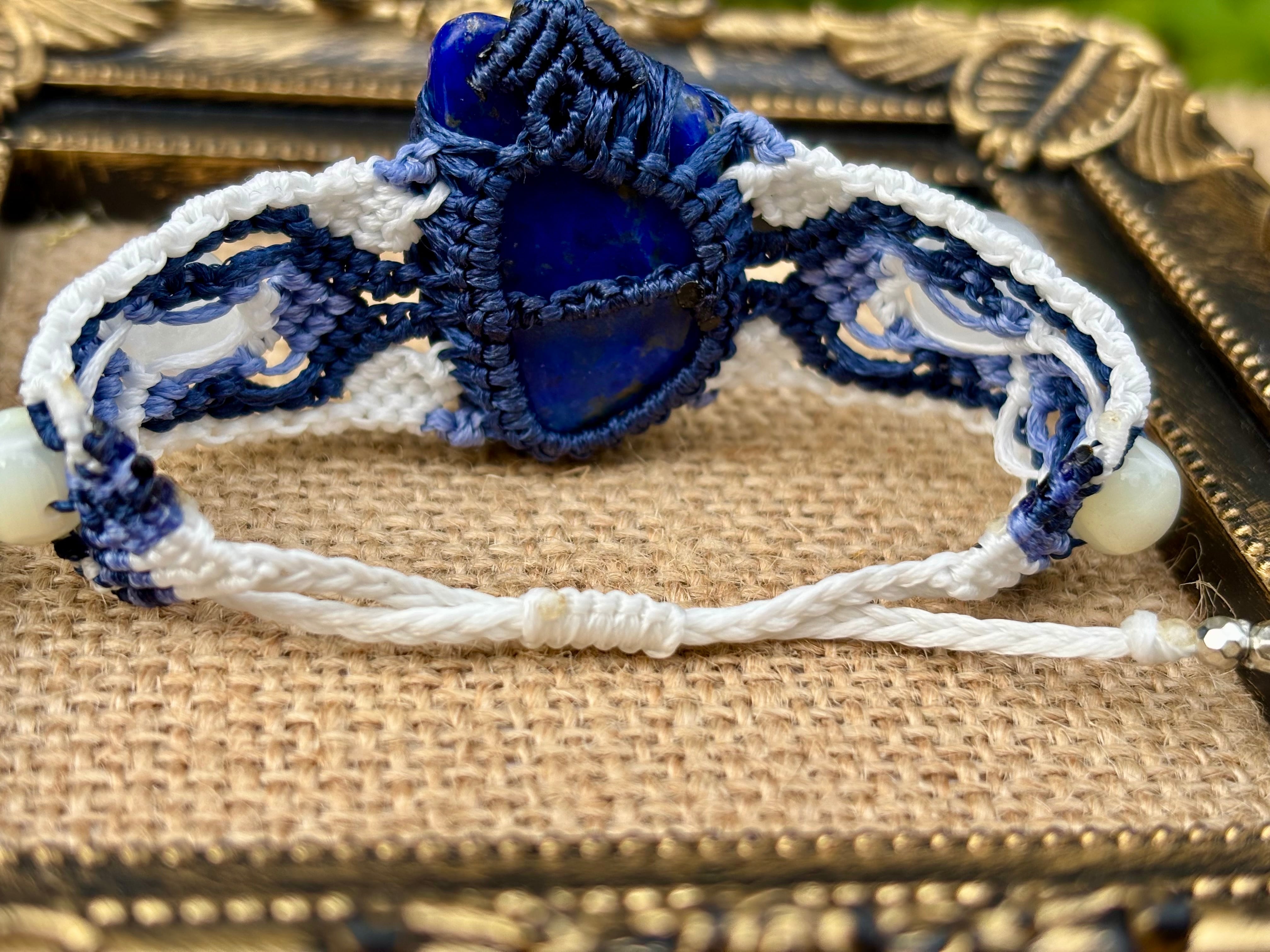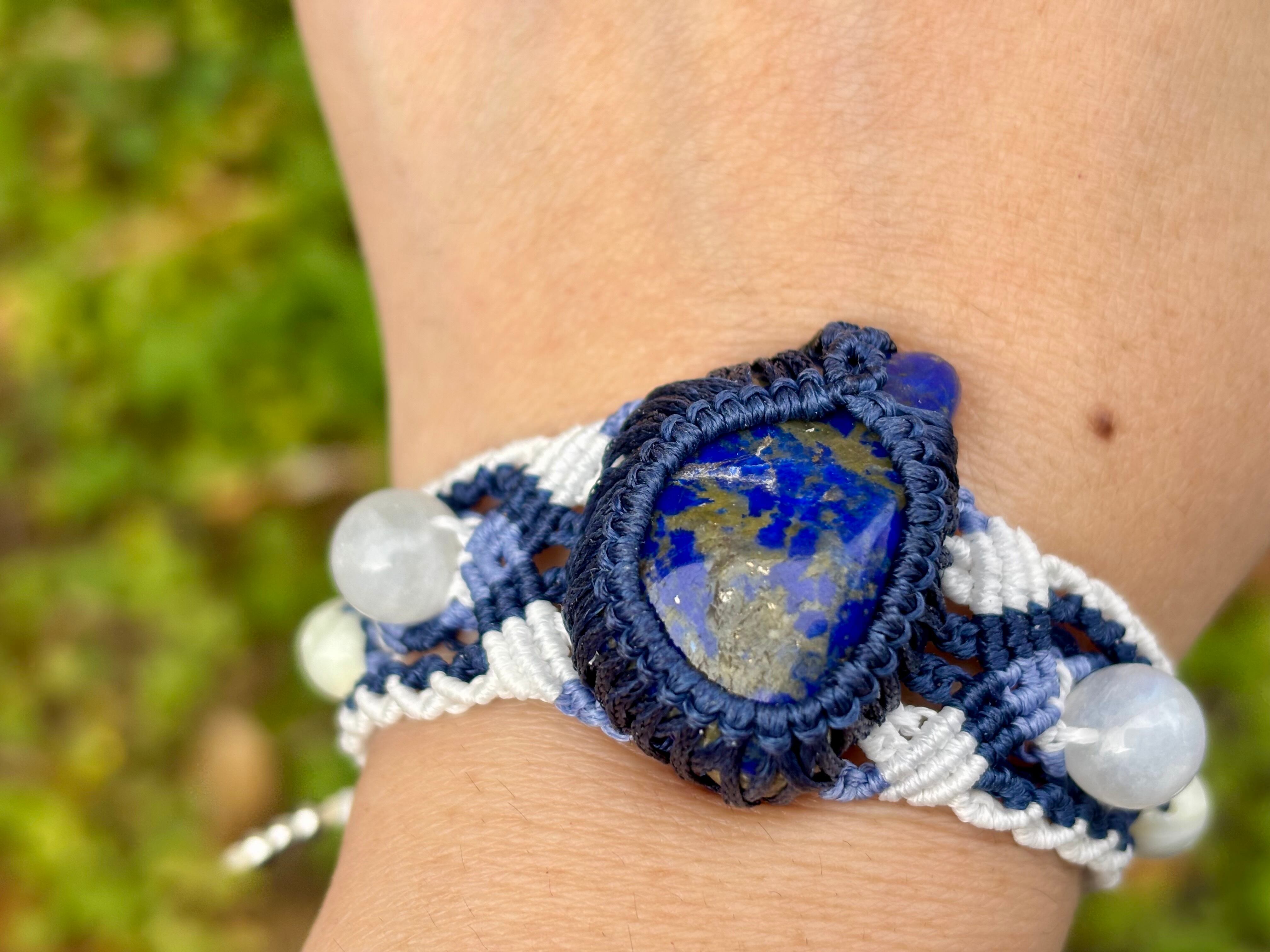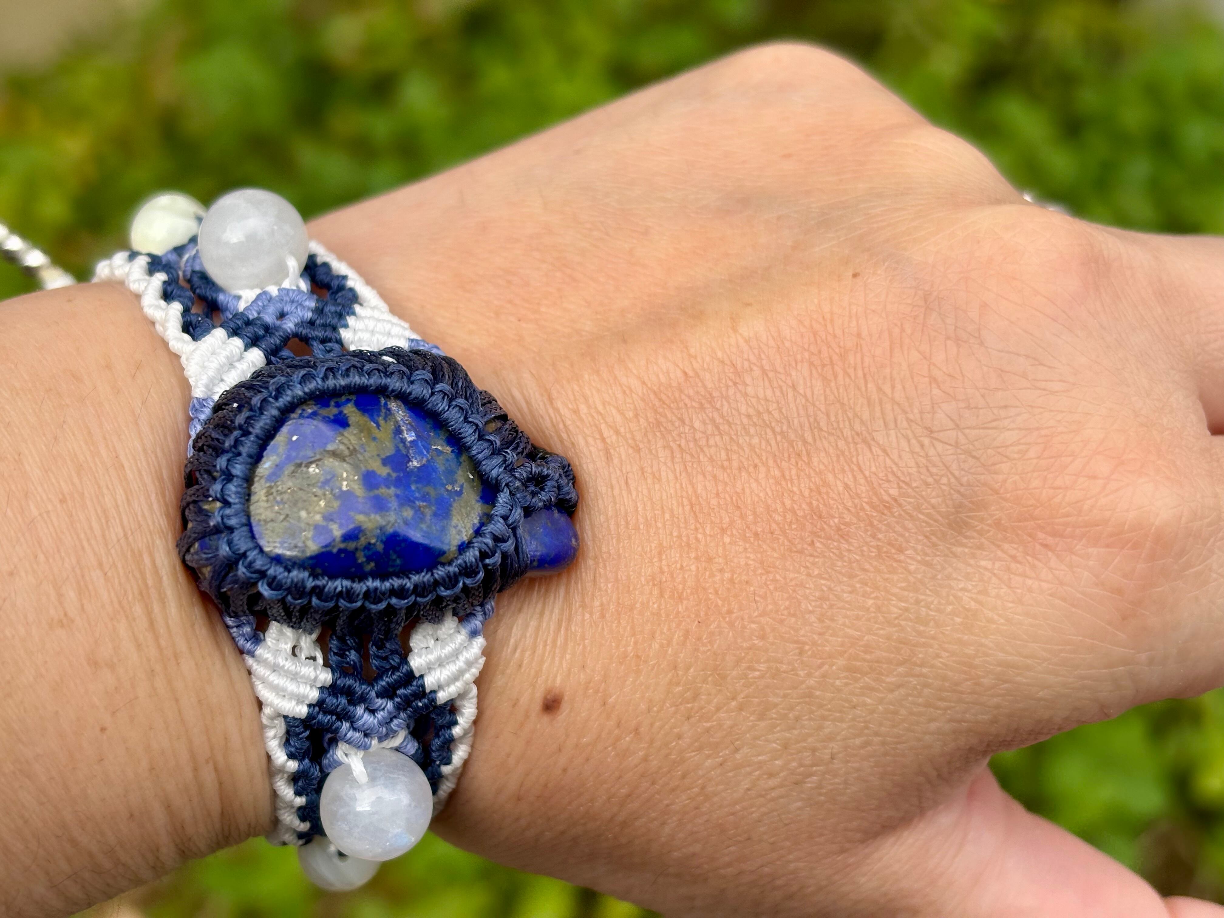 #922天然ラピスラズリ一点物(ラピスラズリ×ホワイトラブラドライト×マザーオブパール マクラメ編みブレスレット)