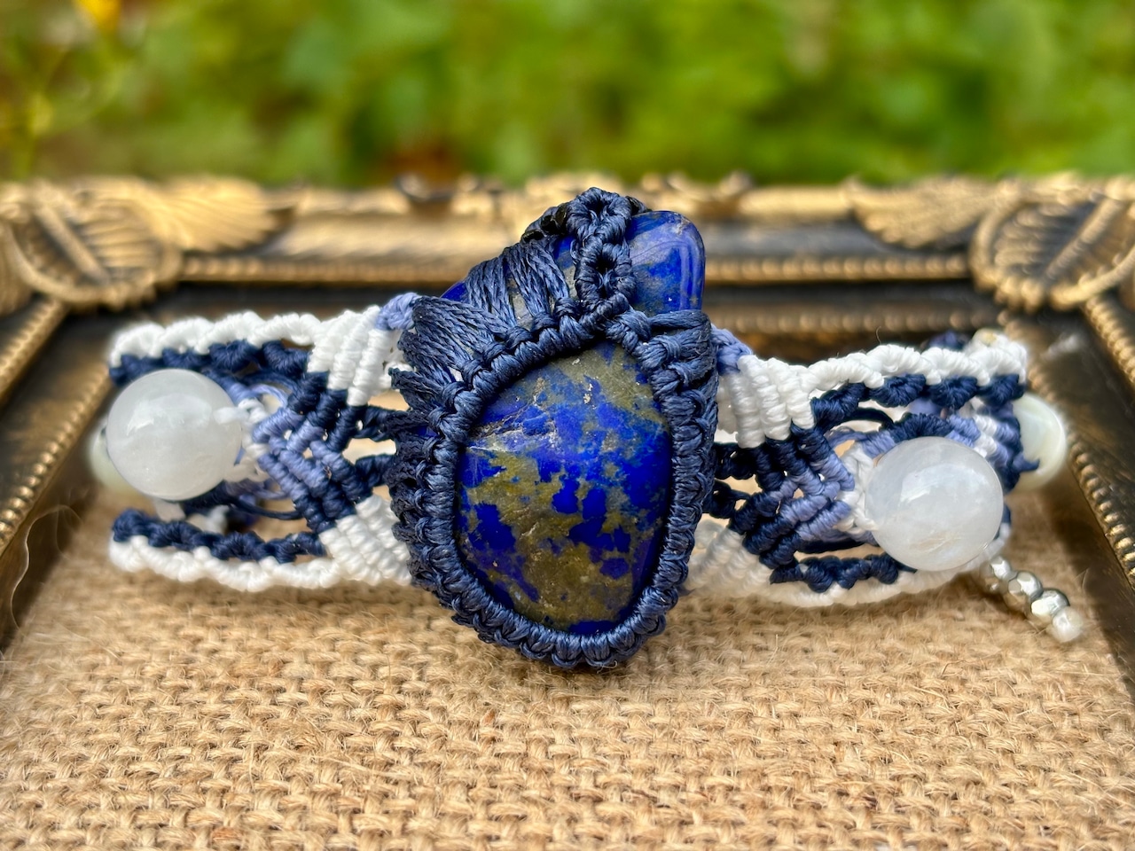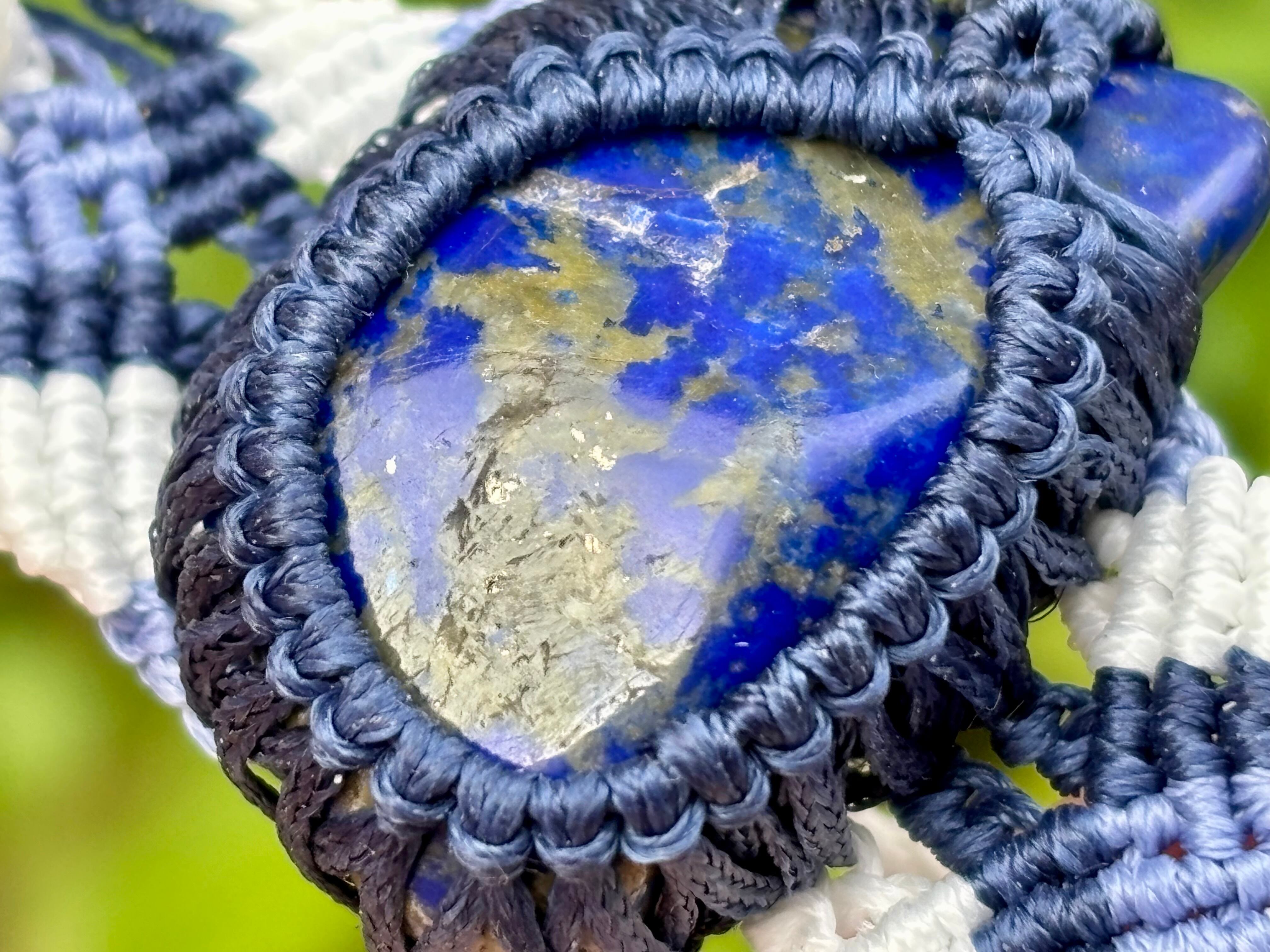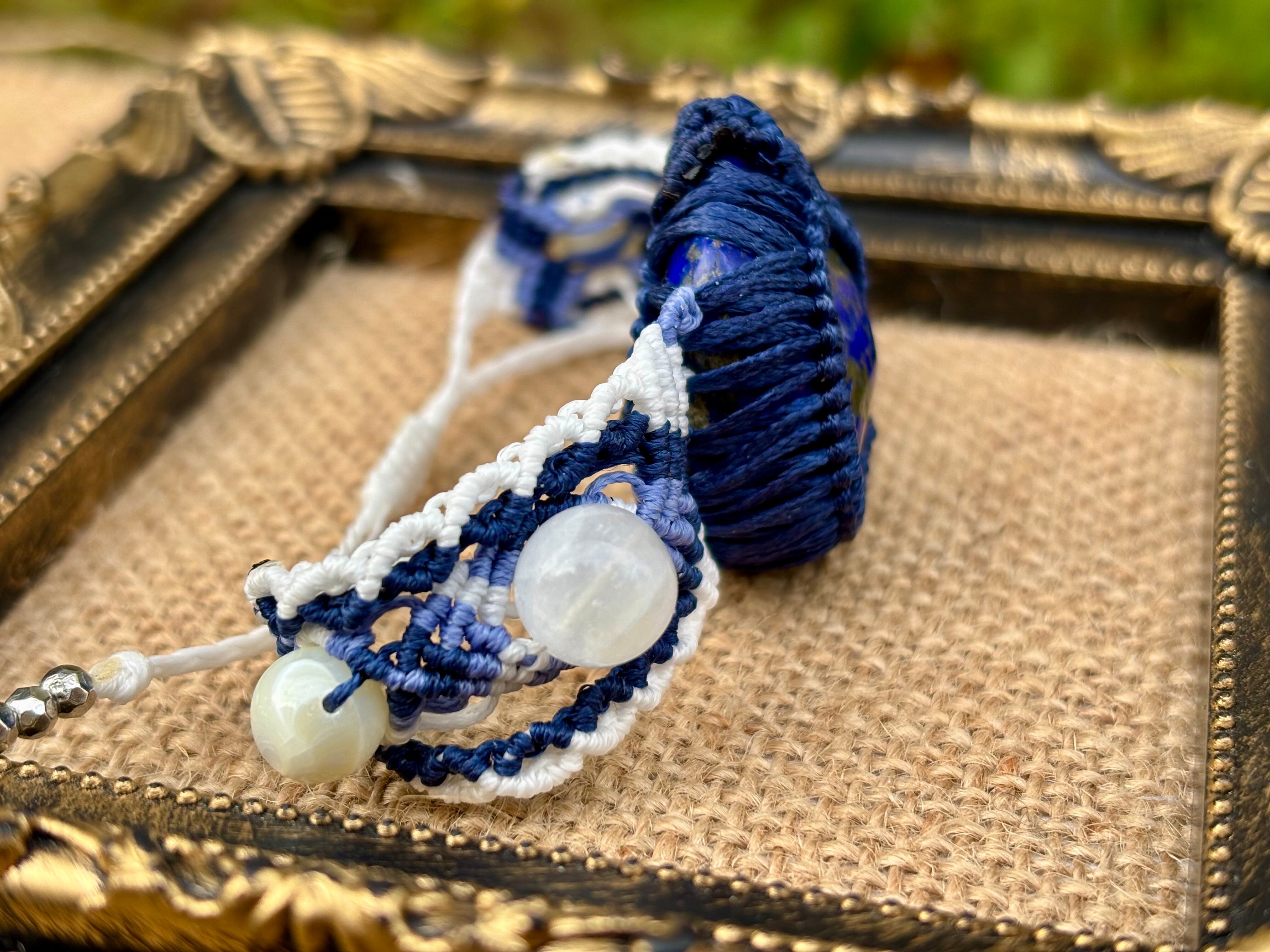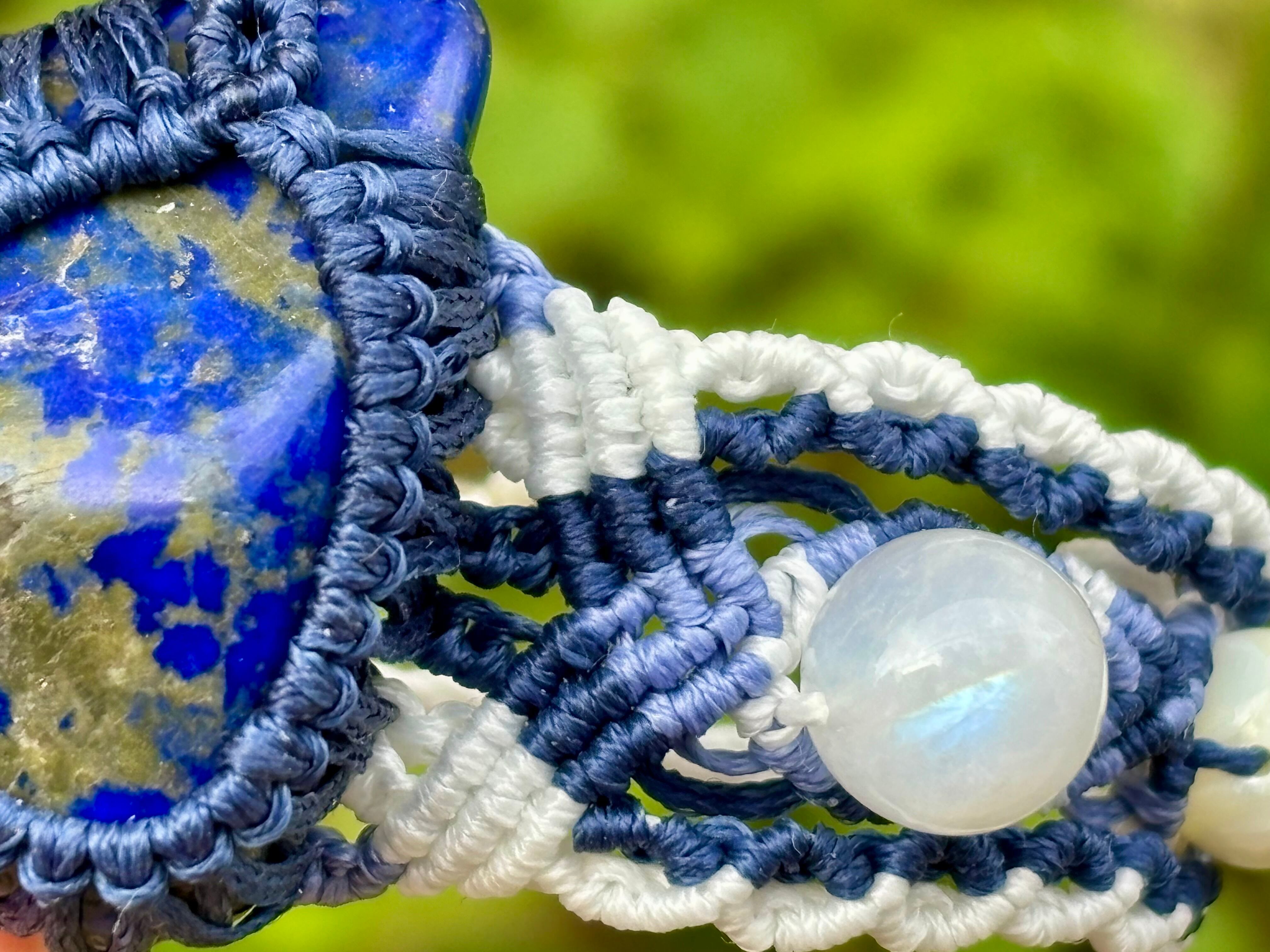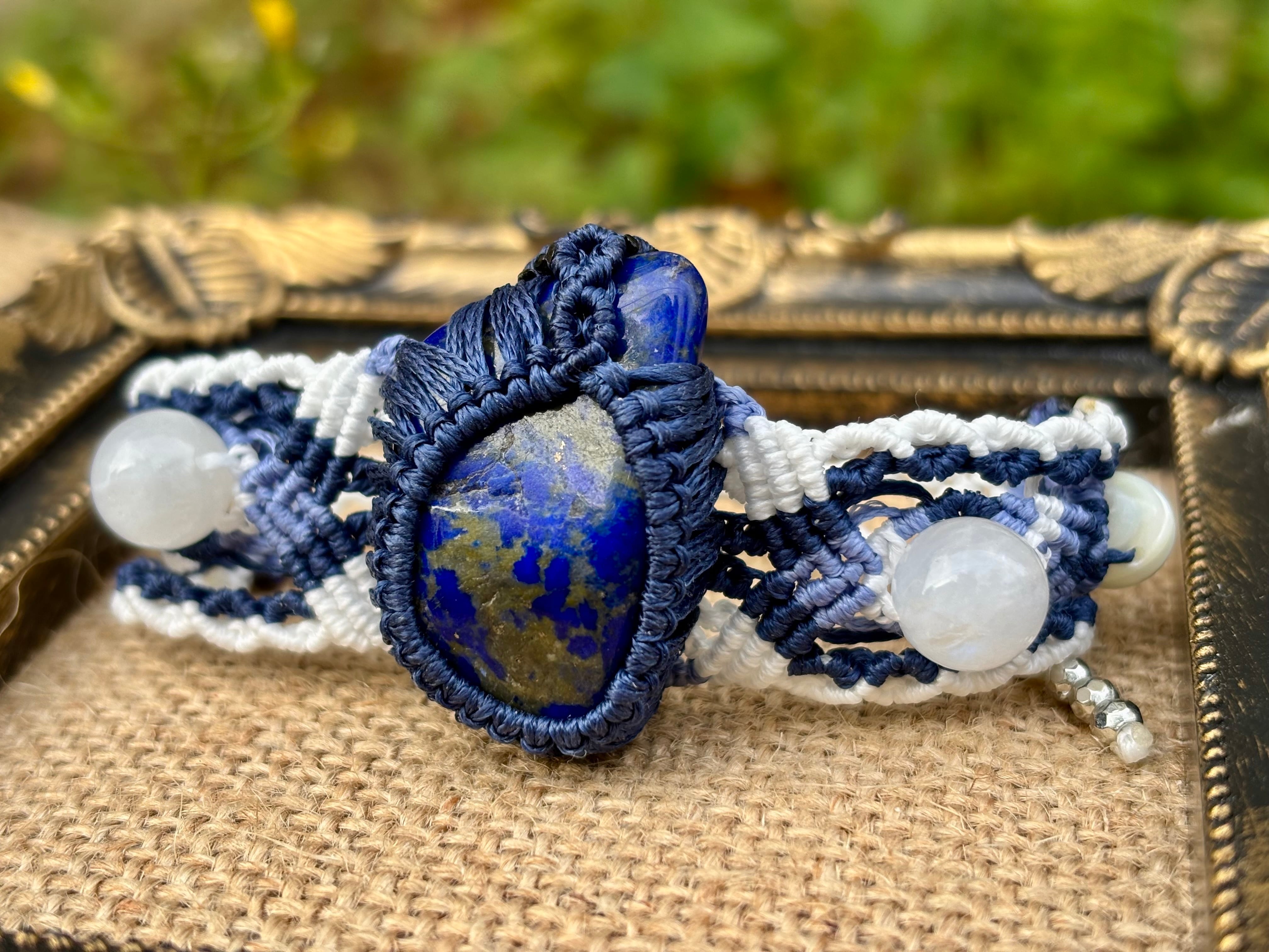 #922天然ラピスラズリ一点物(ラピスラズリ×ホワイトラブラドライト×マザーオブパール マクラメ編みブレスレット)