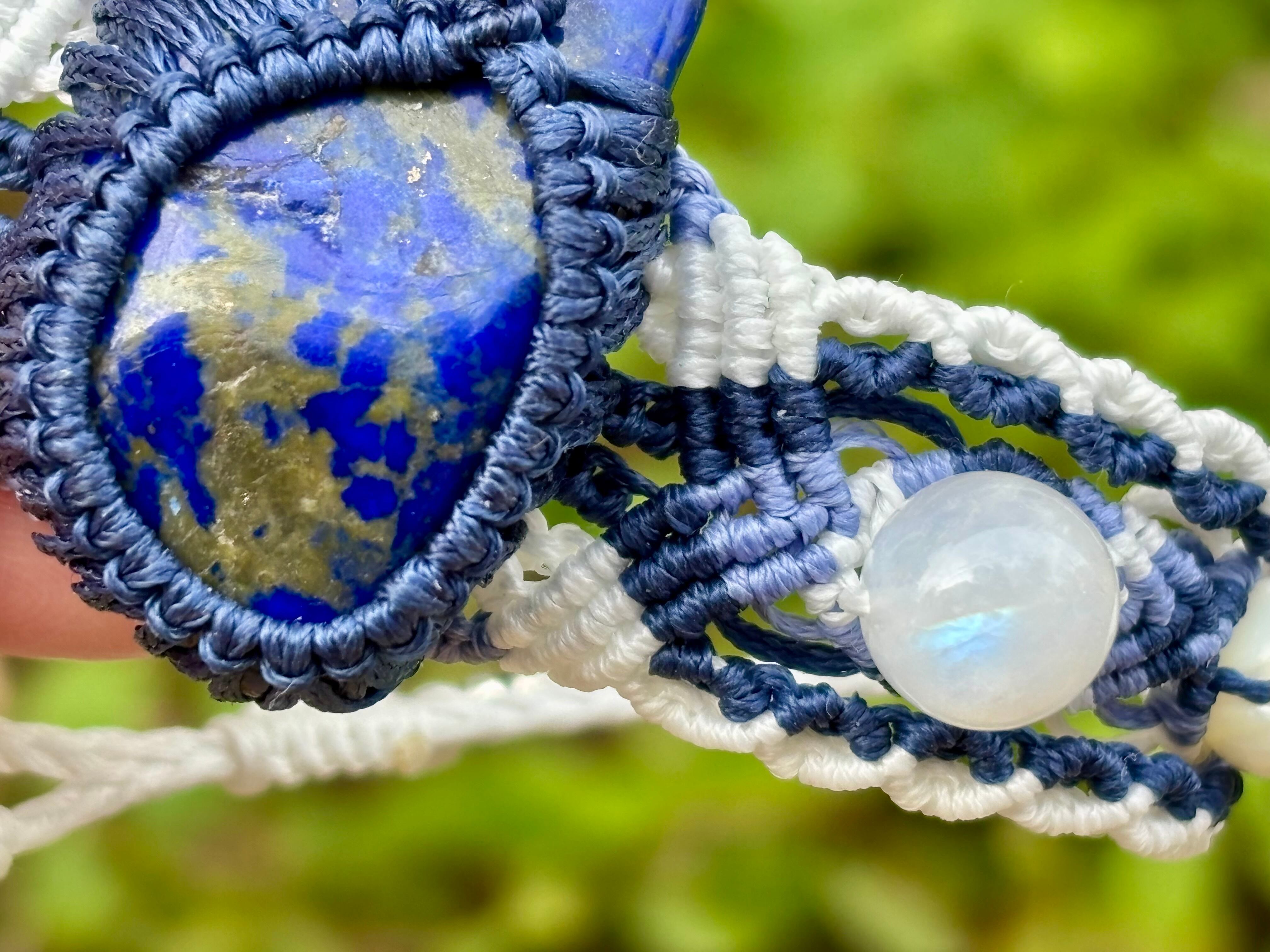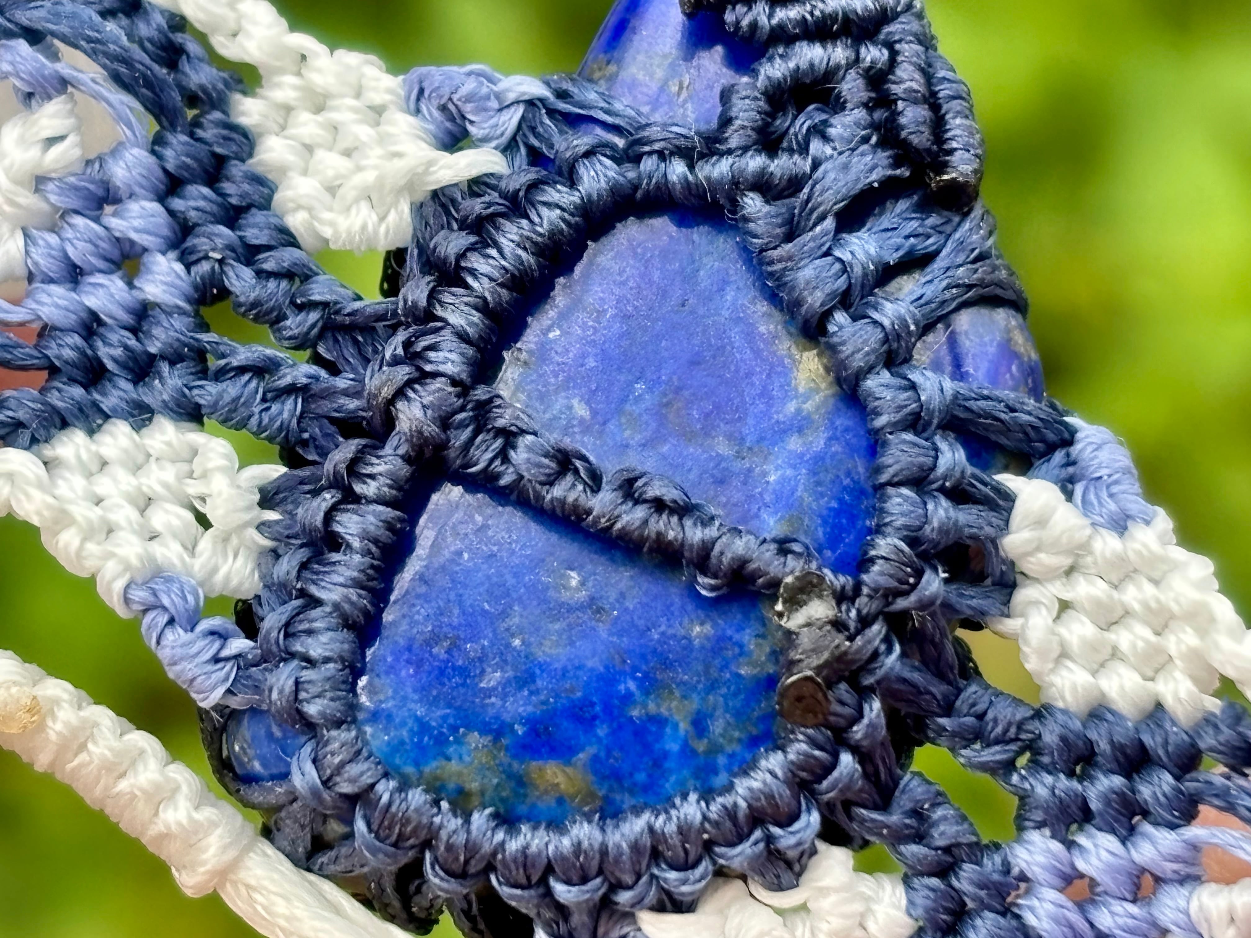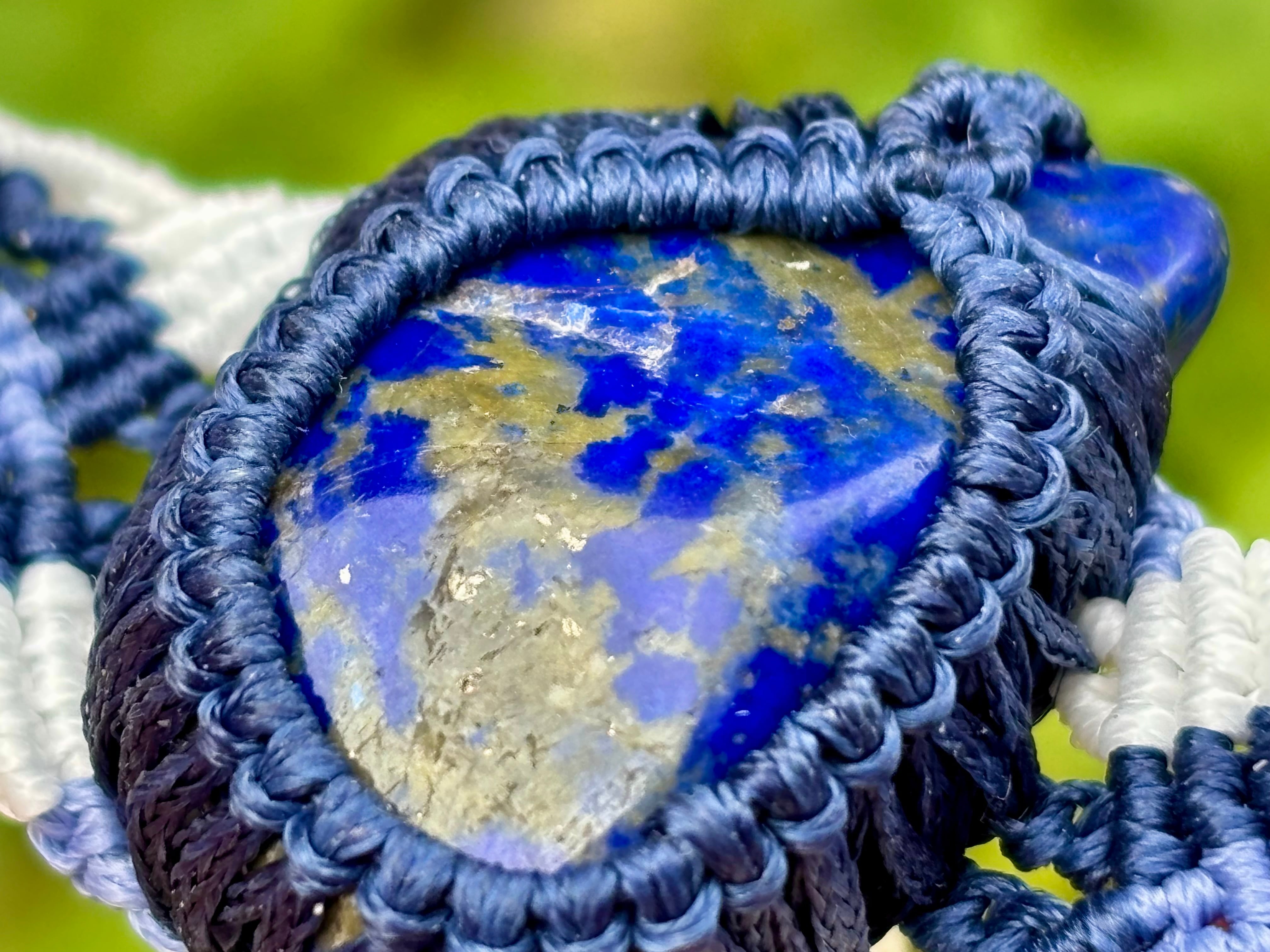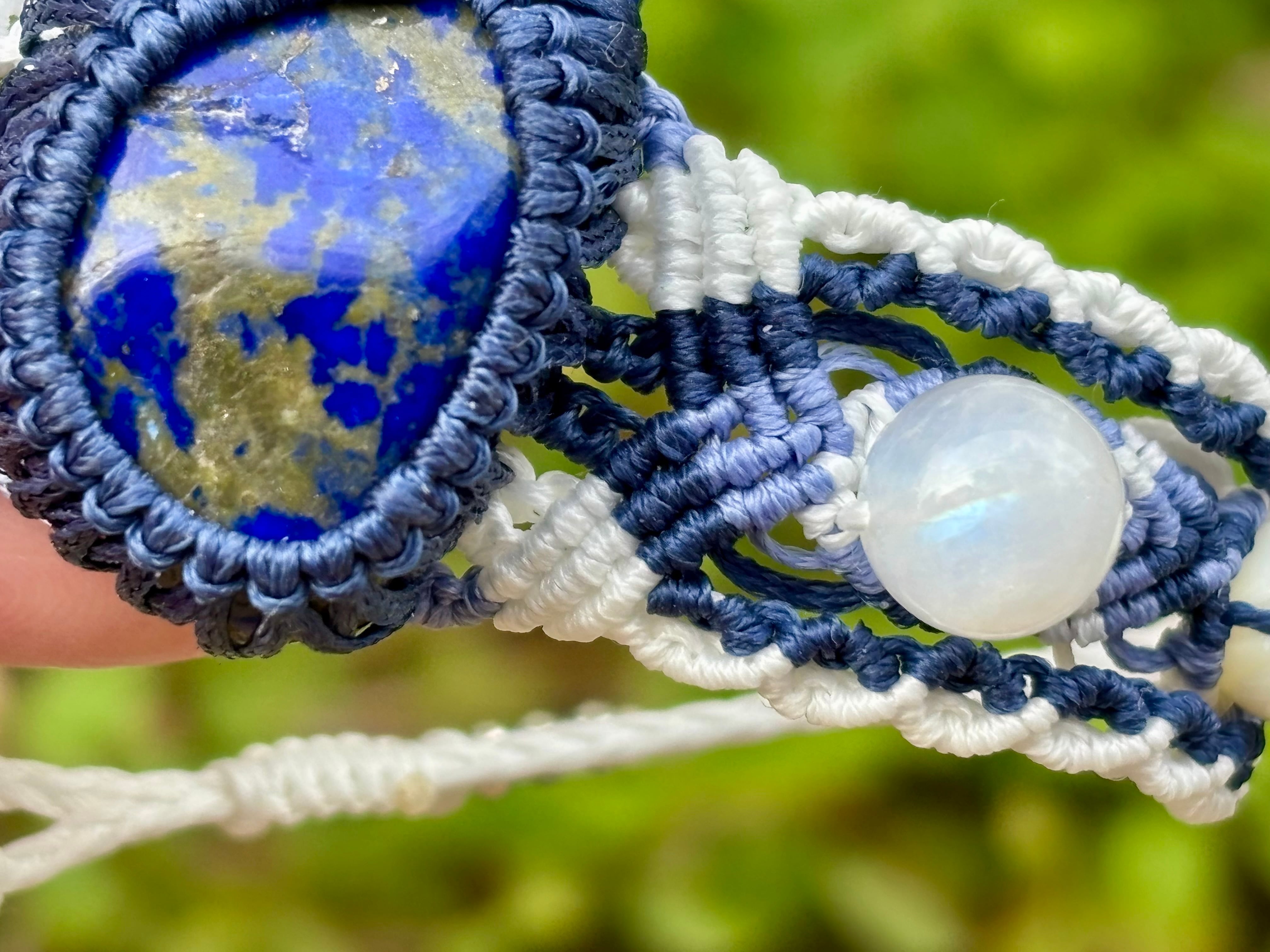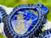 #922天然ラピスラズリ一点物(ラピスラズリ×ホワイトラブラドライト×マザーオブパール マクラメ編みブレスレット)