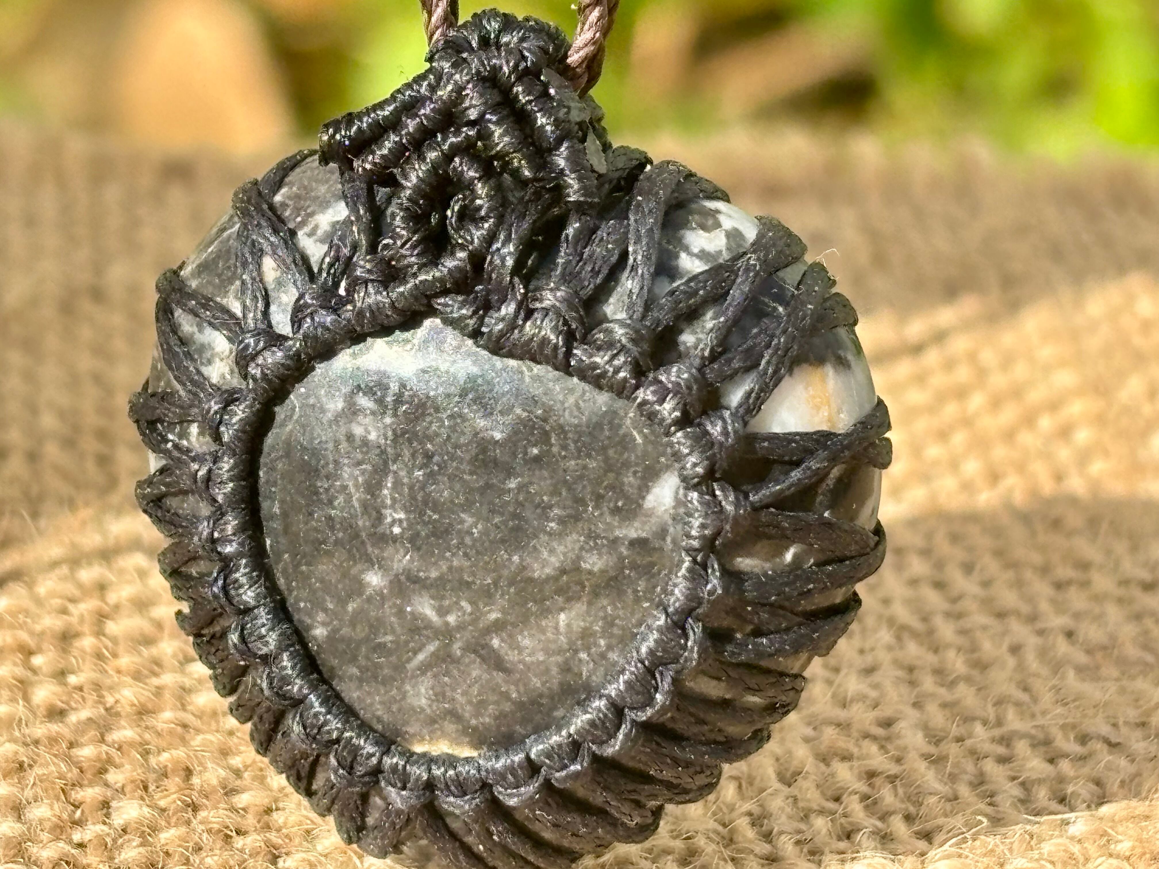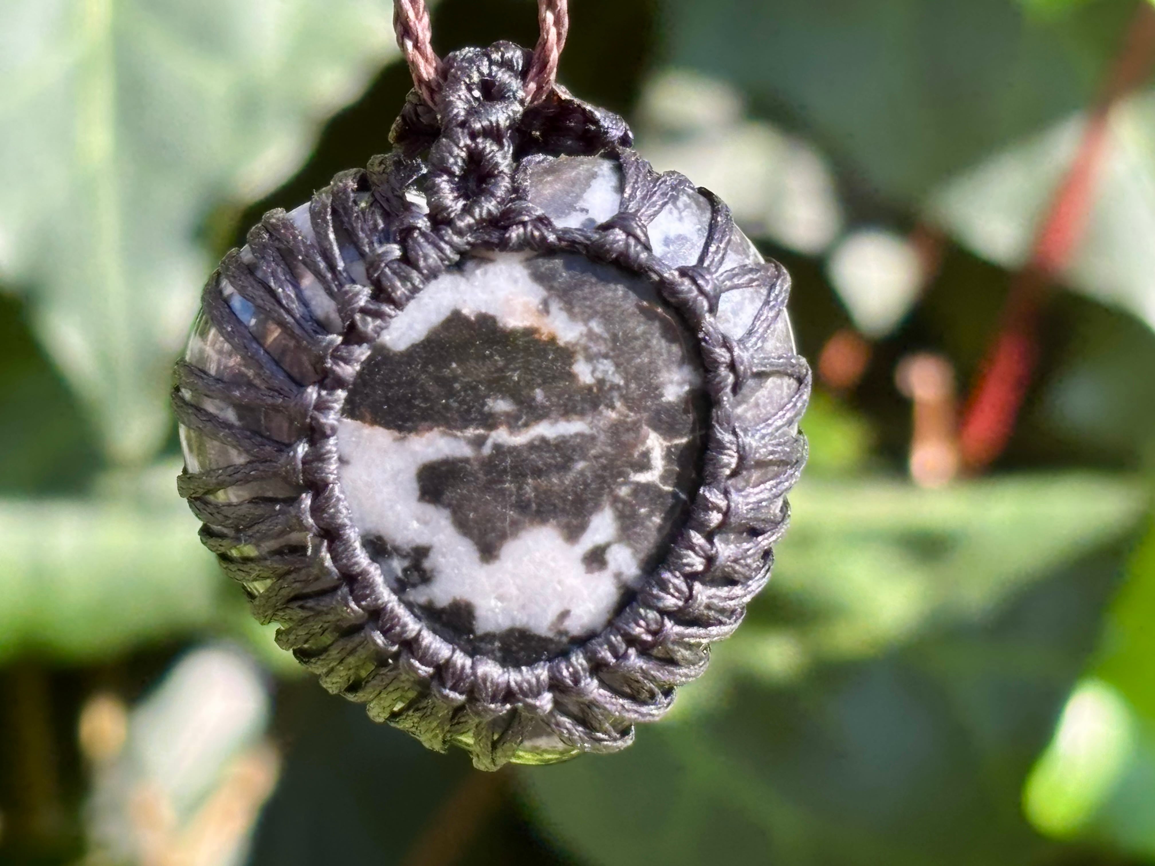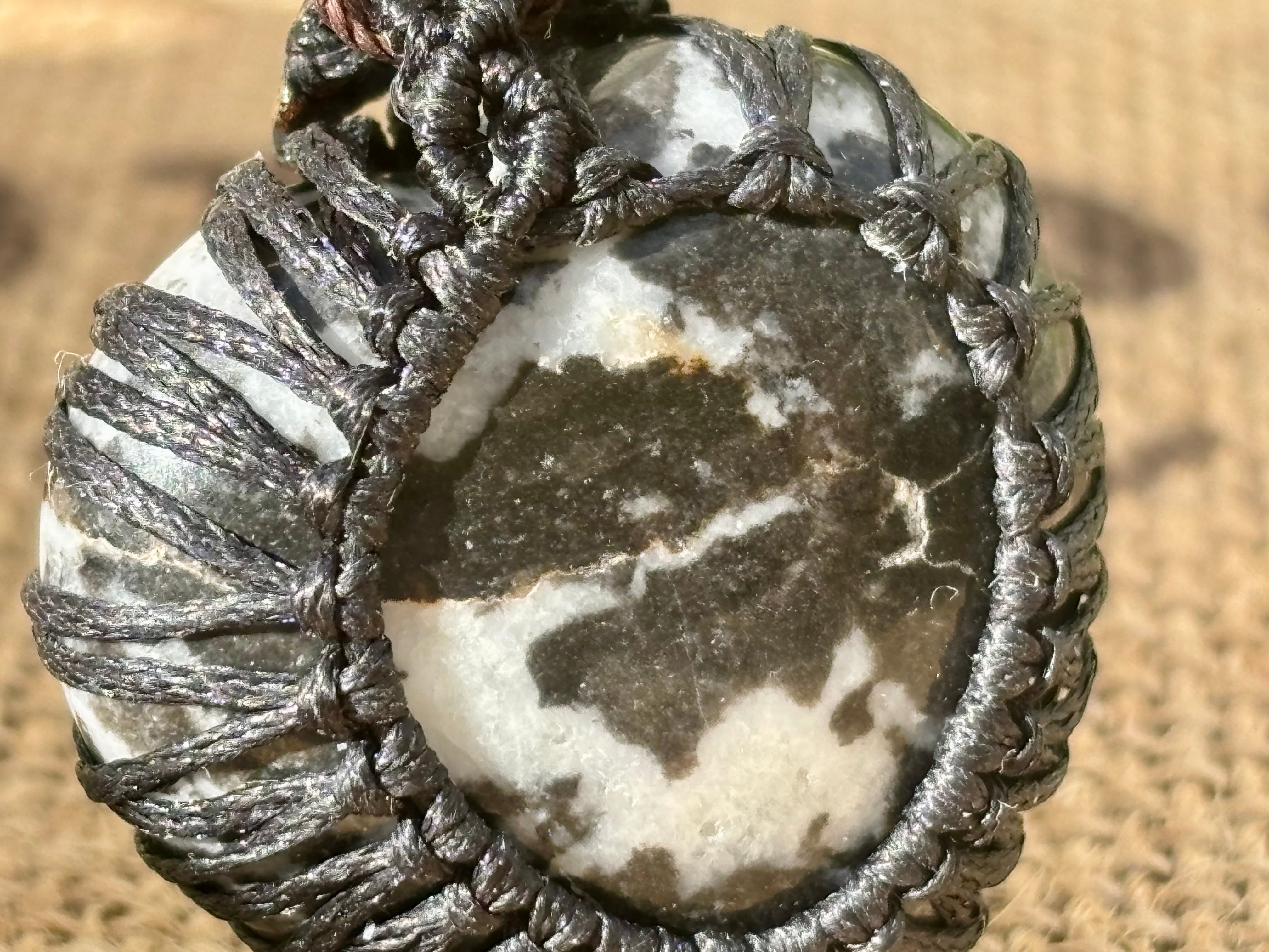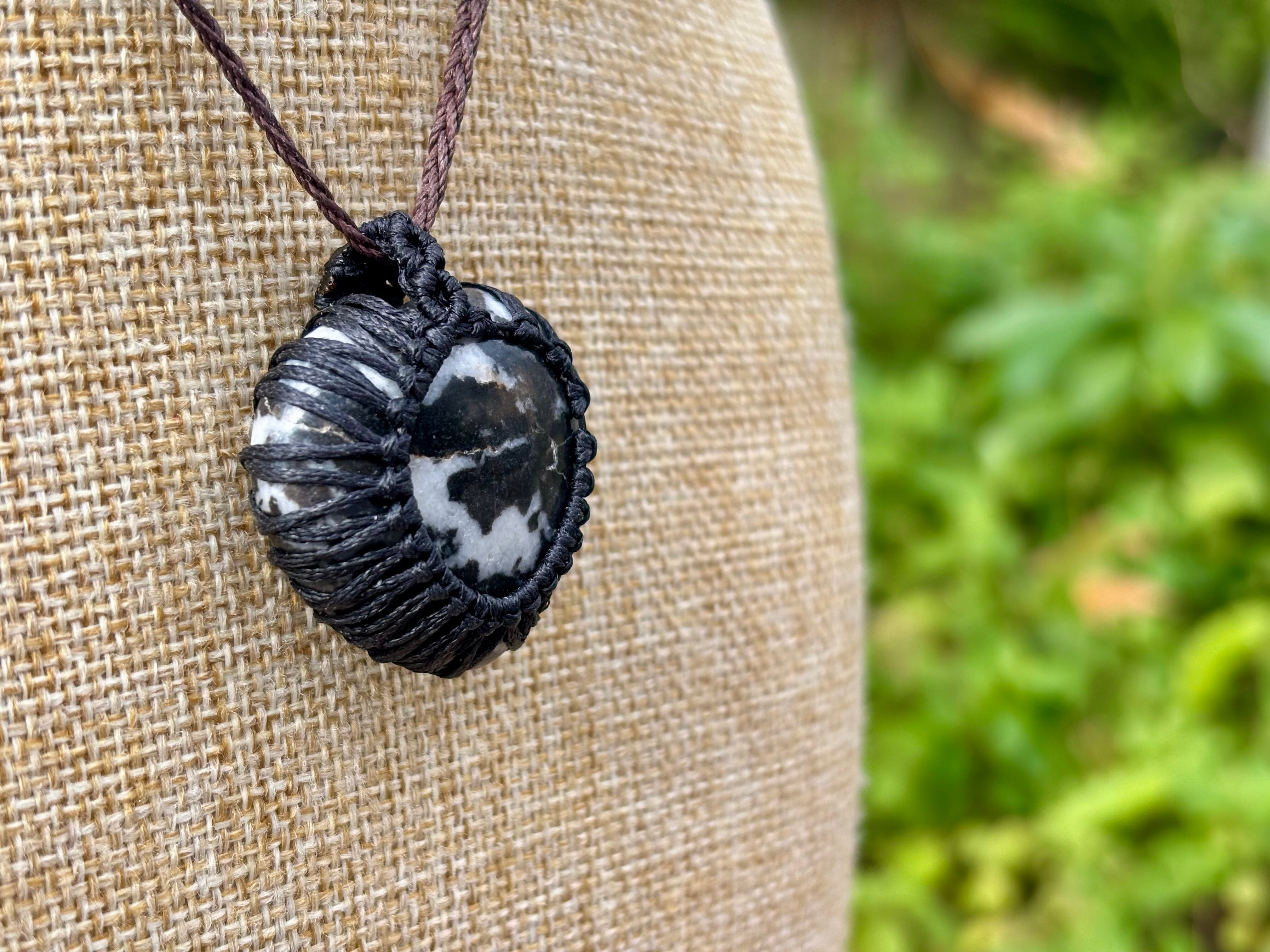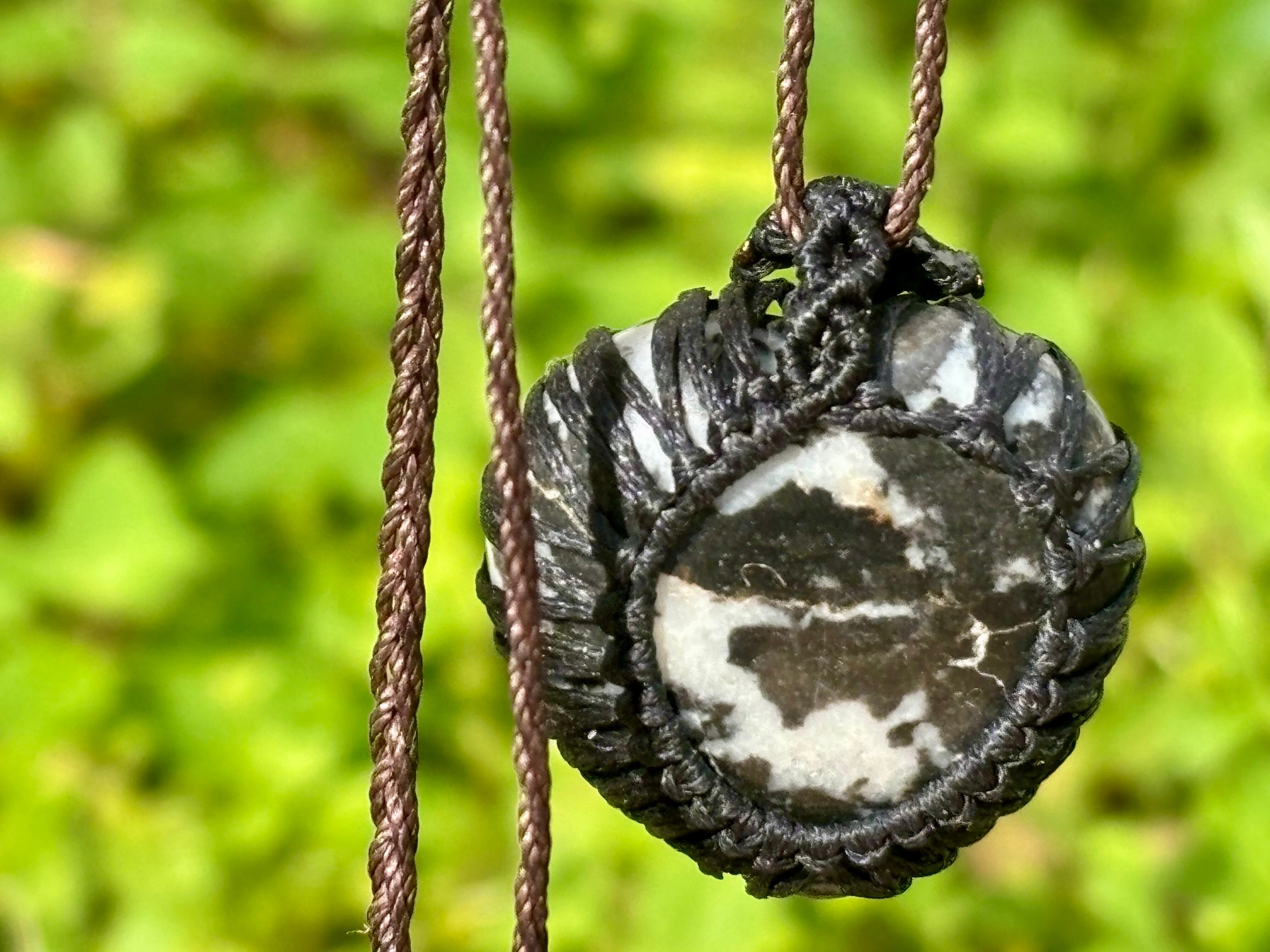 #930希少ホワイトバッファロー一点物 (ホワイトバッファローストーン×パイライト×ヘマタイト マクラメ編みデザインネックレス)