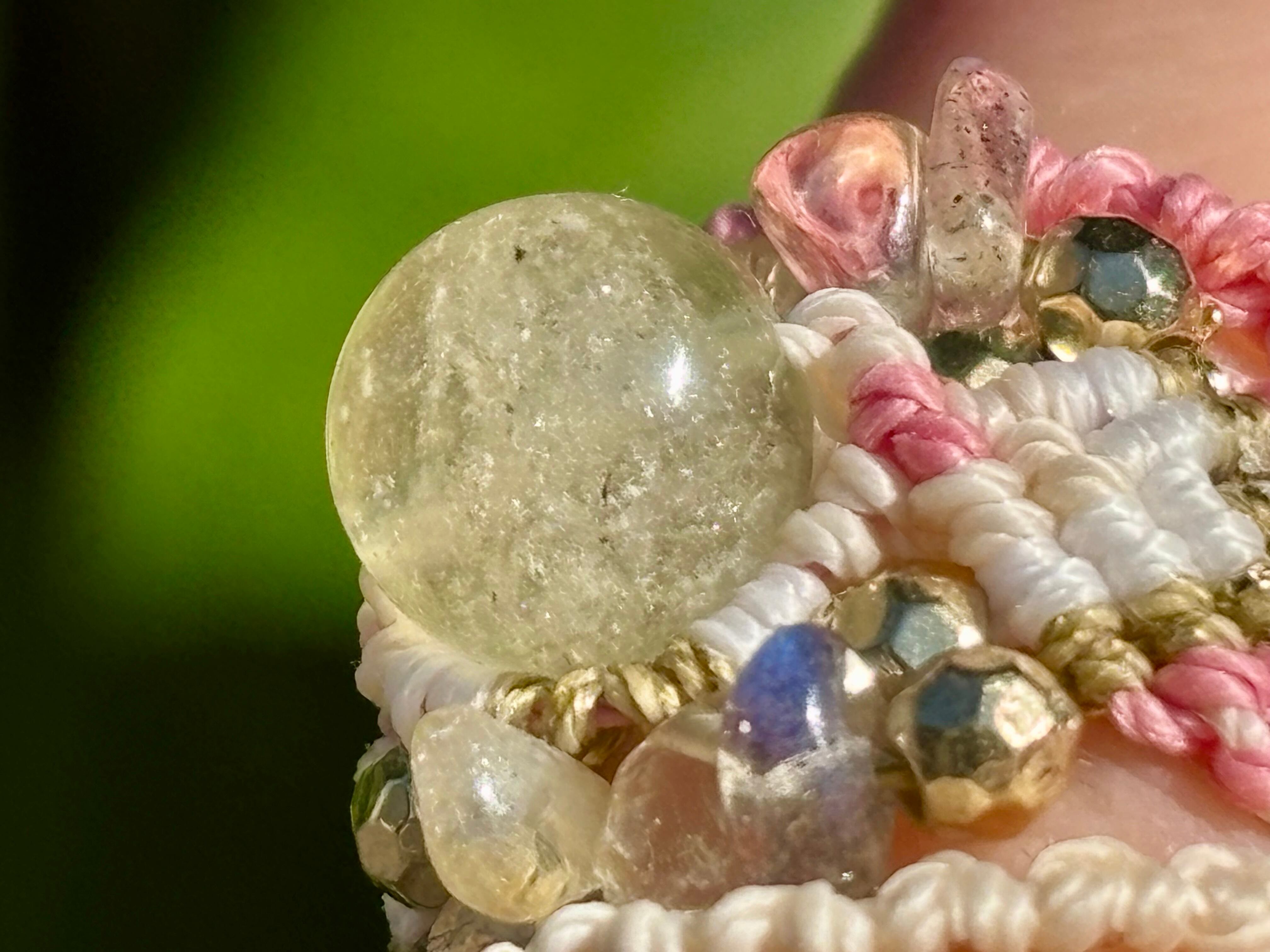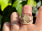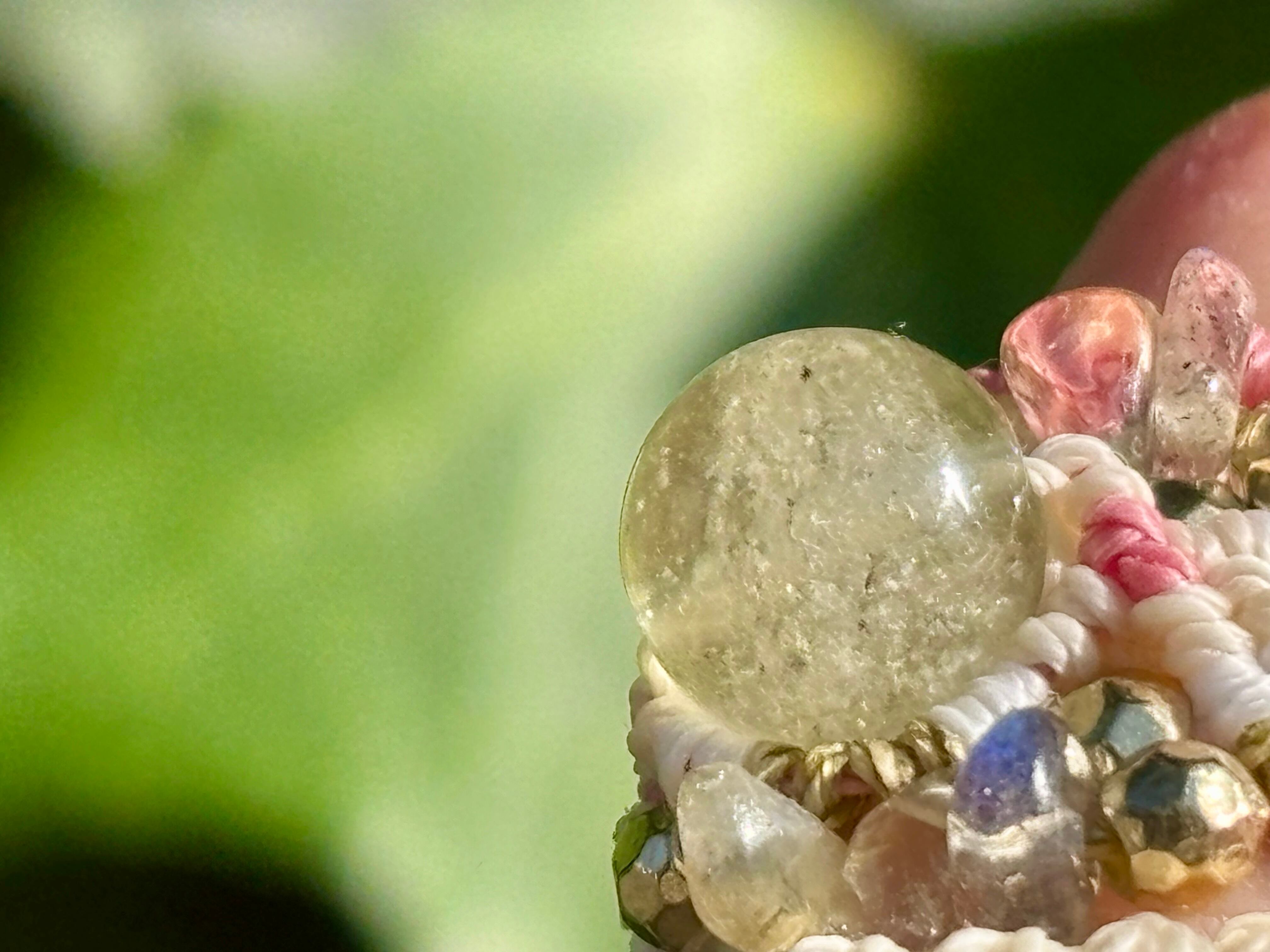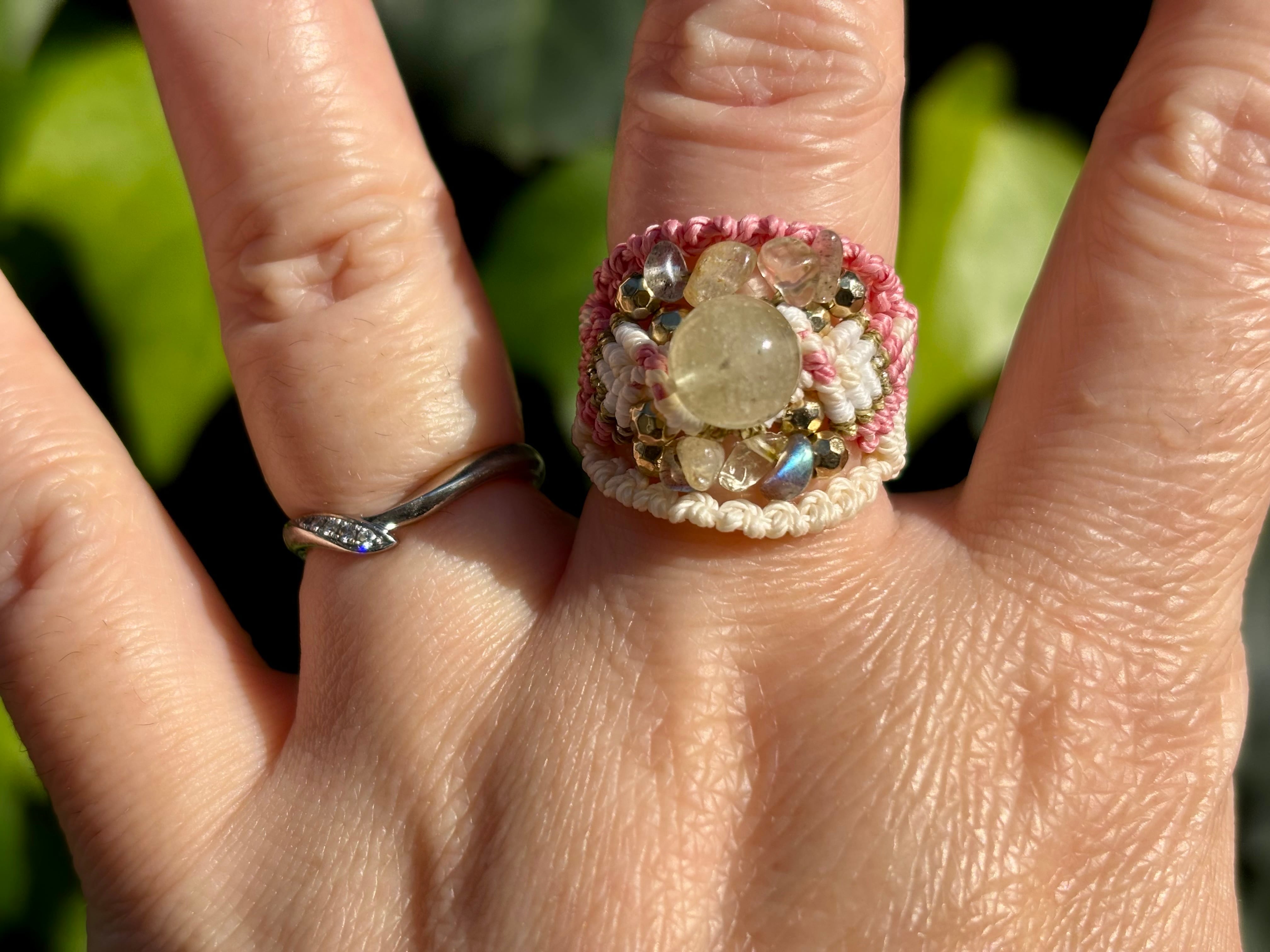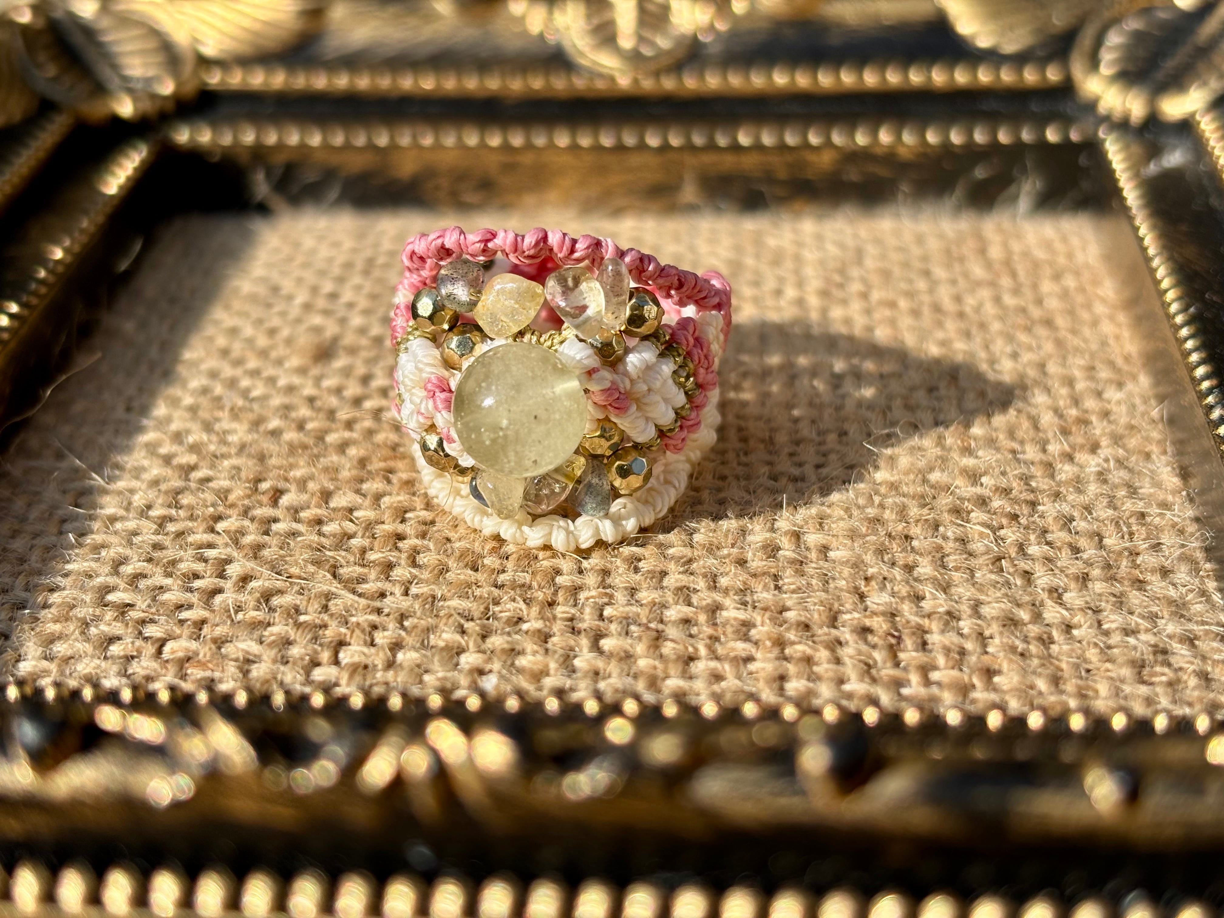 #932激レア⭐︎リビアングラス一点物(リビアングラス×シトリン×ラブラドライト マクラメ編みリング/指輪)