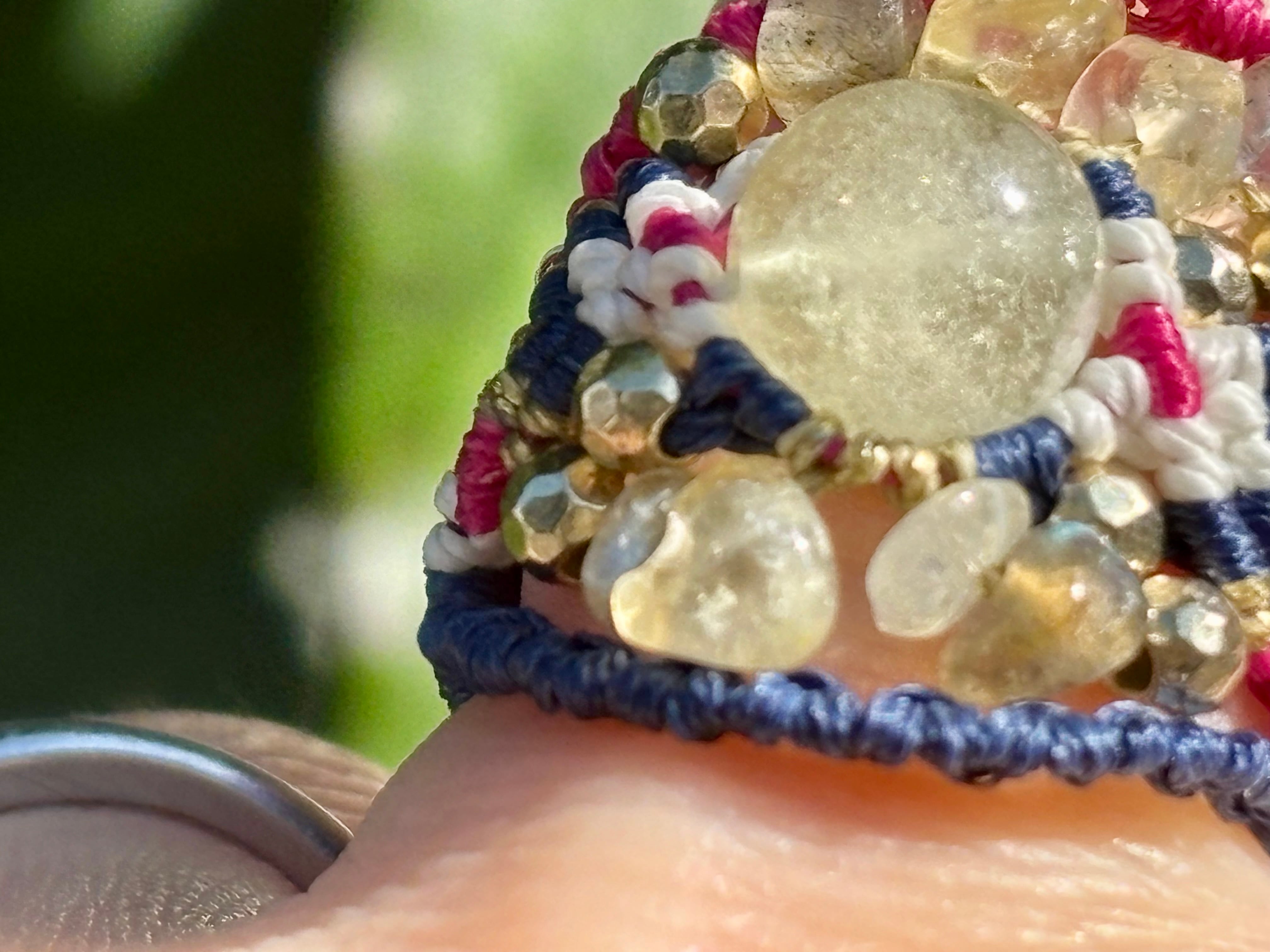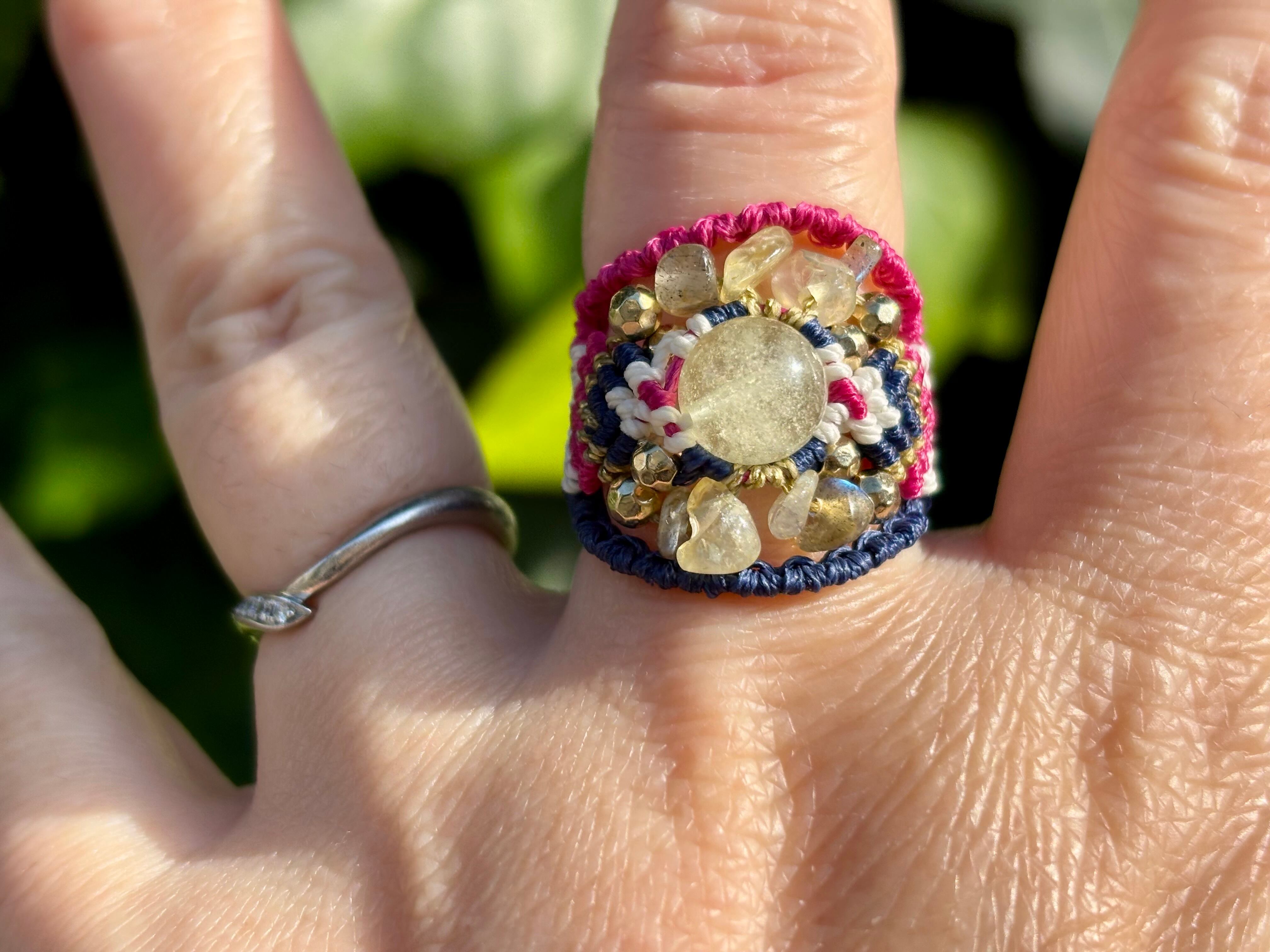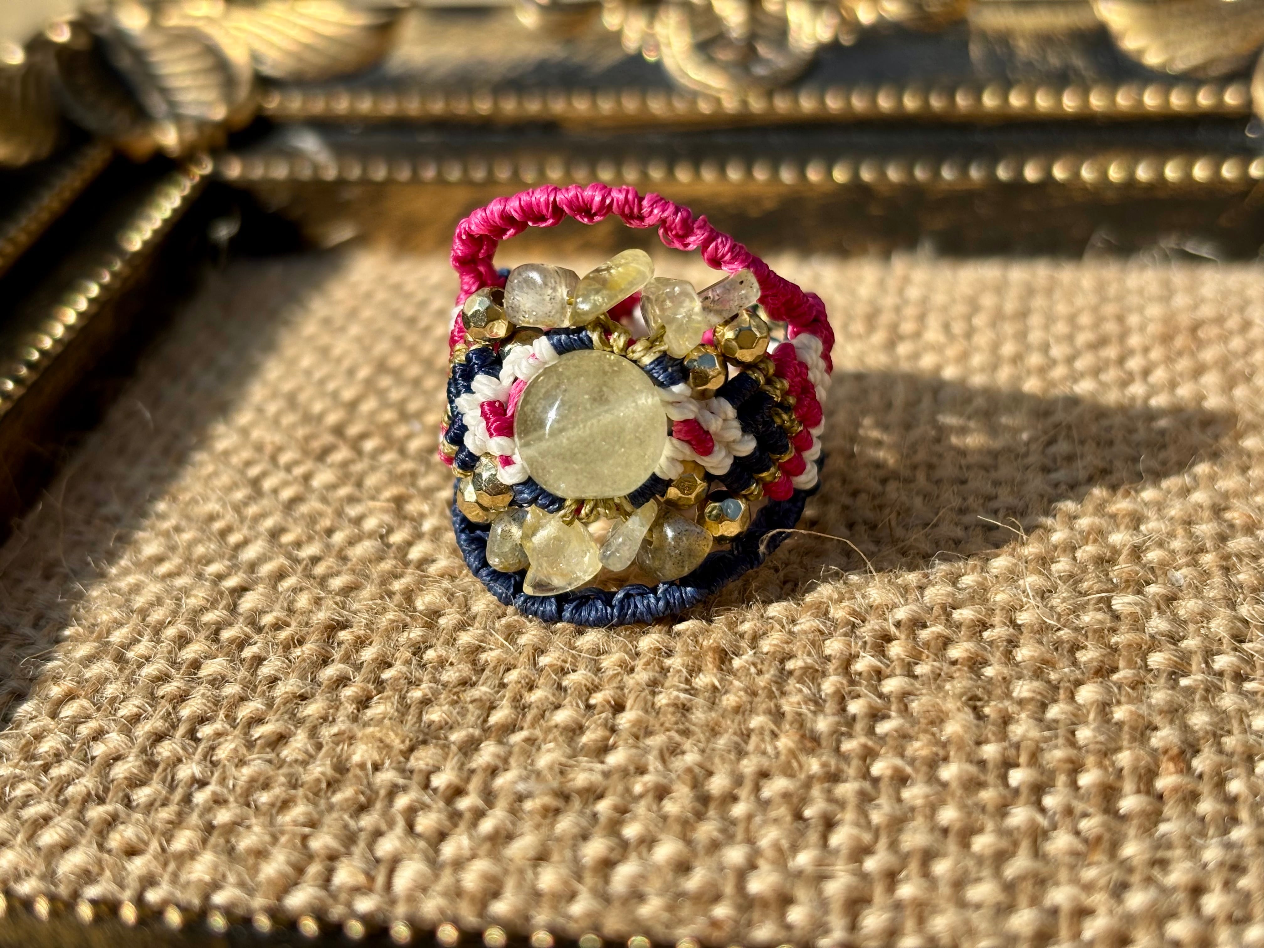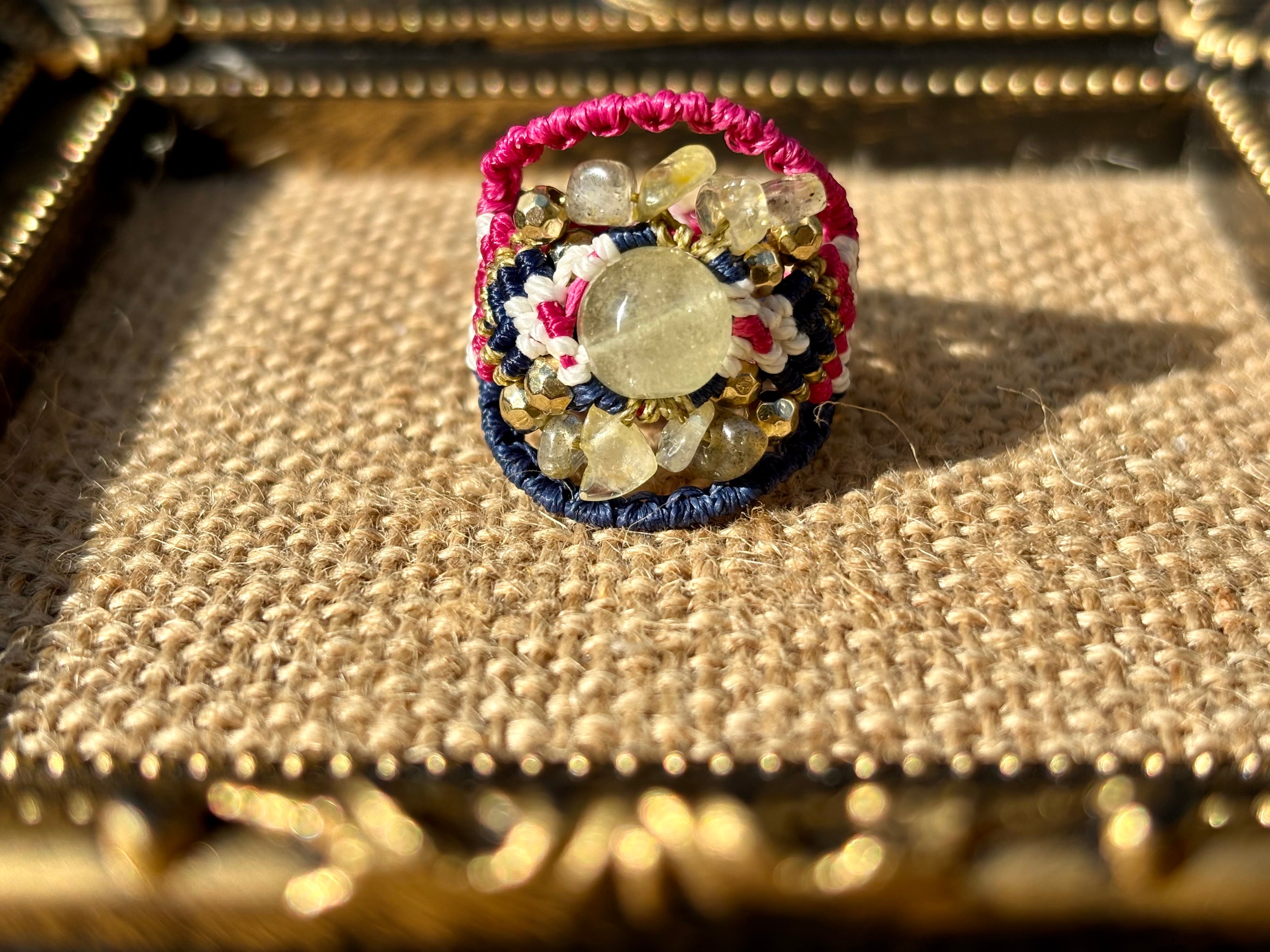 #934激レア⭐︎リビアングラス一点物(リビアングラス×シトリン×ラブラドライト マクラメ編みリング/指輪)