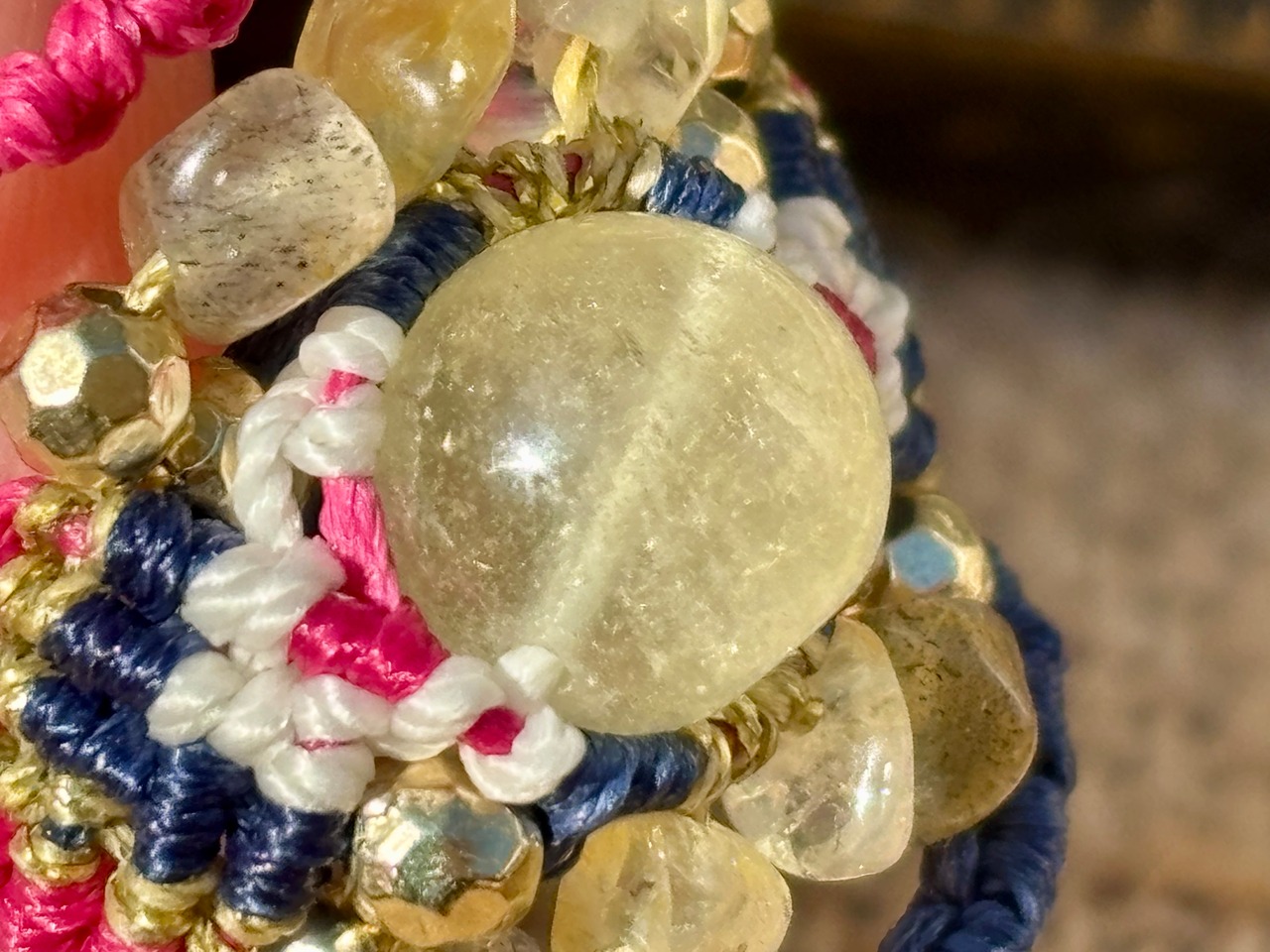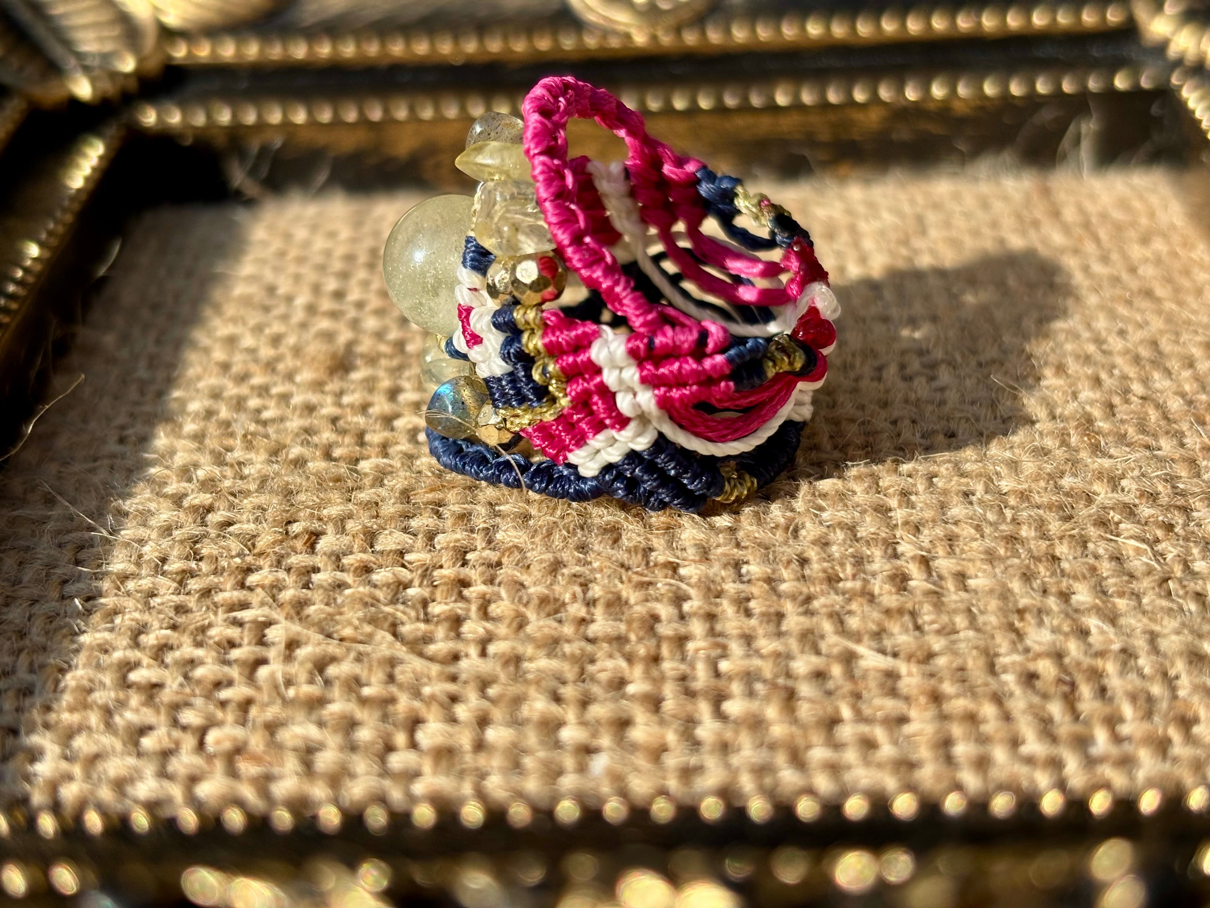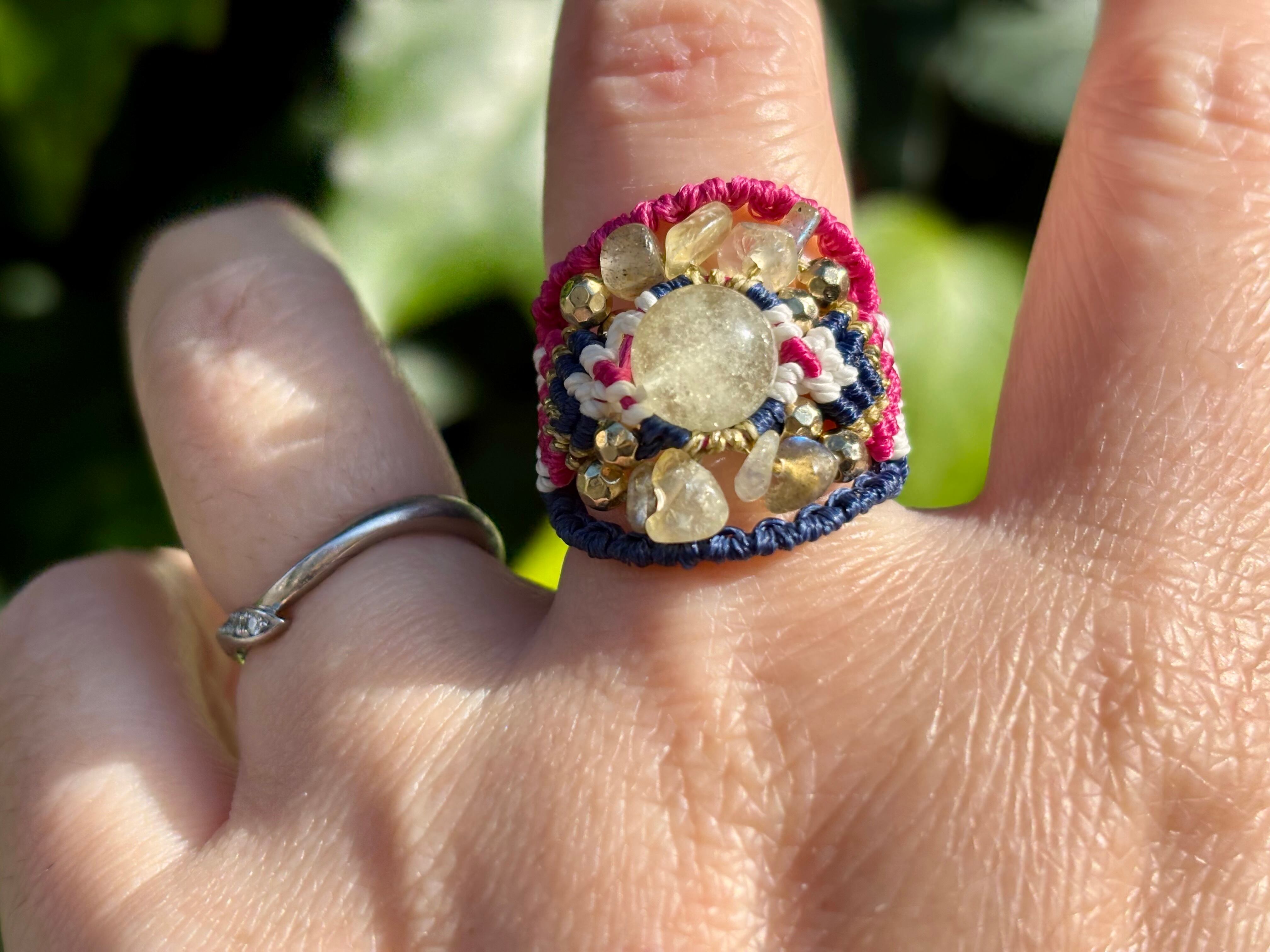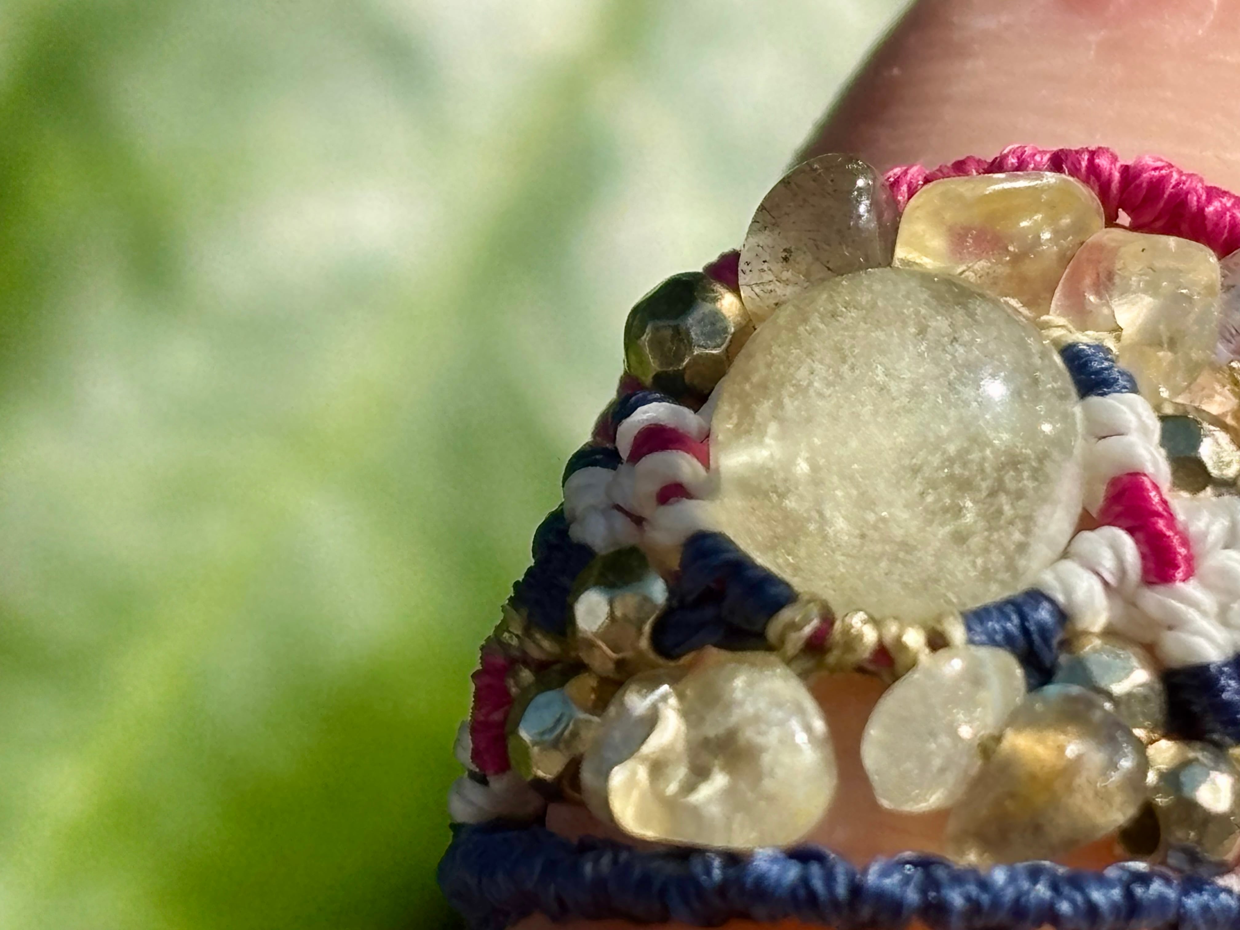 #934激レア⭐︎リビアングラス一点物(リビアングラス×シトリン×ラブラドライト マクラメ編みリング/指輪)